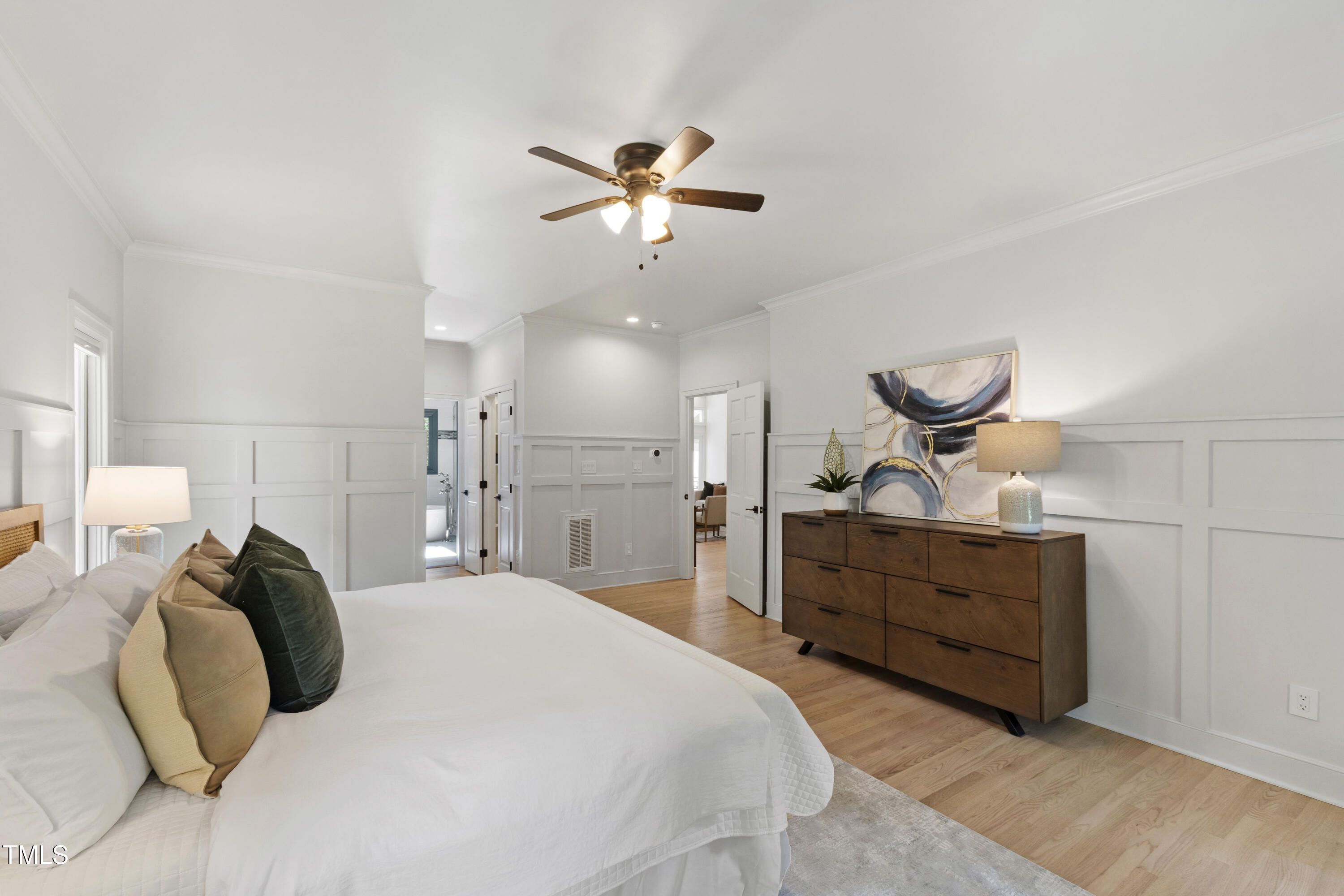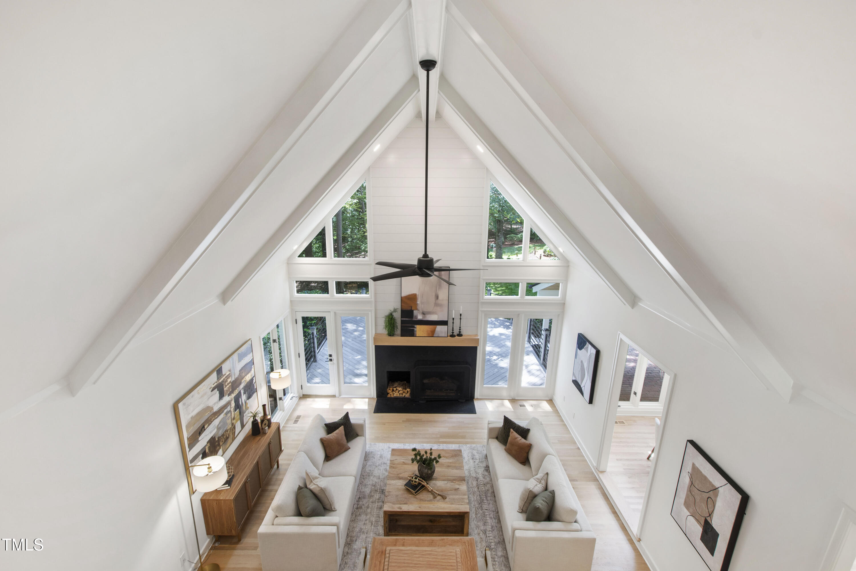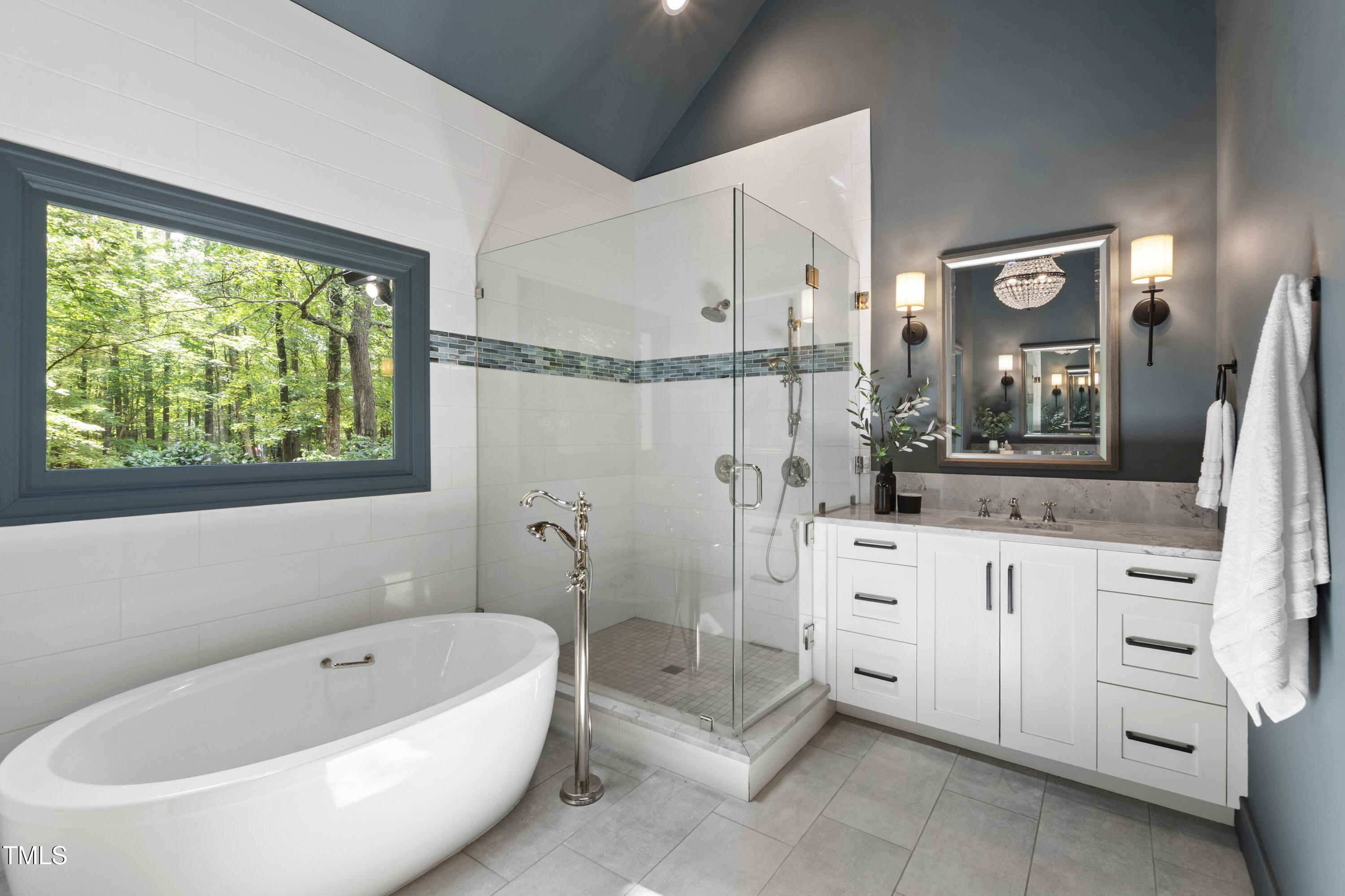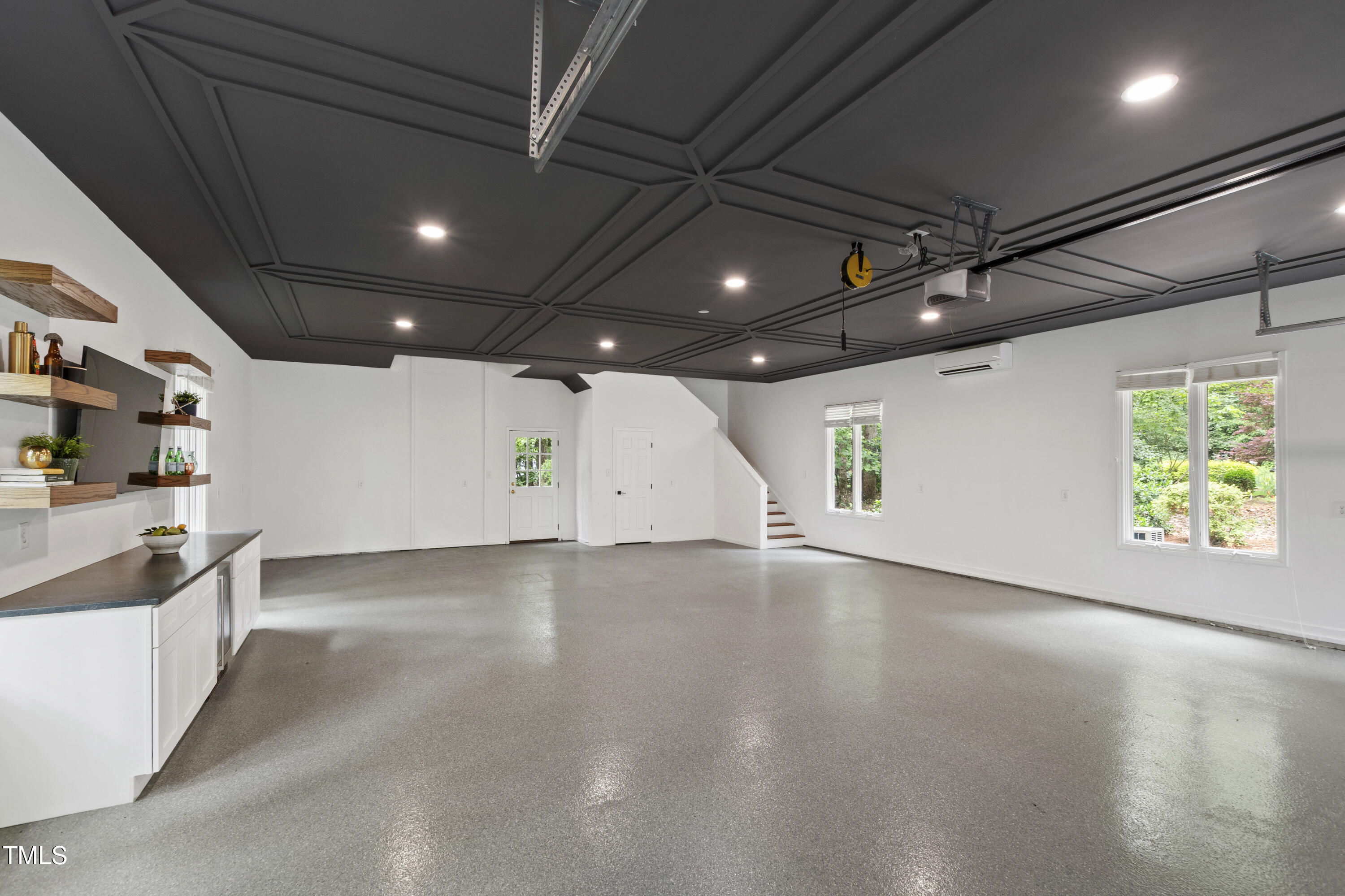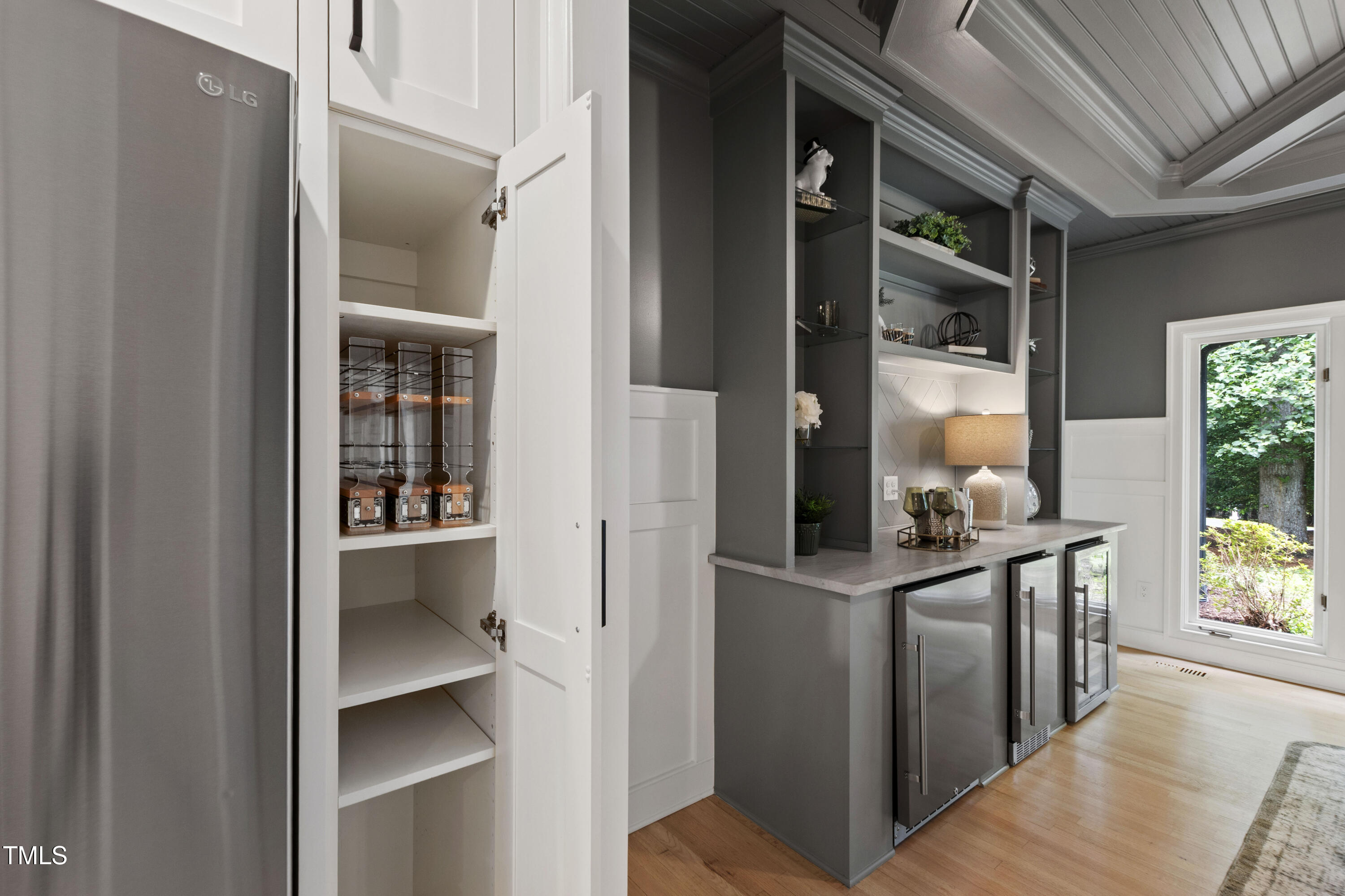 An architectural wonder awaits in this truly one of one property, where captivating modernity wraps in elegant grandeur - welcome to 1301 King Cross Court. Located in one of the most prestigious North Raleigh neighborhoods of Sheffield Manor, this five bedroom property offers unmatched tranquility with accessible convenience to an abundance of life's core amenities. Nestled on a private, strikingly landscaped 2 acre corner lot, this home exudes contemporary character through every touchpoint. The moment you step through the front door, you're greeted by an impressive, vaulted-ceiling family room anchored around a gas-log fireplace - the heart of the home. To the left, you'll find your own private retreat with the idyllic primary suite, boasting expansive dual closets and a sleek bathroom outfitted with a walk-in shower and soaking tub. To the right, the family room is flanked by a gourmet kitchen, sparing no expense with quartzite countertops, stainless steel Miele appliances, oversized farmhouse sink, plentiful cabinets and a seamlessly intertwined breakfast room. Cap the day in the unique and inviting Bourbon Room --an entertainer's delight that blends warmth, style, and character. The floor is completed by an additional bedroom, perfect for a lower level in-law room, home office, or first floor bonus space. Transporting upstairs, you're once again greeted by contemporary finishes and hardwood floors as three spacious bedrooms await, each with their own en-suite offering the ultimate in comfort and privacy for families or guests. An oversized bonus room, complete with a sleek wet bar and an additional flex space, is the perfect setting for movie nights, a game room or second floor entertaining. Outdoor living at its finest, the exterior of this home offers year-round use with a thoughtfully designed covered patio featuring an outdoor bar and grill. Unwind for a cozy evening or fresh summer night on the spacious deck that backs to the double-sided fireplace from the family room. Moving to the grounds, the expansive, beautifully maintained backyard offers plenty of room for anyone looking to add a pool -- yet the property is only a short walk to the community's swimming, tennis and pickleball courts, and scenic nature trails. With a brand new roof and pristine brick siding, this home is the epitome of a move-in ready property in ultimate condition. Rounding out the distinctive and exceptional design of this home, space abounds as you explore the property's generously-sized detached garage - a canvas of opportunity prime for transformation into your next working space, home gym, workshop, secondary garage, storage, or so much more. Every square foot of this stunning abode has been thoughtfully planned and detailed. A combination of remarkable luxury, impeccable condition, private space, and unbeatable accessibility - 1301 King Cross Court is the perfect balance of elegance and comfort for unparalleled, everyday living in an exceptional manner.