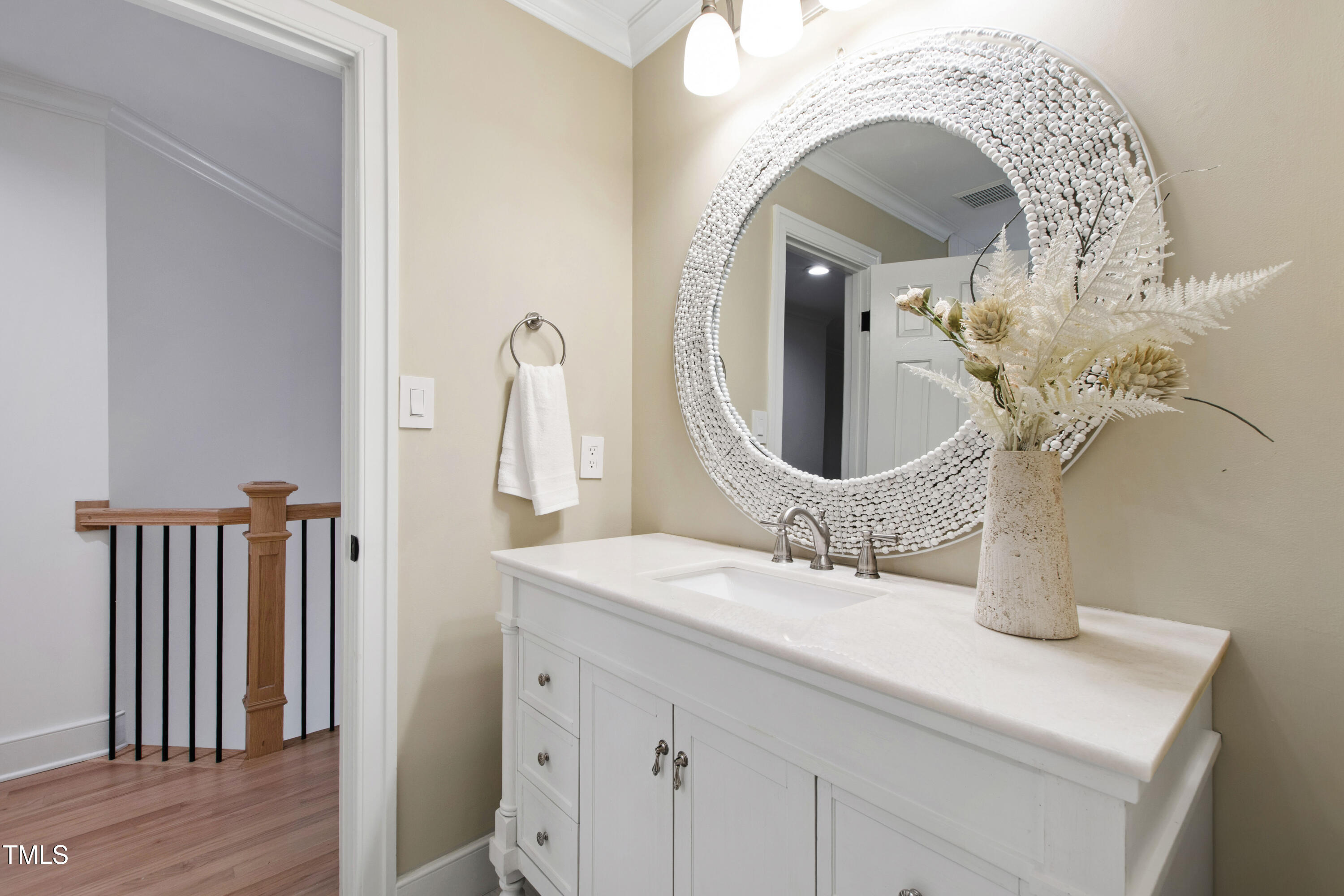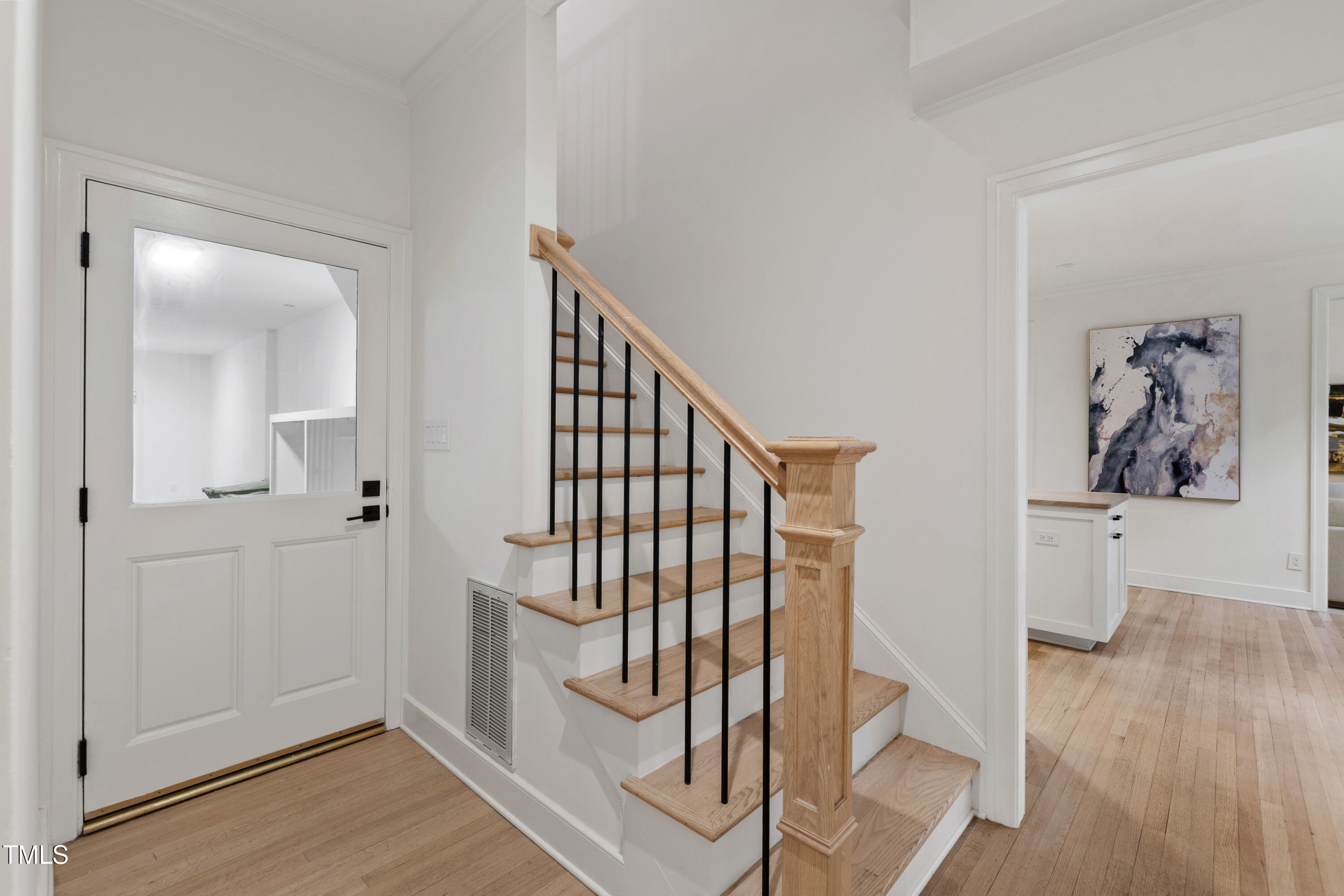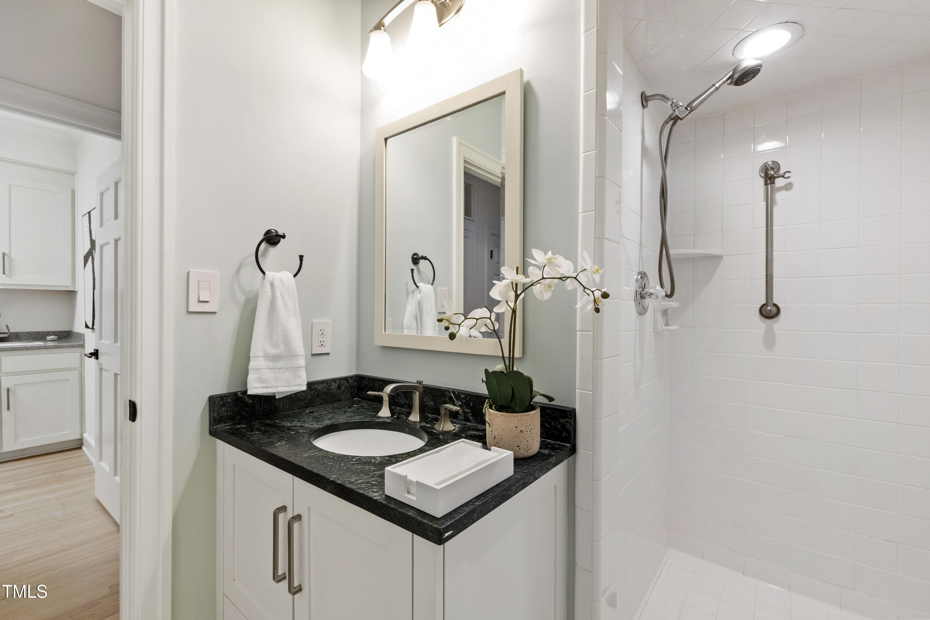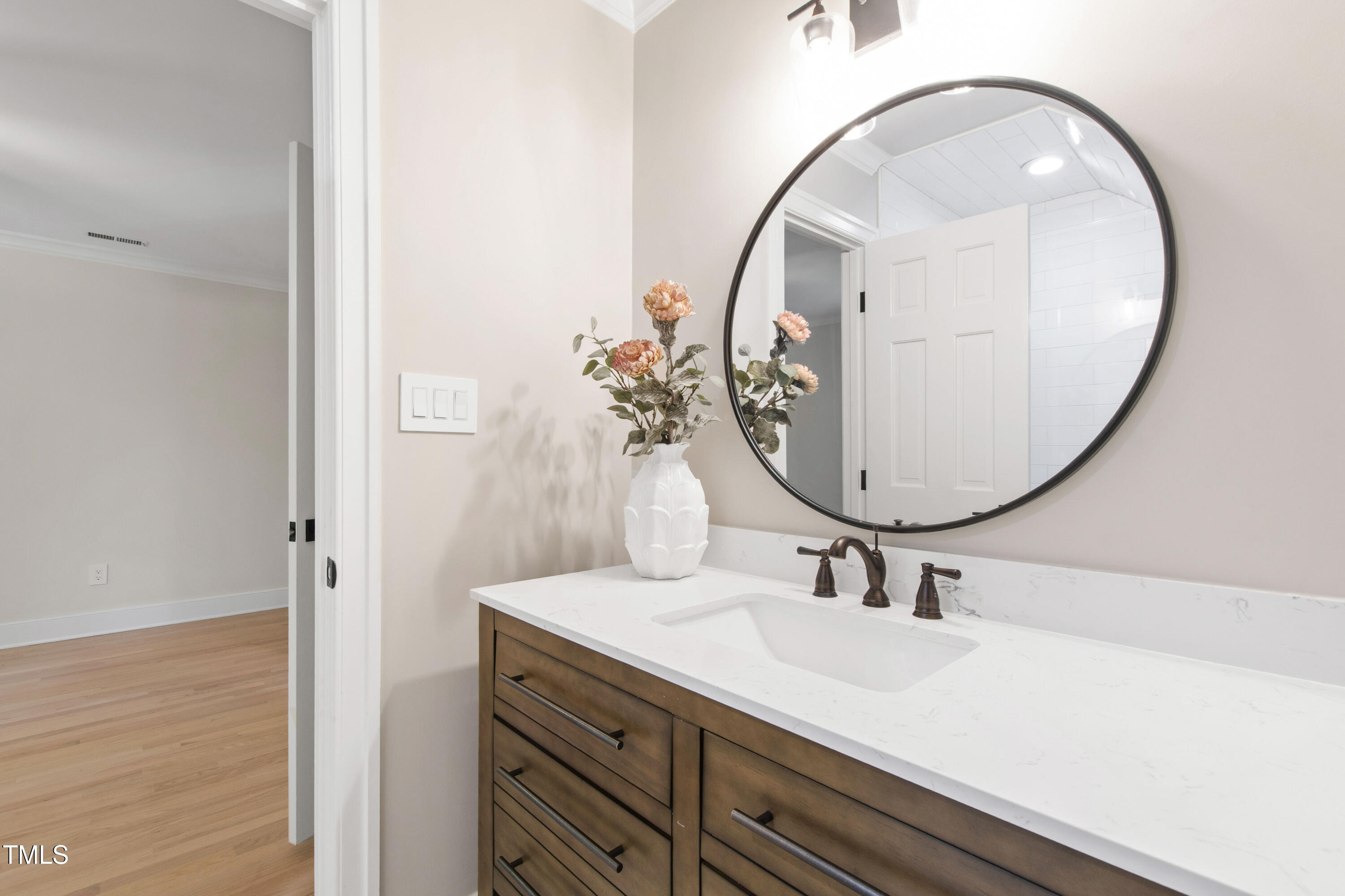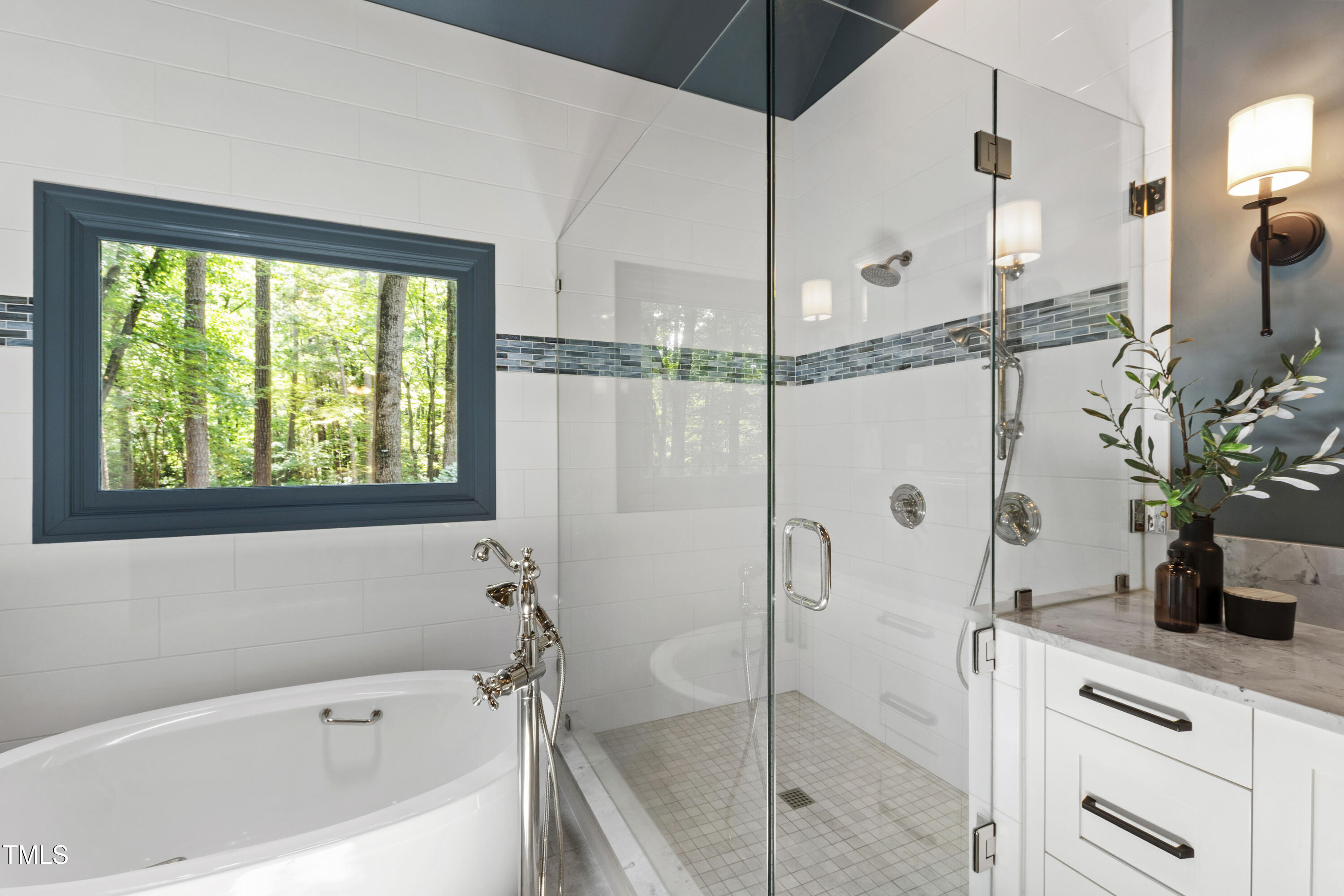 An architectural wonder awaits in this truly one of one property, where captivating modernity wraps in elegant grandeur - welcome to 1301 King Cross Court. Located in one of the most prestigious North Raleigh neighborhoods of Sheffield Manor, this five bedroom property offers unmatched tranquility with accessible convenience to an abundance of life's core amenities. Nestled on a private, strikingly landscaped 2 acre corner lot, this home exudes contemporary character through every touchpoint. The moment you step through the front door, you're greeted by an impressive, vaulted-ceiling family room anchored around a gas-log fireplace - the heart of the home. To the left, you'll find your own private retreat with the idyllic primary suite, boasting expansive dual closets and a sleek bathroom outfitted with a walk-in shower and soaking tub. To the right, the family room is flanked by a gourmet kitchen, sparing no expense with quartzite countertops, stainless steel Miele appliances, oversized farmhouse sink, plentiful cabinets and a seamlessly intertwined breakfast room. Cap the day in the unique and inviting Bourbon Room --an entertainer's delight that blends warmth, style, and character. The floor is completed by an additional bedroom, perfect for a lower level in-law room, home office, or first floor bonus space. Transporting upstairs, you're once again greeted by contemporary finishes and hardwood floors as three spacious bedrooms await, each with their own en-suite offering the ultimate in comfort and privacy for families or guests. An oversized bonus room, complete with a sleek wet bar and an additional flex space, is the perfect setting for movie nights, a game room or second floor entertaining. Outdoor living at its finest, the exterior of this home offers year-round use with a thoughtfully designed covered patio featuring an outdoor bar and grill. Unwind for a cozy evening or fresh summer night on the spacious deck that backs to the double-sided fireplace from the family room. Moving to the grounds, the expansive, beautifully maintained backyard offers plenty of room for anyone looking to add a pool -- yet the property is only a short walk to the community's swimming, tennis and pickleball courts, and scenic nature trails. With a brand new roof and pristine brick siding, this home is the epitome of a move-in ready property in ultimate condition. Rounding out the distinctive and exceptional design of this home, space abounds as you explore the property's generously-sized detached garage - a canvas of opportunity prime for transformation into your next working space, home gym, workshop, secondary garage, storage, or so much more. Every square foot of this stunning abode has been thoughtfully planned and detailed. A combination of remarkable luxury, impeccable condition, private space, and unbeatable accessibility - 1301 King Cross Court is the perfect balance of elegance and comfort for unparalleled, everyday living in an exceptional manner.