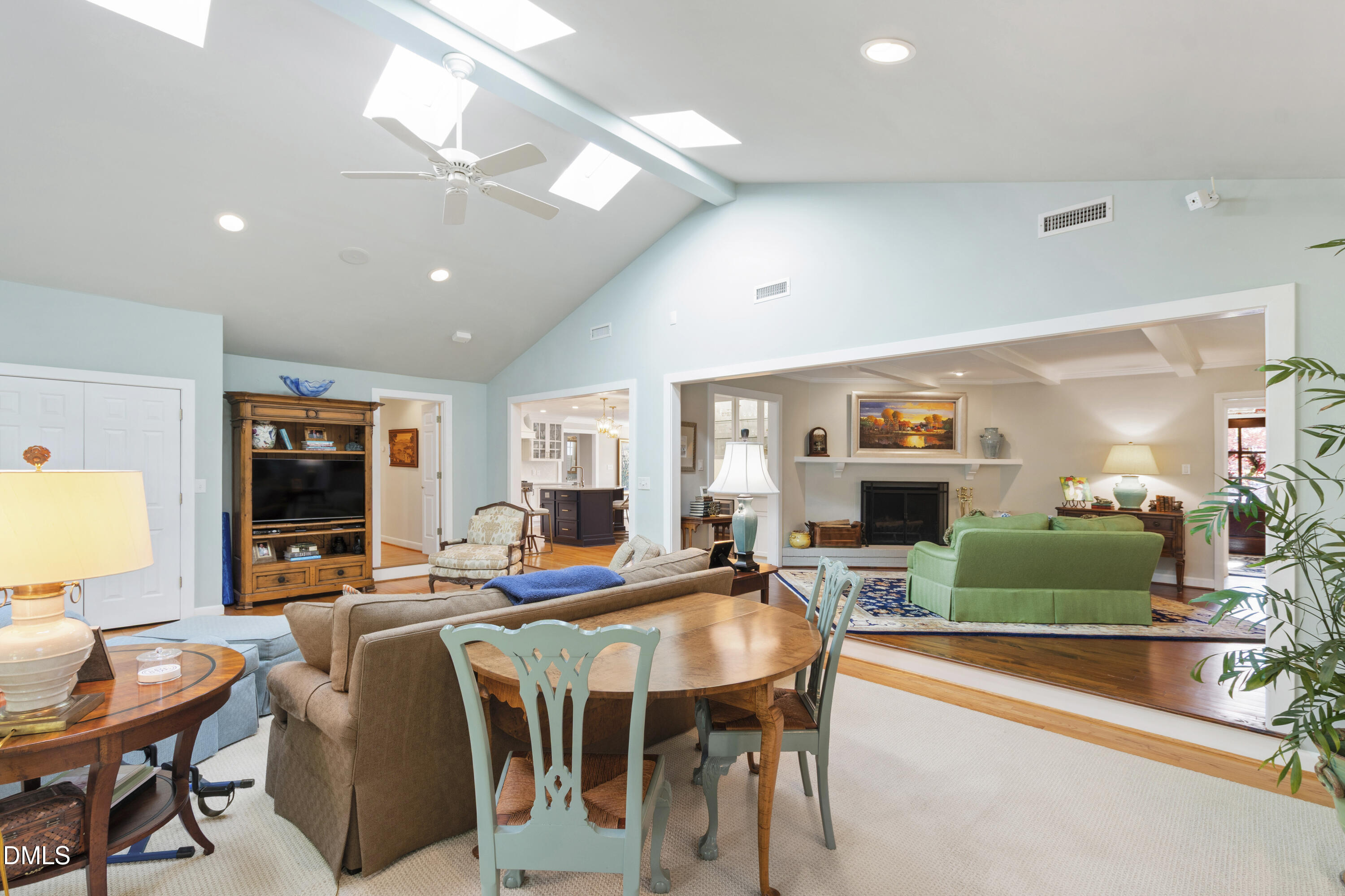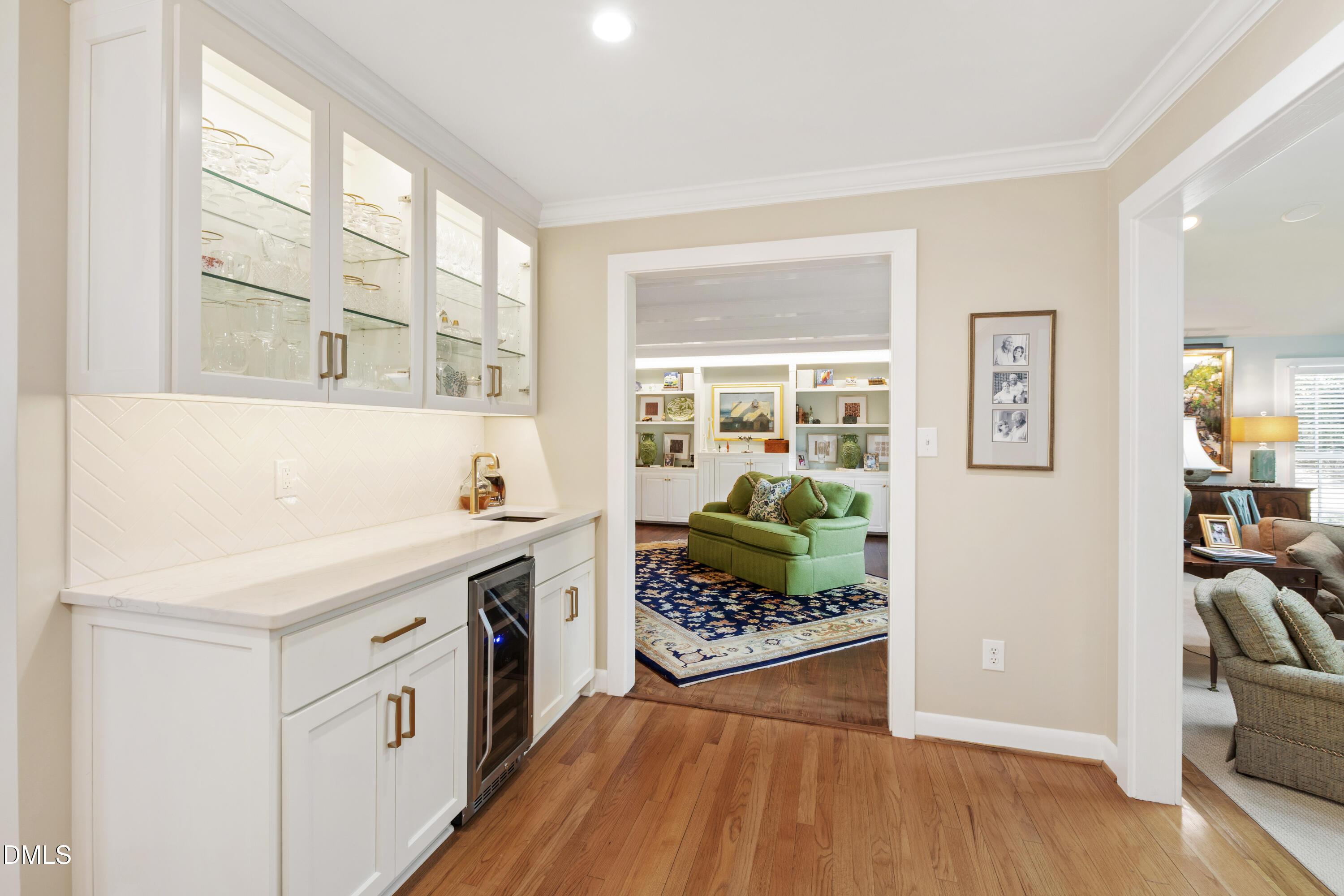 Tucked away on a quiet cul-de-sac in coveted Hayes Barton Terrace, this pristine ranch home offers the perfect blend of privacy, style, and convenience--just moments from Oberlin Village, Five Points, and downtown Raleigh. Beautifully remodeled and thoughtfully designed, this special home features hardwood floors throughout and an inviting layout that feels both refined and comfortable. The designer kitchen is a standout, with a gas cooktop, quartz countertops, stainless steel appliances, and a swanky wet bar with a beverage fridge. A cozy sitting room accompanies the kitchen--ideal for morning coffee or a quiet moment with a book. Off the kitchen is a walk-in pantry, powder room, and laundry room with a sink. Entertaining is effortless with a large formal dining room; gracious living room with built-in bookcases, beamed ceiling, and wood-burning fireplace; and a spacious family room with vaulted ceilings that opens seamlessly to a screened porch with its own vaulted ceiling, wood-burning fireplace,a and Ezebreeze sashes for year-round enjoyment.