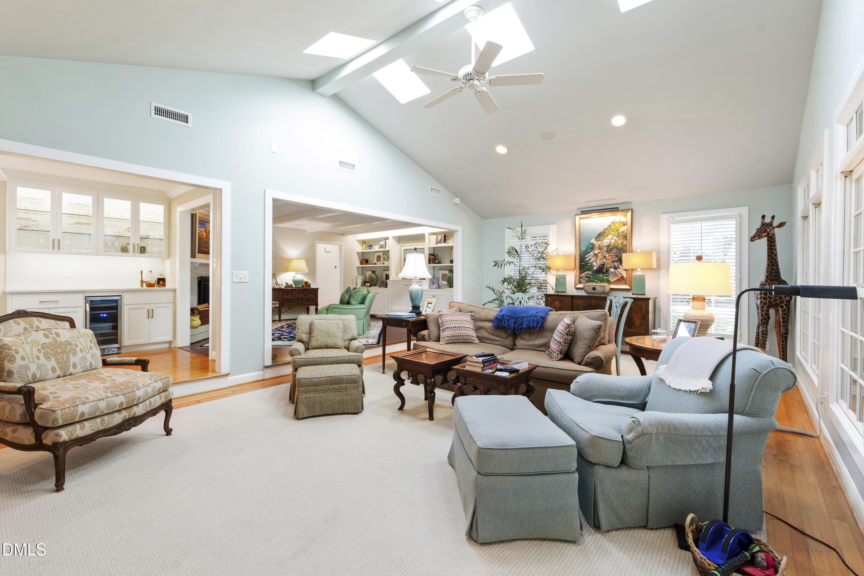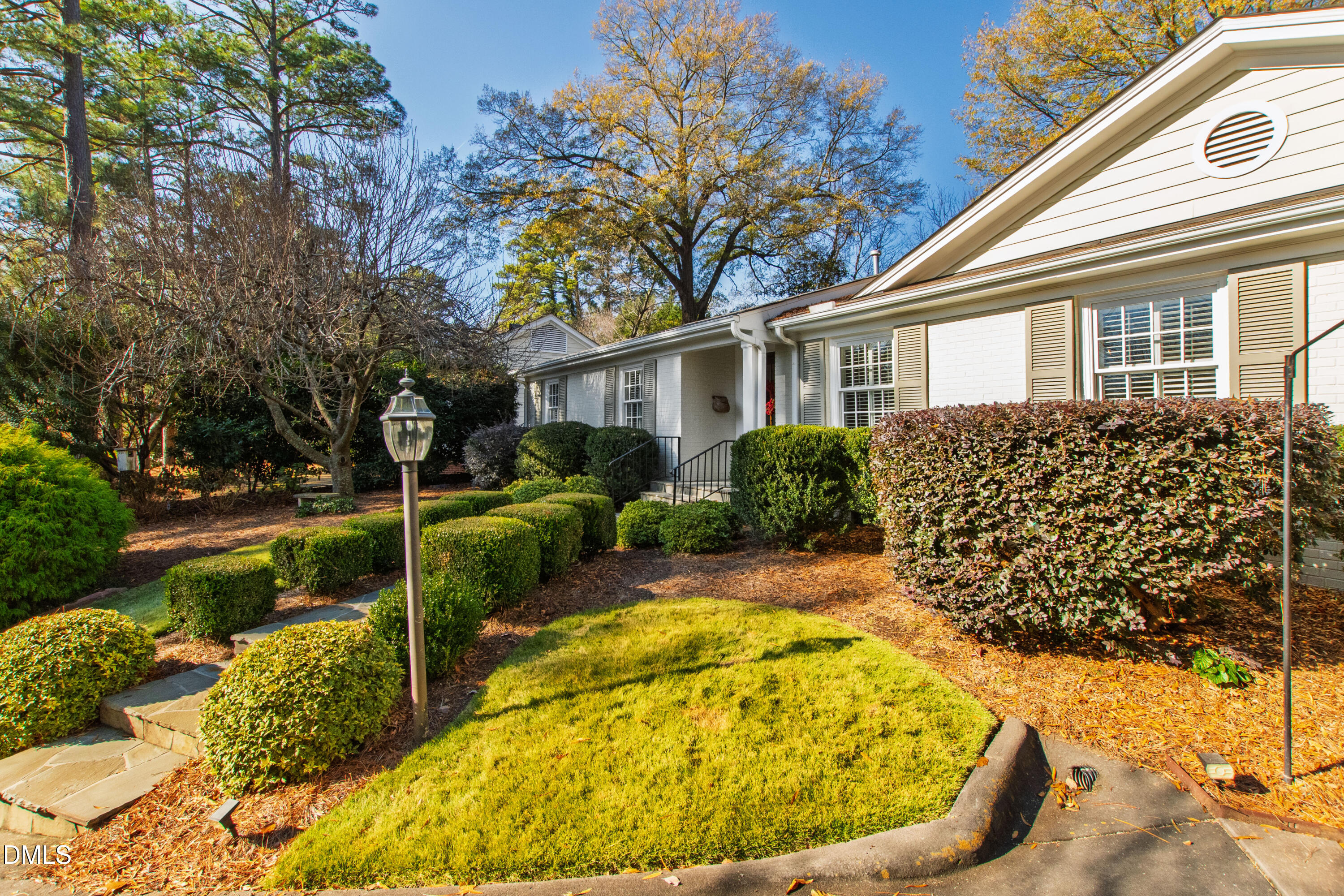 The private primary suite is tucked away and includes a vaulted ceiling, walk-in closet and a lovely, well-appointed bath. Three secondary bedrooms and two full baths make for plenty of room for family and overnight guests. Outdoor patios and a beautifully landscaped yard create a serene setting for relaxing or hosting. An attached two-car carport with a storage room adds convenience to this exceptional home--an elegant retreat in one of Raleigh's most sought-after neighborhoods.