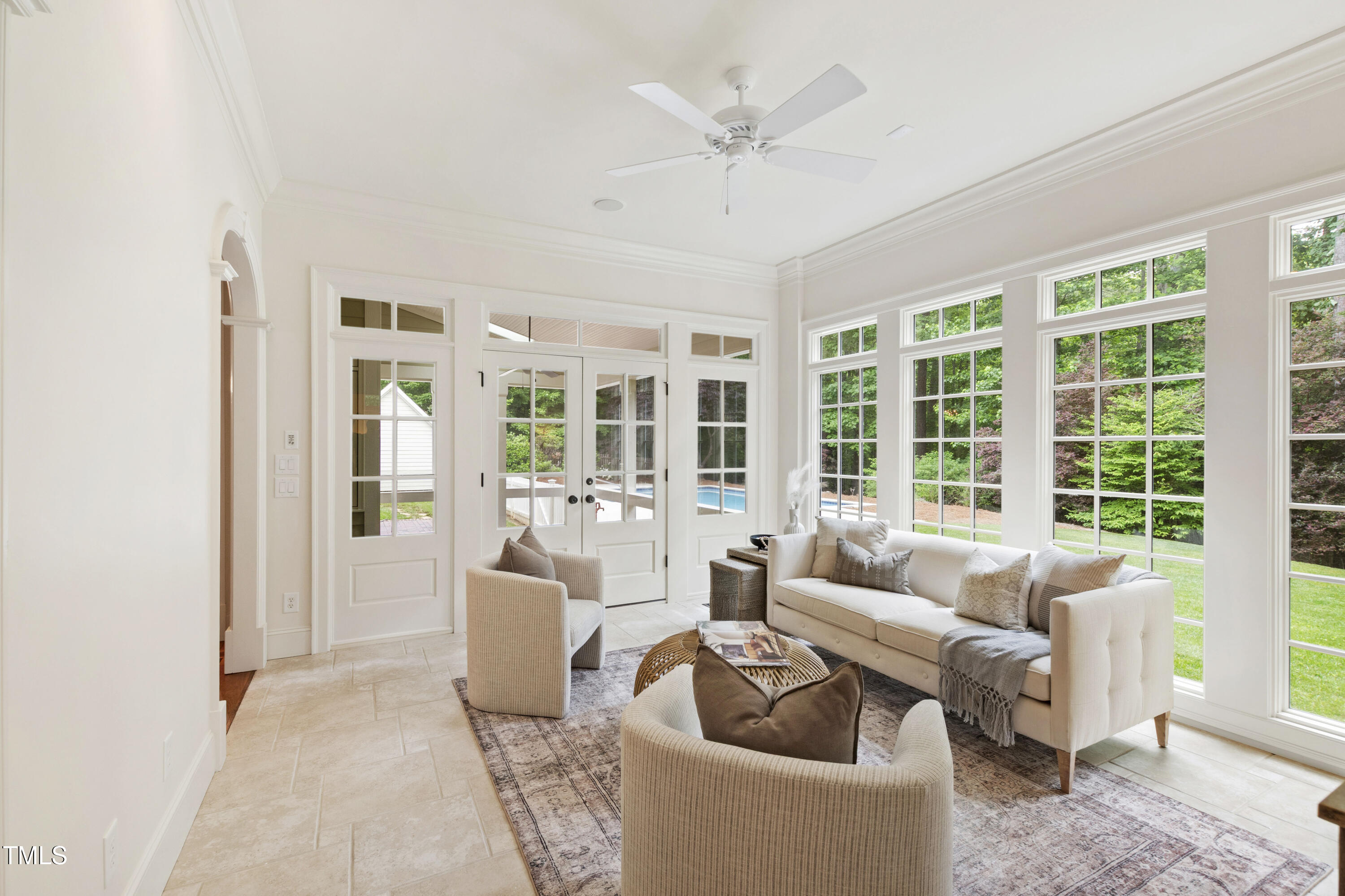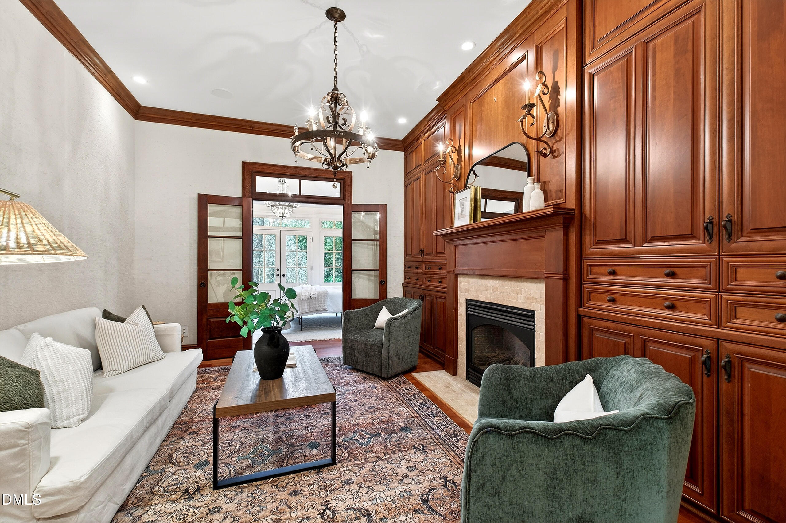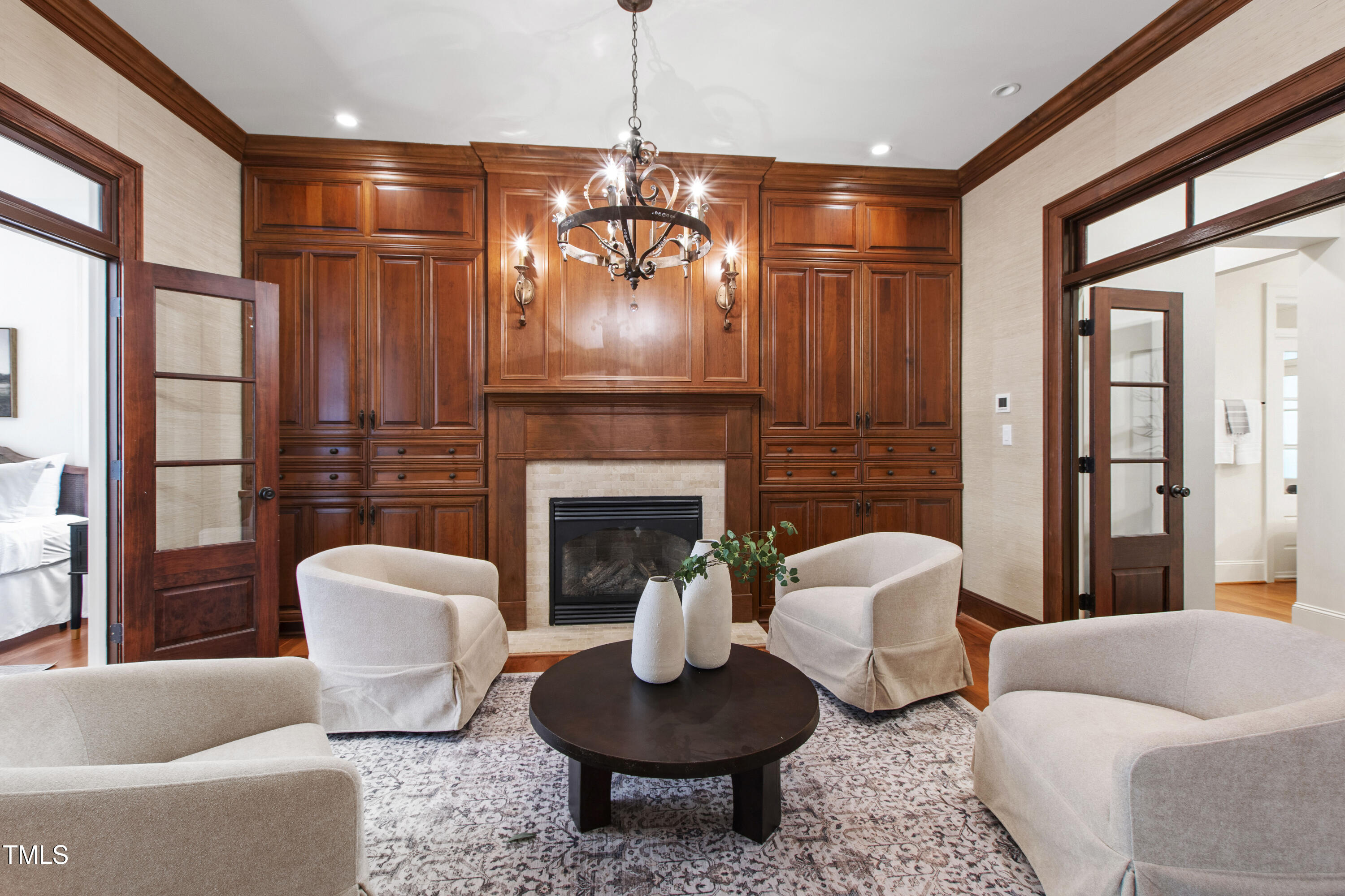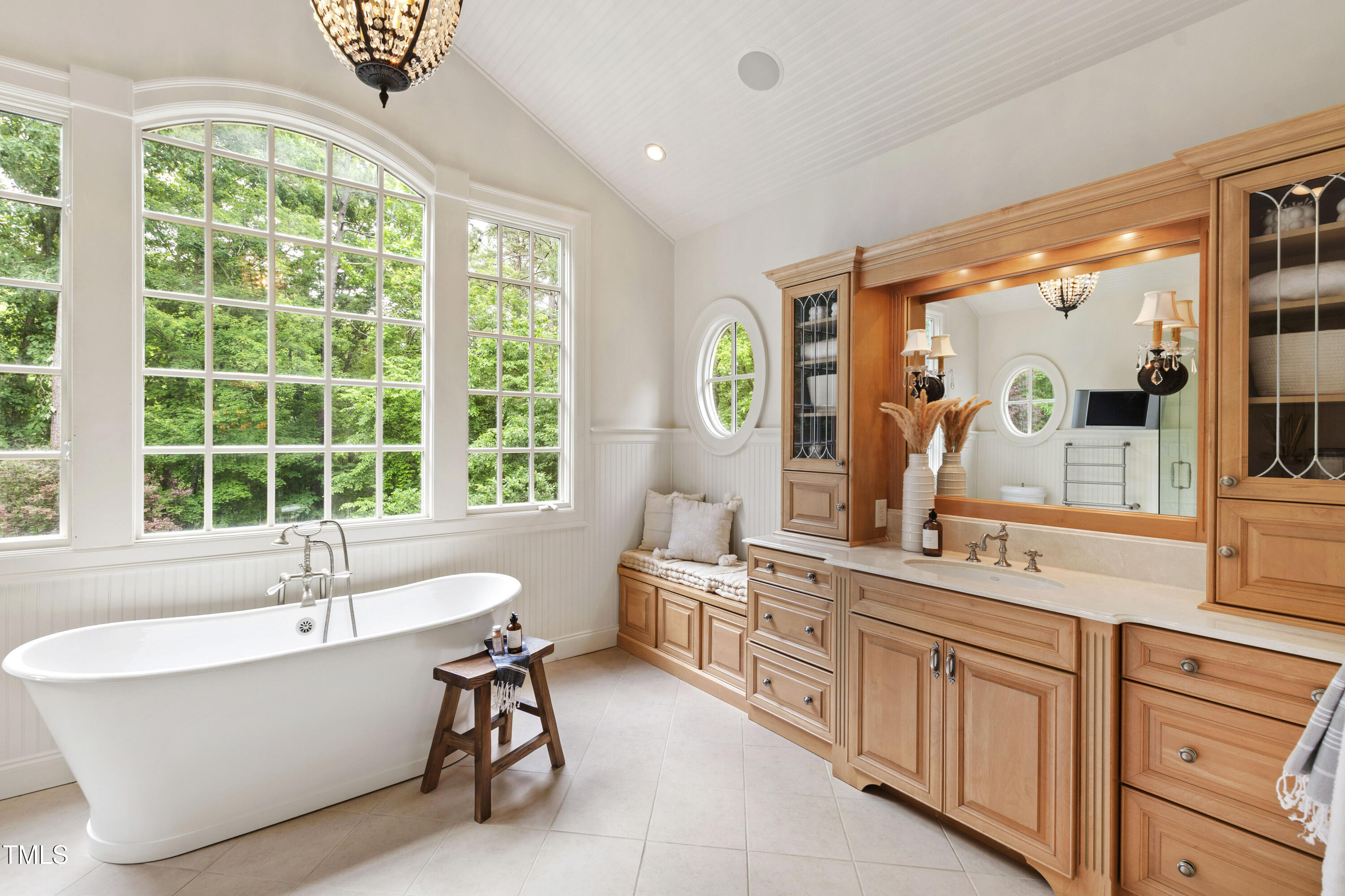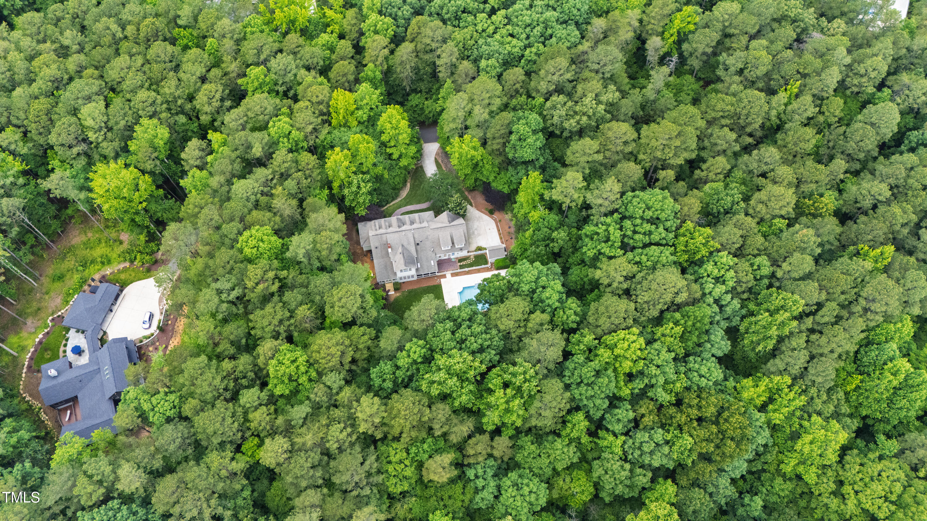 Welcome to an unparalleled custom-built masterpiece, gracefully situated on 3.25 serene acres within The Shire, an exclusive enclave of only nine homesites spanning over 90 wooded acres. Enjoy the tranquility of a private estate, mere minutes - just four miles - from the vibrant heart of Downtown Chapel Hill, UNC Hospital, and Carrboro. Step inside and be captivated by a residence that has been meticulously maintained and thoughtfully designed. Grand vaulted ceilings, dazzling chandeliers, and a magnificent staircase immediately evoke a sense of refined opulence, while an abundance of bright, open windows bathes the interior in natural light. The gourmet kitchen is a chef's delight boasting Silestone countertops, gas range, a double oven, a generous walk-in pantry, a built-in Miele coffee machine, and a discreet butler's pantry - making entertaining an absolute breeze. Memorable gatherings will be a delight to host in the separate formal dining room. A recently added main-level primary suite features vaulted ceilings, private wooded views, an elegant primary bathroom with a walk-in shower, large soaker tub, and an expansive walk-in closet. The cozy sitting room with gas fireplace and plentiful storage possibilities sets the perfect tone for a relaxing oasis. The bright sunroom provides a picturesque vantage point, overlooking your sprawling private lot and the inviting in-ground pool. Upstairs, a second main suite truly defines sanctuary with a cozy fireplace, leading to a bright, luxurious bathroom appointed with both a rejuvenating walk-in shower and a deep soaker tub. Two additional spacious bedrooms and a versatile bonus room offer endless possibilities for recreation, a home theater, a private gym, or additional personalized living space. Outside, the fenced backyard is an entertainer's paradise, complete with a heating-capable pool, and breathtaking private views. Seamless indoor-outdoor living is perfected with a charming screened back porch and an additional covered porch. Beyond its beauty, 131 Lavinia offers unmatched convenience, located directly off Highway 54 for swift access to local hospitals, UNC, Chapel Hill/Carrboro, and major highways. Modern amenities abound, including a comprehensive security system, central vacuum system, a fully integrated home entertainment center encompassing the entire home, a rain-sensor irrigation system, and a reliable backup generator. This residence isn't just a home; it's a lifestyle of sophistication and comfort, meticulously crafted for discerning tastes.