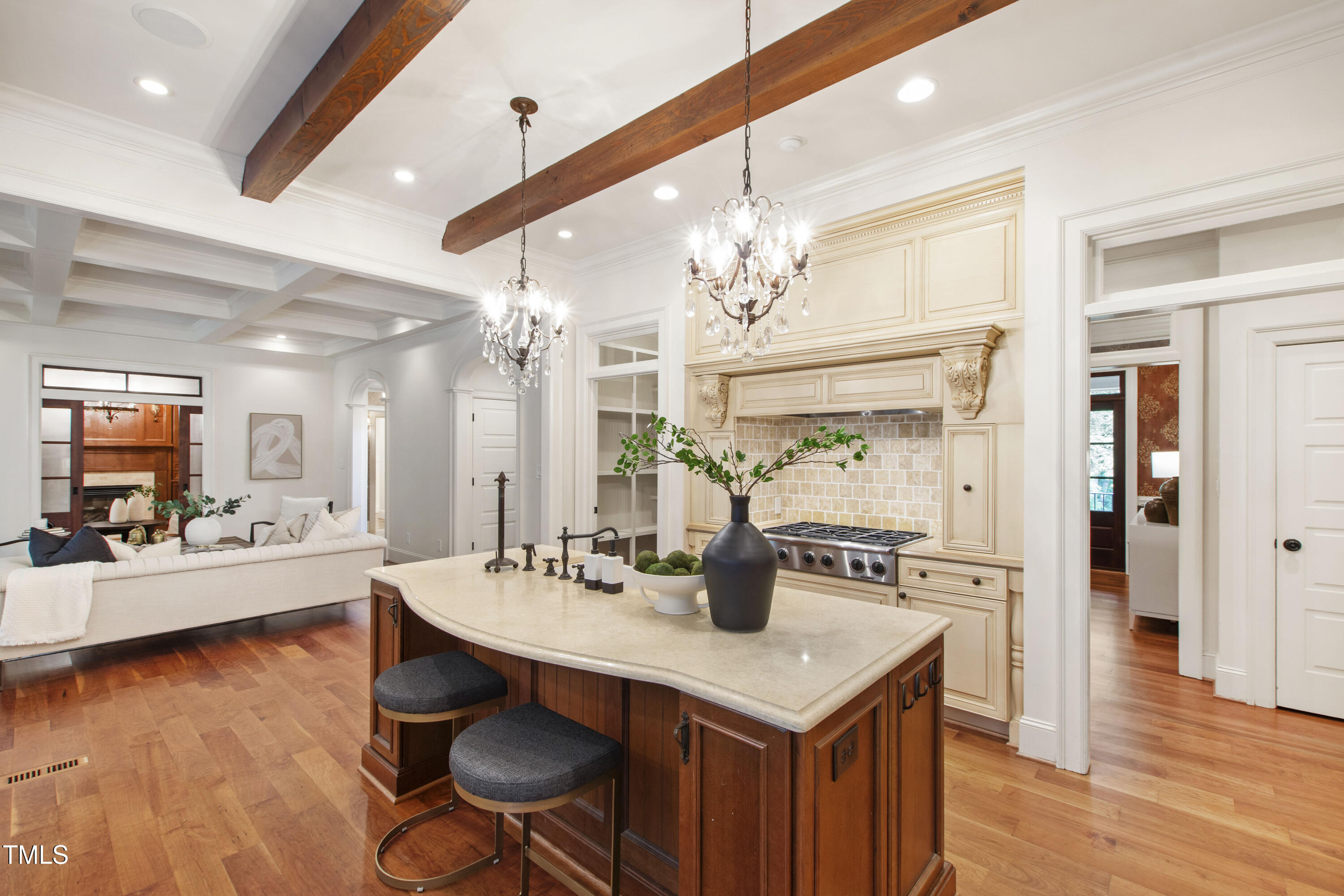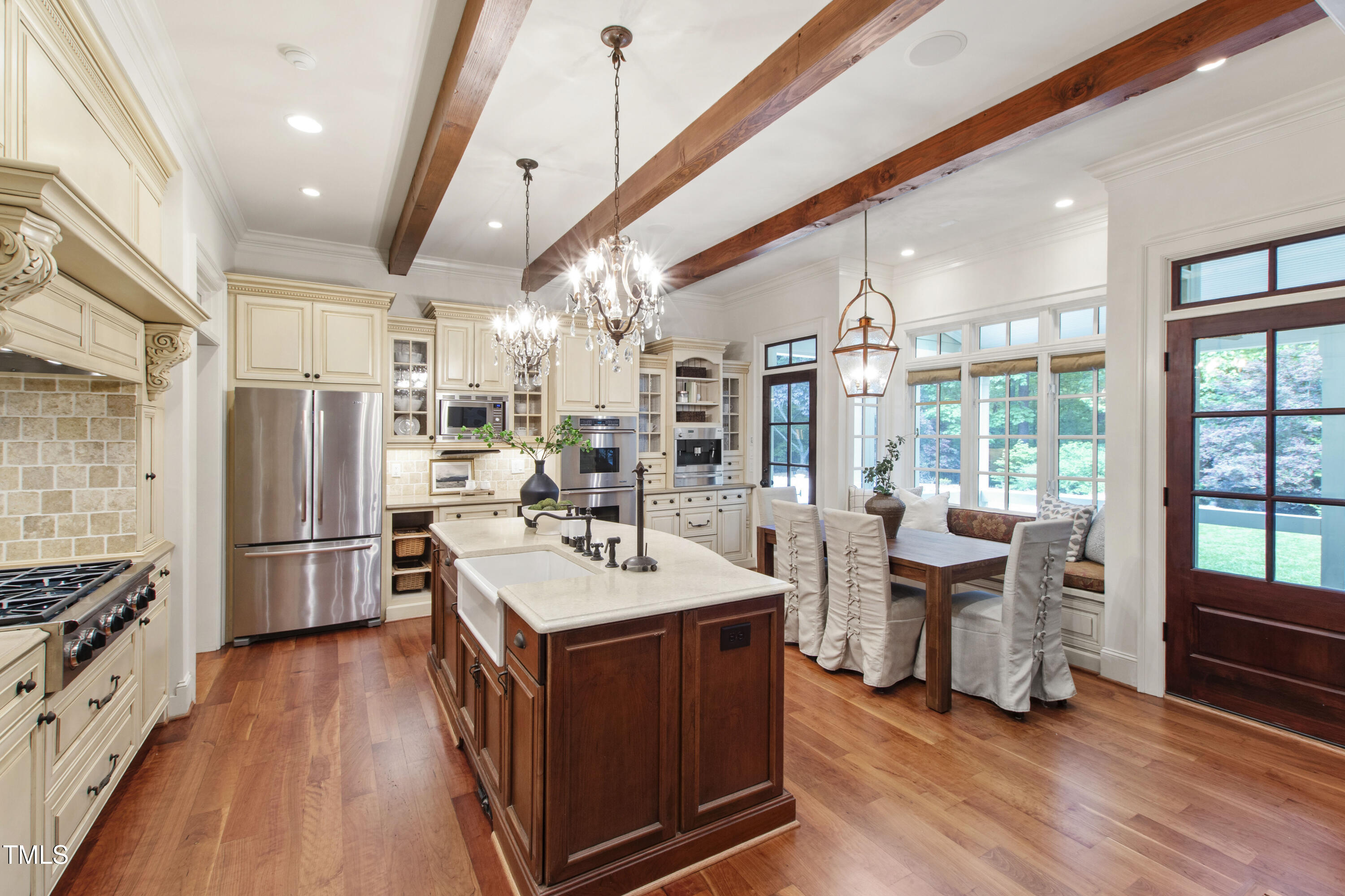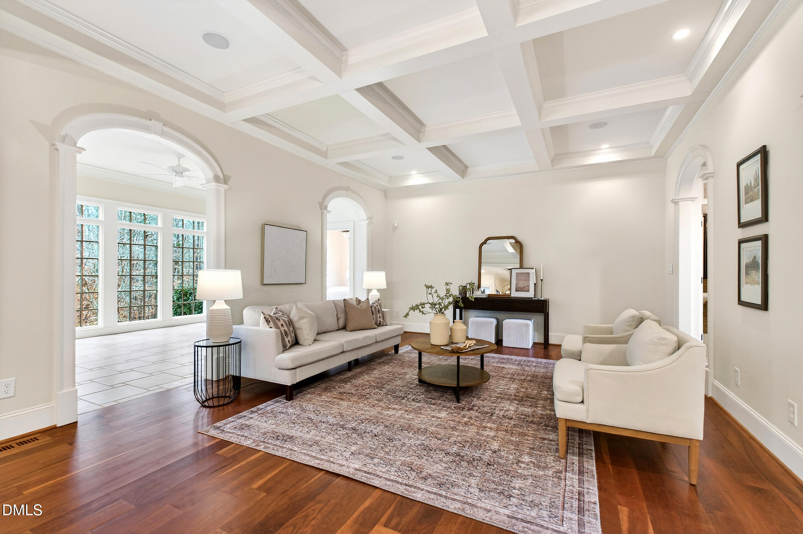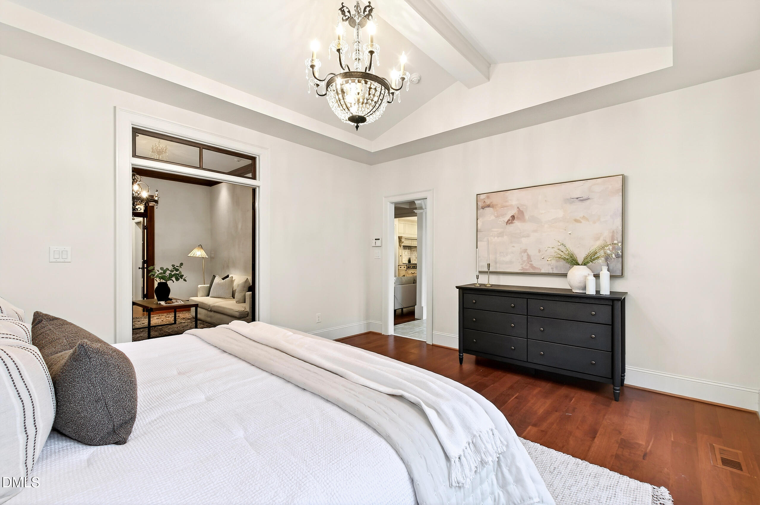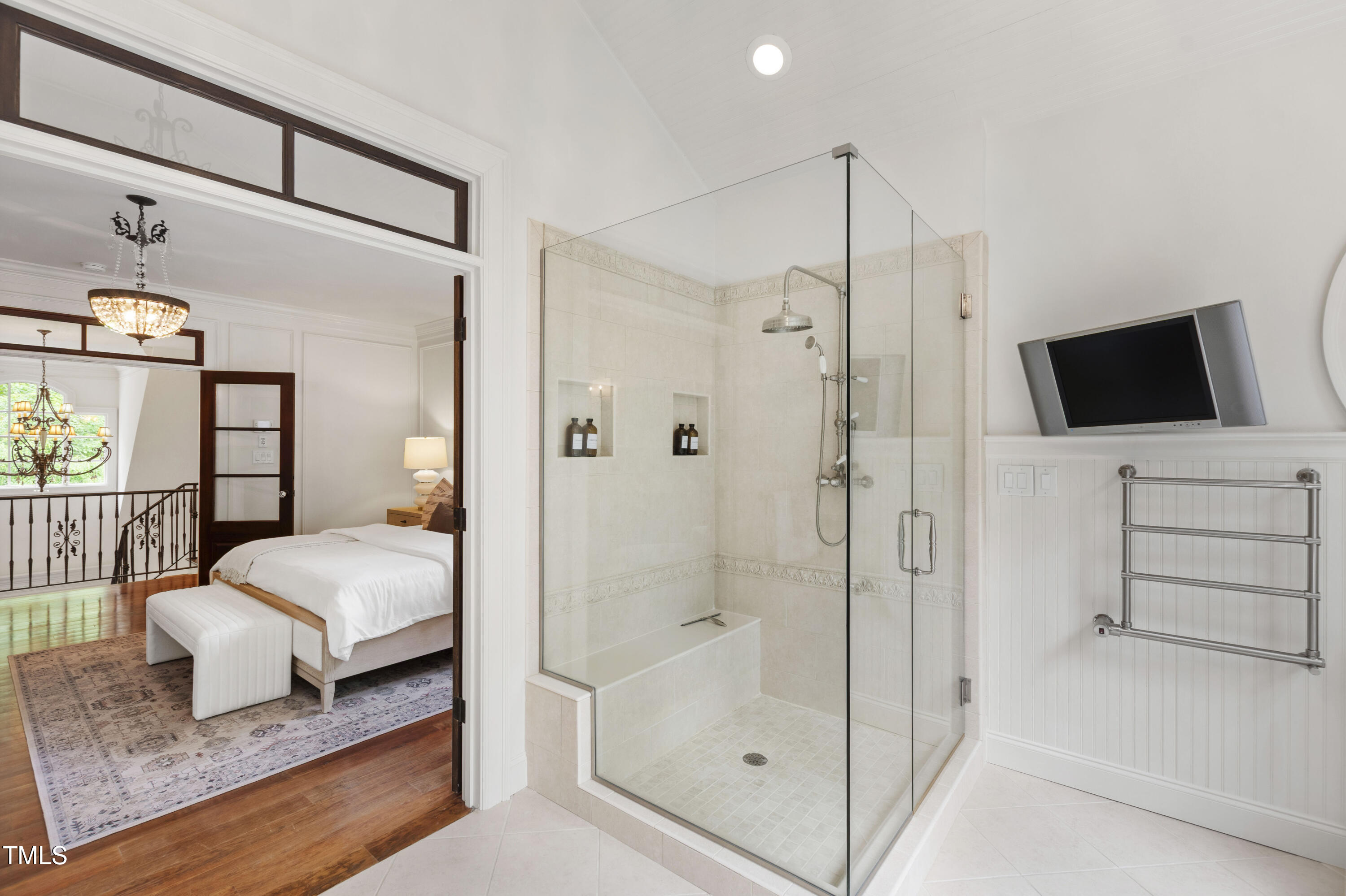 Welcome to an unparalleled custom-built masterpiece, gracefully situated on 3.25 serene acres within The Shire, an exclusive enclave of only nine homesites spanning over 90 wooded acres. Enjoy the tranquility of a private estate, mere minutes - just four miles - from the vibrant heart of Downtown Chapel Hill, UNC Hospital, and Carrboro. Step inside and be captivated by a residence that has been meticulously maintained and thoughtfully designed. Grand vaulted ceilings, dazzling chandeliers, and a magnificent staircase immediately evoke a sense of refined opulence, while an abundance of bright, open windows bathes the interior in natural light. The gourmet kitchen is a chef's delight boasting Silestone countertops, gas range, a double oven, a generous walk-in pantry, a built-in Miele coffee machine, and a discreet butler's pantry - making entertaining an absolute breeze. Memorable gatherings will be a delight to host in the separate formal dining room. A recently added main-level primary suite features vaulted ceilings, private wooded views, an elegant primary bathroom with a walk-in shower, large soaker tub, and an expansive walk-in closet. The cozy sitting room with gas fireplace and plentiful storage possibilities sets the perfect tone for a relaxing oasis. The bright sunroom provides a picturesque vantage point, overlooking your sprawling private lot and the inviting in-ground pool. Upstairs, a second main suite truly defines sanctuary with a cozy fireplace, leading to a bright, luxurious bathroom appointed with both a rejuvenating walk-in shower and a deep soaker tub. Two additional spacious bedrooms and a versatile bonus room offer endless possibilities for recreation, a home theater, a private gym, or additional personalized living space. Outside, the fenced backyard is an entertainer's paradise, complete with a heating-capable pool, and breathtaking private views. Seamless indoor-outdoor living is perfected with a charming screened back porch and an additional covered porch. Beyond its beauty, 131 Lavinia offers unmatched convenience, located directly off Highway 54 for swift access to local hospitals, UNC, Chapel Hill/Carrboro, and major highways. Modern amenities abound, including a comprehensive security system, central vacuum system, a fully integrated home entertainment center encompassing the entire home, a rain-sensor irrigation system, and a reliable backup generator. This residence isn't just a home; it's a lifestyle of sophistication and comfort, meticulously crafted for discerning tastes.