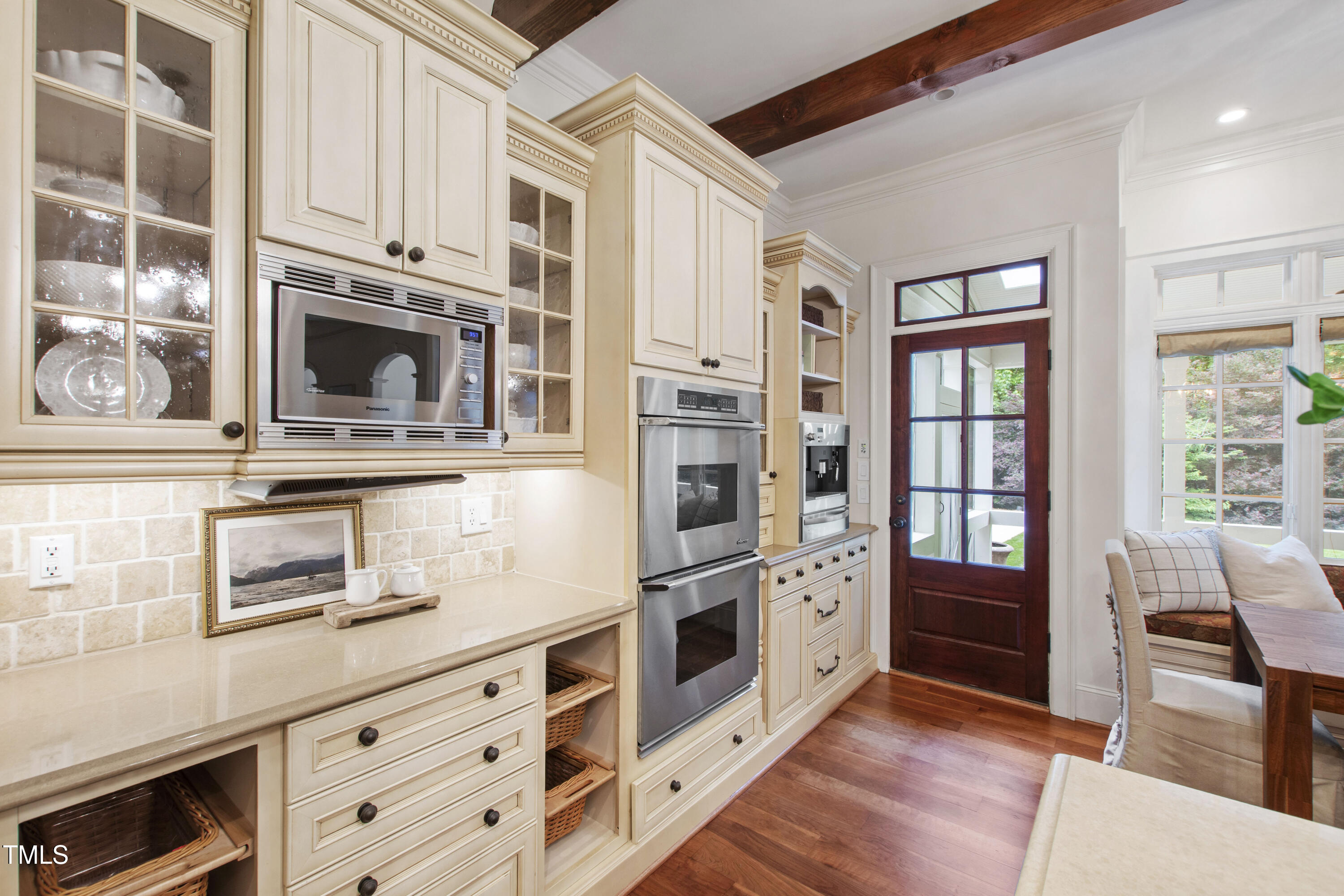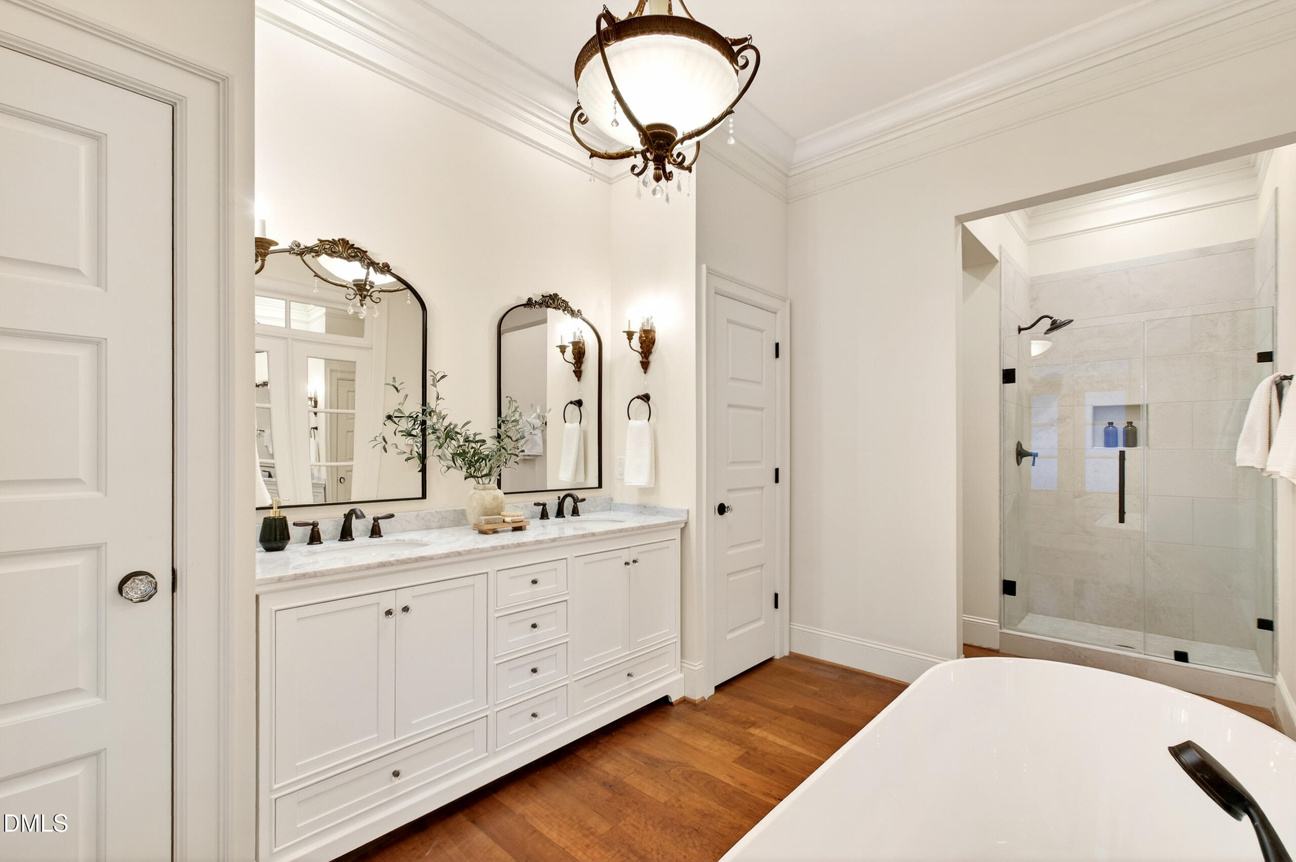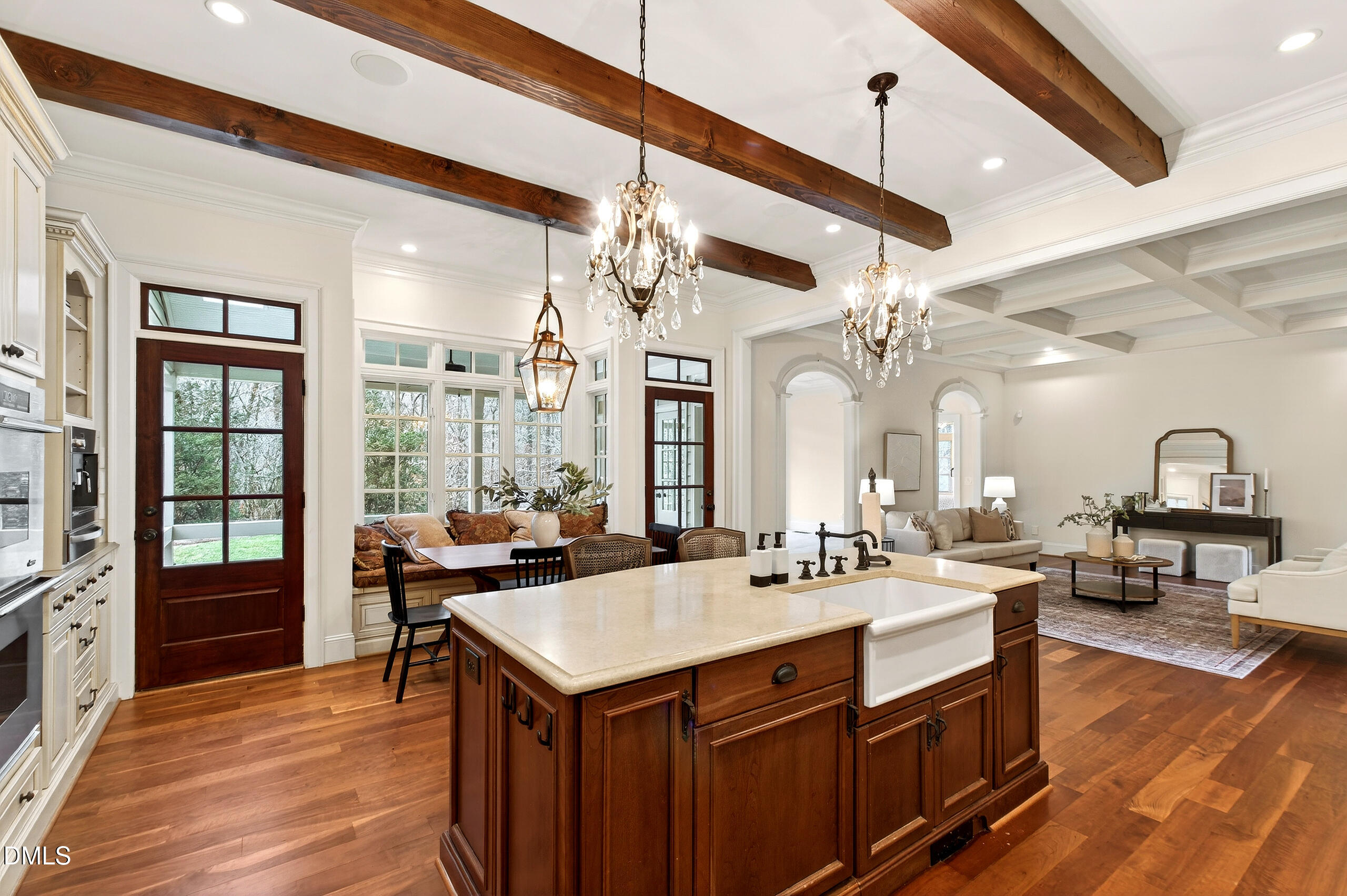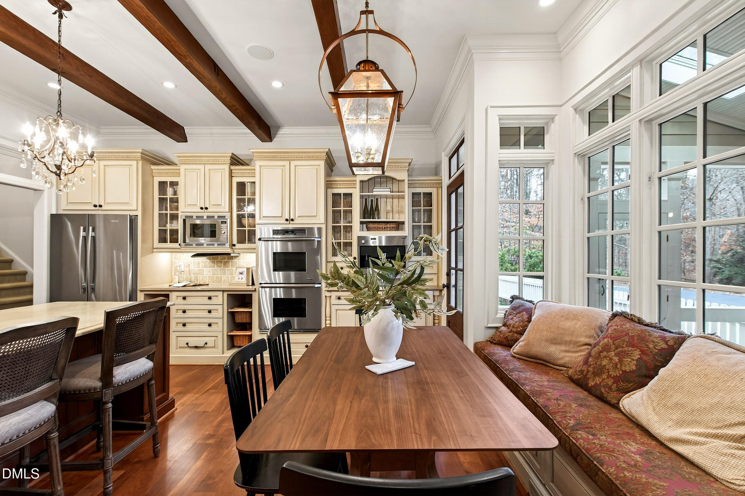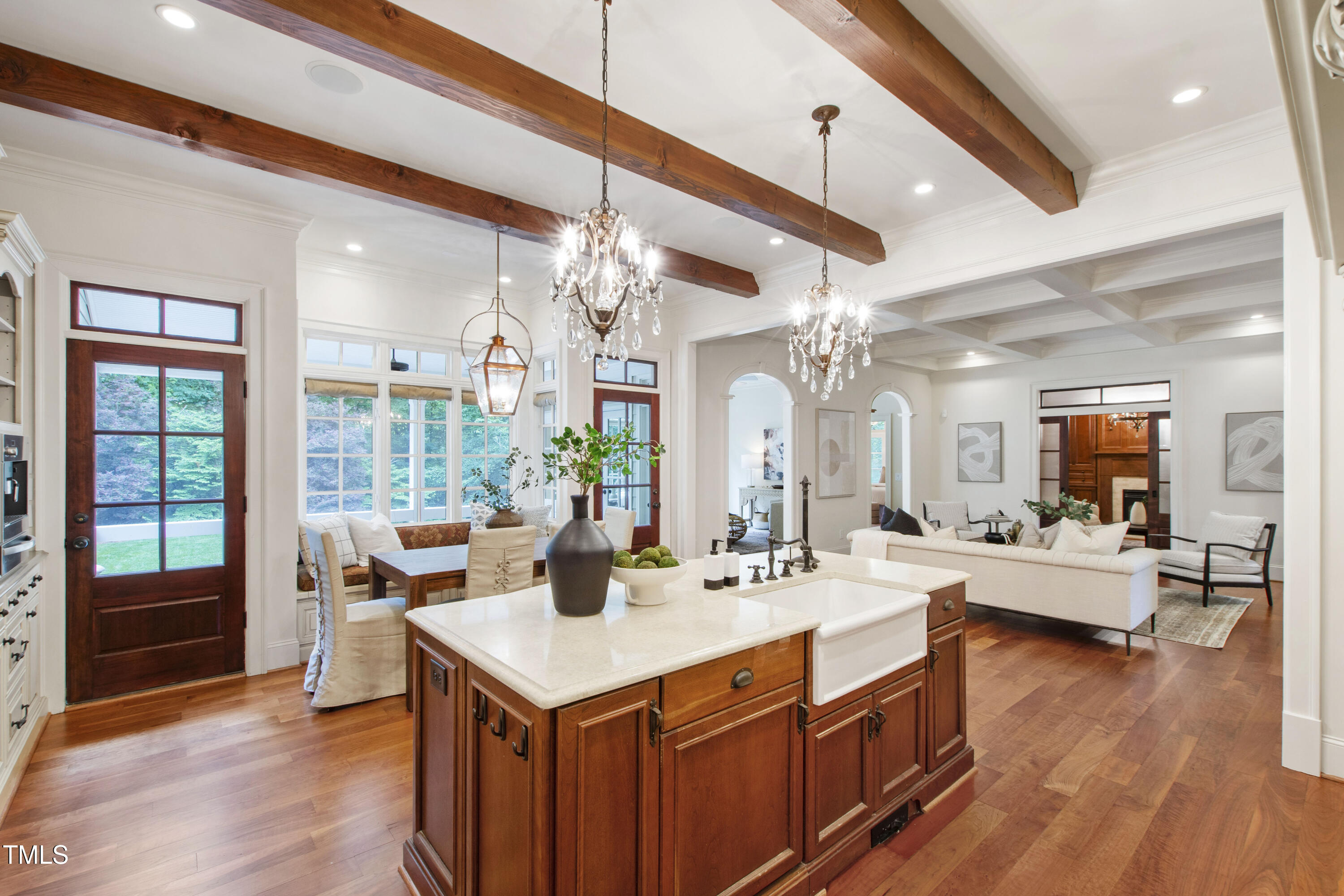 Welcome to an unparalleled custom-built masterpiece, gracefully situated on 3.25 serene acres within The Shire, an exclusive enclave of only nine homesites spanning over 90 wooded acres. Enjoy the tranquility of a private estate, mere minutes - just four miles - from the vibrant heart of Downtown Chapel Hill, UNC Hospital, and Carrboro. Step inside and be captivated by a residence that has been meticulously maintained and thoughtfully designed. Grand vaulted ceilings, dazzling chandeliers, and a magnificent staircase immediately evoke a sense of refined opulence, while an abundance of bright, open windows bathes the interior in natural light. The gourmet kitchen is a chef's delight boasting Silestone countertops, gas range, a double oven, a generous walk-in pantry, a built-in Miele coffee machine, and a discreet butler's pantry - making entertaining an absolute breeze. Memorable gatherings will be a delight to host in the separate formal dining room. A recently added main-level primary suite features vaulted ceilings, private wooded views, an elegant primary bathroom with a walk-in shower, large soaker tub, and an expansive walk-in closet. The cozy sitting room with gas fireplace and plentiful storage possibilities sets the perfect tone for a relaxing oasis. The bright sunroom provides a picturesque vantage point, overlooking your sprawling private lot and the inviting in-ground pool. Upstairs, a second main suite truly defines sanctuary with a cozy fireplace, leading to a bright, luxurious bathroom appointed with both a rejuvenating walk-in shower and a deep soaker tub. Two additional spacious bedrooms and a versatile bonus room offer endless possibilities for recreation, a home theater, a private gym, or additional personalized living space. Outside, the fenced backyard is an entertainer's paradise, complete with a heating-capable pool, and breathtaking private views. Seamless indoor-outdoor living is perfected with a charming screened back porch and an additional covered porch. Beyond its beauty, 131 Lavinia offers unmatched convenience, located directly off Highway 54 for swift access to local hospitals, UNC, Chapel Hill/Carrboro, and major highways. Modern amenities abound, including a comprehensive security system, central vacuum system, a fully integrated home entertainment center encompassing the entire home, a rain-sensor irrigation system, and a reliable backup generator. This residence isn't just a home; it's a lifestyle of sophistication and comfort, meticulously crafted for discerning tastes.