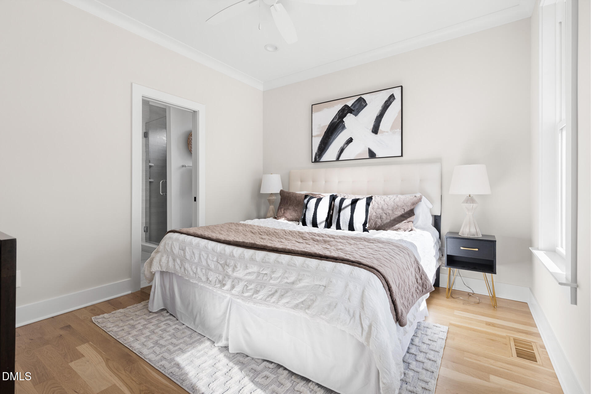 Stunning New Construction in a Prime Location ready for you to move in! Beautifully designed 3-bedroom home features a PRIVATE ENSUITE for each bedroom! Including a spacious primary suite conveniently located on the main floor. Offering one of the most efficient and well-thought-out floor plans available, this 1,200 sq. ft. home feels surprisingly roomy, making it perfect for modern living. Sleek stainless steel appliances to the elegant white oak hardwood floors throughout, no detail has been overlooked. The kitchen is a true standout with luxurious quartz countertops, a stylish backsplash, high-end cabinetry, a range hood, and a refrigerator that conveys with the home. The spa-like bathrooms elevate the entire living experience, with premium finishes in every room. The extra unfinished walk-in storage offers even more potential for customization. Located in one of the most desirable neighborhoods in the city, you'll enjoy close proximity to East Campus, 9th Street, and Downtown, providing easy access to the best the city has to offer. Fenced yard features fresh sod that will pop come spring, while the concrete driveway is already equipped with an electric car charger hookup! This home seamlessly blends modern luxury with efficiency and style.