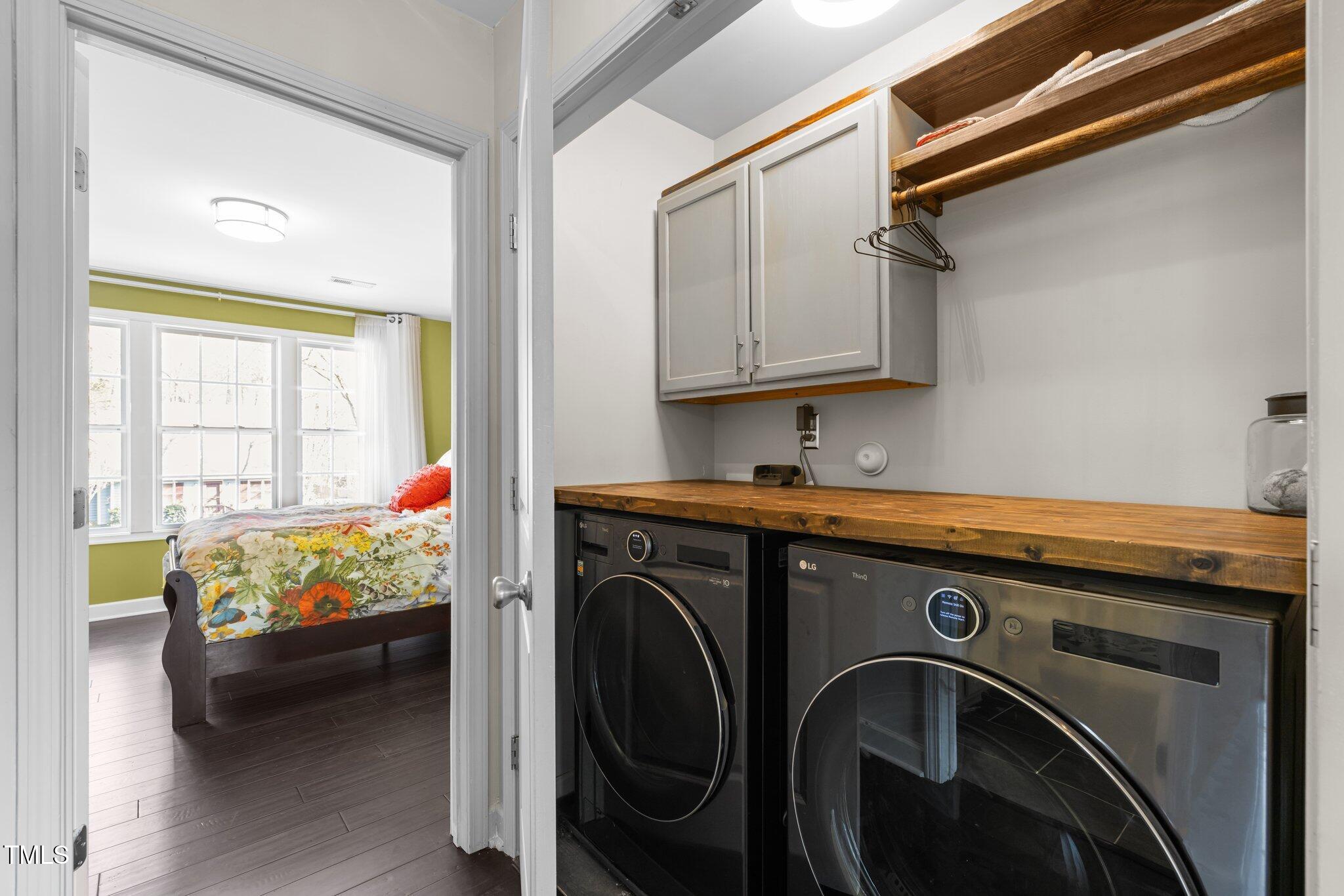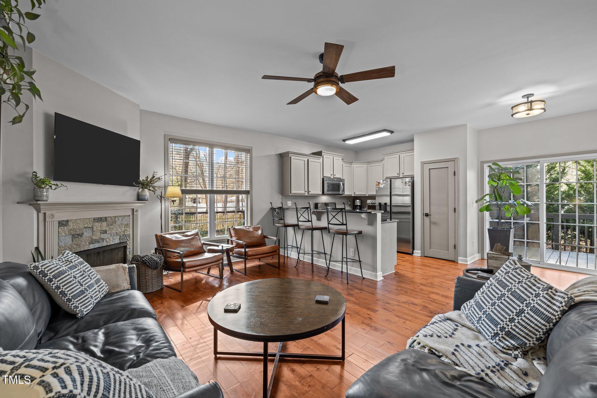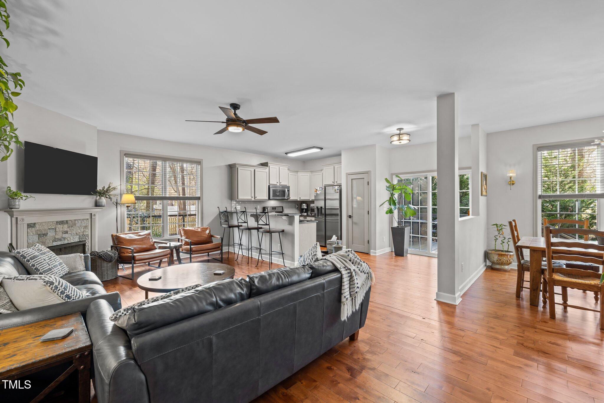Step inside to a welcoming foyer with a stylish chandelier and gorgeous hardwood floors that flow seamlessly throughout both levels--perfect for an allergy-friendly environment.