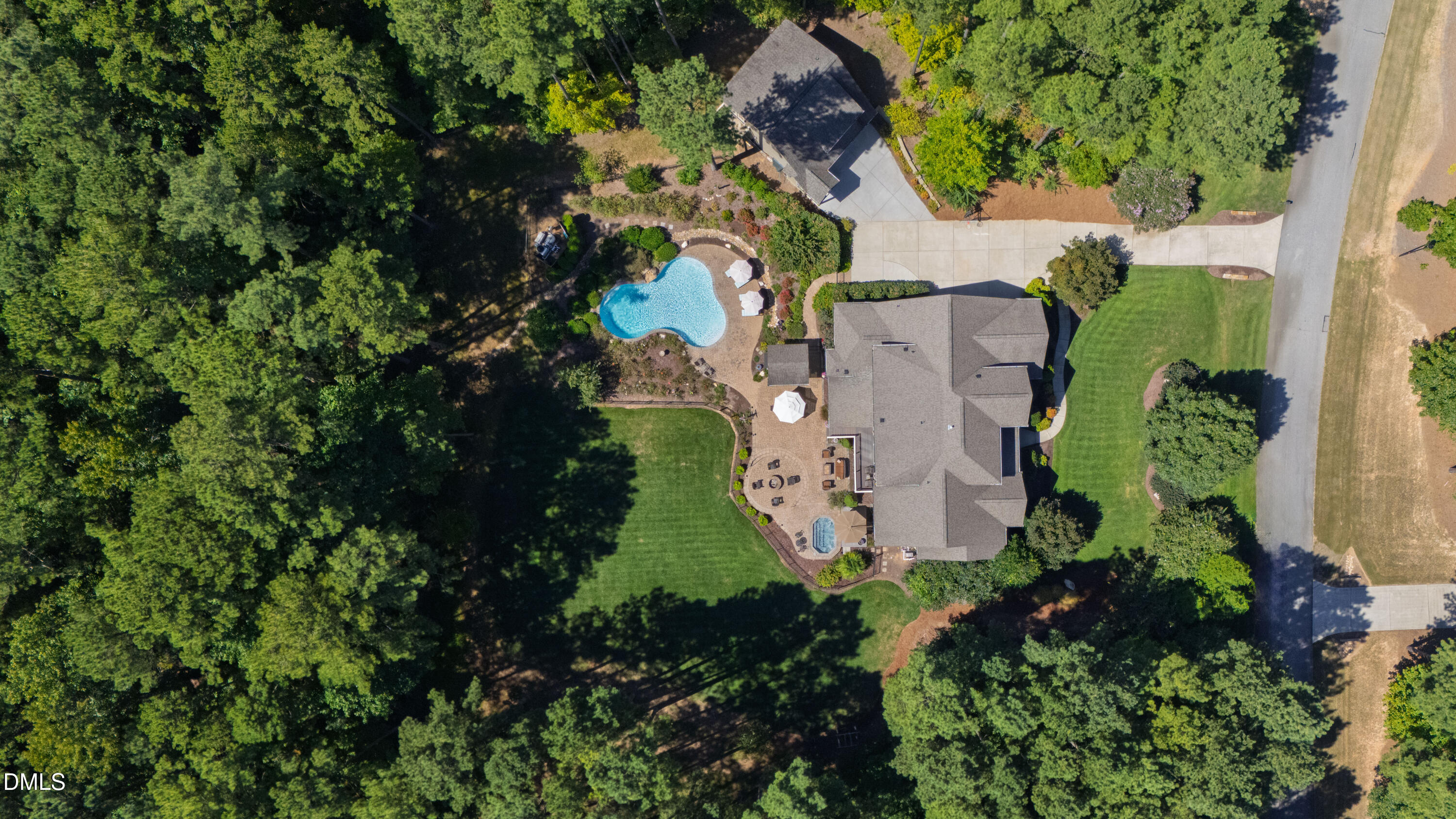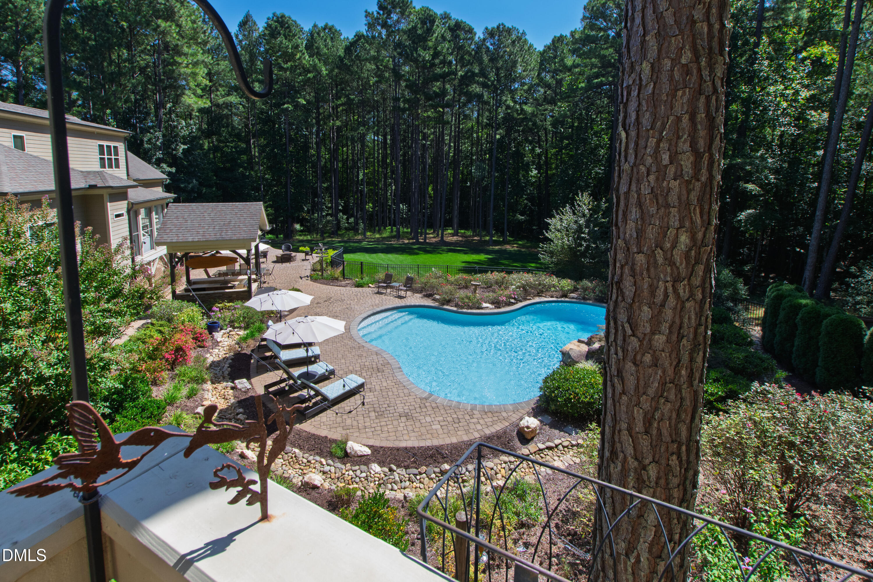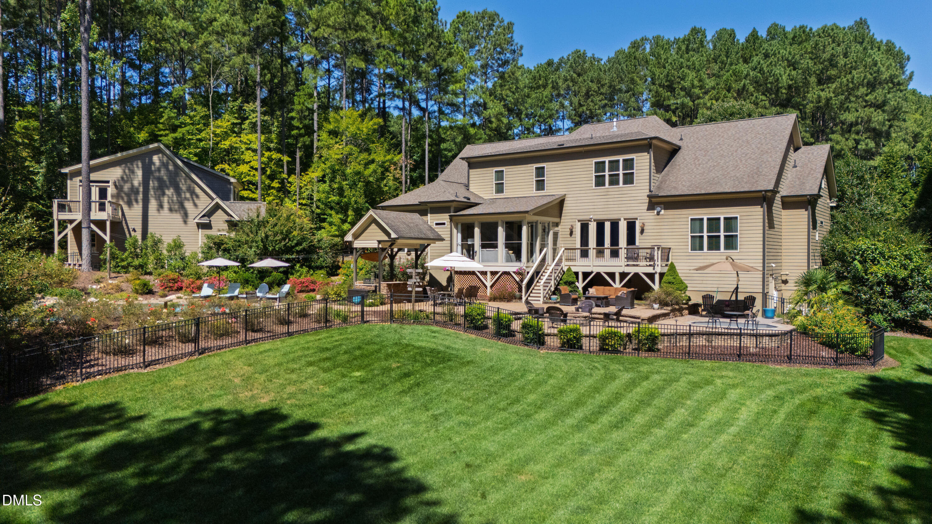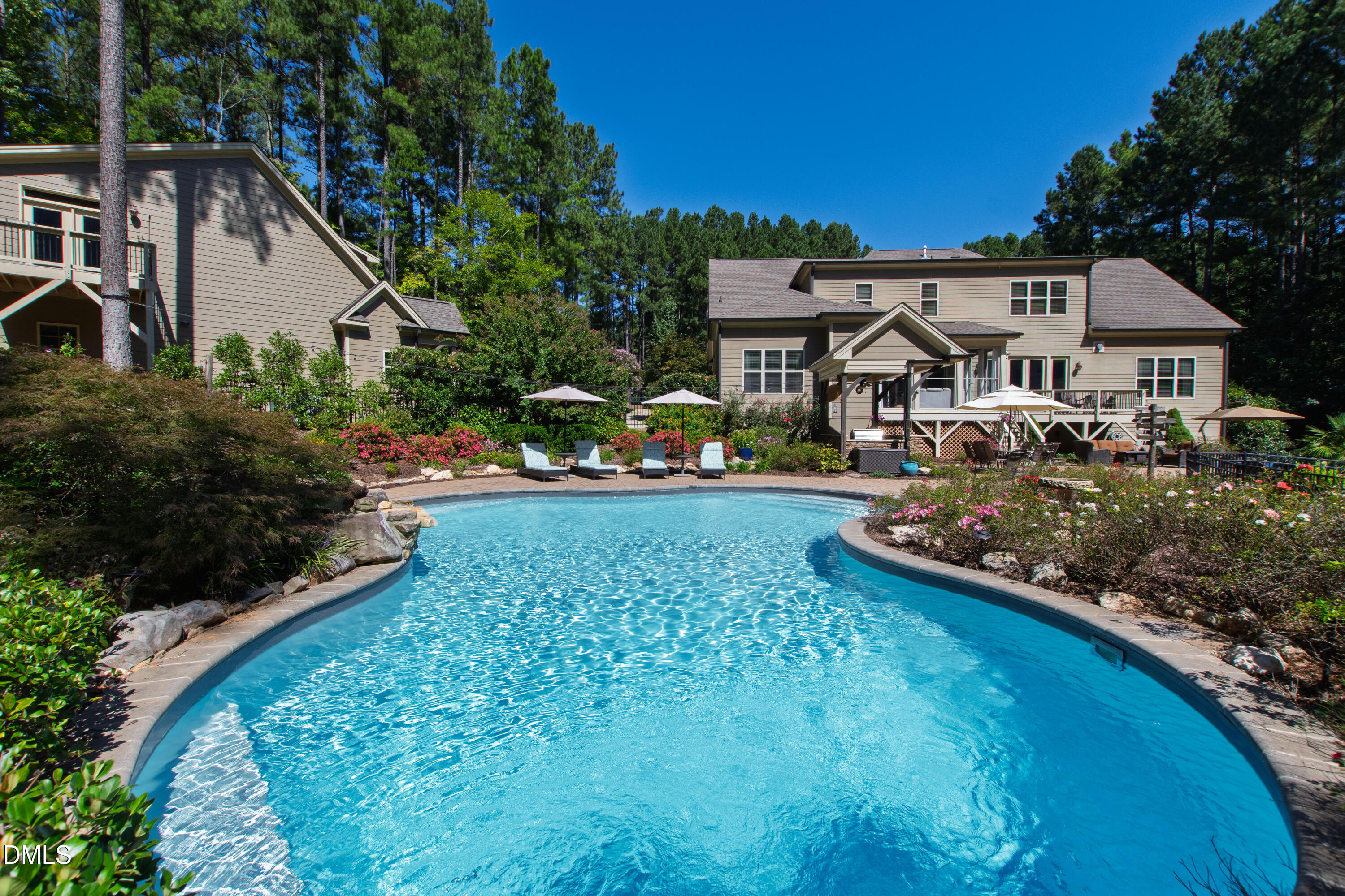 Tucked away on a beautifully landscaped lot that backs onto the tranquil, wooded expanse of Falls Lake State Park, this custom-built home offers luxurious living in a serene setting. Designed for comfort, functionality, and year-round enjoyment, this 5 bedroom, 5.5-bath residence is a rare find and offers a diverse and enjoyable experience year round.