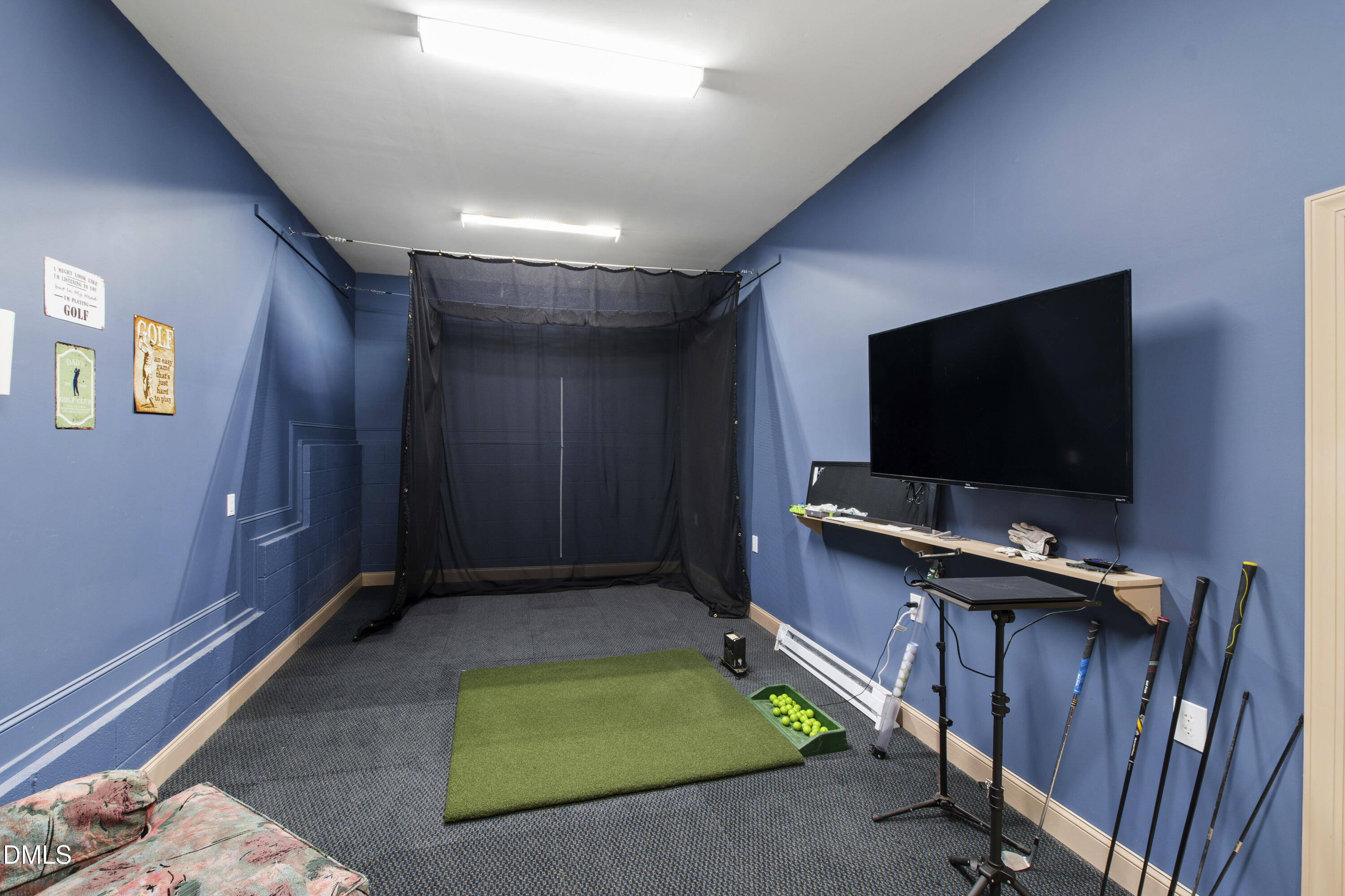 The property also includes a spacious 3-car attached garage, as well as a detached auxiliary building that features a 2-car garage, a state-of-the-art golf simulator, and an 850 sq ft fully equipped apartment (ADU) with a kitchen, living area, bedroom, and full bath.