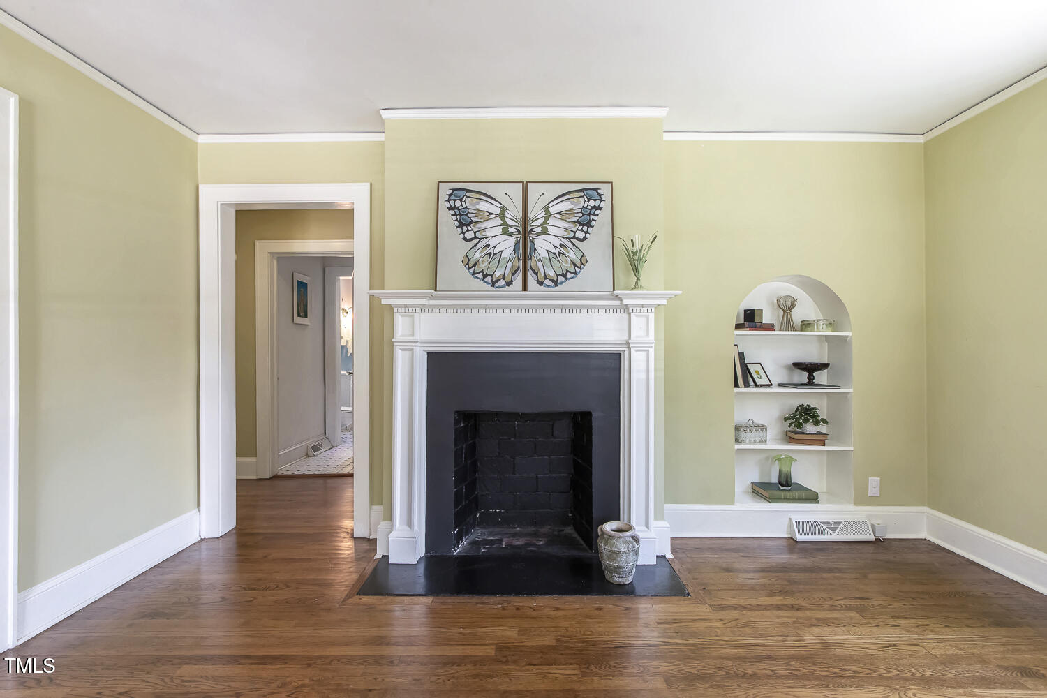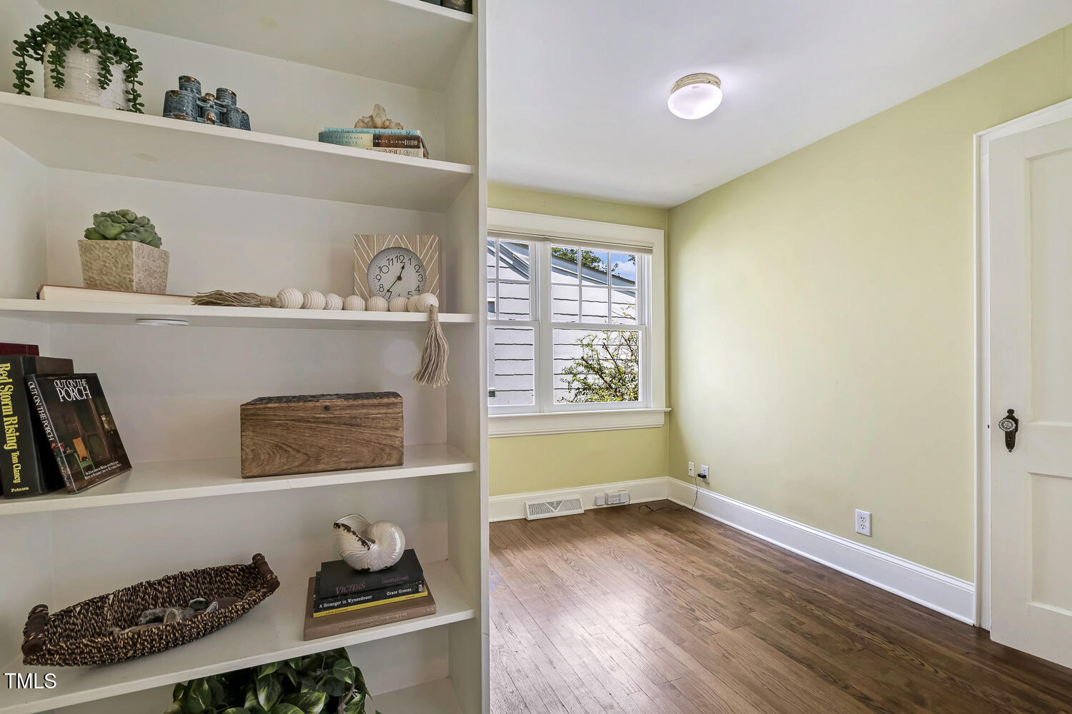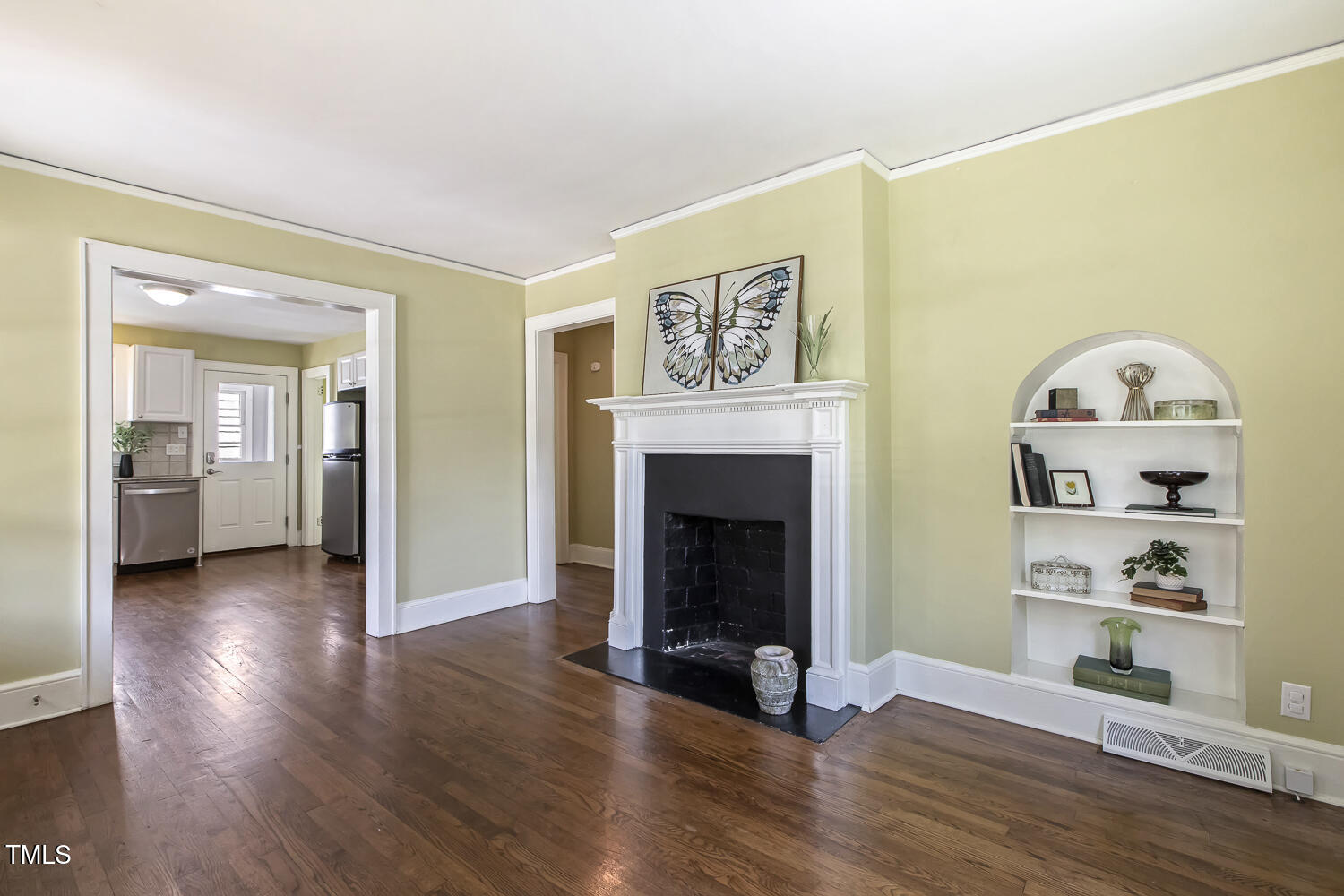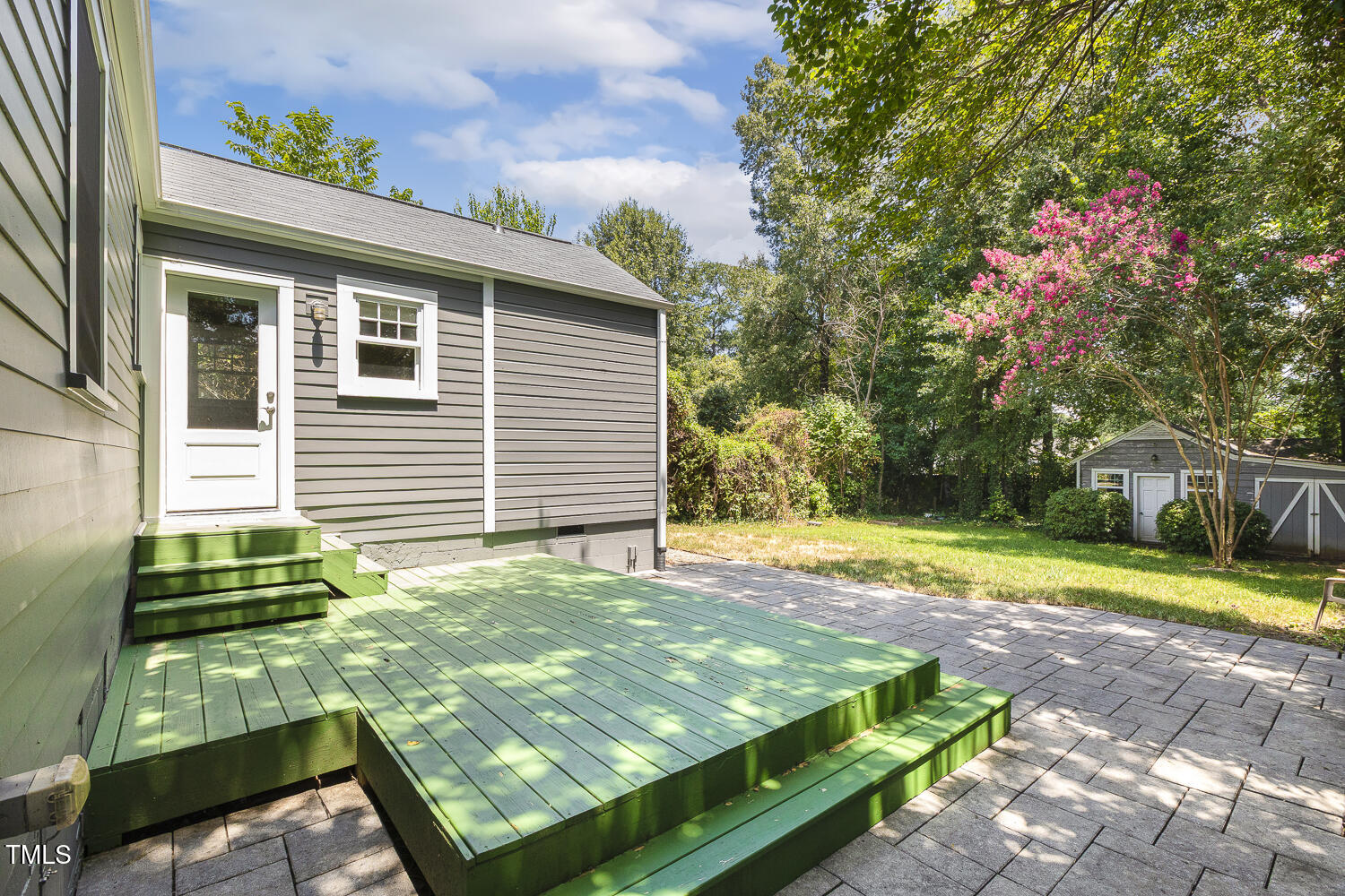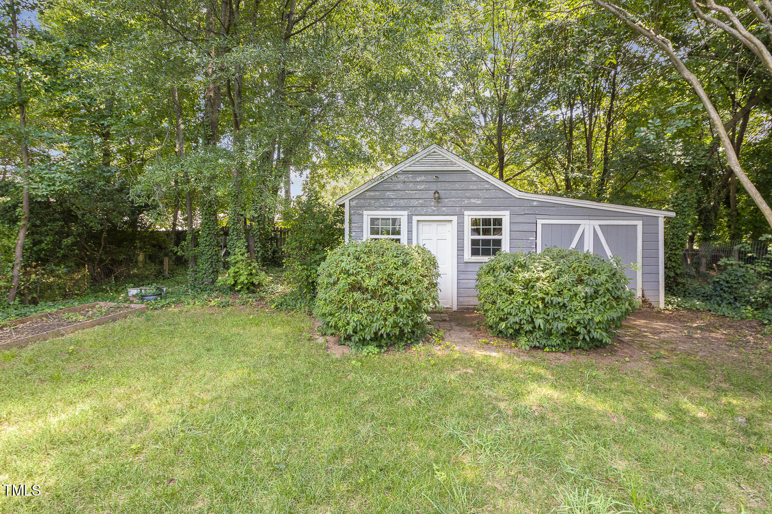 Step back in time to the charm of Roanoke Park with this delightful 1940s bungalow! Nestled in one of Raleigh's most desirable, historic neighborhoods, this home blends vintage character with modern updates. Abundant charm overflows from the updated kitchen to the an cozy living room with an arch-topped built in bookcase and an inviting fireplace (non-functional). A sunlit flex space can easily be used as a dining room or a study - enjoy the oportunity to make this floorplan meet your needs. The primary bedroom has an updated bathroom with a dual vanity and lovely, tiled tub surround. Relax in the expansive backyard or cook out on the deck or patio. The large workshop/shed can be used for storage and hobbies. Vibrant Five Points and Glenwood South are just moments away providing easy access to dining, boutique shopping, and lively entertainment, all while enjoying the tranquility of this cherished community.