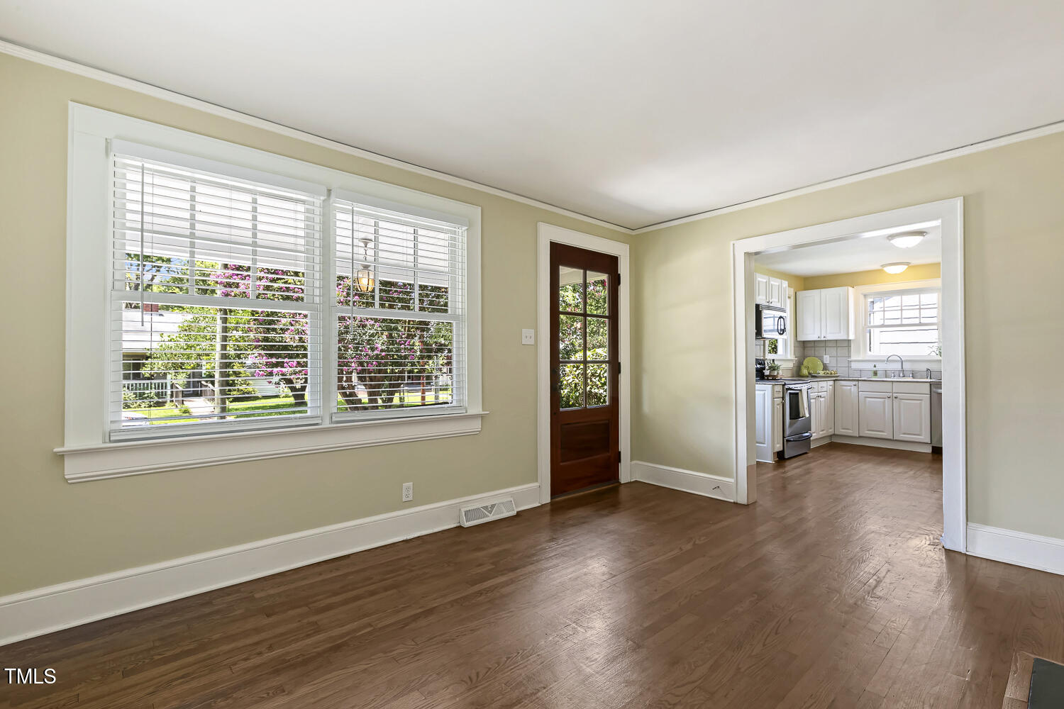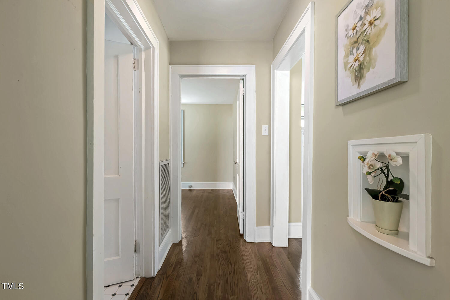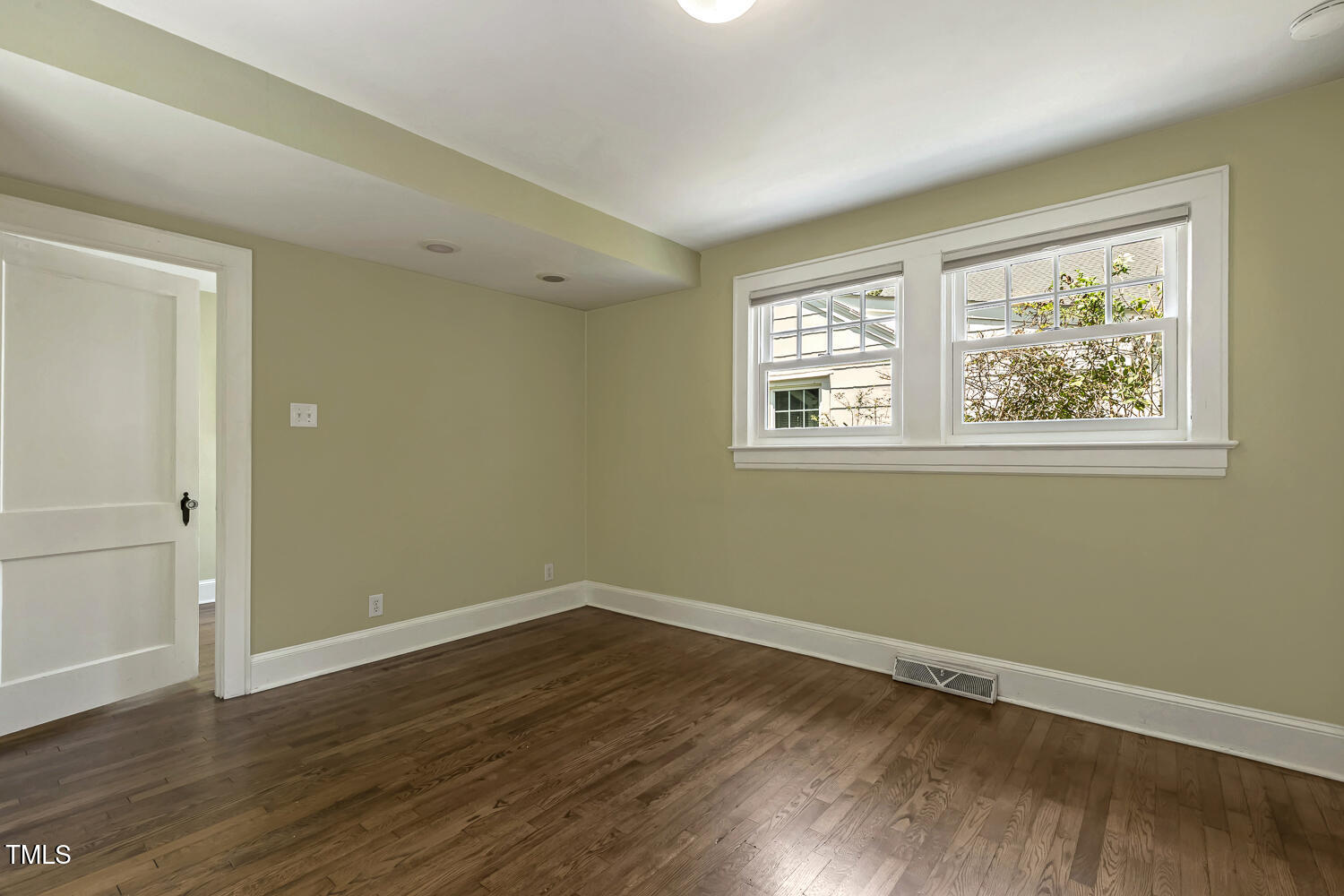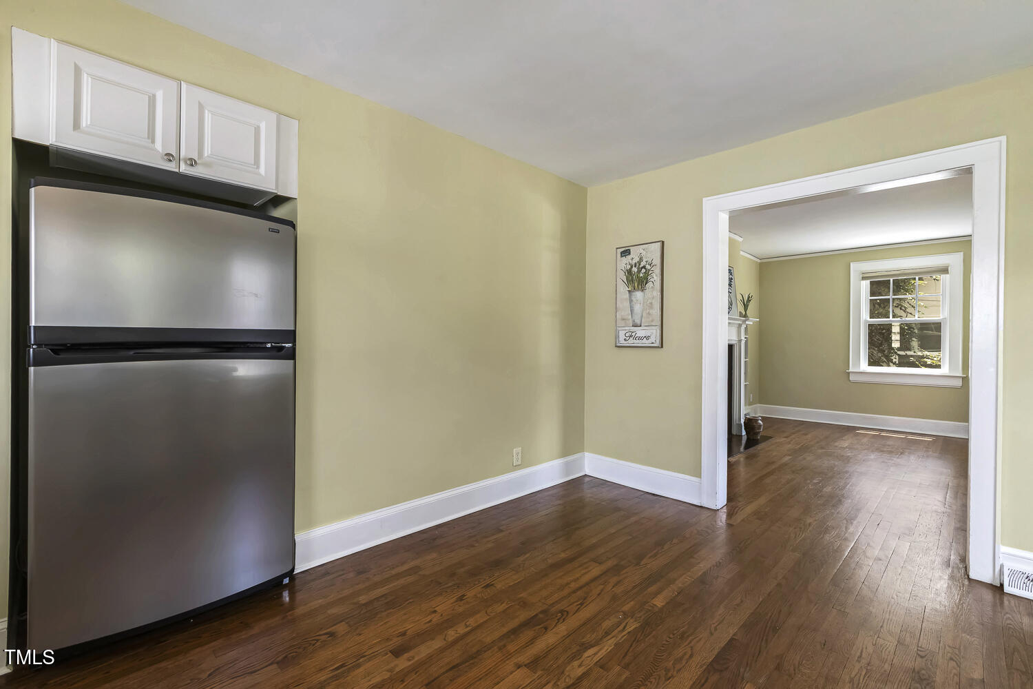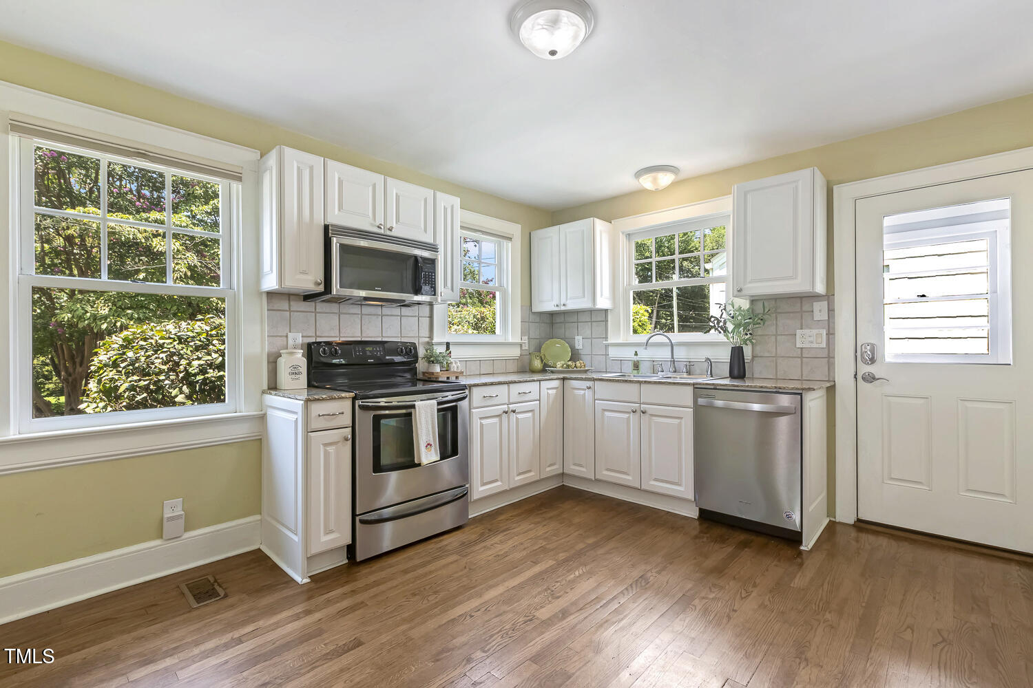 Step back in time to the charm of Roanoke Park with this delightful 1940s bungalow! Nestled in one of Raleigh's most desirable, historic neighborhoods, this home blends vintage character with modern updates. Abundant charm overflows from the updated kitchen to the an cozy living room with an arch-topped built in bookcase and an inviting fireplace (non-functional). A sunlit flex space can easily be used as a dining room or a study - enjoy the oportunity to make this floorplan meet your needs. The primary bedroom has an updated bathroom with a dual vanity and lovely, tiled tub surround. Relax in the expansive backyard or cook out on the deck or patio. The large workshop/shed can be used for storage and hobbies. Vibrant Five Points and Glenwood South are just moments away providing easy access to dining, boutique shopping, and lively entertainment, all while enjoying the tranquility of this cherished community.