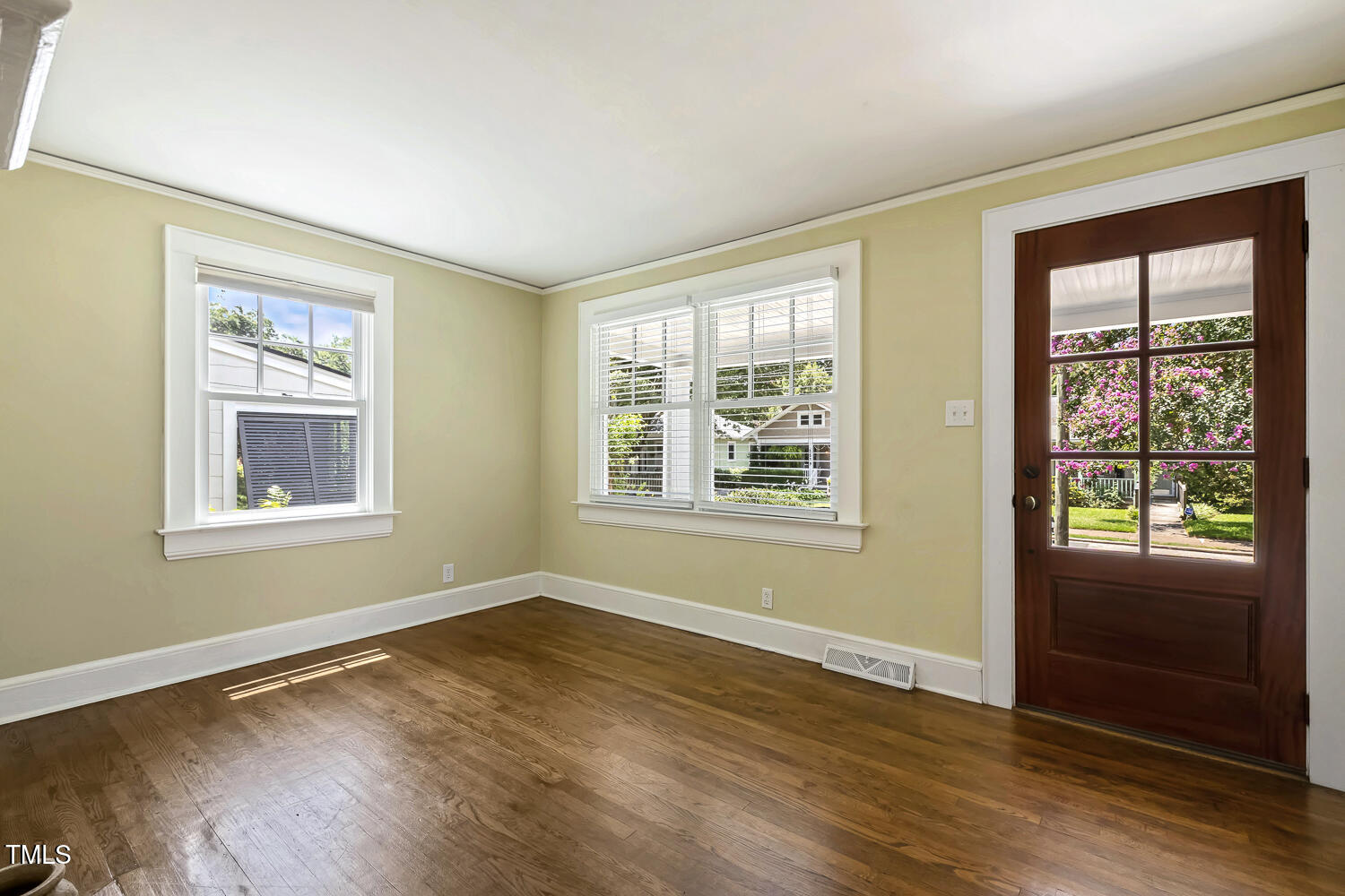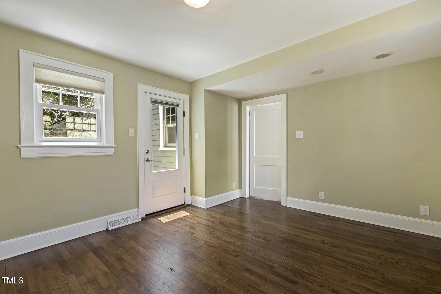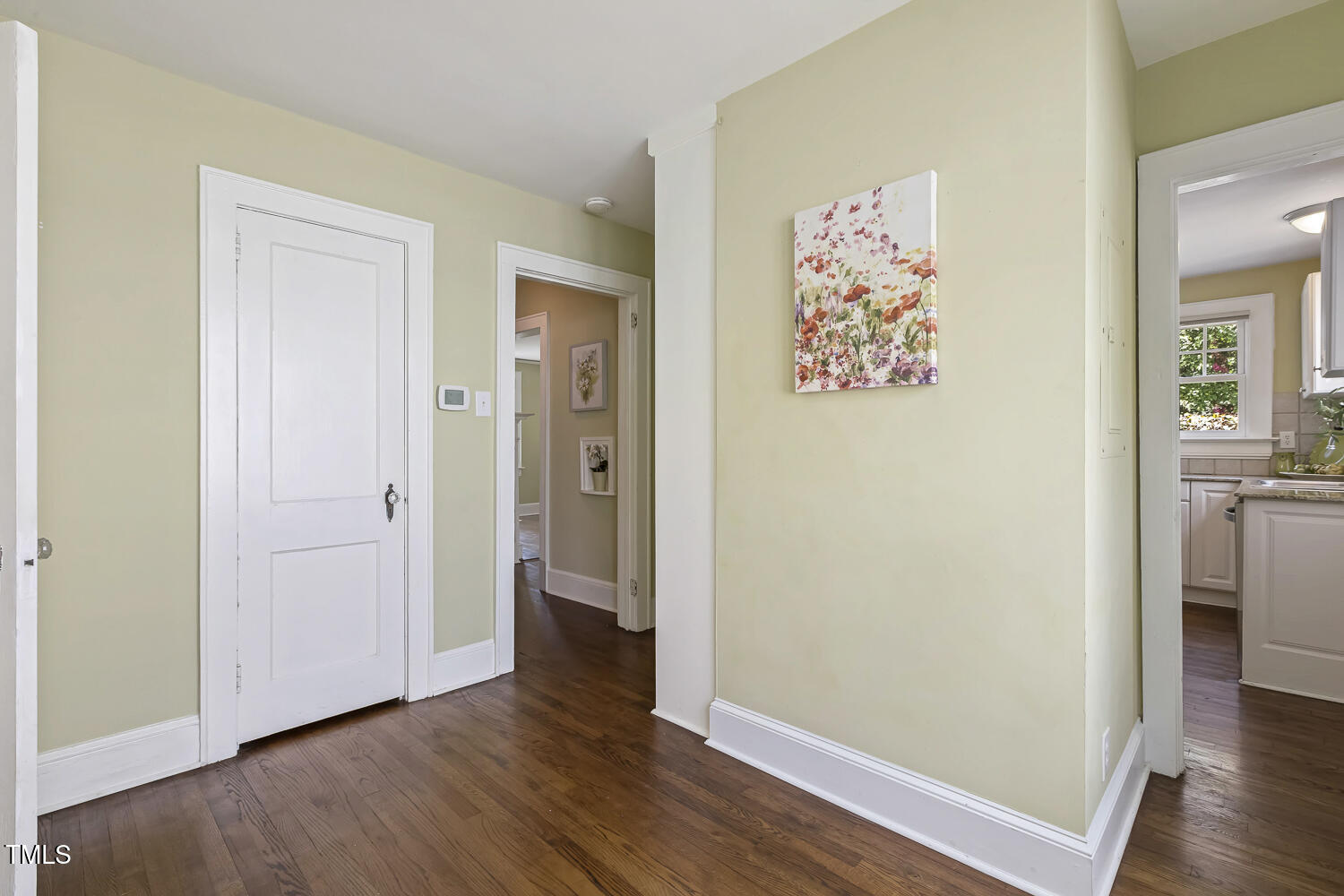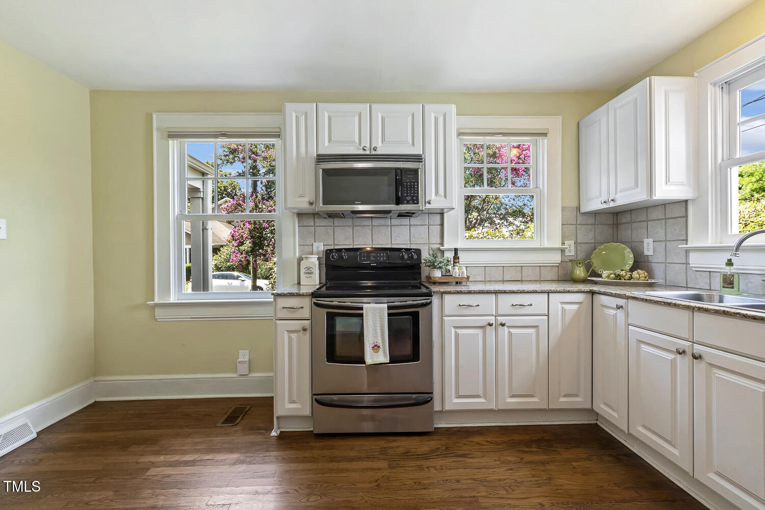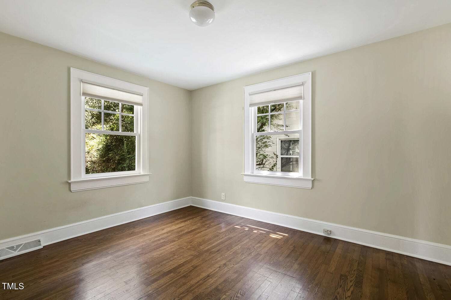 Step back in time to the charm of Roanoke Park with this delightful 1940s bungalow! Nestled in one of Raleigh's most desirable, historic neighborhoods, this home blends vintage character with modern updates. Abundant charm overflows from the updated kitchen to the an cozy living room with an arch-topped built in bookcase and an inviting fireplace (non-functional). A sunlit flex space can easily be used as a dining room or a study - enjoy the oportunity to make this floorplan meet your needs. The primary bedroom has an updated bathroom with a dual vanity and lovely, tiled tub surround. Relax in the expansive backyard or cook out on the deck or patio. The large workshop/shed can be used for storage and hobbies. Vibrant Five Points and Glenwood South are just moments away providing easy access to dining, boutique shopping, and lively entertainment, all while enjoying the tranquility of this cherished community.