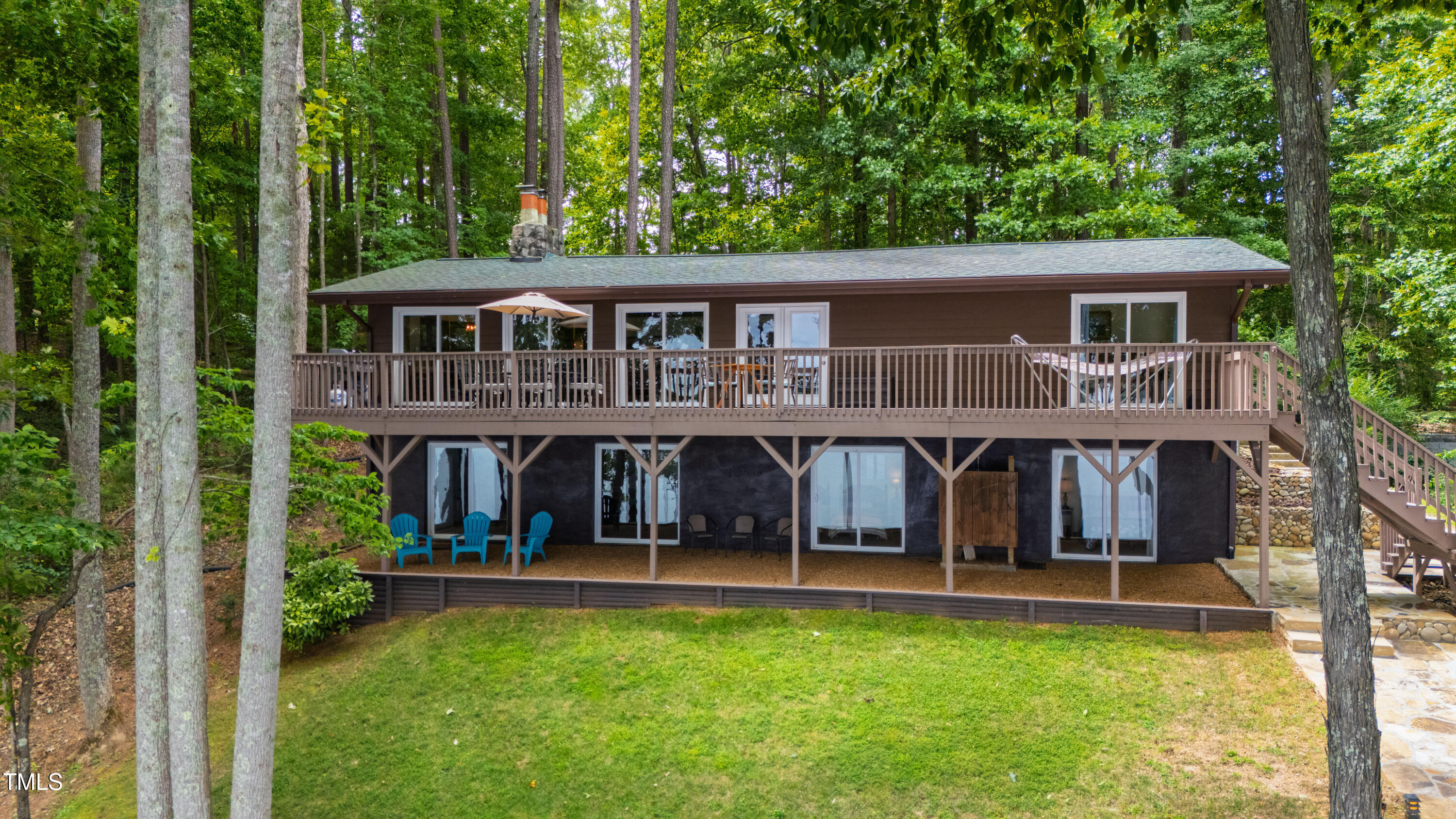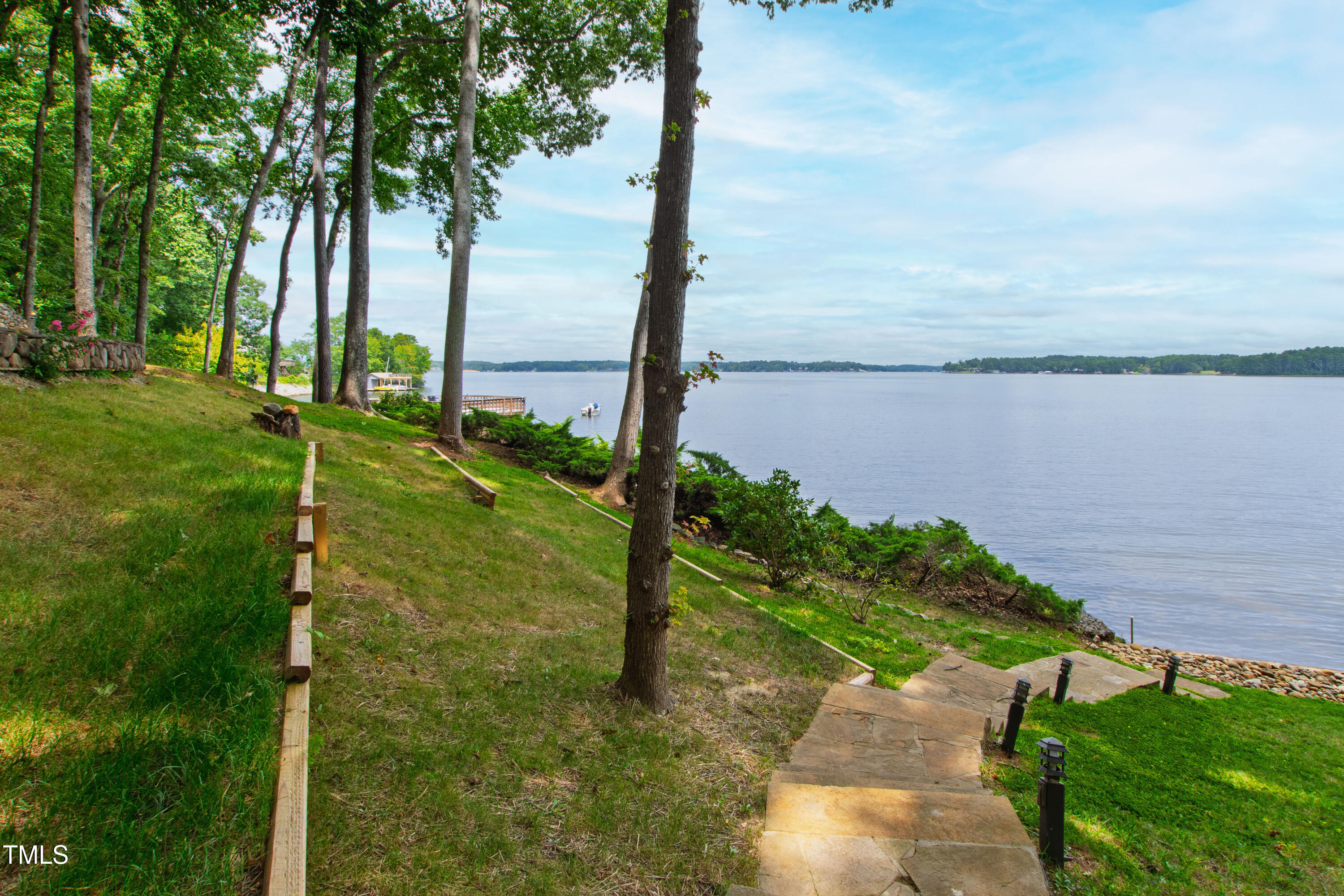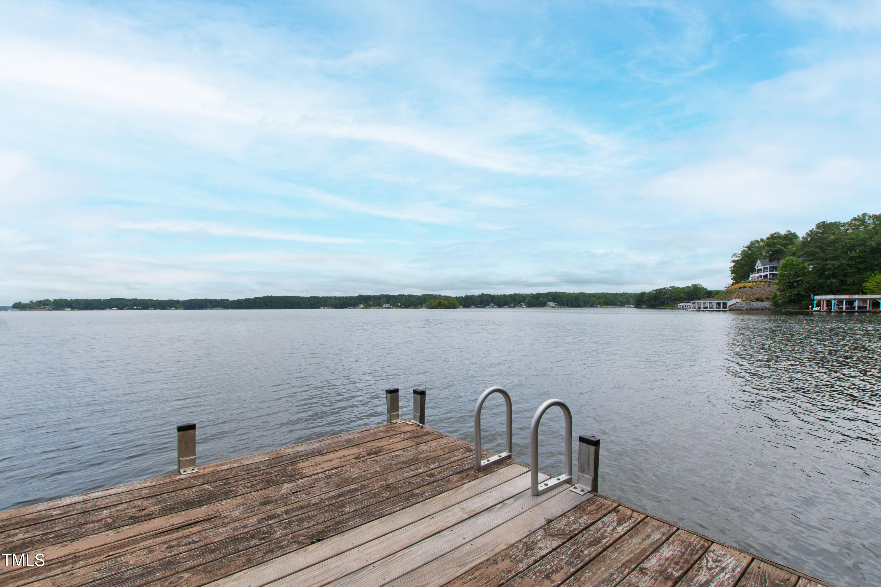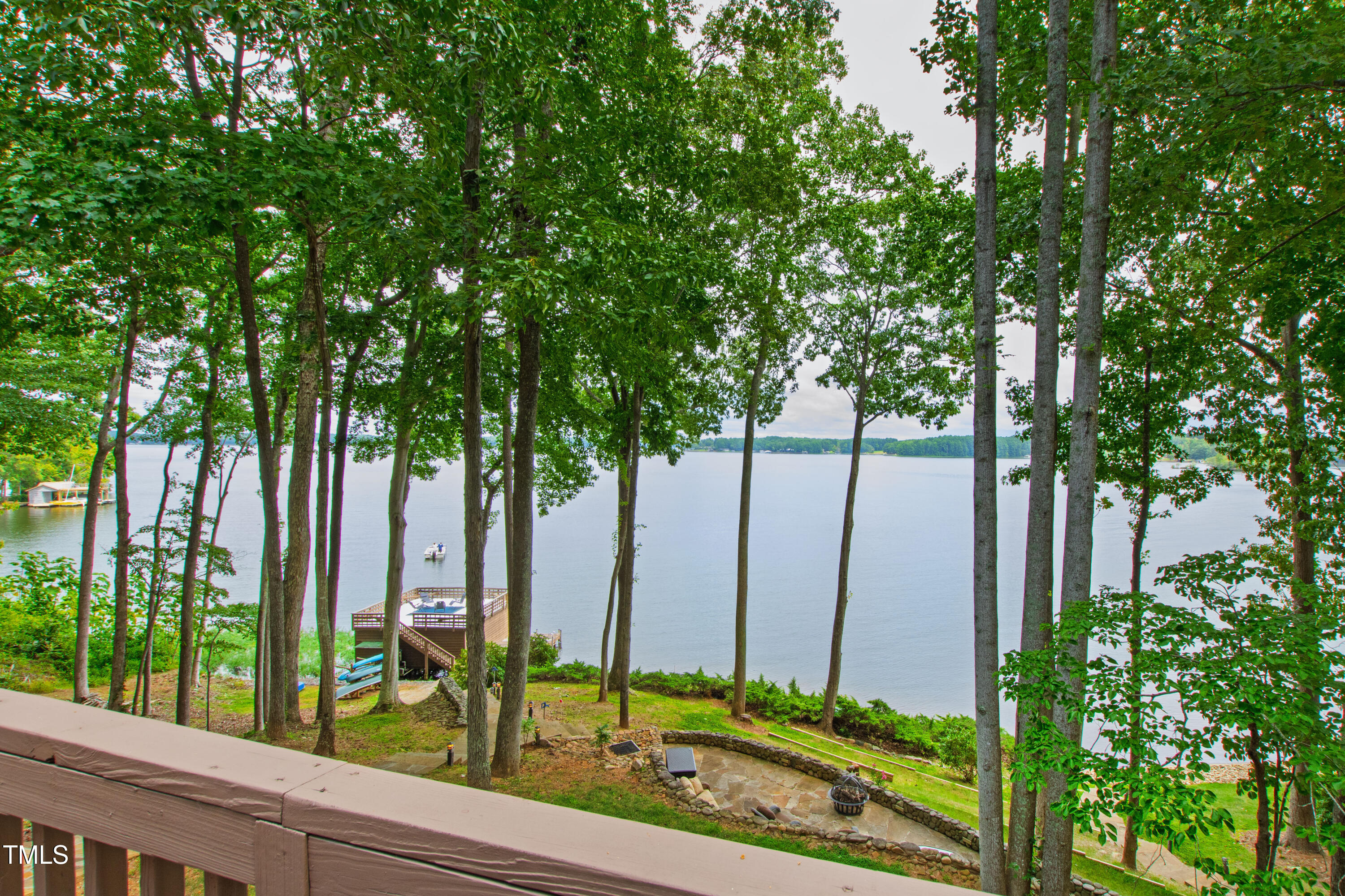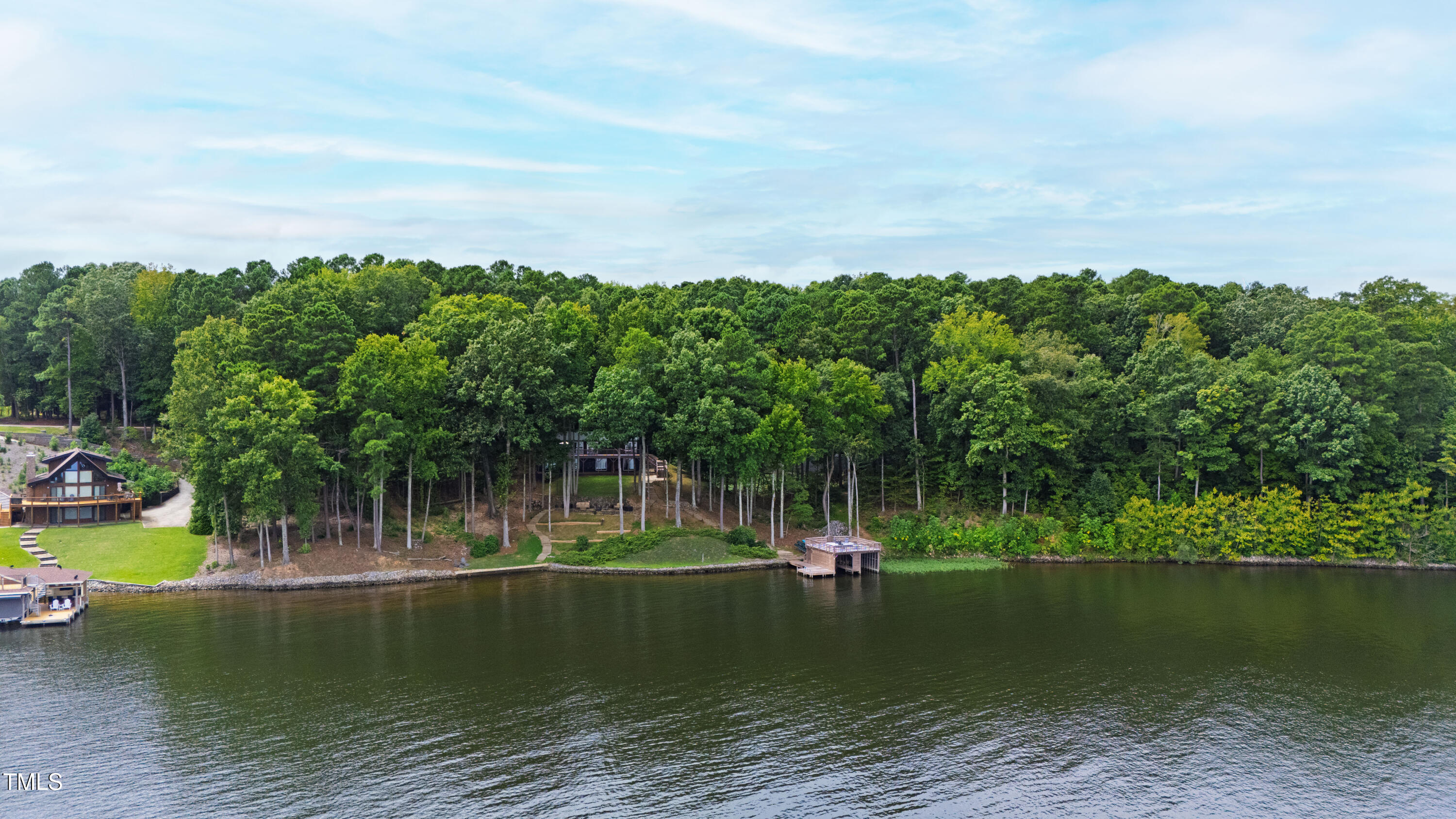 Experience the potential of this truly unique lakeside-living opportunity. Whether you seek a full-time residence in an utterly idyllic location, a vacation escape with unmatched privacy, or a one-of-a-kind investment with endless future build potential, 154 N Triton Drive delivers on every front. Set in the charming yet convenient town of Littleton, North Carolina, this 4 bedroom Lake Gaston lodge on the lake's southeast side is the perfect waterfront home. With 200+ feet of bulkhead, main lake, deep water frontage, the home is also flanked by two approved building lots each with permitted in-ground septic systems and rip rap. These lots are ready to build three-bedroom houses to create a private family compound, or they could remain as a wooded 2+ acre retreat with 700 feet of unobstructed main lake frontage on the widest part of the lake - a rarity for Lake Gaston properties. The main level of this cabin-inspired home boasts a desirable open floor-plan, with architecturally appealing, vaulted, wood-beamed ceilings, pristine hardwood floors throughout, and a spectacular wall of windows allowing for endless natural light and 24/7 lake views. A gourmet, customized kitchen with oversized island and recently updated stainless steel appliances perfectly matches the overall aesthetic of the property. The kitchen sits adjacent to the utmost inviting living room space, complete with a charming stone-work, wood-burning fireplace which dually splits the space from the cozy dining room, perfect for family dinners of all sizes. The primary suite offers serene lake views and private comfort, while an additional bedroom on this level is ideally situated for flexible guest or family use. The lower level basement is anchored in a must-have bonus space, the ideal landing pad following a sun-filled day out on the water. Two additional lake-facing bedrooms feature stunning panoramic views, creating a true retreat for guests or family members. A generously sized laundry room with full size washer and dryer, utility sink, storage shelves and beverage refrigerator finish off this space. As you step outside, you're greeted by unparalleled main lake views from the abode's stunning back deck, stretching the length of the home - a space prime for morning coffees or evening grilling. Tiered landscaping and a thoughtfully designed stone-lit pathway guide you through the terraced backyard, where cozy gathering areas--like a fire pit and stone patio--bring function and serenity to this outdoor sanctuary. Once you reach the 8 foot-deep water, a generously-sized dock awaits, boasting dual boat slips with all-weather coverage and an upper deck perfect for catching rays and enjoying the stunning North Carolina sunsets. Best of all, the home is located at the end of a quiet cul de sac just minutes from marinas, grocery stores and waterfront restaurants, with Eatons Ferry Bridge within close proximity allowing for quick and opportune access across the lake. Triton Point Community offers two community boat docks which are just yards away from the property and provide additional, effortless access to the water.