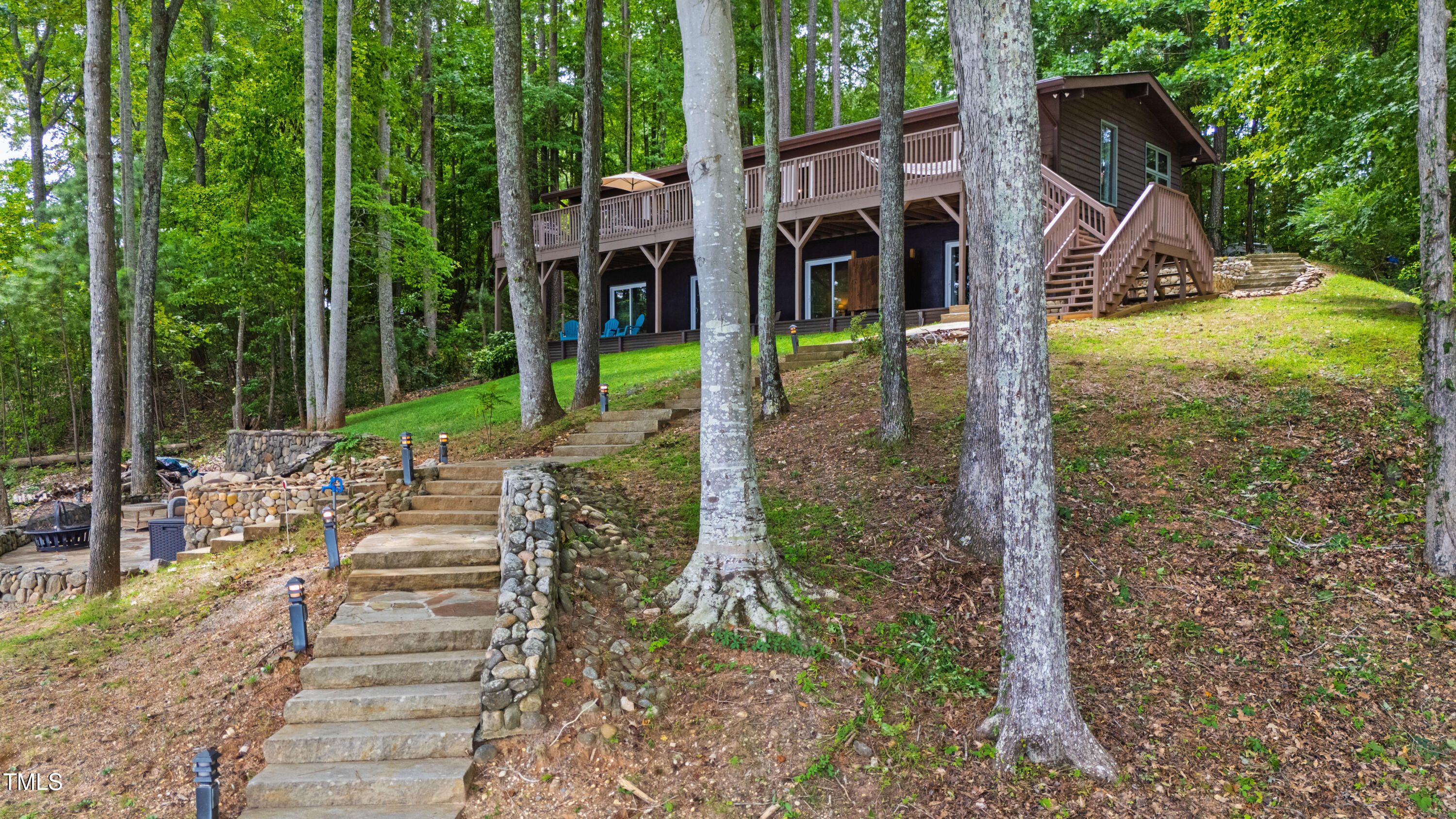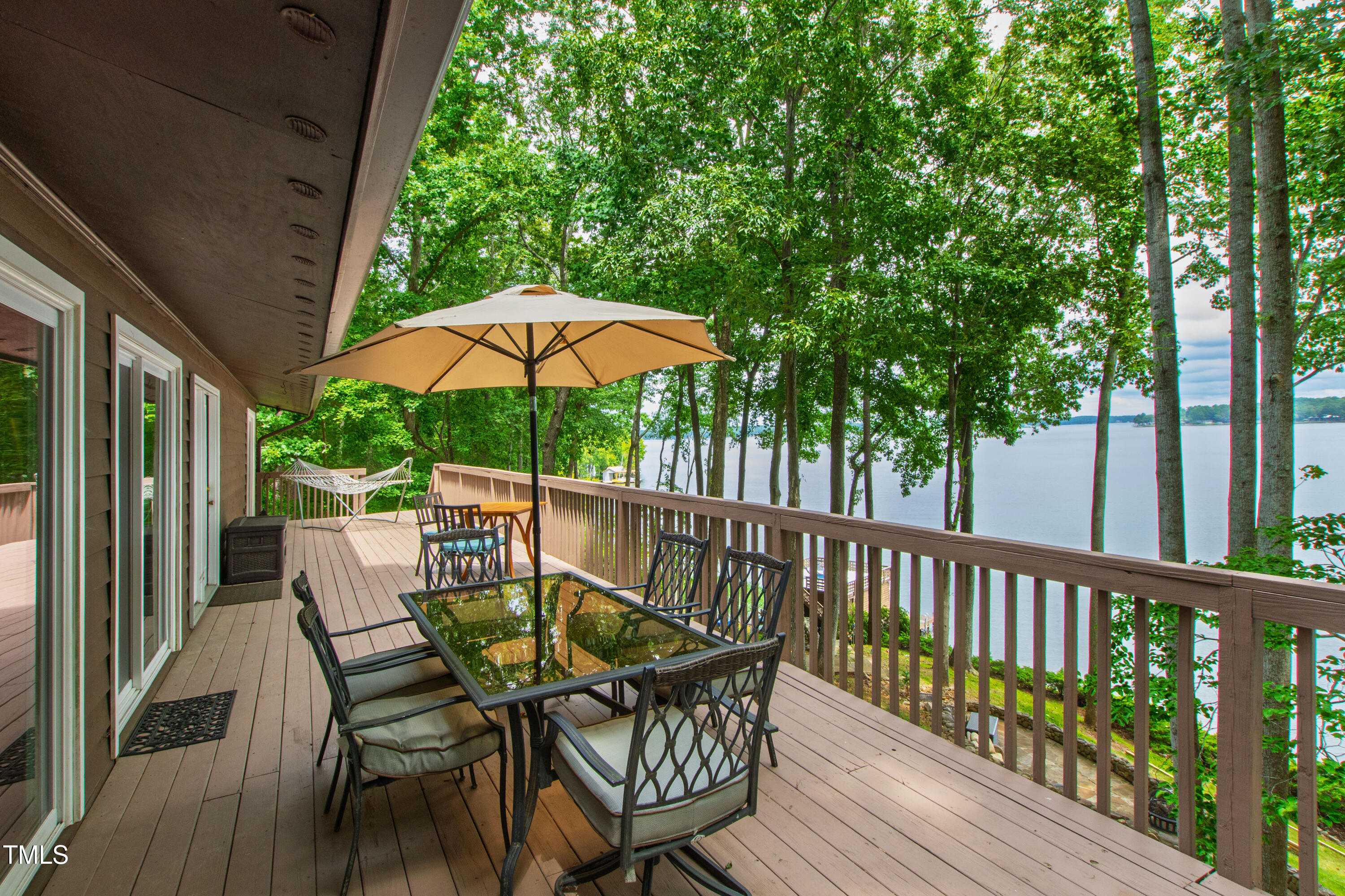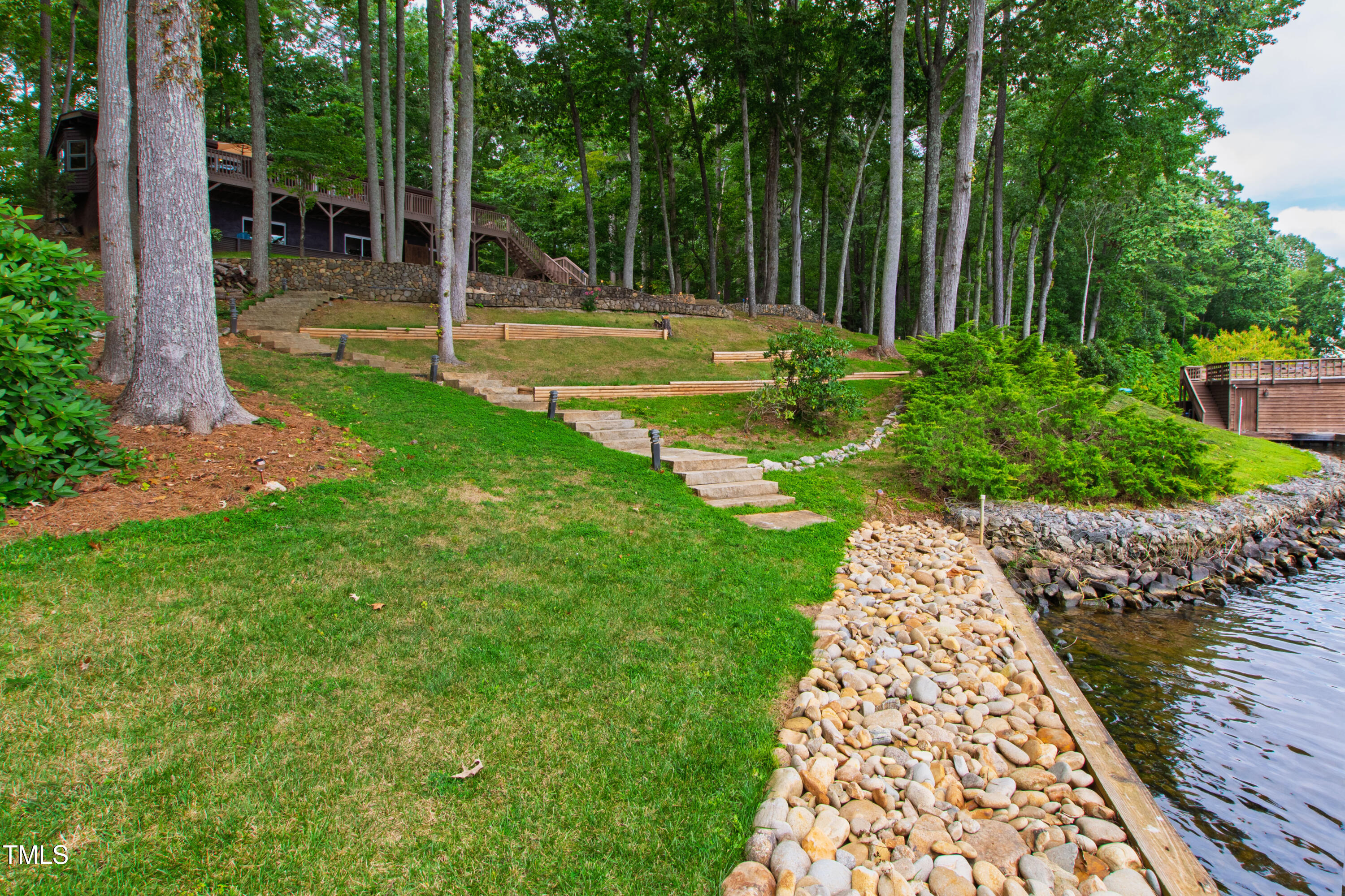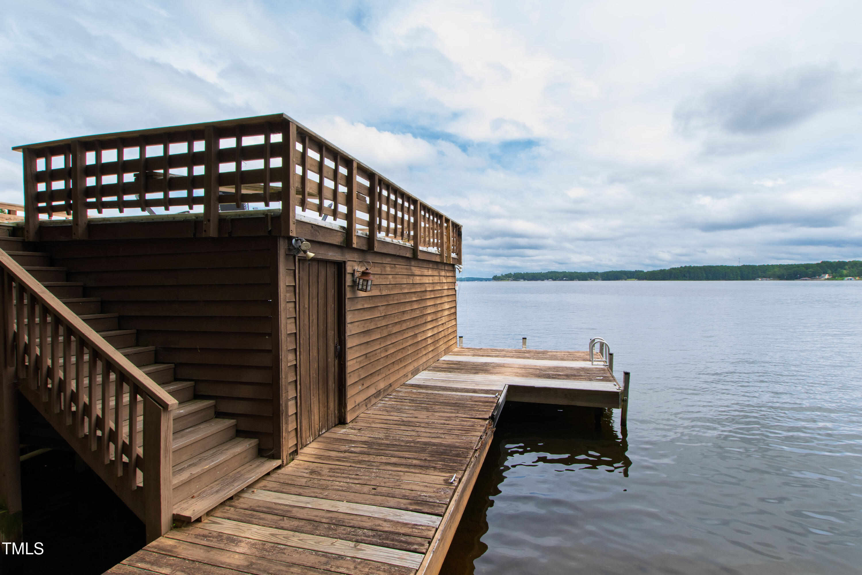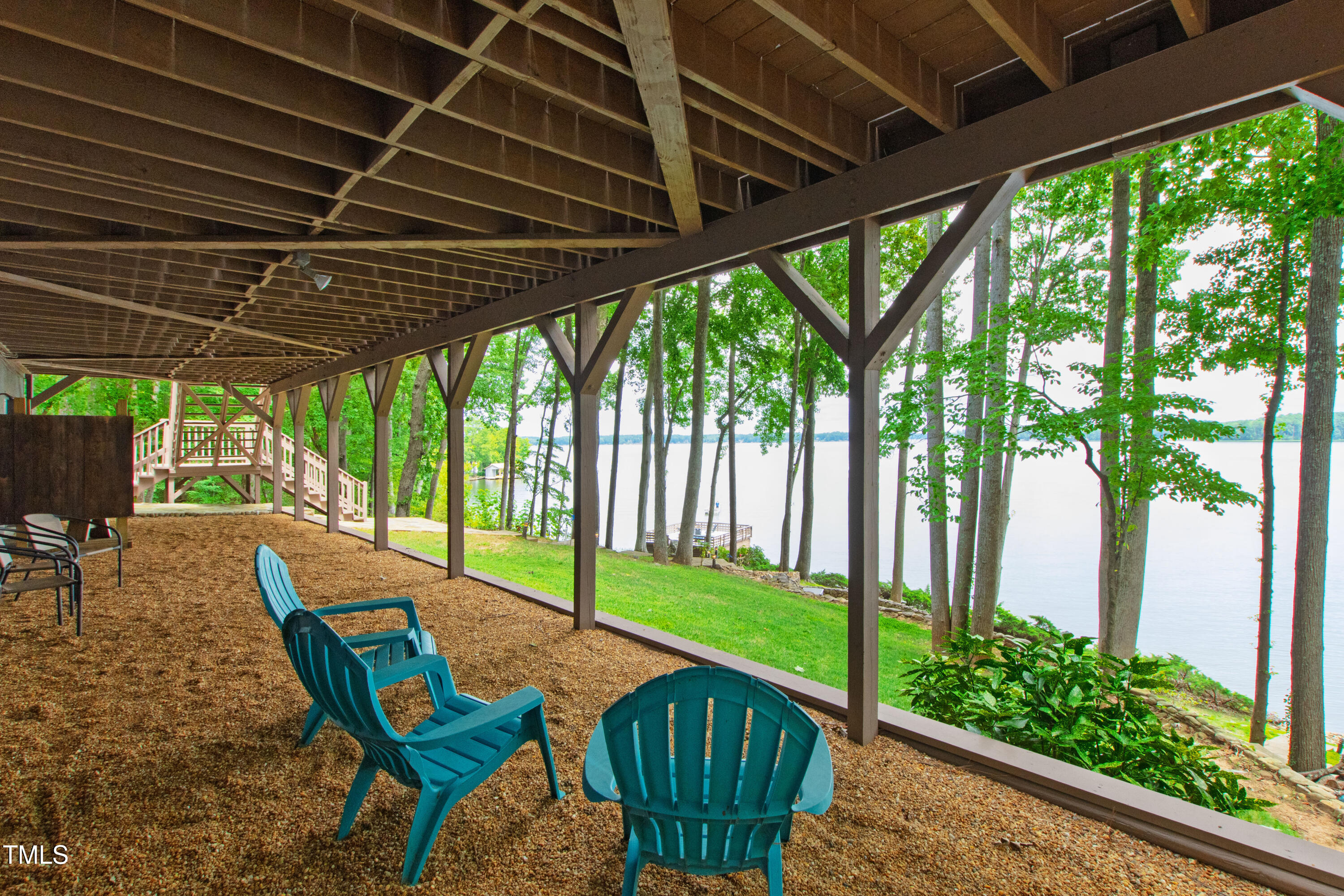 Experience the potential of this truly unique lakeside-living opportunity. Whether you seek a full-time residence in an utterly idyllic location, a vacation escape with unmatched privacy, or a one-of-a-kind investment with endless future build potential, 154 N Triton Drive delivers on every front. Set in the charming yet convenient town of Littleton, North Carolina, this 4 bedroom Lake Gaston lodge on the lake's southeast side is the perfect waterfront home. With 200+ feet of bulkhead, main lake, deep water frontage, the home is also flanked by two approved building lots each with permitted in-ground septic systems and rip rap. These lots are ready to build three-bedroom houses to create a private family compound, or they could remain as a wooded 2+ acre retreat with 700 feet of unobstructed main lake frontage on the widest part of the lake - a rarity for Lake Gaston properties. The main level of this cabin-inspired home boasts a desirable open floor-plan, with architecturally appealing, vaulted, wood-beamed ceilings, pristine hardwood floors throughout, and a spectacular wall of windows allowing for endless natural light and 24/7 lake views. A gourmet, customized kitchen with oversized island and recently updated stainless steel appliances perfectly matches the overall aesthetic of the property. The kitchen sits adjacent to the utmost inviting living room space, complete with a charming stone-work, wood-burning fireplace which dually splits the space from the cozy dining room, perfect for family dinners of all sizes. The primary suite offers serene lake views and private comfort, while an additional bedroom on this level is ideally situated for flexible guest or family use. The lower level basement is anchored in a must-have bonus space, the ideal landing pad following a sun-filled day out on the water. Two additional lake-facing bedrooms feature stunning panoramic views, creating a true retreat for guests or family members. A generously sized laundry room with full size washer and dryer, utility sink, storage shelves and beverage refrigerator finish off this space. As you step outside, you're greeted by unparalleled main lake views from the abode's stunning back deck, stretching the length of the home - a space prime for morning coffees or evening grilling. Tiered landscaping and a thoughtfully designed stone-lit pathway guide you through the terraced backyard, where cozy gathering areas--like a fire pit and stone patio--bring function and serenity to this outdoor sanctuary. Once you reach the 8 foot-deep water, a generously-sized dock awaits, boasting dual boat slips with all-weather coverage and an upper deck perfect for catching rays and enjoying the stunning North Carolina sunsets. Best of all, the home is located at the end of a quiet cul de sac just minutes from marinas, grocery stores and waterfront restaurants, with Eatons Ferry Bridge within close proximity allowing for quick and opportune access across the lake. Triton Point Community offers two community boat docks which are just yards away from the property and provide additional, effortless access to the water.