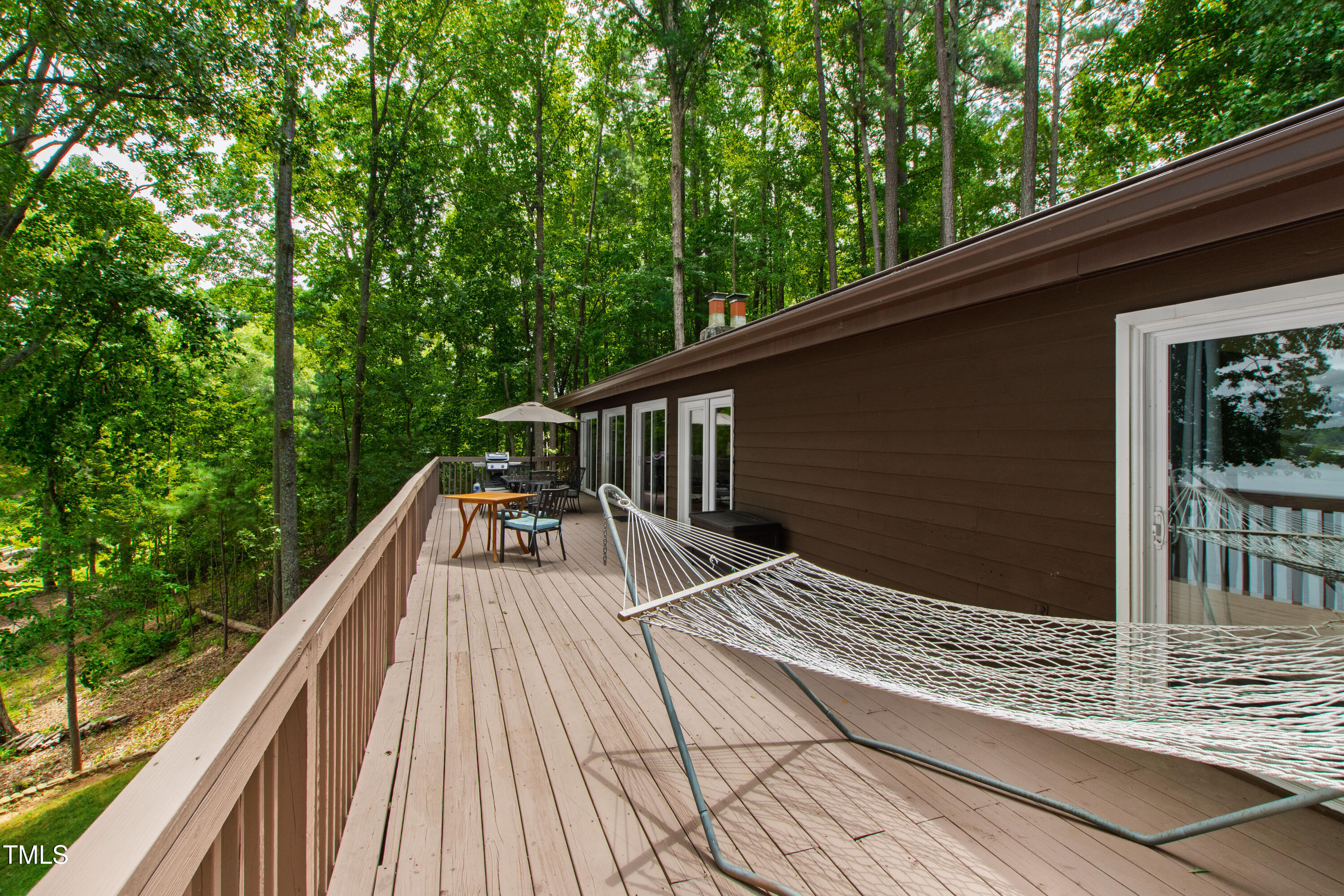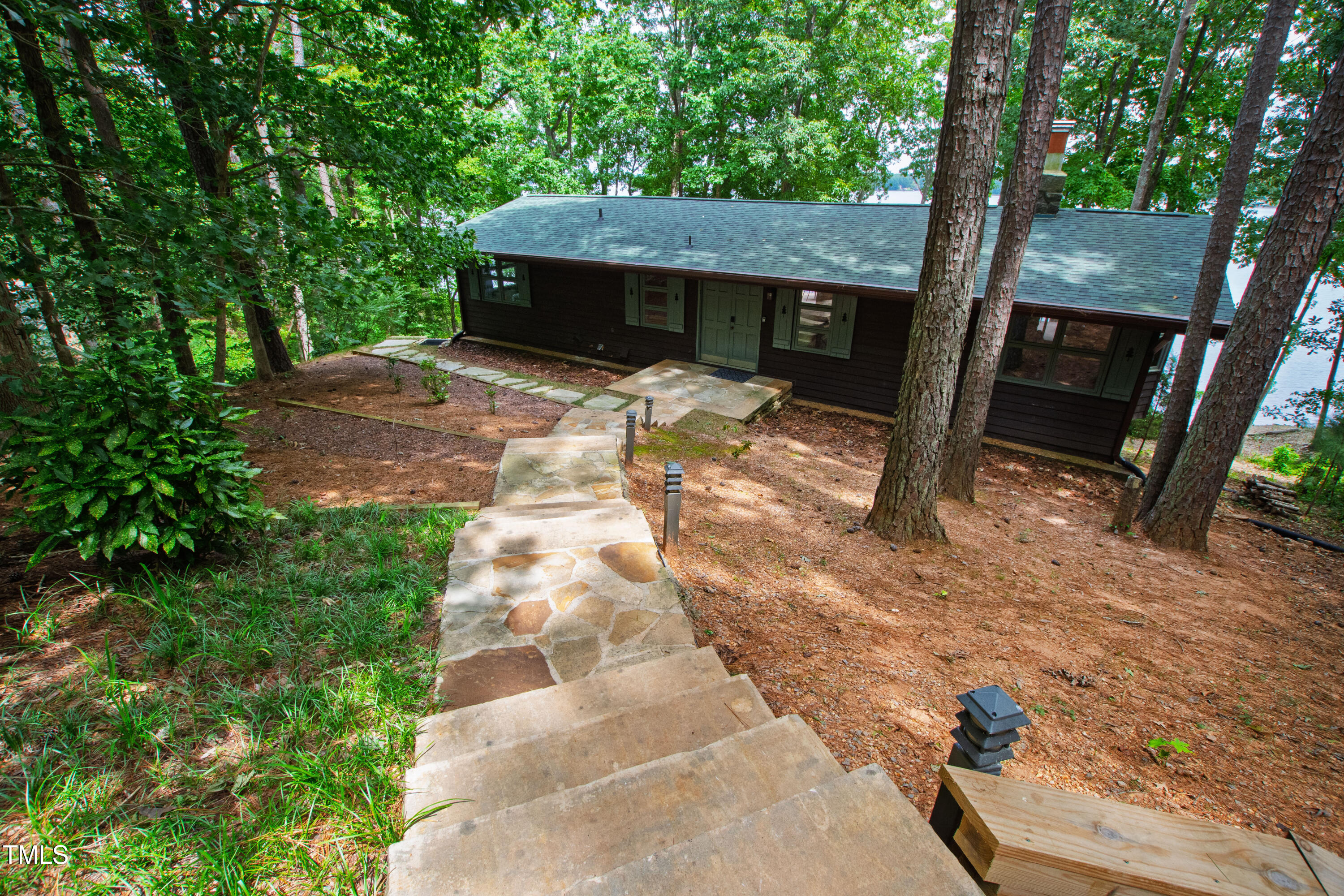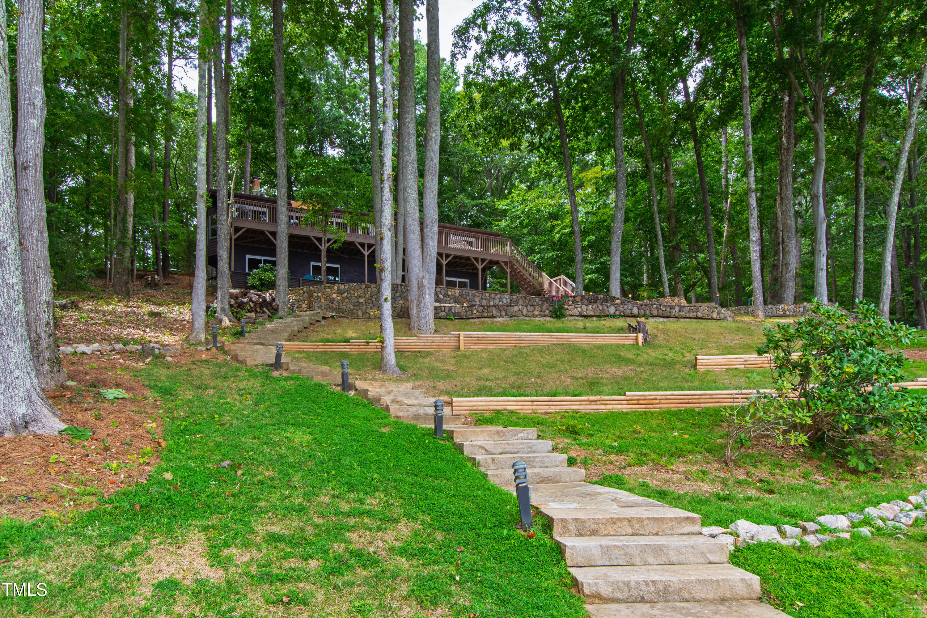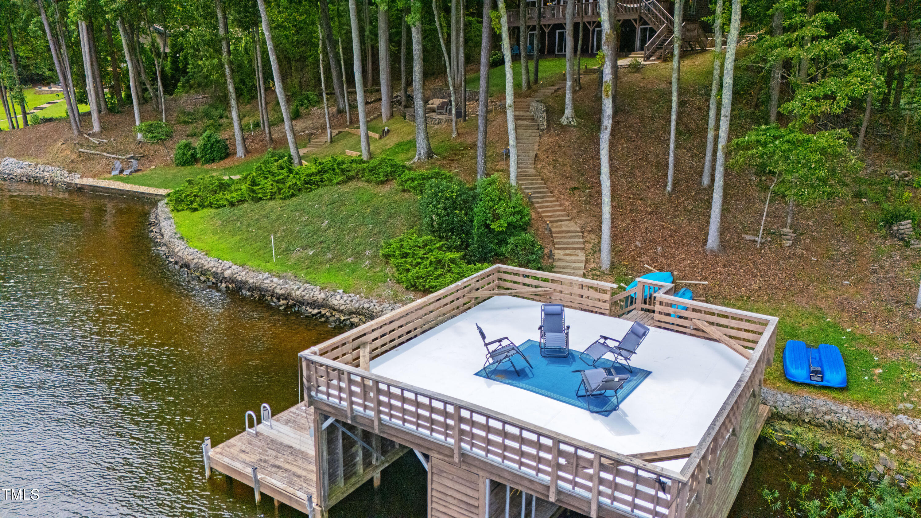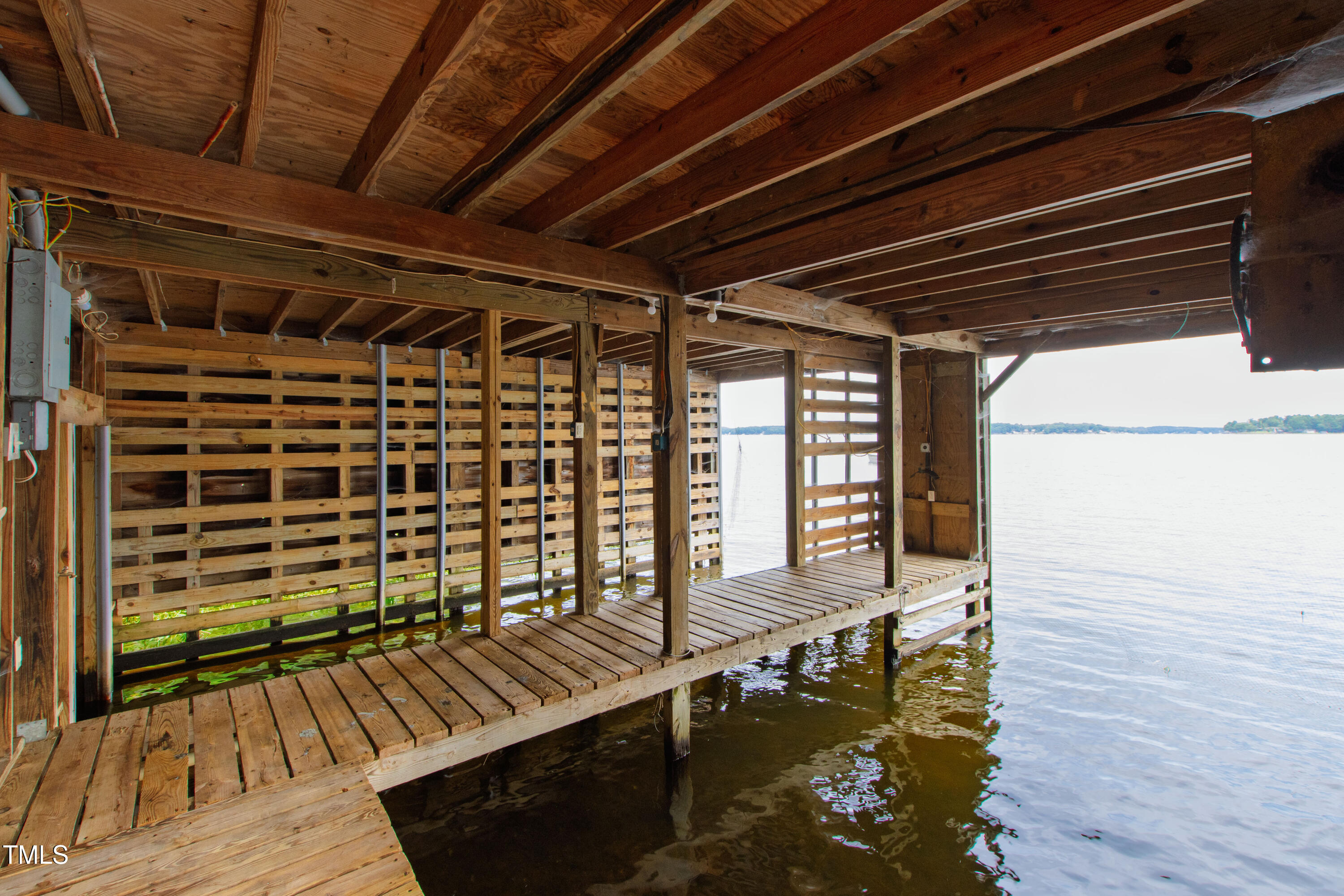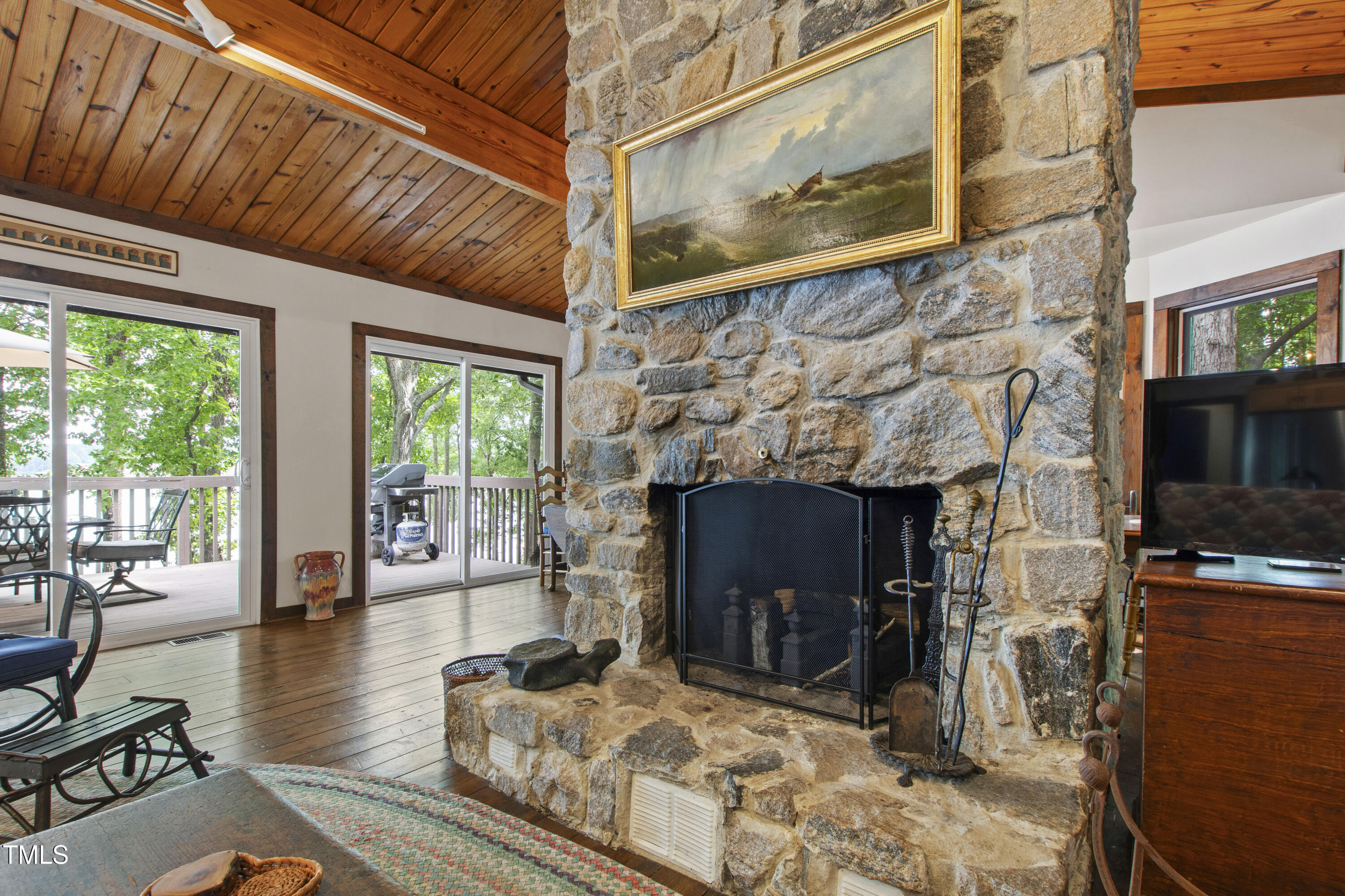 Experience the potential of this truly unique lakeside-living opportunity. Whether you seek a full-time residence in an utterly idyllic location, a vacation escape with unmatched privacy, or a one-of-a-kind investment with endless future build potential, 154 N Triton Drive delivers on every front. Set in the charming yet convenient town of Littleton, North Carolina, this 4 bedroom Lake Gaston lodge on the lake's southeast side is the perfect waterfront home. With 200+ feet of bulkhead, main lake, deep water frontage, the home is also flanked by two approved building lots each with permitted in-ground septic systems and rip rap. These lots are ready to build three-bedroom houses to create a private family compound, or they could remain as a wooded 2+ acre retreat with 700 feet of unobstructed main lake frontage on the widest part of the lake - a rarity for Lake Gaston properties. The main level of this cabin-inspired home boasts a desirable open floor-plan, with architecturally appealing, vaulted, wood-beamed ceilings, pristine hardwood floors throughout, and a spectacular wall of windows allowing for endless natural light and 24/7 lake views. A gourmet, customized kitchen with oversized island and recently updated stainless steel appliances perfectly matches the overall aesthetic of the property. The kitchen sits adjacent to the utmost inviting living room space, complete with a charming stone-work, wood-burning fireplace which dually splits the space from the cozy dining room, perfect for family dinners of all sizes. The primary suite offers serene lake views and private comfort, while an additional bedroom on this level is ideally situated for flexible guest or family use. The lower level basement is anchored in a must-have bonus space, the ideal landing pad following a sun-filled day out on the water. Two additional lake-facing bedrooms feature stunning panoramic views, creating a true retreat for guests or family members. A generously sized laundry room with full size washer and dryer, utility sink, storage shelves and beverage refrigerator finish off this space. As you step outside, you're greeted by unparalleled main lake views from the abode's stunning back deck, stretching the length of the home - a space prime for morning coffees or evening grilling. Tiered landscaping and a thoughtfully designed stone-lit pathway guide you through the terraced backyard, where cozy gathering areas--like a fire pit and stone patio--bring function and serenity to this outdoor sanctuary. Once you reach the 8 foot-deep water, a generously-sized dock awaits, boasting dual boat slips with all-weather coverage and an upper deck perfect for catching rays and enjoying the stunning North Carolina sunsets. Best of all, the home is located at the end of a quiet cul de sac just minutes from marinas, grocery stores and waterfront restaurants, with Eatons Ferry Bridge within close proximity allowing for quick and opportune access across the lake. Triton Point Community offers two community boat docks which are just yards away from the property and provide additional, effortless access to the water.