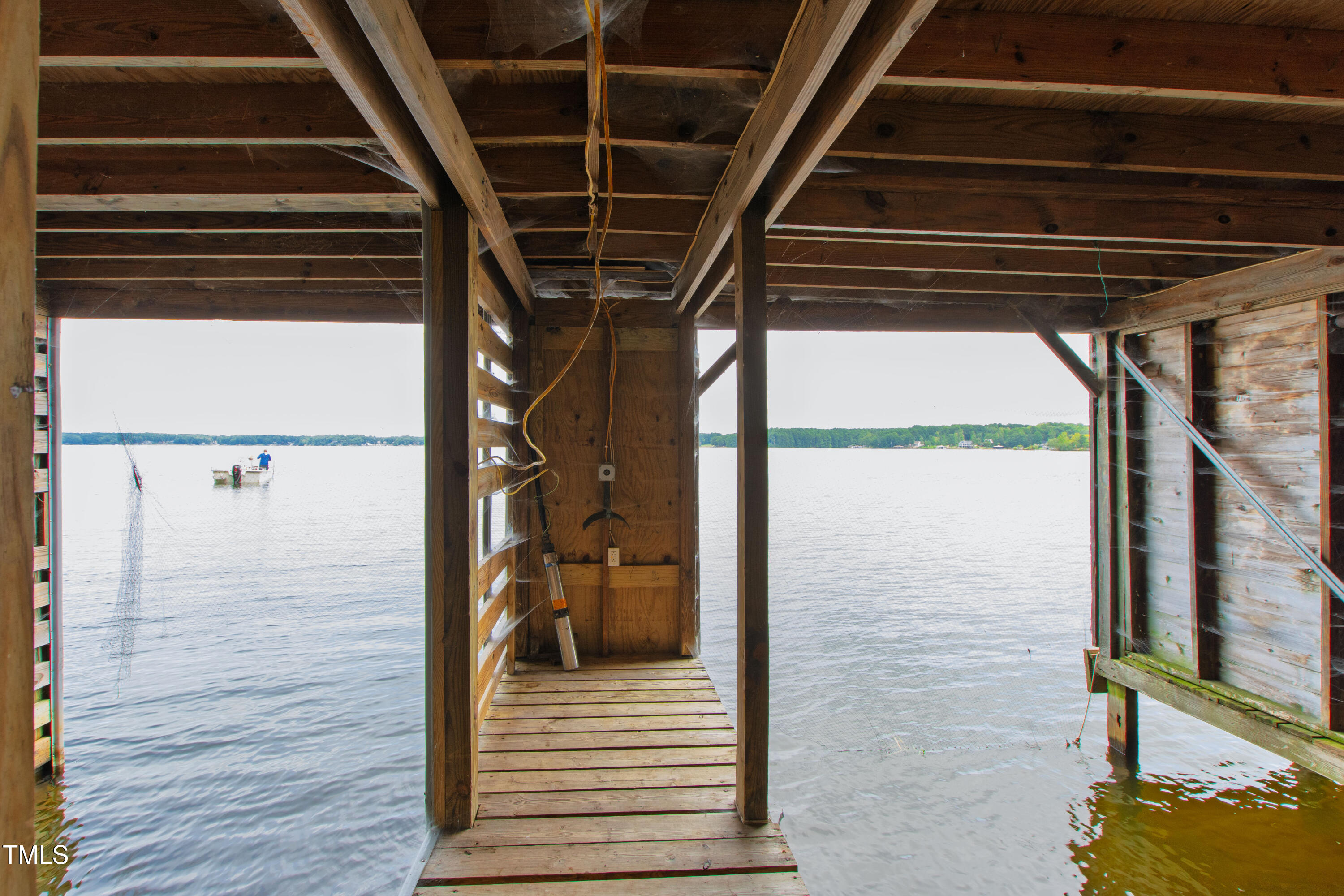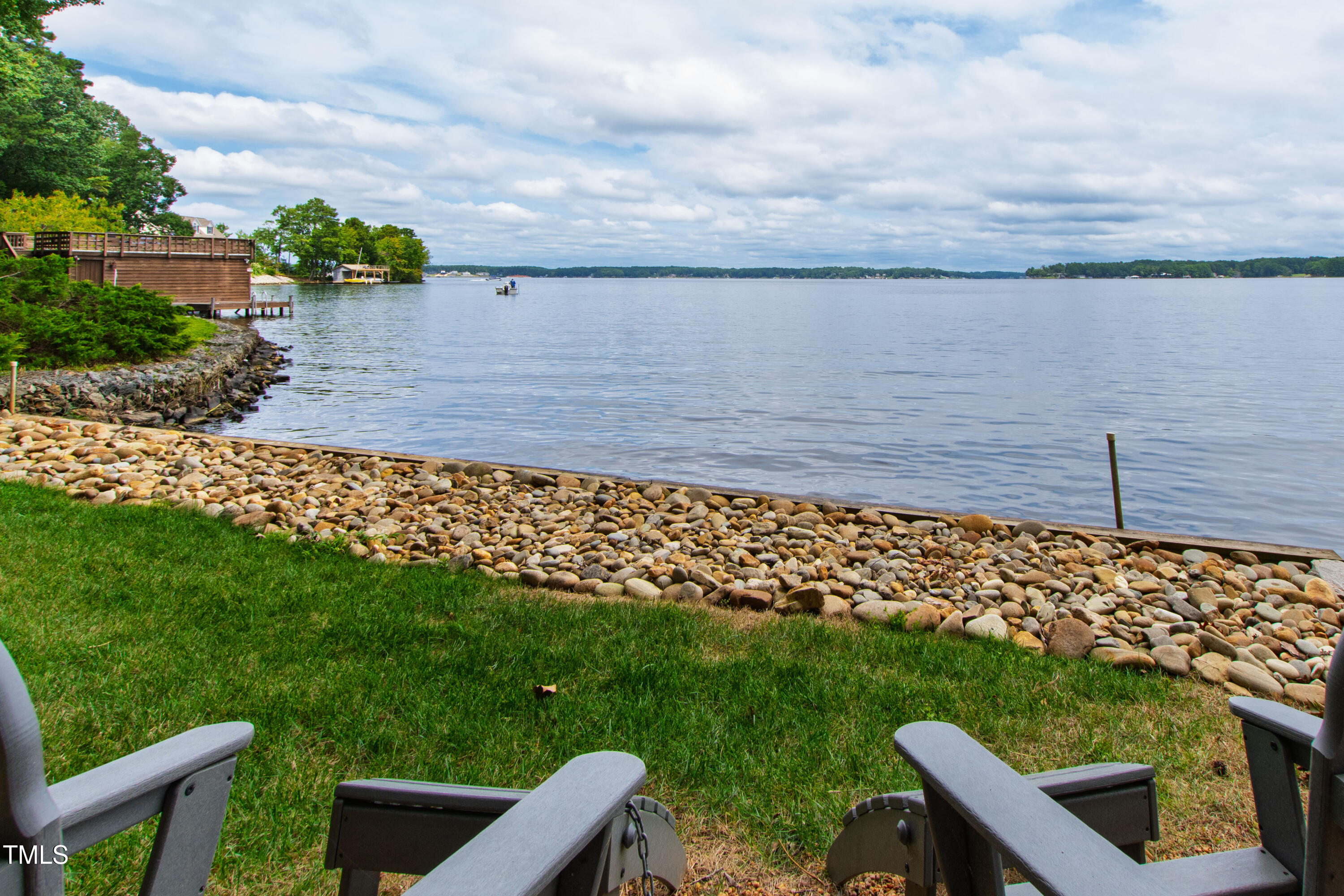 Lakeside living with unmatched privacy, unique expansion opportunities and an utterly idyllic locale - your next home awaits at 154 N Triton Drive. Set in the charming yet convenient town of Littleton, North Carolina, this 4 bedroom Lake Gaston lodge on the southeast side of the lake is the perfect waterfront home, inside and out. With 200+ feet of bulkhead, main lake, deep water-frontage, the home is also flanked by two approved building lots each with permitted in-ground septic systems and rip rap. These lots are both ready to build 3 BR houses to create a private family compound or could remain as a one of a kind wooded 2 + ac retreat with 700' of unobstructed main lake frontage on the widest part of the lake - a rarity unlike any for Lake Gaston properties. The main level of this cabin-inspired home boasts a desirable open floor-plan, with architecturally appealing, vaulted, wood-beamed ceilings, pristine hardwood floors throughout, and a spectacular wall of windows allowing for endless natural light and 24/7 lake views. A gourmet, customized kitchen with oversized island and recently updated stainless steel appliances perfectly matches the overall aesthetic of the property. The kitchen sits adjacent to the utmost inviting living room space, complete with a charming stone-work, wood-burning fireplace which dually splits the space from the cozy dining room, perfect for family dinners of all sizes. The primary suite offers serene lake views and private comfort, while an additional bedroom on this level is ideally situated for flexible guest or family use. The lower level basement is anchored in a must-have bonus space, the ideal landing pad following a sun-filled day out on the water. Two additional lake-facing bedrooms feature stunning panoramic views, creating a true retreat for guests or family members. A generously sized laundry room with full size washer and dryer, utility sink, storage shelves and beverage refrigerator finish off this space. As you step outside, you're greeted by unparalleled main lake views from the abode's stunning back deck, stretching the length of the home - a space prime for morning coffees or evening grilling. Tiered landscaping and a thoughtfully designed stone-lit pathway guide you through the terraced backyard, where cozy gathering areas--like a fire pit and stone patio--bring function and serenity to this outdoor sanctuary. Once you reach the 8 foot-deep water, a generously-sized dock awaits, boasting dual boat slips with all-weather coverage and an upper deck perfect for catching rays and enjoying the stunning North Carolina sunsets. Best of all, the home is located at the end of a quiet cul de sac just minutes from marinas, grocery stores and waterfront restaurants, with Eatons Ferry Bridge within close proximity allowing for quick and opportune access across the lake. Triton Point Community offers two community boat docks which are just yards away from the property and provide additional, effortless access to the water. Whether you're seeking a full-time residence, a vacation escape, or a one-of-a-kind investment with endless future build potential, 154 N Triton Drive delivers on every front. Please call listing agent for more information regarding the adjacent lots.