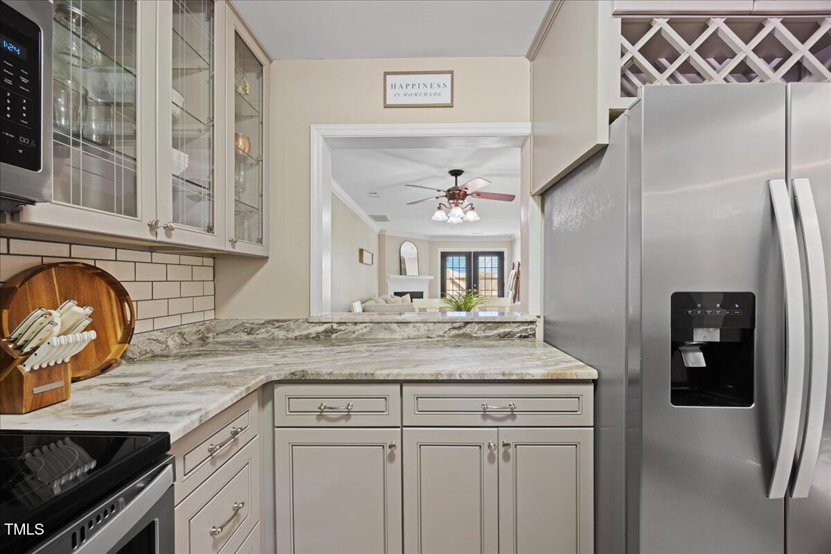 When you first walk in, you're greeted by a jaw dropping kitchen. It's trying not to show off but I would too if I had quartzite countertops and stainless steel appliances (excluding the dishwasher), with a pass through into the dining area. There is a spacious living area that creates an inviting atmosphere for relaxation and entertaining. Don't miss the updated powder room, located just off the living room.