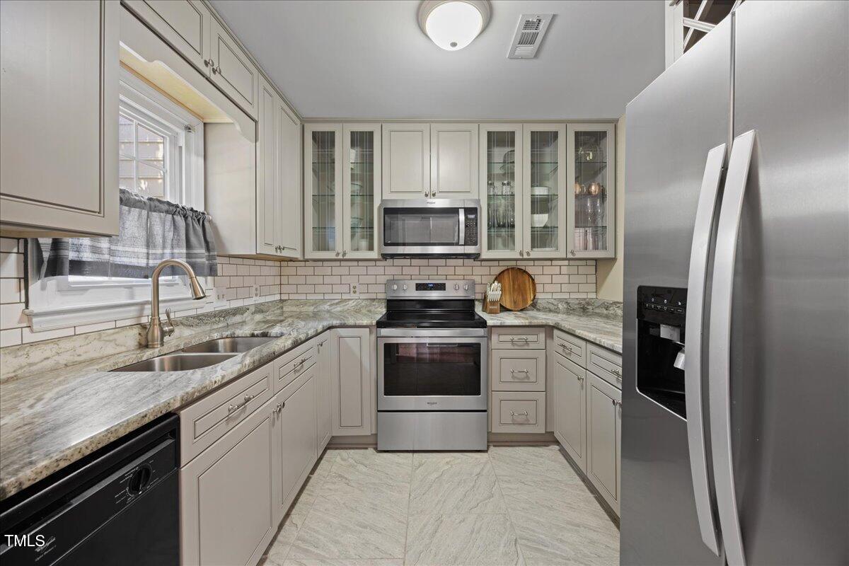 • APPLIANCES Dishwasher, Disposal, Electric Range, Microwave, Stainless Steel Appliance(s)