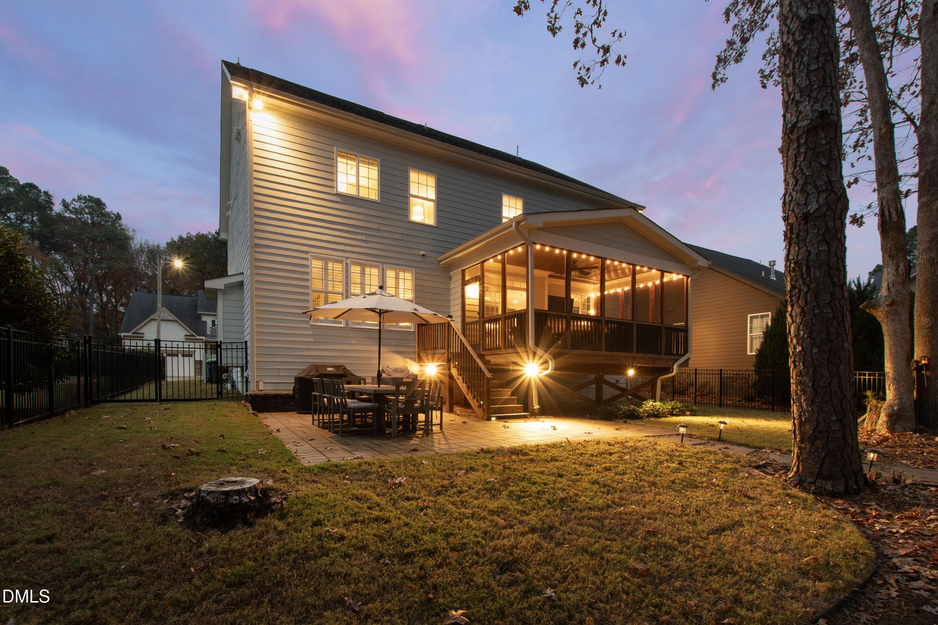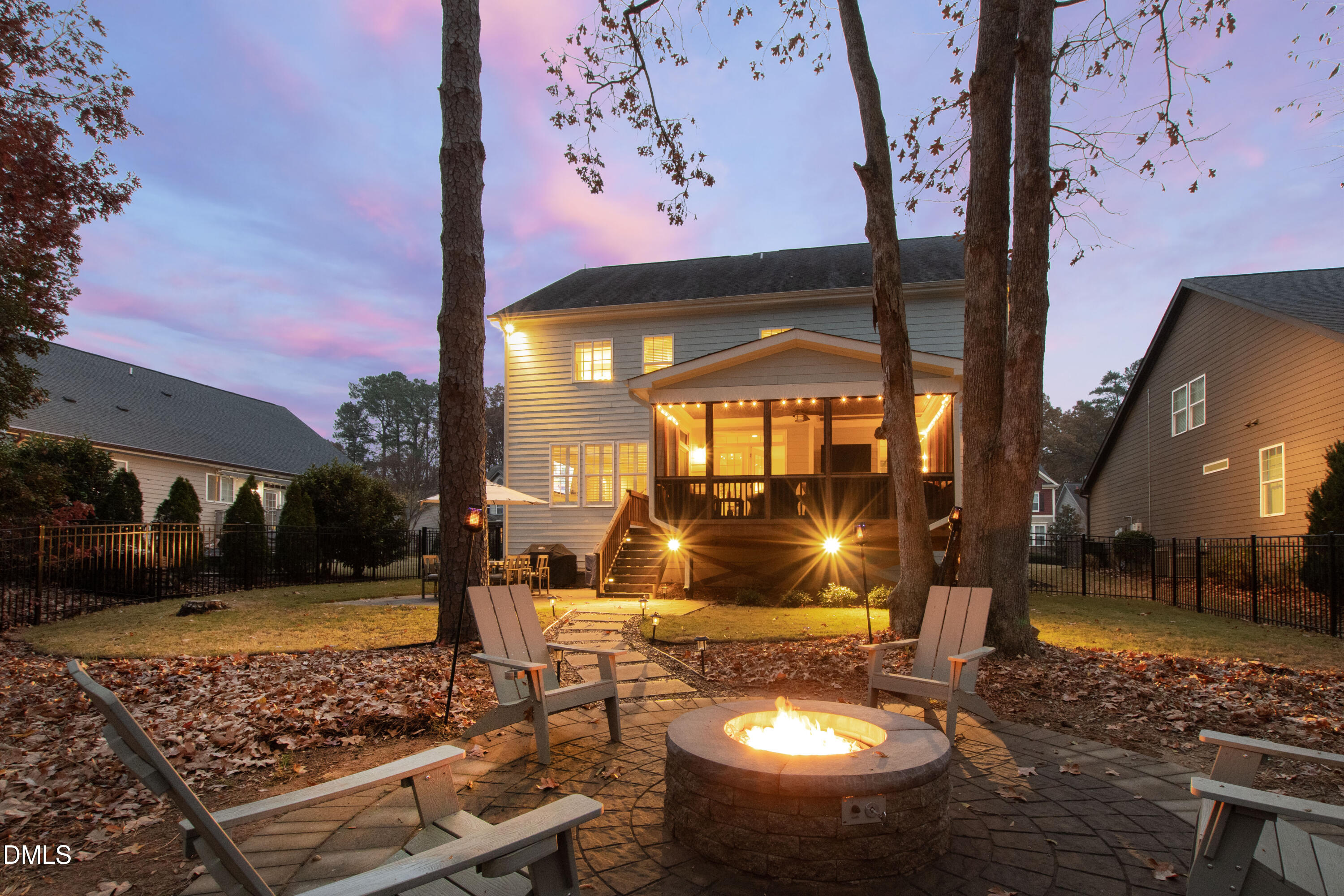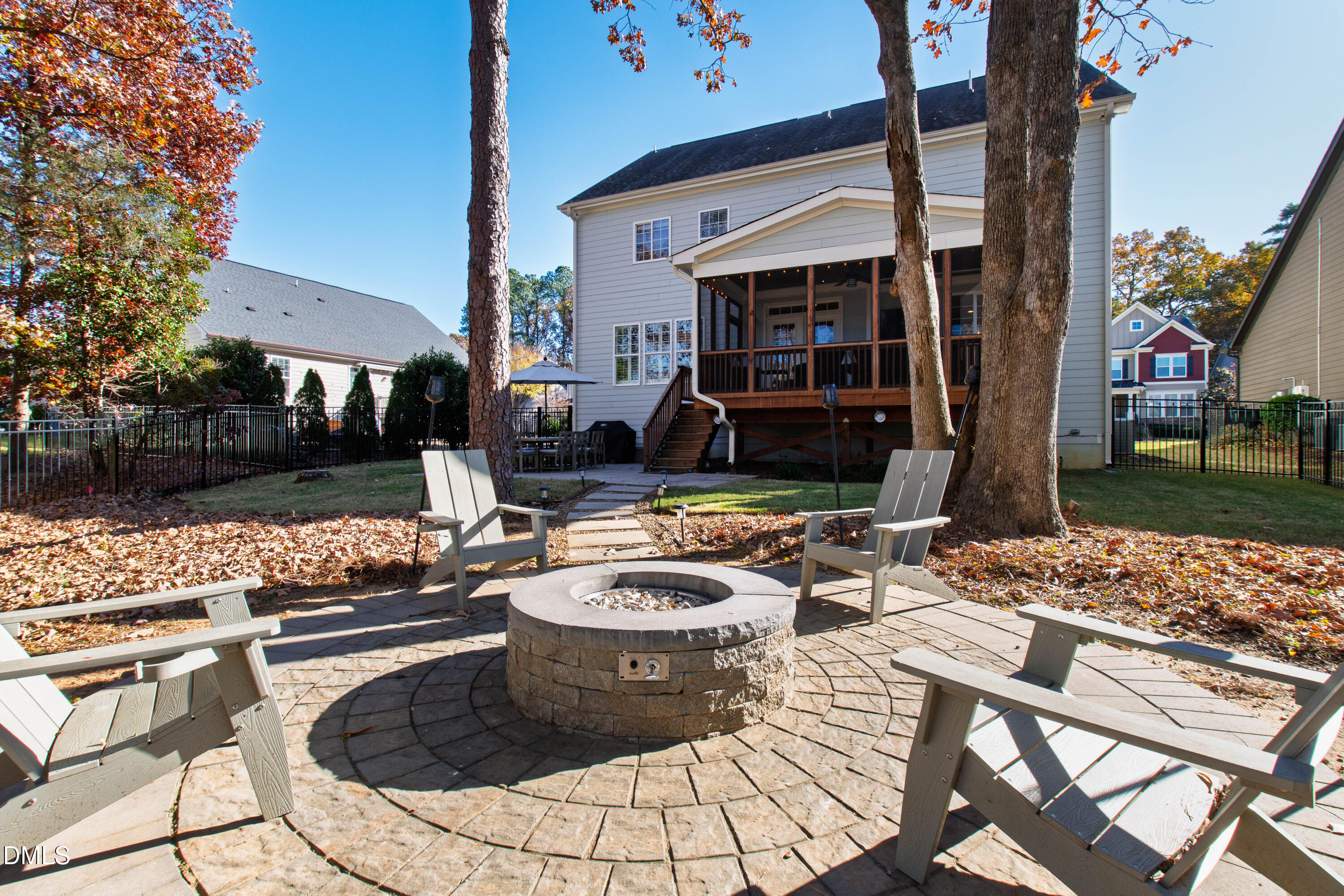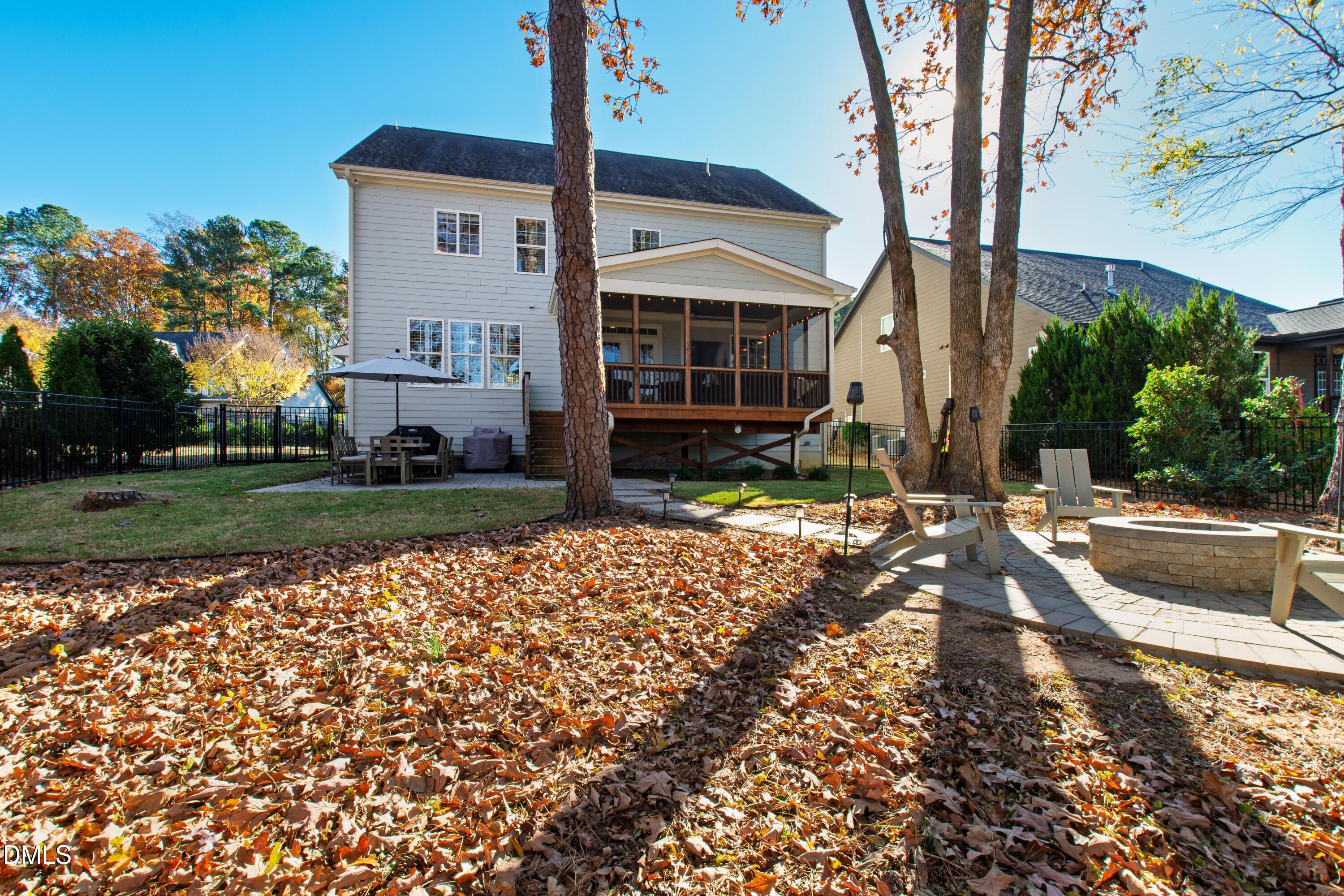 Discover the perfect move-in-ready home in the heart of North Raleigh, where space, updates and comfort blend together for your next chapter of family living. Tucked away on a private cul-de-sac in the charming Wimbledon community, this beautifully maintained Stanley Martin home sits on a quarter-acre lot and offers a functional floorplan, spacious outdoor living and convenience of shops, dining, schools, parks, and everyday amenities. From the charming rocking chair front porch to the professionally landscaped and hardscaped yard, this home is just as much fun outdoors as it is functional indoors. The screened porch with ceiling fan overlooks a wooded backdrop - perfect for weekend afternoons while the kids play in the fenced backyard. Host gatherings around the built-in firepit, grill on the back patio or enjoy the peace of no through traffic on the cul-de-sac street. Designed with function in mind, the open and flexible layout is filled with natural light, site finished hardwoods, and detailed millwork including wainscoting, cased entries and crown molding. The gourmet kitchen is a standout with granite countertops, an oversized island with storage on both sides, abundant cabinetry, tile backsplash, and stainless steel appliances including gas cooktop with range hood, wall oven, and ice maker. A formal dining room seats eight comfortably, while the spacious family room offers plantation shutters, a gas-log fireplace, and plenty of room to host and hang. Need a dedicated work-from-home or study space? The formal living room doubles perfectly as a home office. Upstairs, the primary suite impresses with double-door entry, tray ceiling, and two expansive walk-in closets. The spa-like bath features dual sinks, soaking tub, water closet, and a tiled walk-in shower. Three additional bedrooms--each with a walk-in closet and connected bathroom--plus a conveniently located second-floor laundry make everyday living a breeze. Enjoy a third floor with extended possibilities - a versatile bonus room complete with built-in bar, mini-fridge, and undercabinet lighting plus a fifth bedroom and full bath - ideal for guests. This home is just 10 minutes to North Hills and offers easy access to both I-440 and I-540 for quick commutes throughout the Triangle. The neighborhood backs up to the Raleigh Racquet Club, where optional swim and tennis memberships create even more opportunities for family fun.