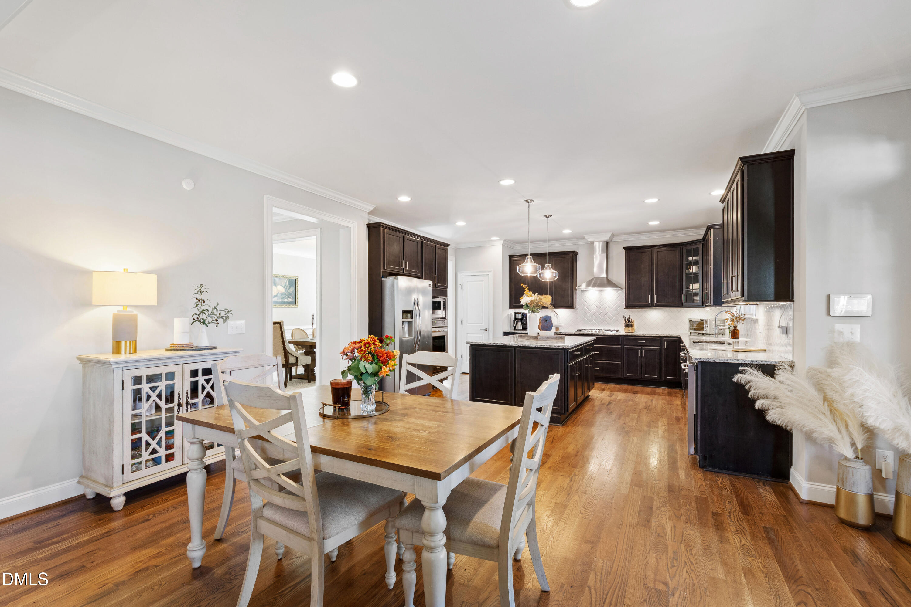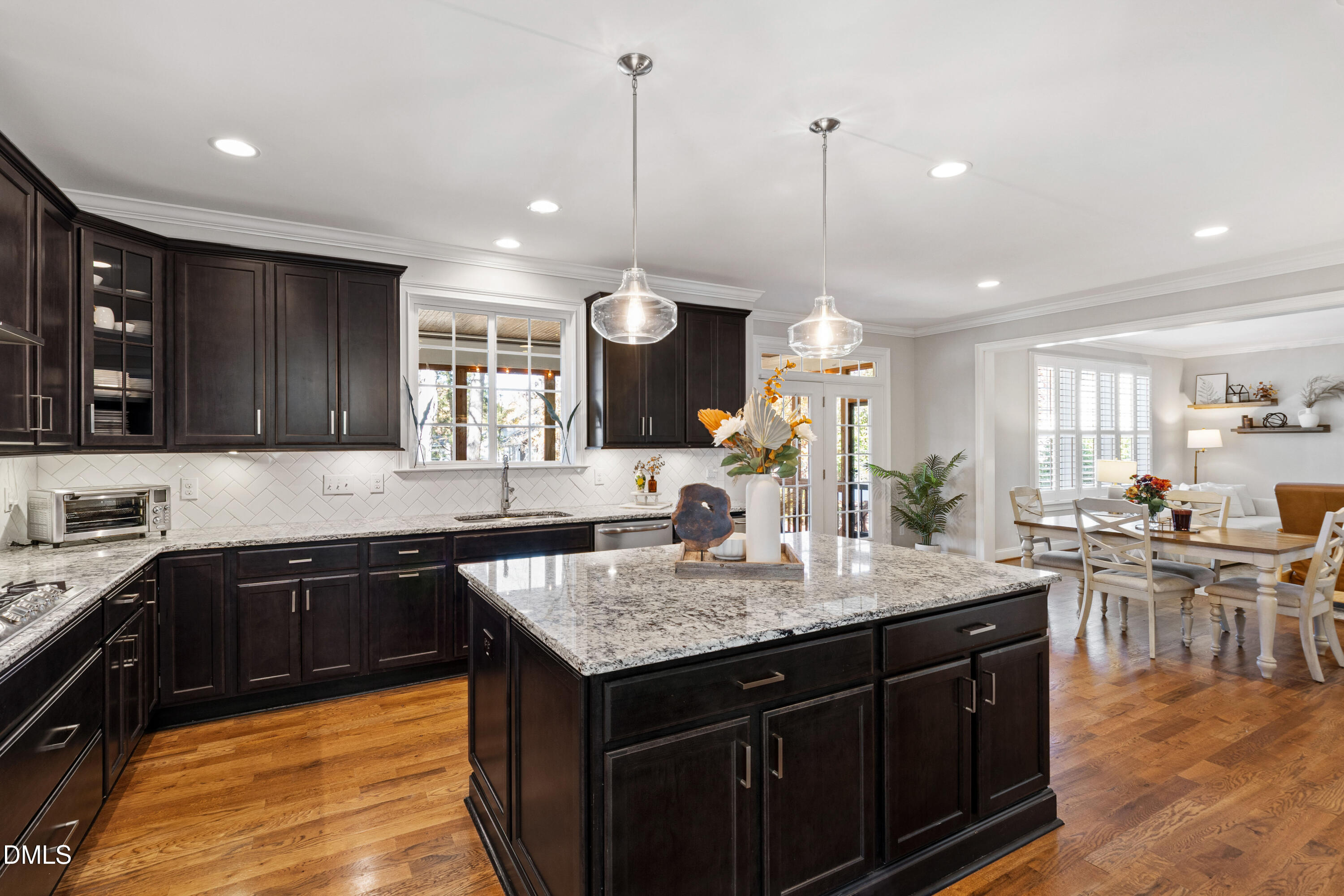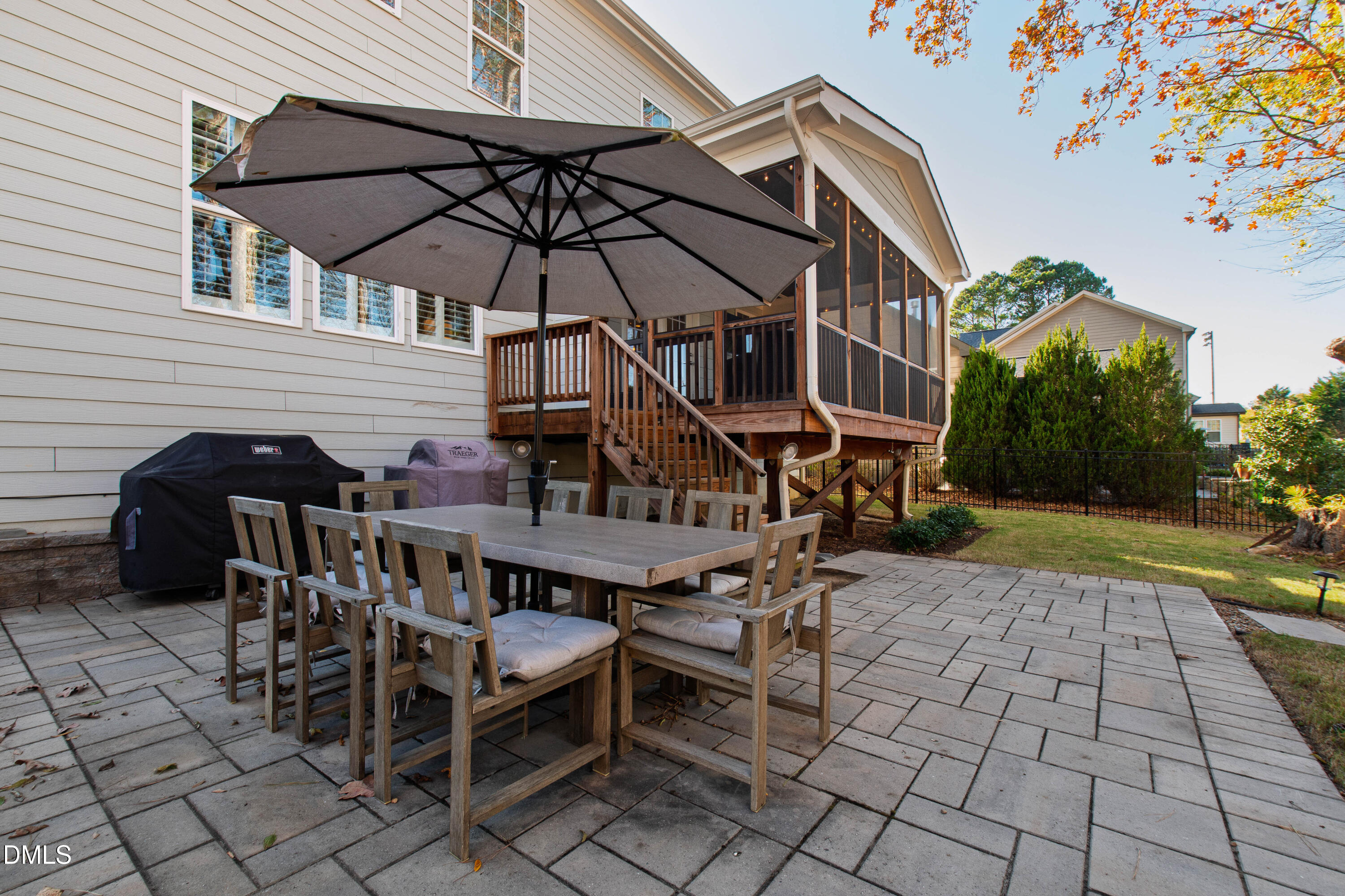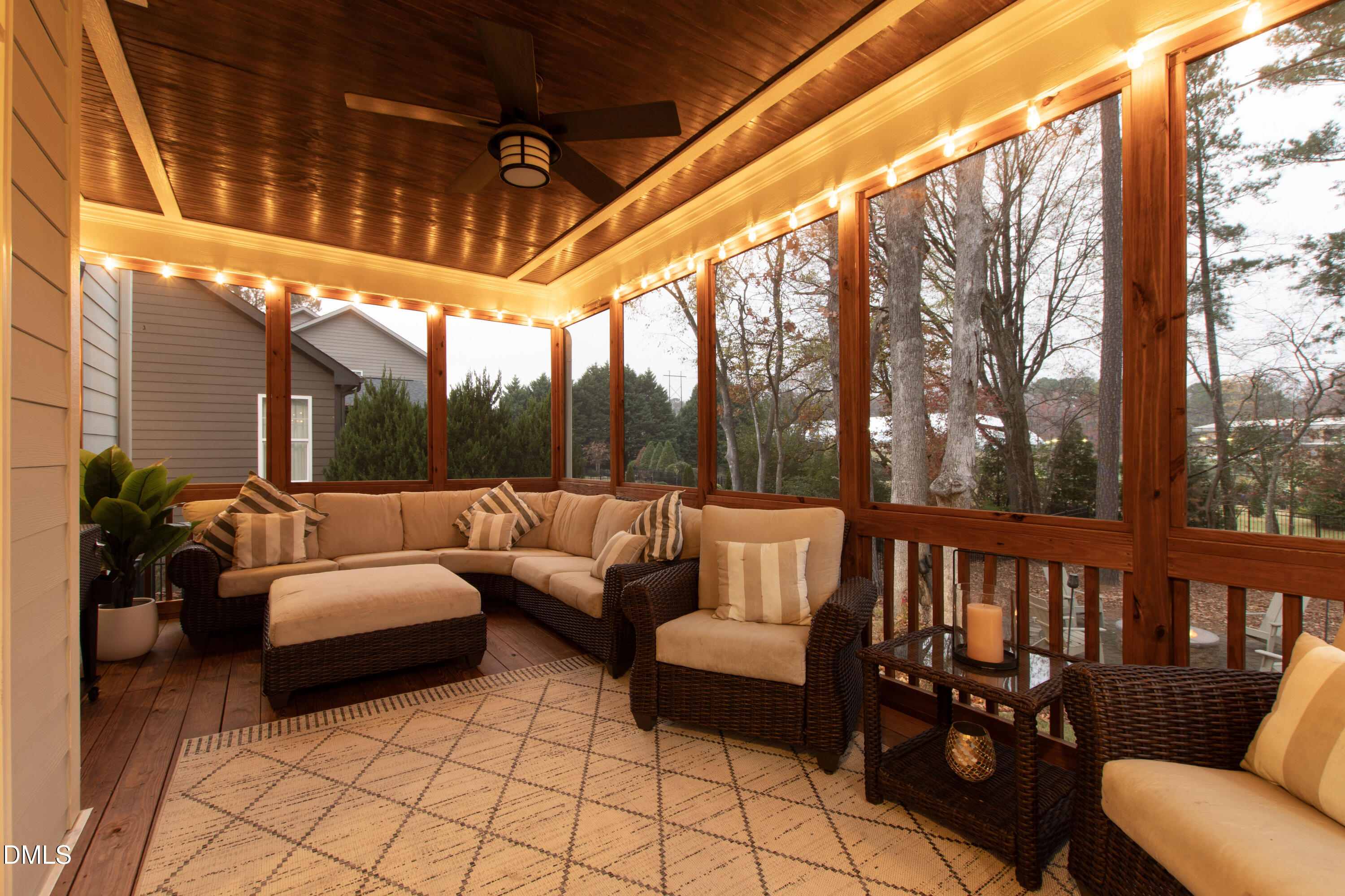 Discover the perfect move-in-ready home in the heart of North Raleigh, where space, updates and comfort blend together for your next chapter of family living. Tucked away on a private cul-de-sac in the charming Wimbledon community, this beautifully maintained Stanley Martin home sits on a quarter-acre lot and offers a functional floorplan, spacious outdoor living and convenience of shops, dining, schools, parks, and everyday amenities. From the charming rocking chair front porch to the professionally landscaped and hardscaped yard, this home is just as much fun outdoors as it is functional indoors. The screened porch with ceiling fan overlooks a wooded backdrop - perfect for weekend afternoons while the kids play in the fenced backyard. Host gatherings around the built-in firepit, grill on the back patio or enjoy the peace of no through traffic on the cul-de-sac street. Designed with function in mind, the open and flexible layout is filled with natural light, site finished hardwoods, and detailed millwork including wainscoting, cased entries and crown molding. The gourmet kitchen is a standout with granite countertops, an oversized island with storage on both sides, abundant cabinetry, tile backsplash, and stainless steel appliances including gas cooktop with range hood, wall oven, and ice maker. A formal dining room seats eight comfortably, while the spacious family room offers plantation shutters, a gas-log fireplace, and plenty of room to host and hang. Need a dedicated work-from-home or study space? The formal living room doubles perfectly as a home office. Upstairs, the primary suite impresses with double-door entry, tray ceiling, and two expansive walk-in closets. The spa-like bath features dual sinks, soaking tub, water closet, and a tiled walk-in shower. Three additional bedrooms--each with a walk-in closet and connected bathroom--plus a conveniently located second-floor laundry make everyday living a breeze. Enjoy a third floor with extended possibilities - a versatile bonus room complete with built-in bar, mini-fridge, and undercabinet lighting plus a fifth bedroom and full bath - ideal for guests. This home is just 10 minutes to North Hills and offers easy access to both I-440 and I-540 for quick commutes throughout the Triangle. The neighborhood backs up to the Raleigh Racquet Club, where optional swim and tennis memberships create even more opportunities for family fun.
