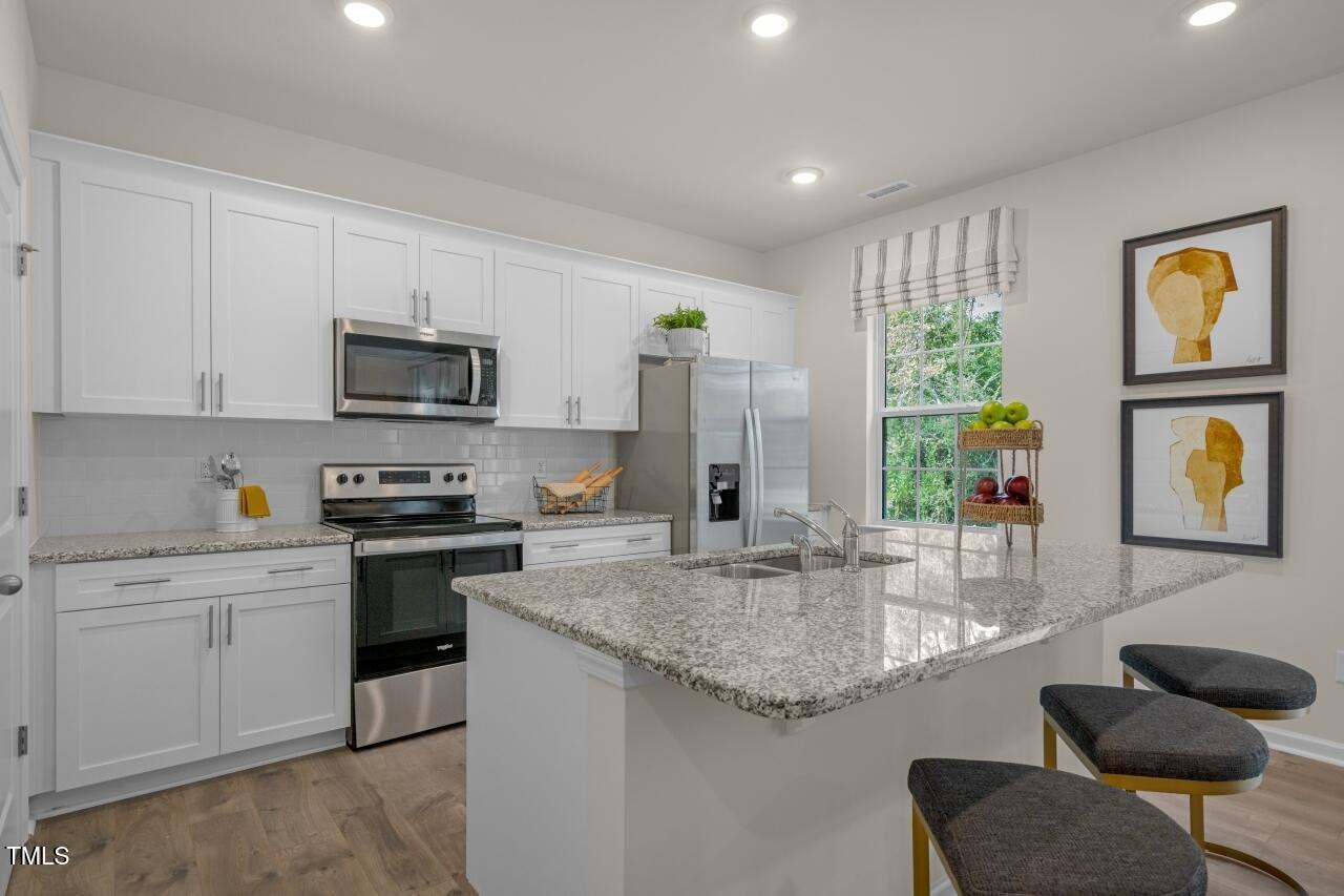Indulge your inner chef with an upgraded kitchen featuring Whirlpool stainless steel appliances, quartz countertops, and a stylish tile backsplash.