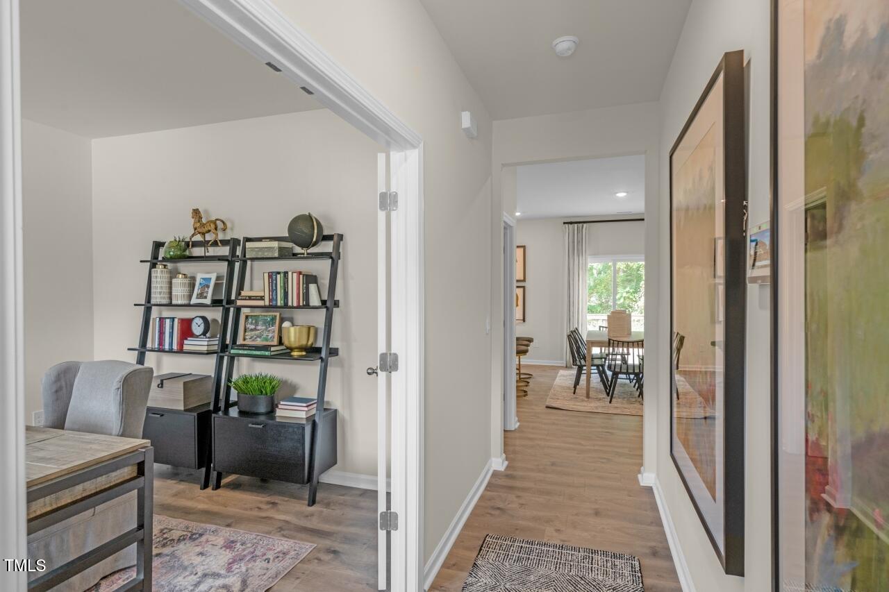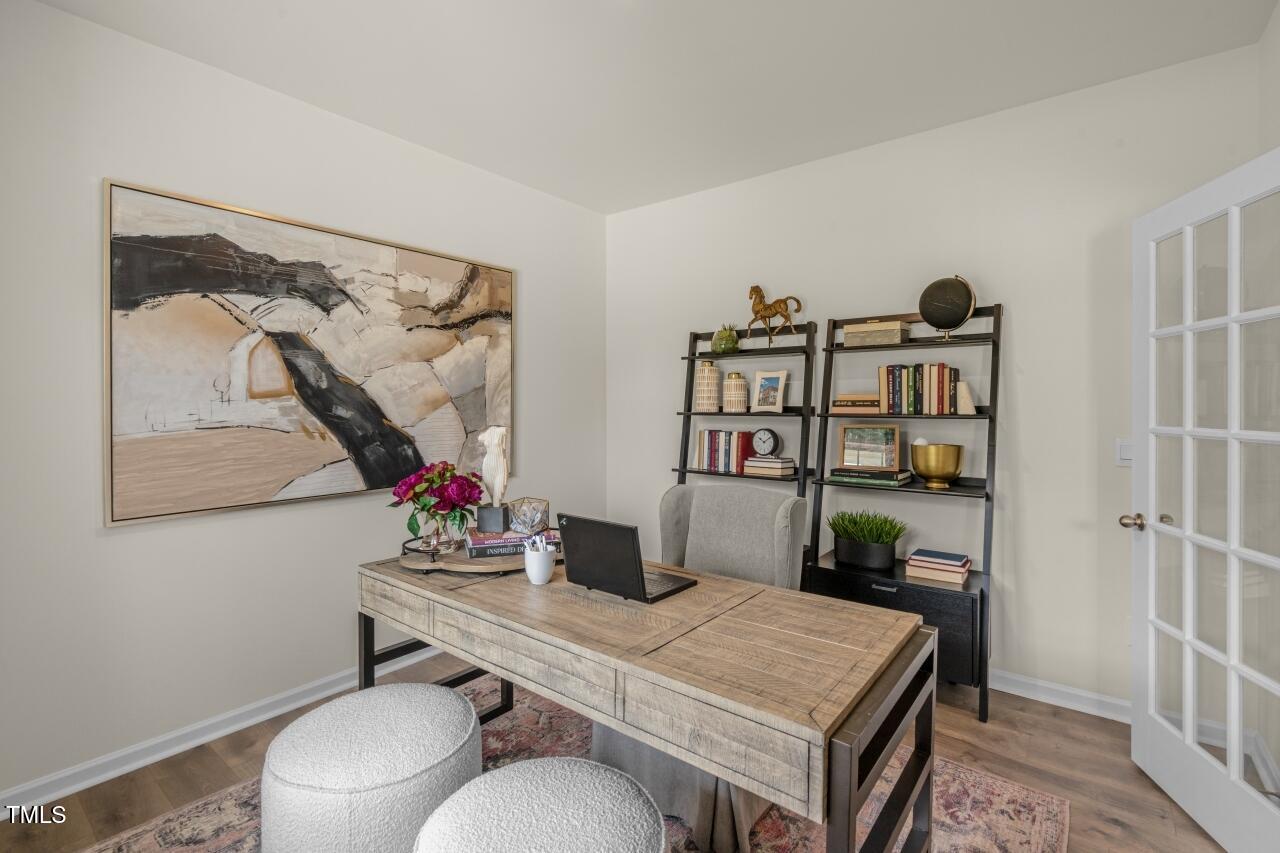 Step into a world of sophistication with 9-foot ceilings and luxurious Revwood flooring throughout the main living areas. The private office with French doors is the perfect place to work from home in peace and quiet. The layout seamlessly connects the kitchen, dining, and great room, creating an ideal space for entertaining and everyday living.