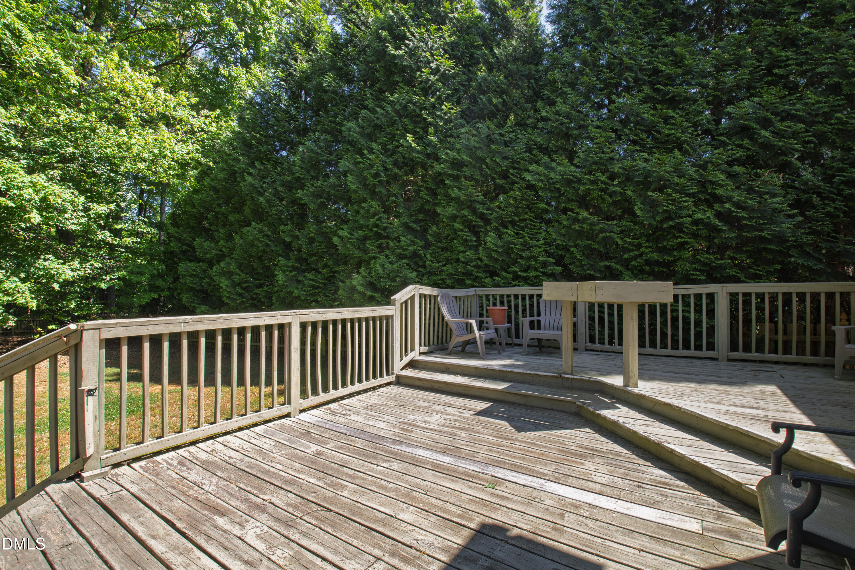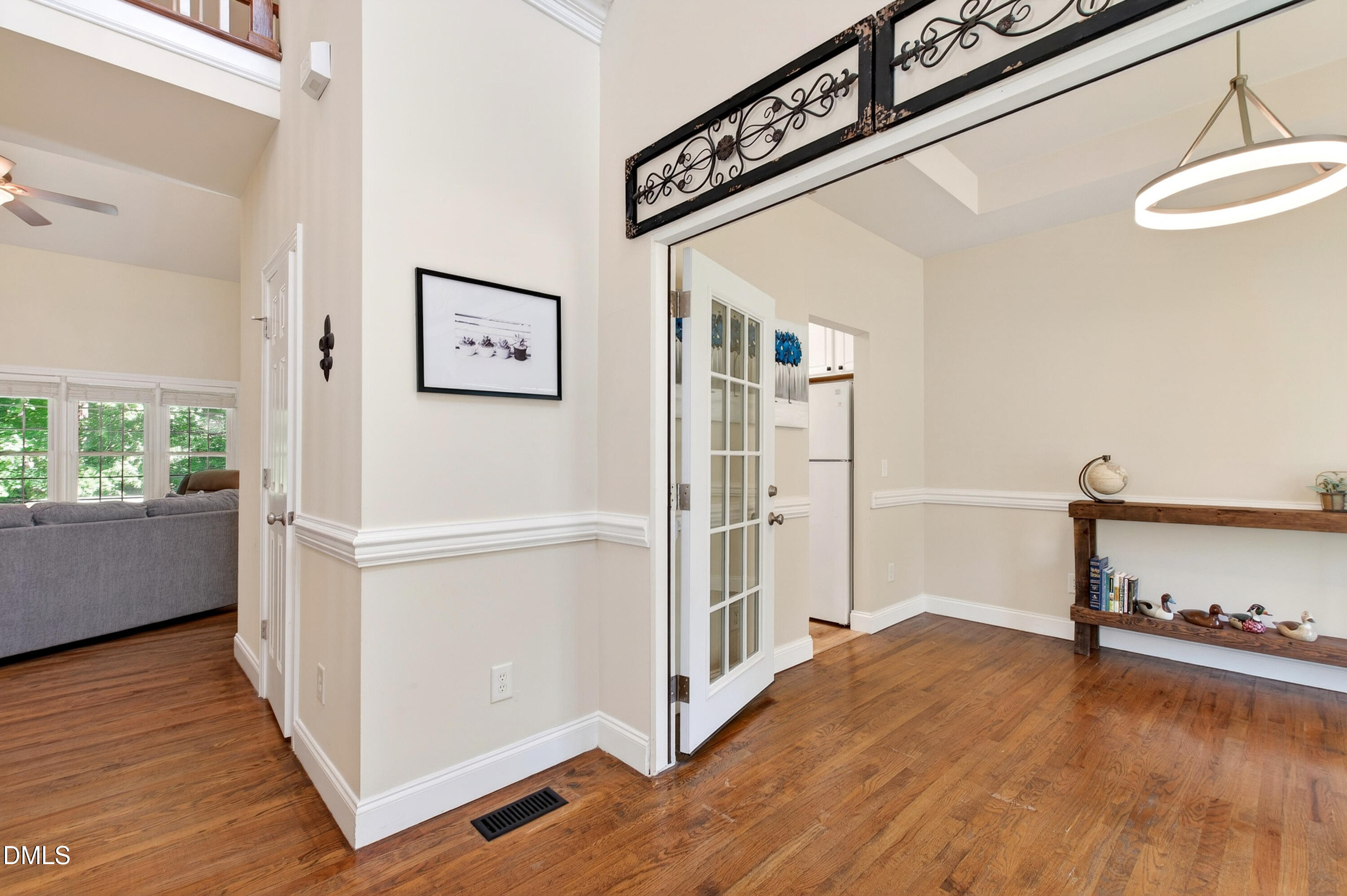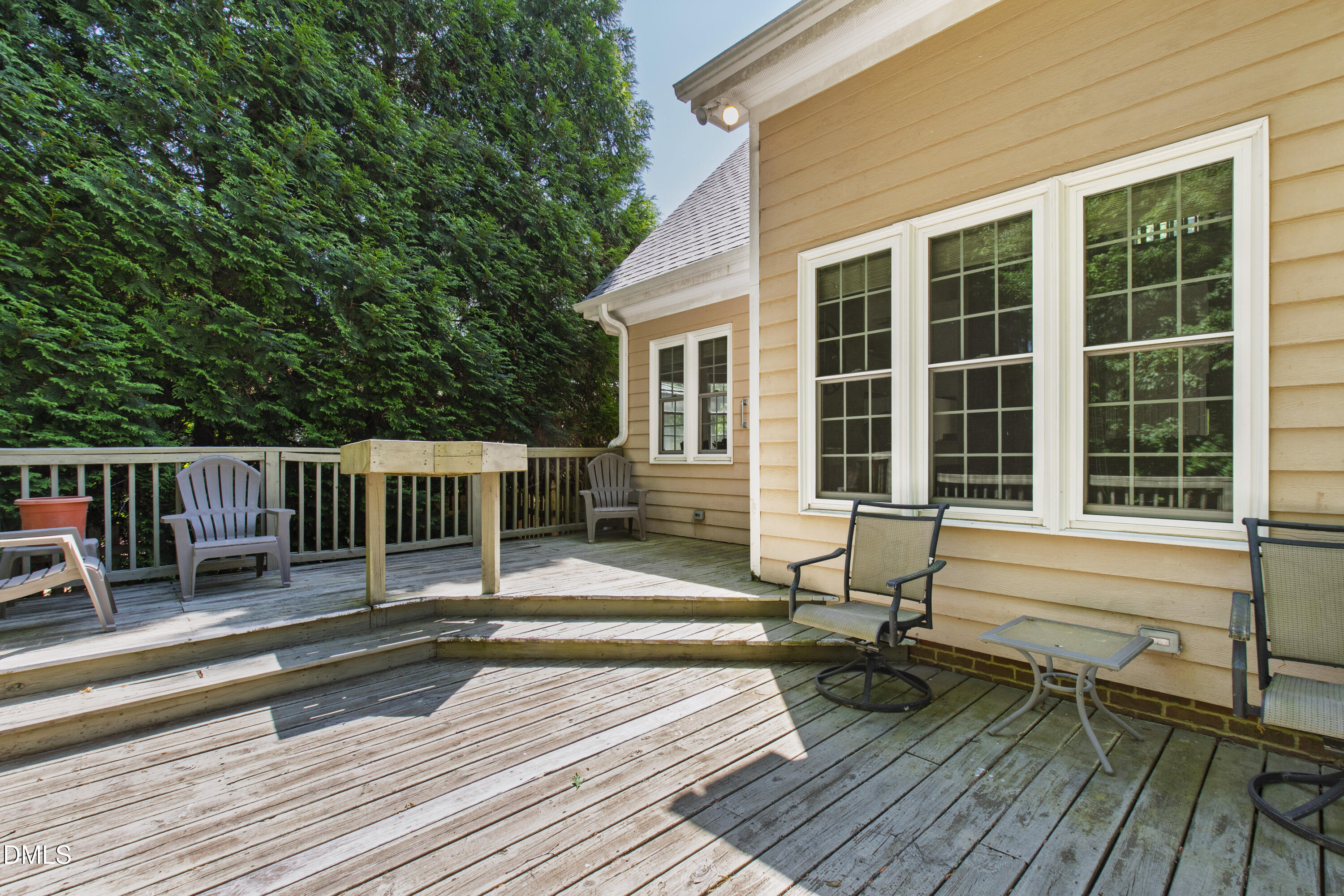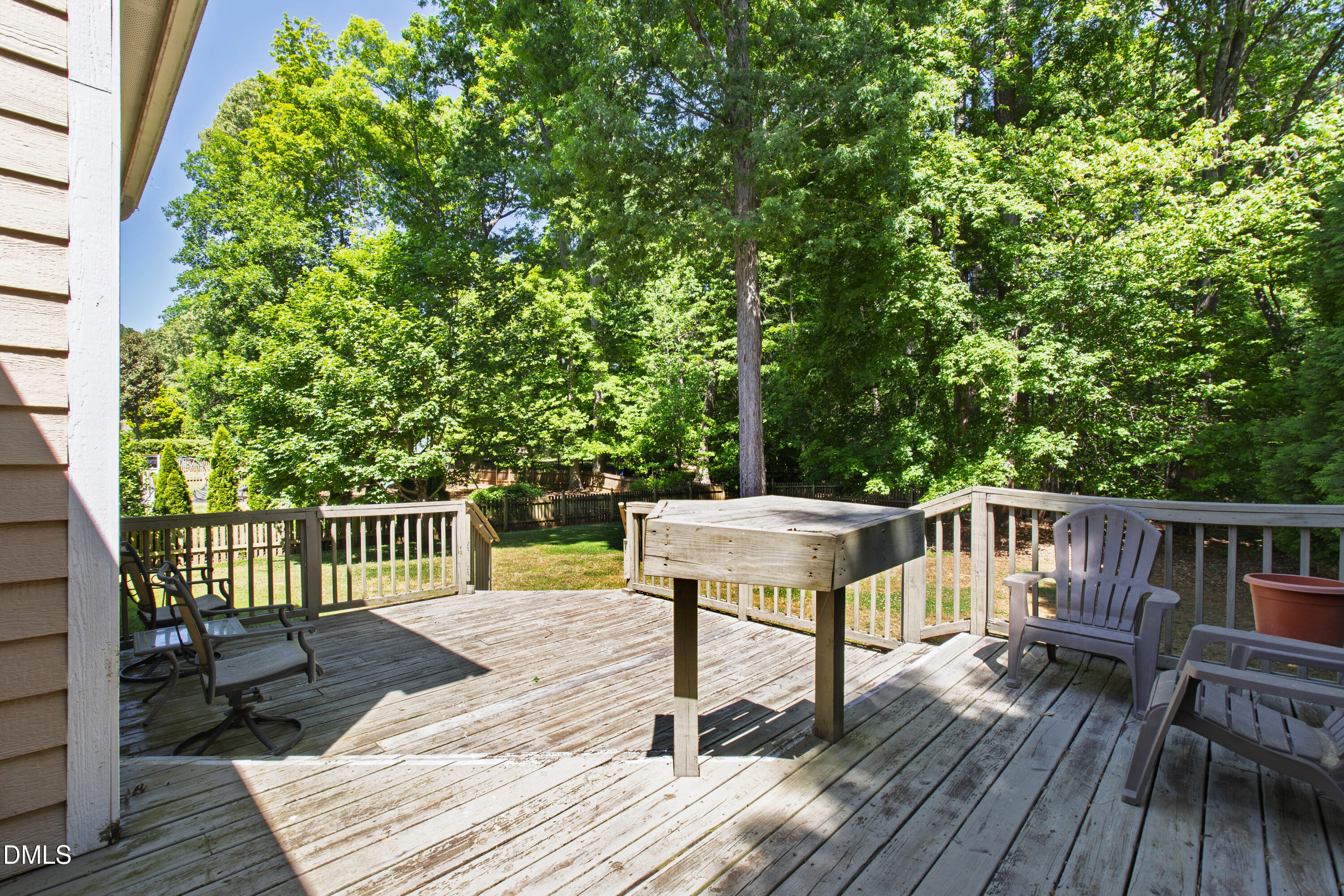 All the conveniences of growing Chatham Park in an established, traditional neighborhood, look no further than 182 Chatham Mill! Situated in highly desired Chatham Forest neighborhood, known for it's beautiful tree-lined streets and community feel, this traditional home offers comfort and style with first floor living. Enjoy the convenience of walking or biking to downtown Pittsboro for shopping and dining with Knight Farm Community Park, Chatham Park, and Jordan Lake recreation areas just minutes away. Inside, an open and flexible floor plan is filled with natural light and features hardwood floors throughout the main living areas and first floor primary suite. The updated kitchen includes quartz countertops, LVP flooring, a large kitchen sink, and painted cabinets with modern hardware. The vaulted living room with gas log fireplace flows into a sunny breakfast nook, while the formal dining room - complete with new French doors - also works perfectly as a home office. The main-level primary suite offers privacy and comfort with a tray ceiling, walk-in closet, and spacious bath featuring a soaking tub, dual vanity, and updated tiled walk-in shower with bench. Upstairs includes two generously sized bedrooms with ceiling fans, a bonus room, and added hardwood flooring in the hallway. Set on a flat 0.26-acre lot, the fully fenced backyard backs to wooded HOA land for added privacy and includes a two-tier deck. Additional highlights include a newer roof (2024), a covered front porch with updated lighting, and a 2-car garage with built-in shelving and ample driveway parking. With easy access to US-64 and 15-501 commuting to Chapel Hill, Durham, Apex, and Cary has never been easier. All of this plus neighborhood amenities including a playground and basketball court, with low HOA dues of just $100/quarter. Welcome Home!