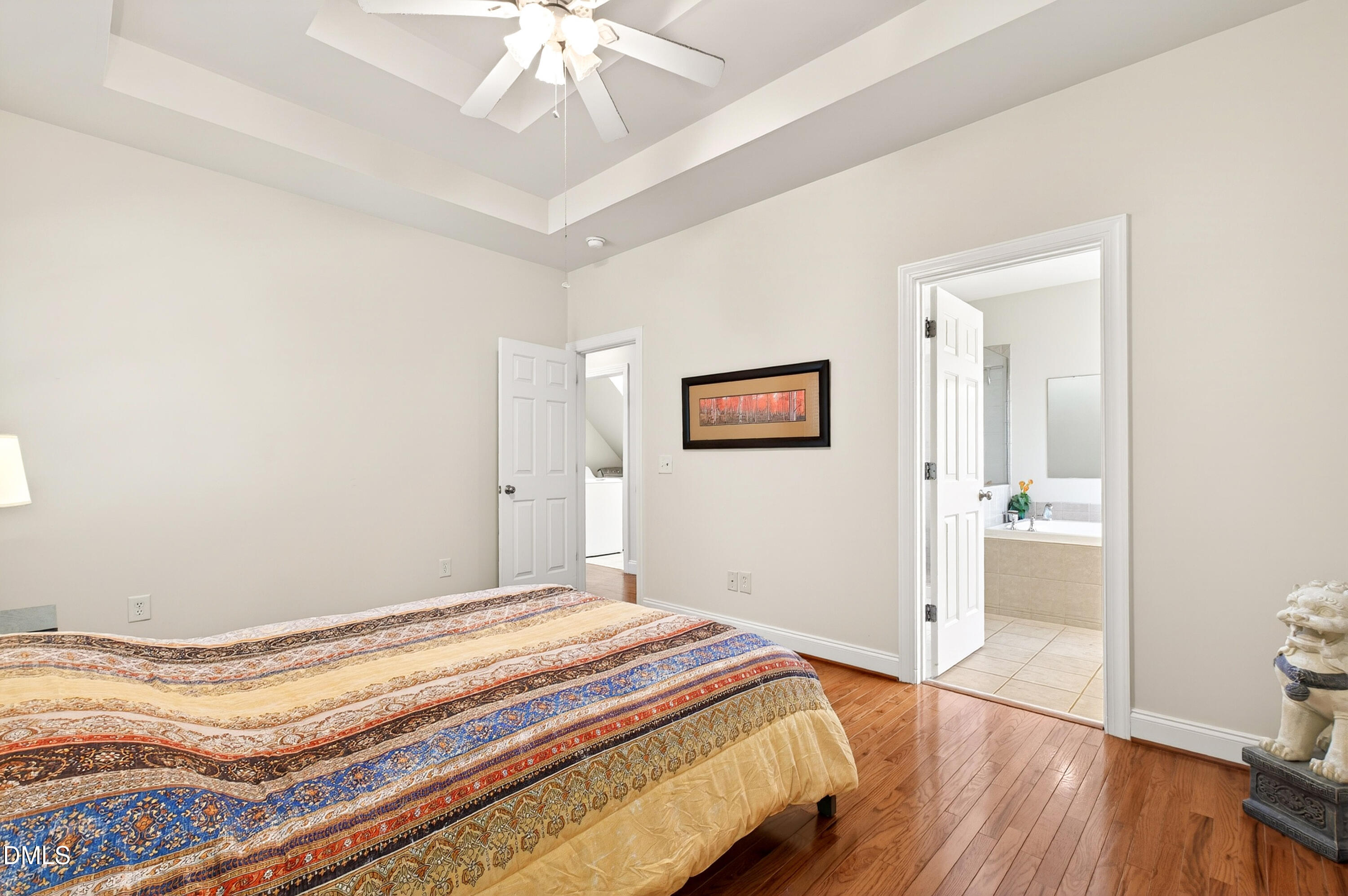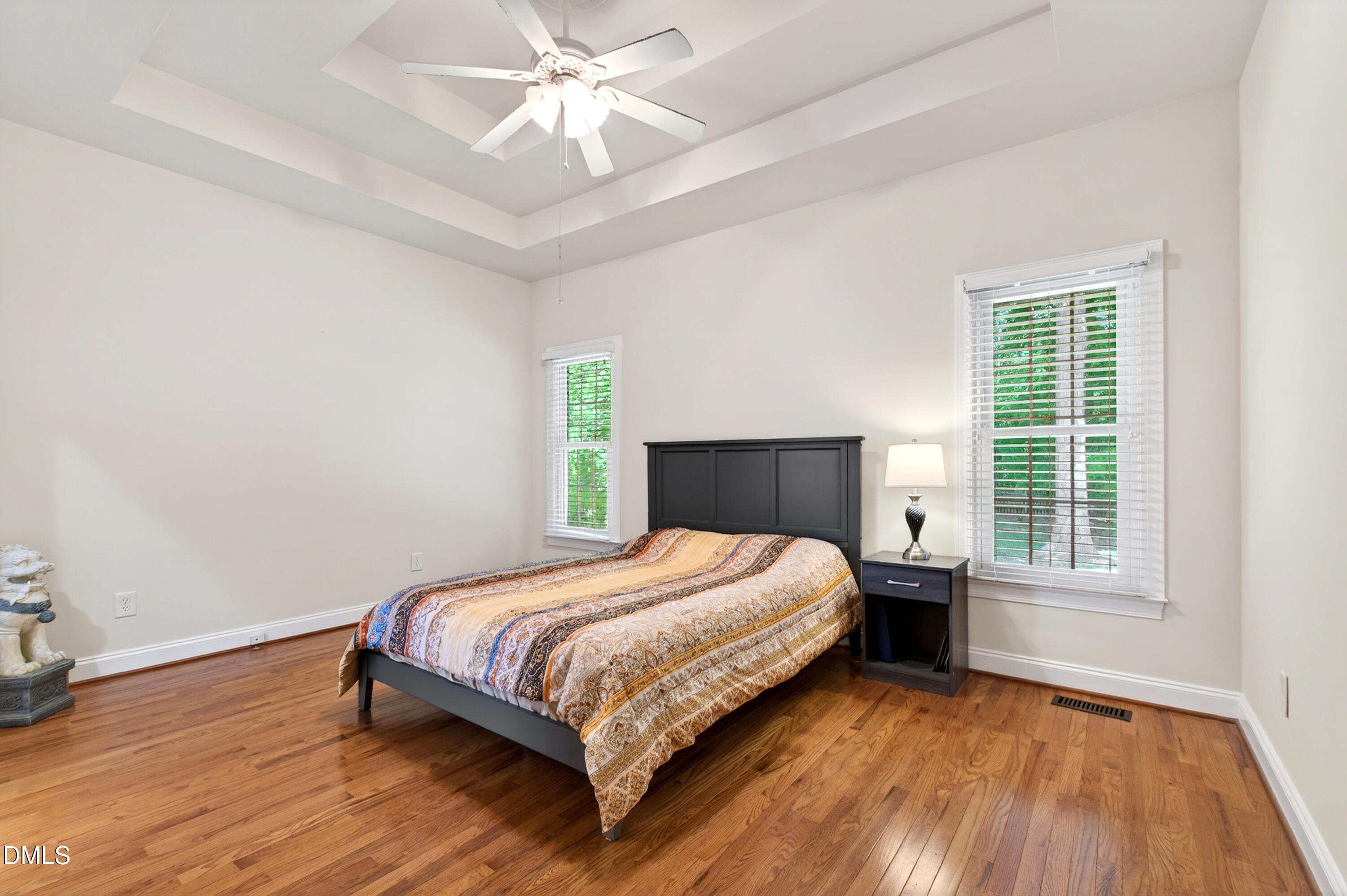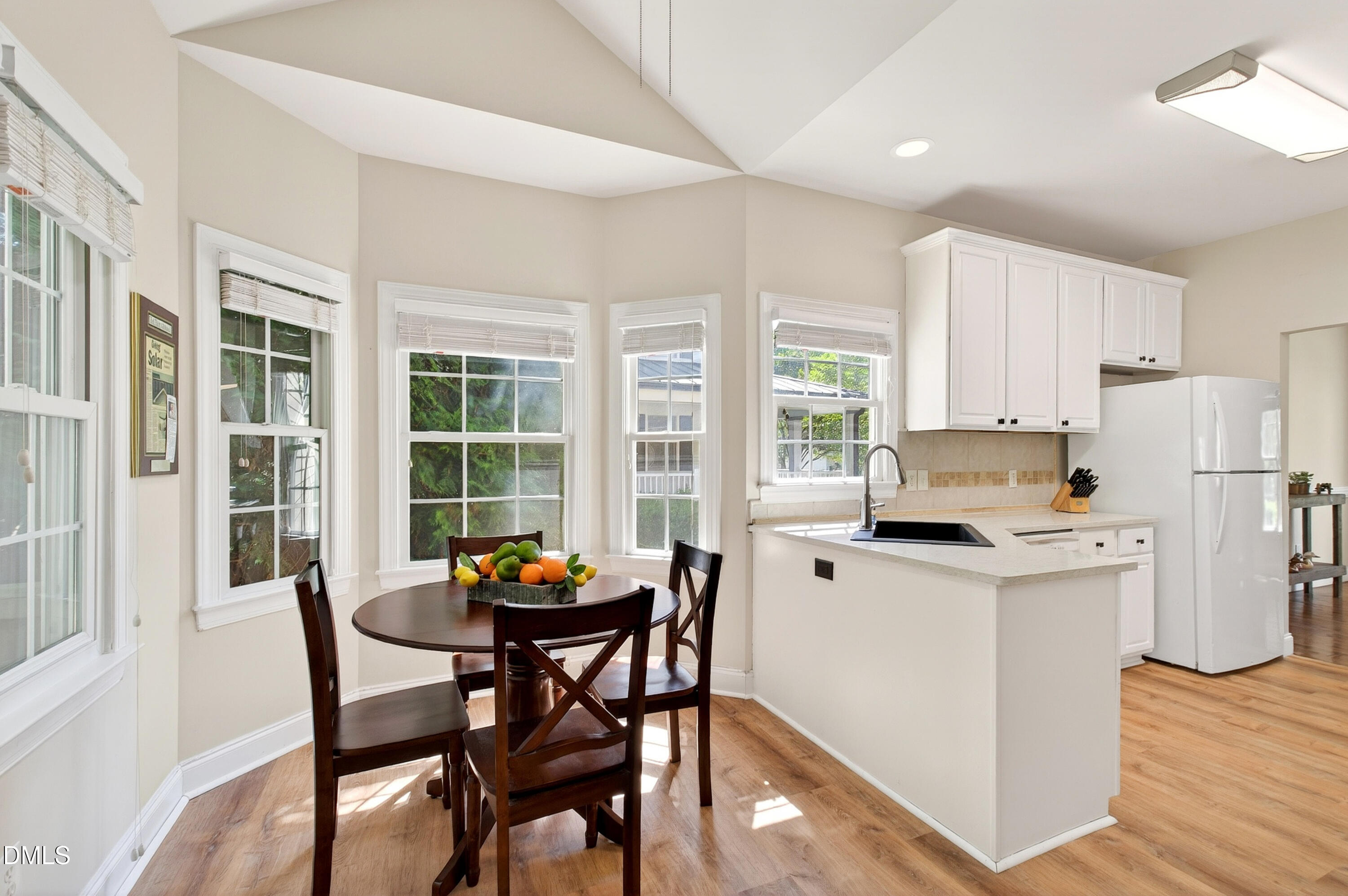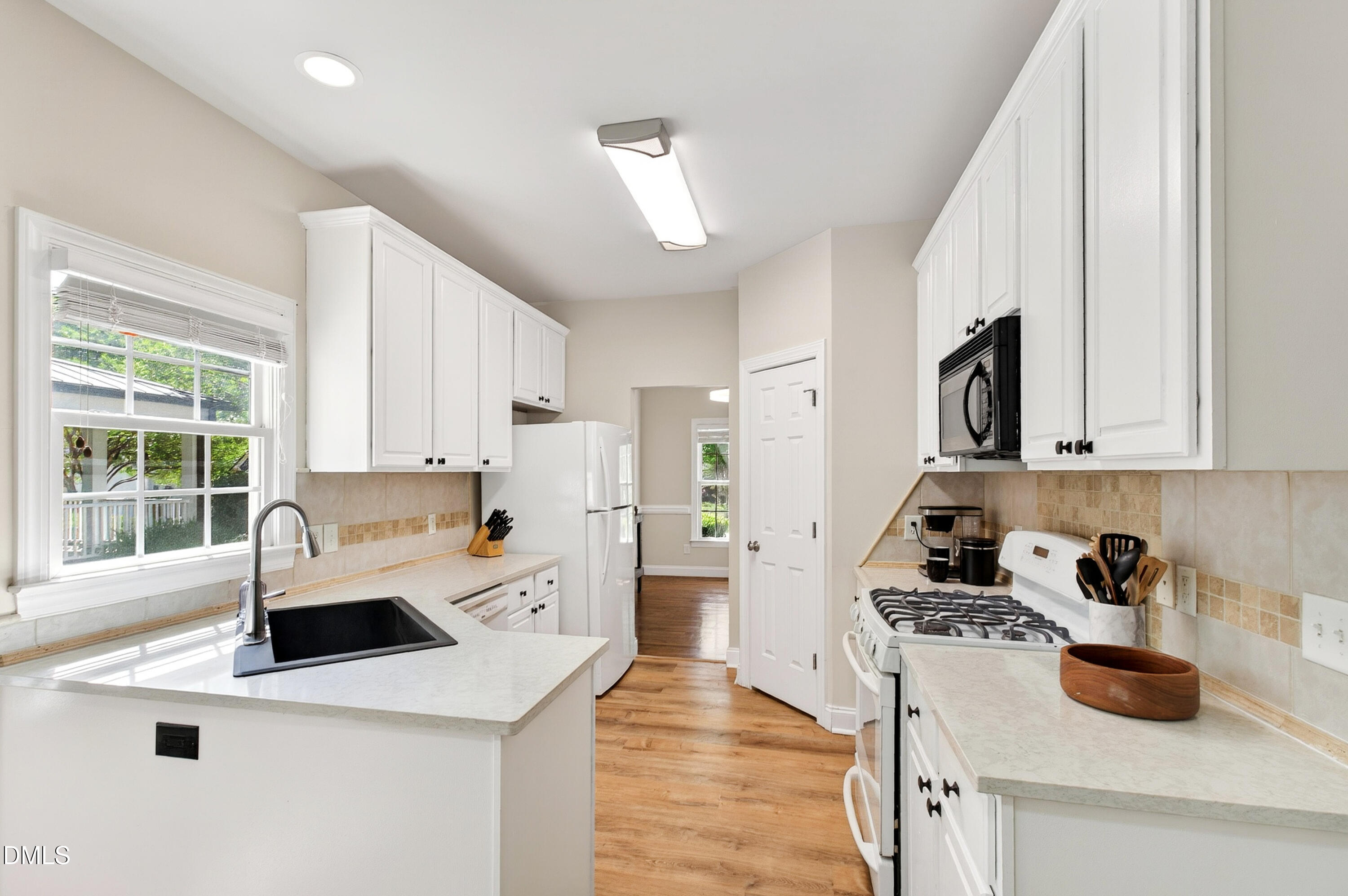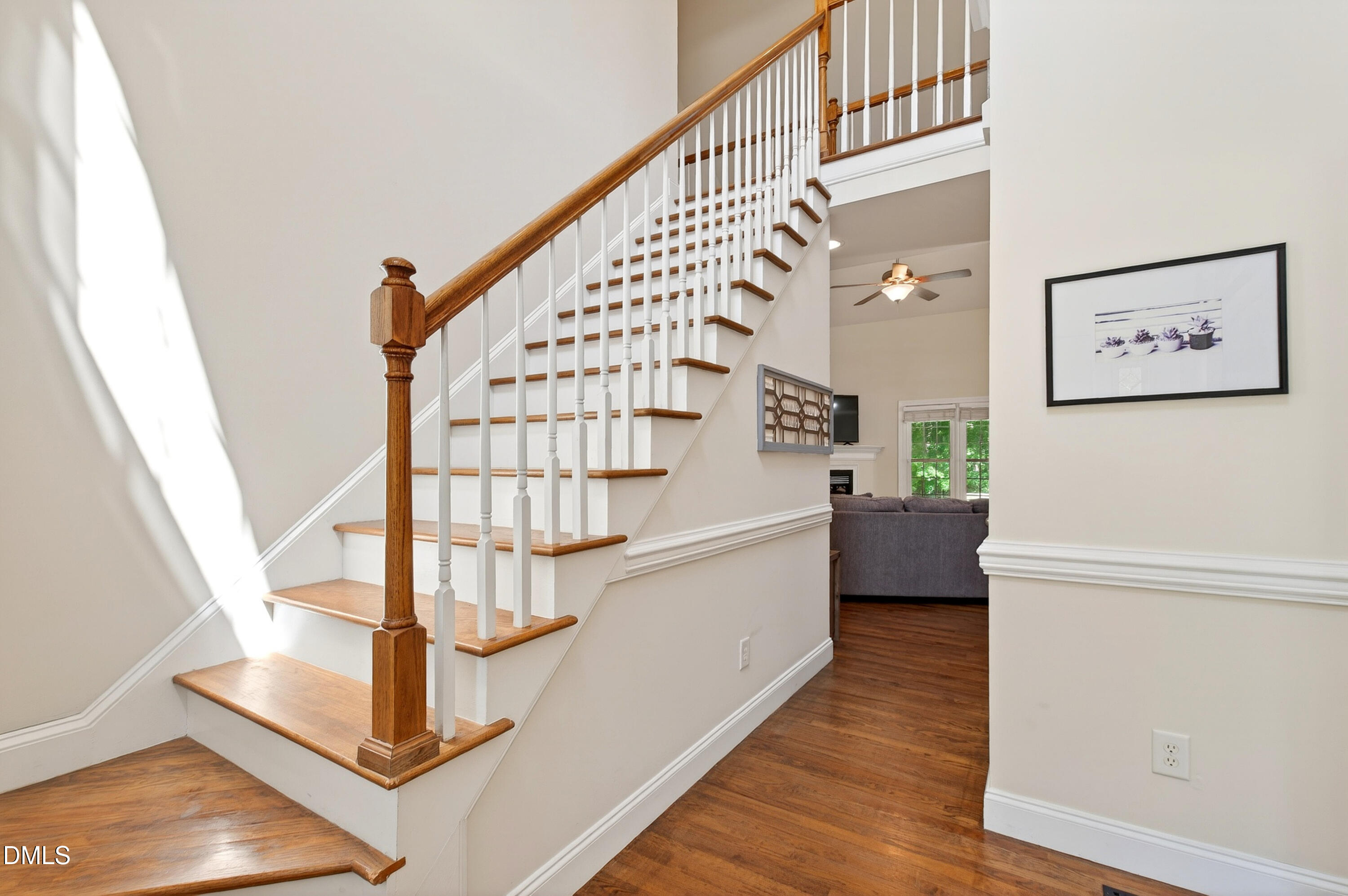 All the conveniences of growing Chatham Park in an established, traditional neighborhood, look no further than 182 Chatham Mill! Situated in highly desired Chatham Forest neighborhood, known for it's beautiful tree-lined streets and community feel, this traditional home offers comfort and style with first floor living. Enjoy the convenience of walking or biking to downtown Pittsboro for shopping and dining with Knight Farm Community Park, Chatham Park, and Jordan Lake recreation areas just minutes away. Inside, an open and flexible floor plan is filled with natural light and features hardwood floors throughout the main living areas and first floor primary suite. The updated kitchen includes quartz countertops, LVP flooring, a large kitchen sink, and painted cabinets with modern hardware. The vaulted living room with gas log fireplace flows into a sunny breakfast nook, while the formal dining room - complete with new French doors - also works perfectly as a home office. The main-level primary suite offers privacy and comfort with a tray ceiling, walk-in closet, and spacious bath featuring a soaking tub, dual vanity, and updated tiled walk-in shower with bench. Upstairs includes two generously sized bedrooms with ceiling fans, a bonus room, and added hardwood flooring in the hallway. Set on a flat 0.26-acre lot, the fully fenced backyard backs to wooded HOA land for added privacy and includes a two-tier deck. Additional highlights include a newer roof (2024), a covered front porch with updated lighting, and a 2-car garage with built-in shelving and ample driveway parking. With easy access to US-64 and 15-501 commuting to Chapel Hill, Durham, Apex, and Cary has never been easier. All of this plus neighborhood amenities including a playground and basketball court, with low HOA dues of just $100/quarter. Welcome Home!