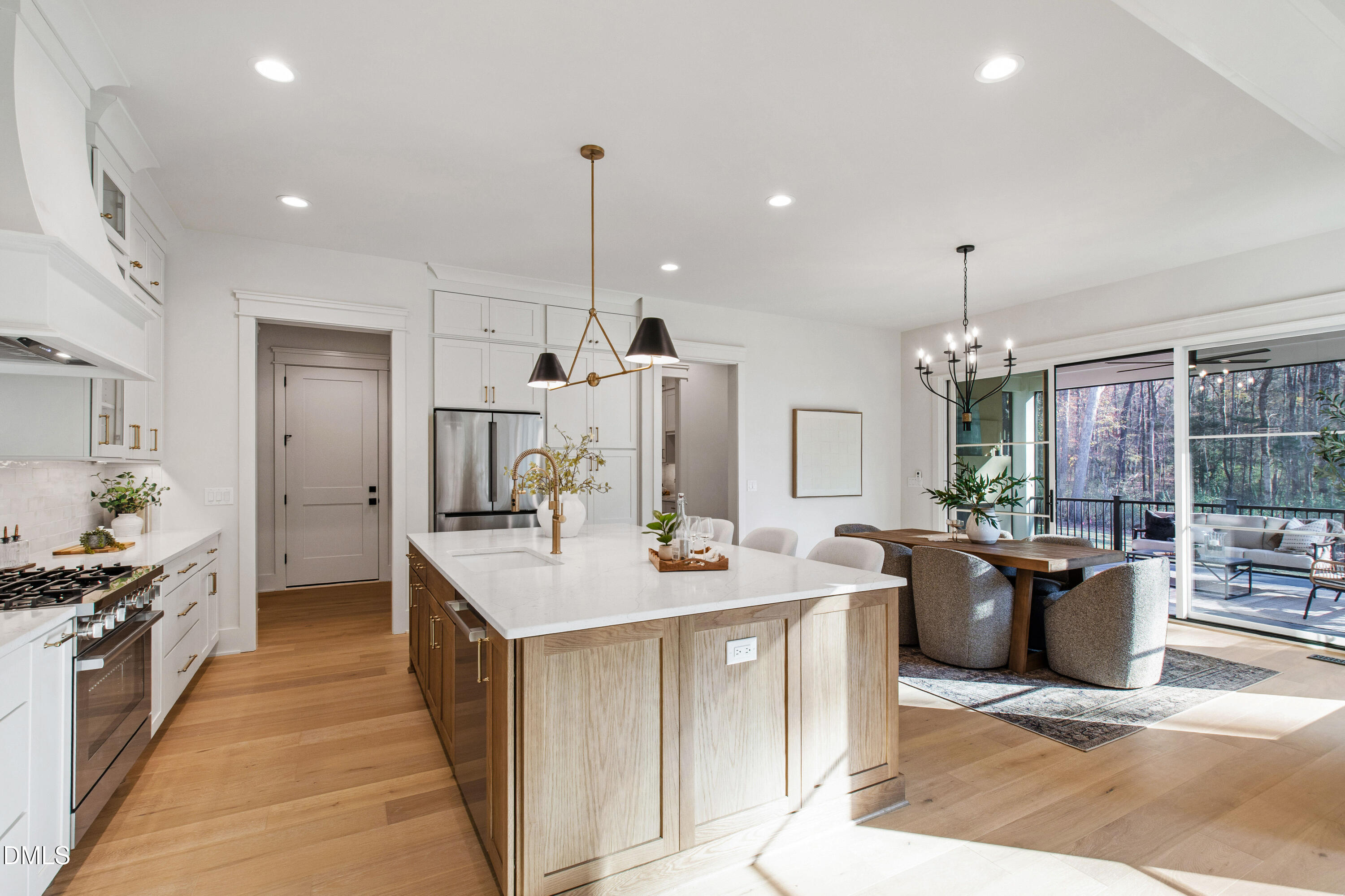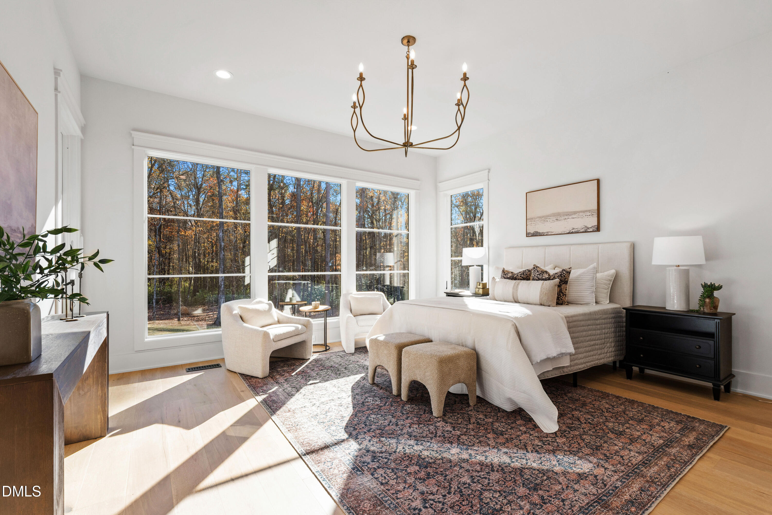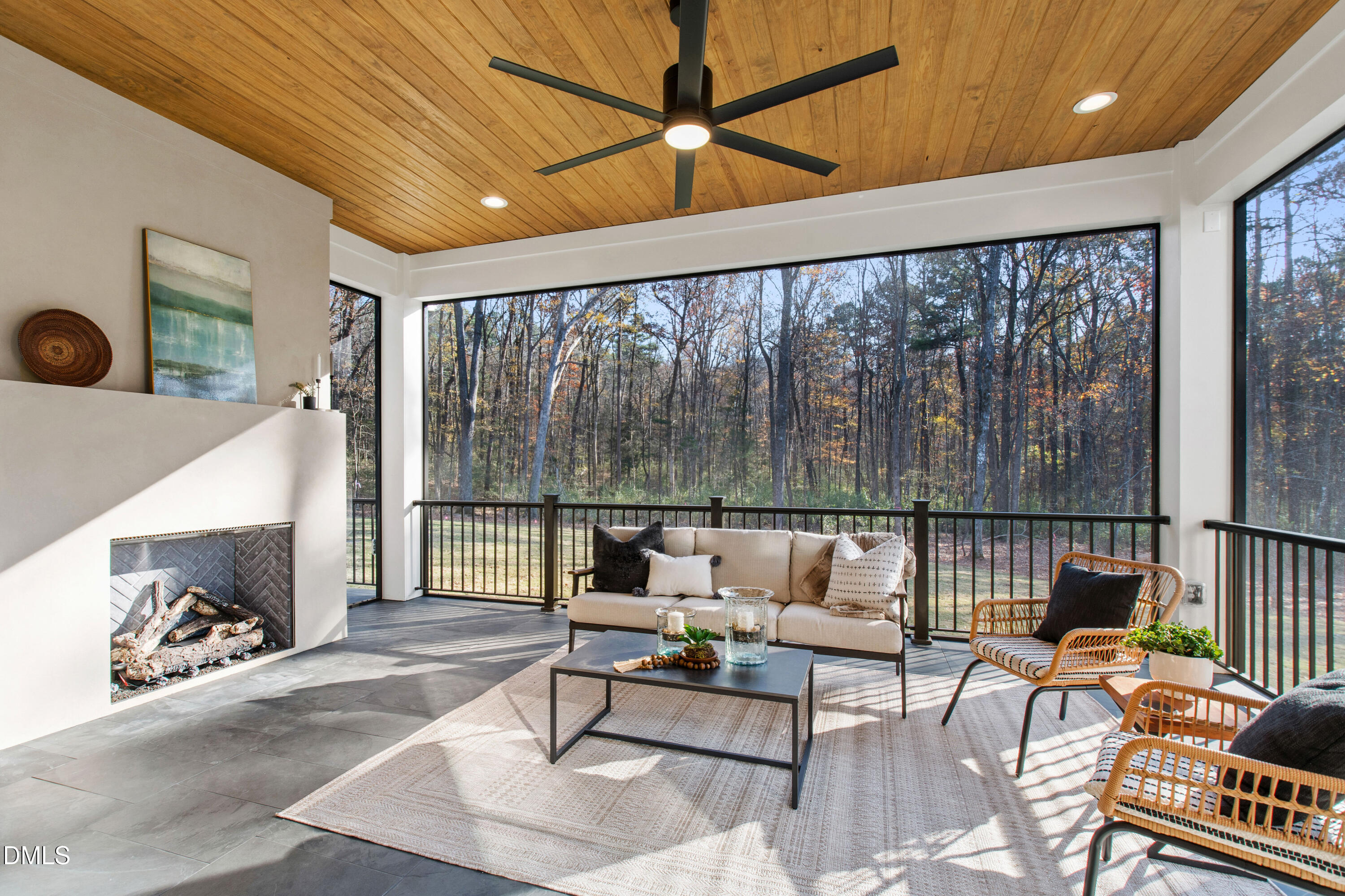 Nestled against a backdrop of towering hardwoods, this breathtaking new-construction modern Tudor blends refined luxury with the serenity of nature. Crafted by the esteemed team at Homes by Wolf Creek, every detail has been curated to create a home that feels both exquisite and warmly livable. Step inside and be greeted by sun-drenched spaces, soaring ceilings, and expansive windows framing picturesque wooded views. The entryway sets the tone - elegant, inviting, and undeniably special. The heart of the home is its chef's kitchen, where bespoke cabinetry, luxury appliances, a spacious scullery, and refined finishes come together in perfect harmony. A stunning screened porch offers a year-round retreat: sip your morning coffee listening to birdsong, or cozy up by the outdoor fireplace as the sun sets through the trees. The primary suite is a sanctuary, beautifully proportioned with a spa-inspired bathroom and a generous walk-in closet. With four bedrooms and four-and-a-half thoughtfully designed bathrooms, there is space for everyone to unwind. Two laundry rooms provide effortless everyday convenience, while the dedicated office supports focus and productivity. Upstairs, a light-filled media/game room with a wet bar offers the perfect setting for entertaining, movie nights, or relaxed weekends at home. The future of the neighborhood is equally exciting: residents will enjoy access to a planned community pool and amenities, elevating the lifestyle even further. Don't miss the opportunity to be the first of many in this exquisite new neighborhood just minutes from downtown Chapel Hill.