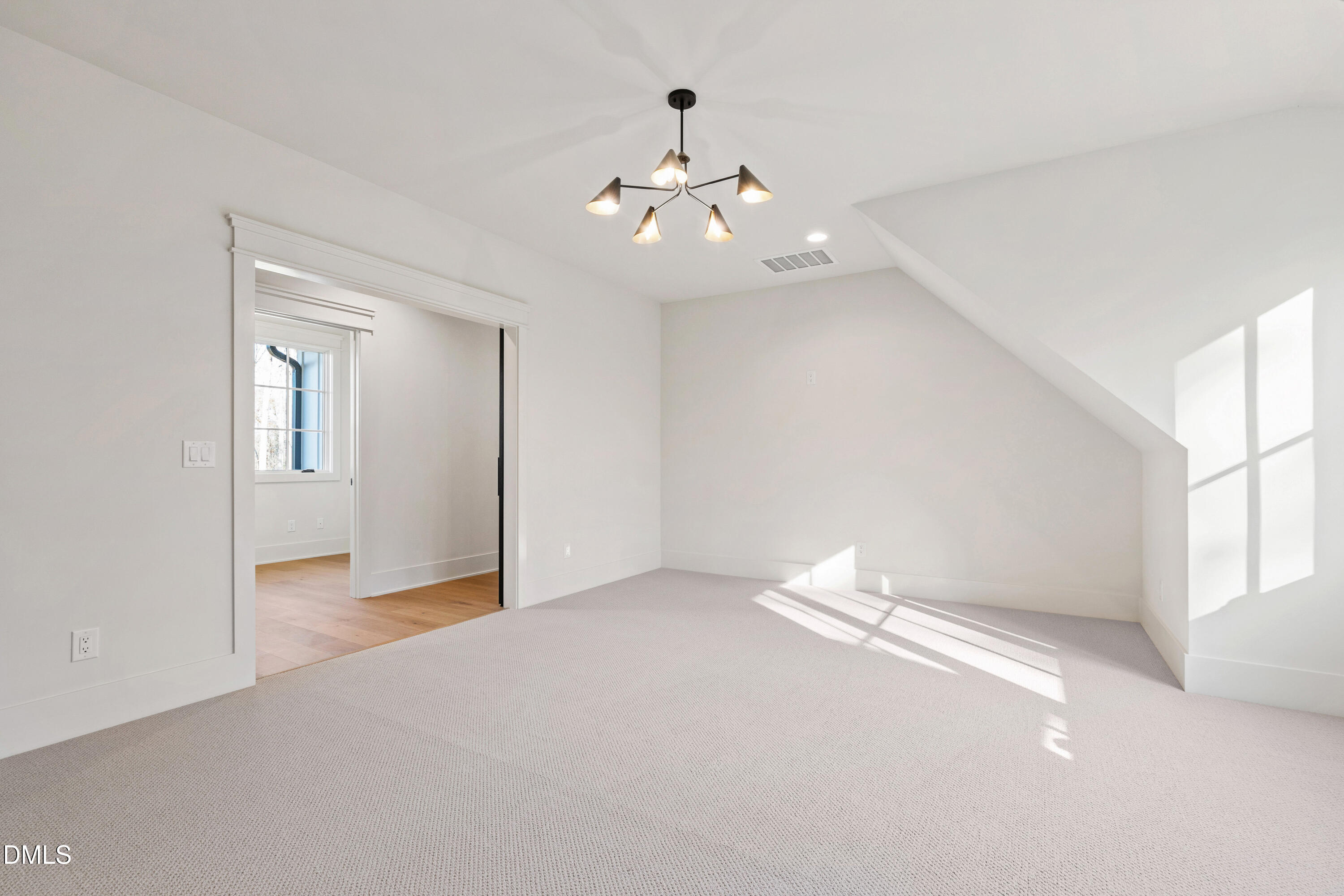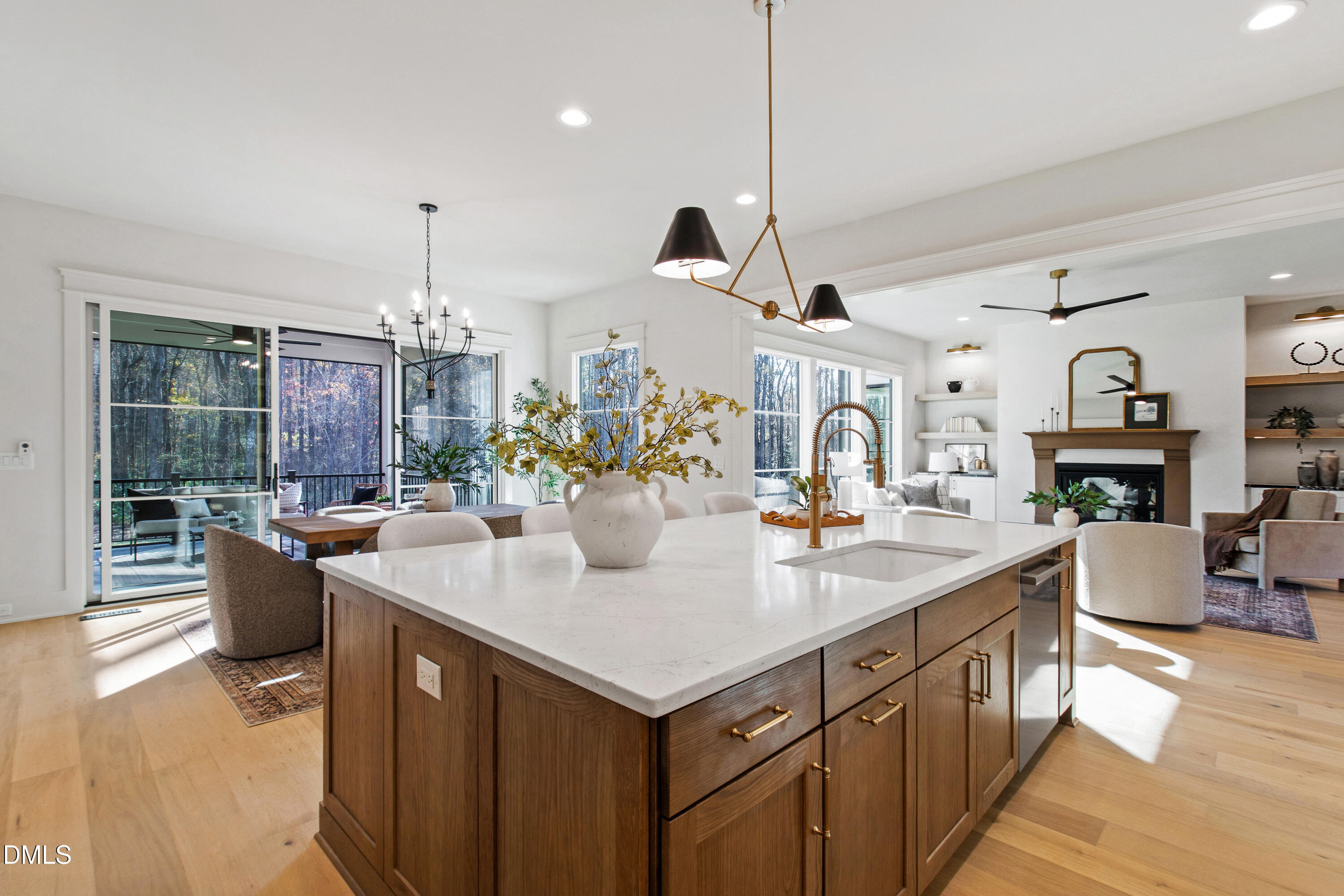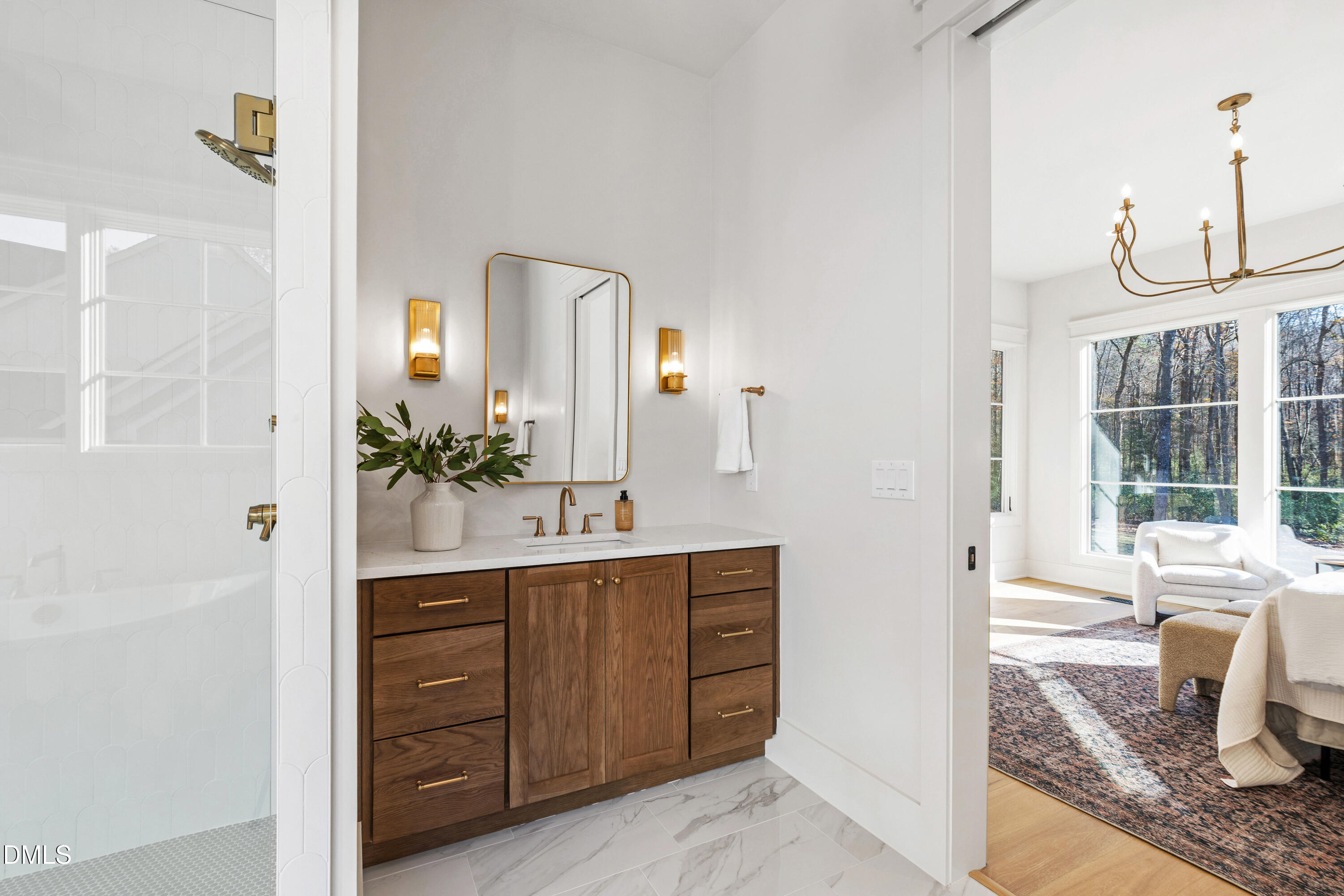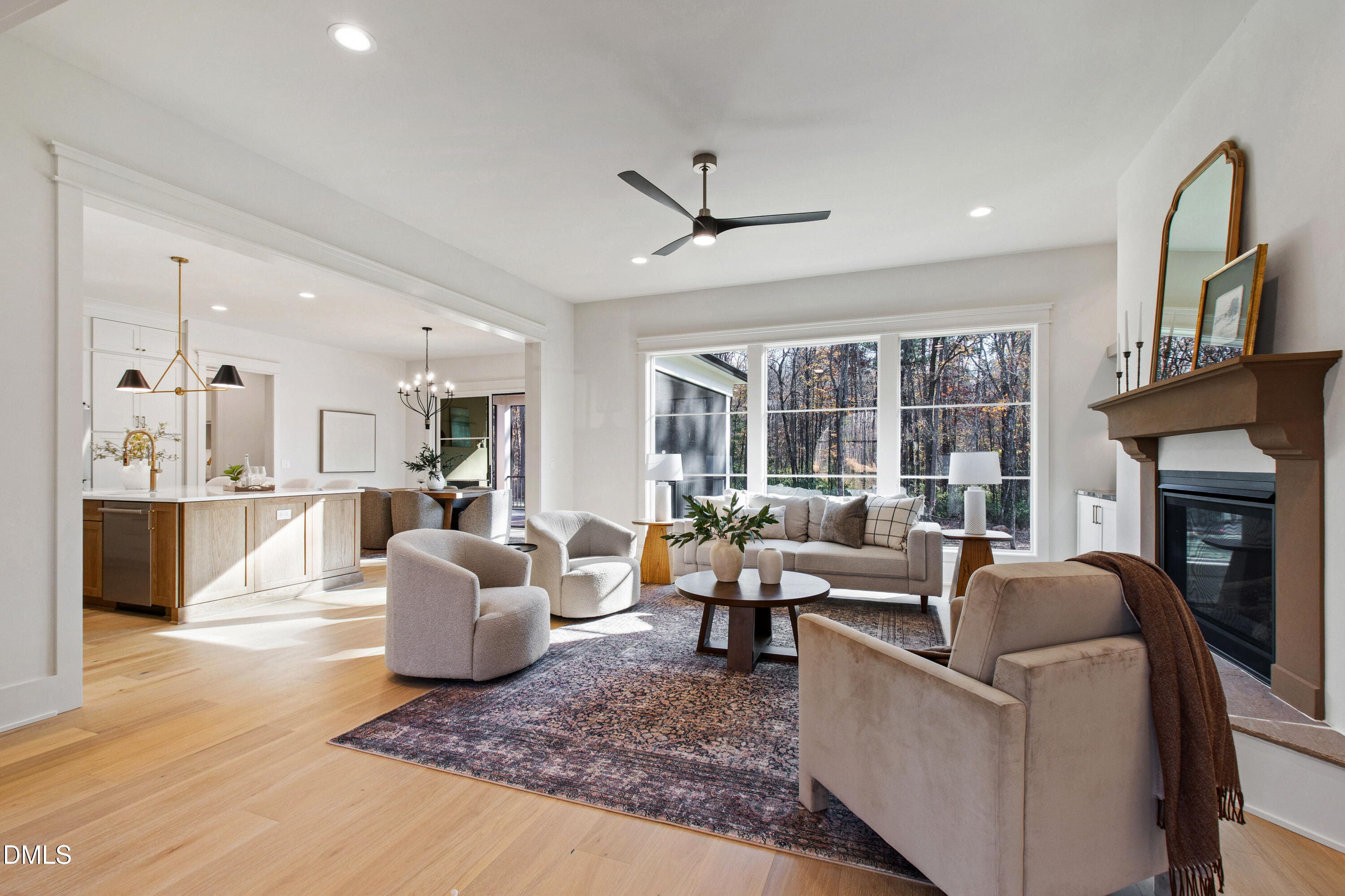 Nestled against a backdrop of towering hardwoods, this breathtaking new-construction modern Tudor blends refined luxury with the serenity of nature. Crafted by the esteemed team at Homes by Wolf Creek, every detail has been curated to create a home that feels both exquisite and warmly livable. Step inside and be greeted by sun-drenched spaces, soaring ceilings, and expansive windows framing picturesque wooded views. The entryway sets the tone - elegant, inviting, and undeniably special. The heart of the home is its chef's kitchen, where bespoke cabinetry, luxury appliances, a spacious scullery, and refined finishes come together in perfect harmony. A stunning screened porch offers a year-round retreat: sip your morning coffee listening to birdsong, or cozy up by the outdoor fireplace as the sun sets through the trees. The primary suite is a sanctuary, beautifully proportioned with a spa-inspired bathroom and a generous walk-in closet. With four bedrooms and four-and-a-half thoughtfully designed bathrooms, there is space for everyone to unwind. Two laundry rooms provide effortless everyday convenience, while the dedicated office supports focus and productivity. Upstairs, a light-filled media/game room with a wet bar offers the perfect setting for entertaining, movie nights, or relaxed weekends at home. The future of the neighborhood is equally exciting: residents will enjoy access to a planned community pool and amenities, elevating the lifestyle even further. Don't miss the opportunity to be the first of many in this exquisite new neighborhood just minutes from downtown Chapel Hill.