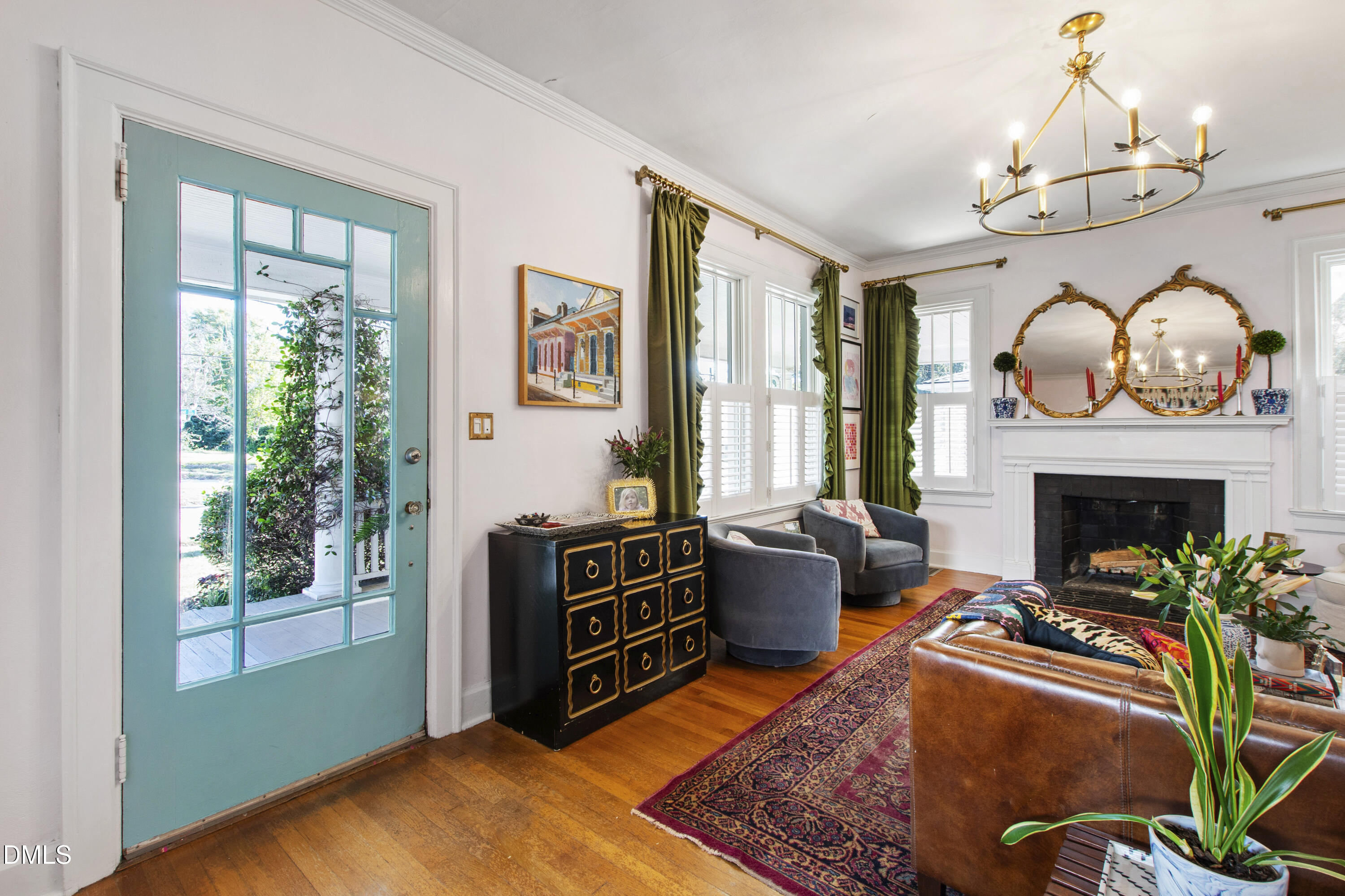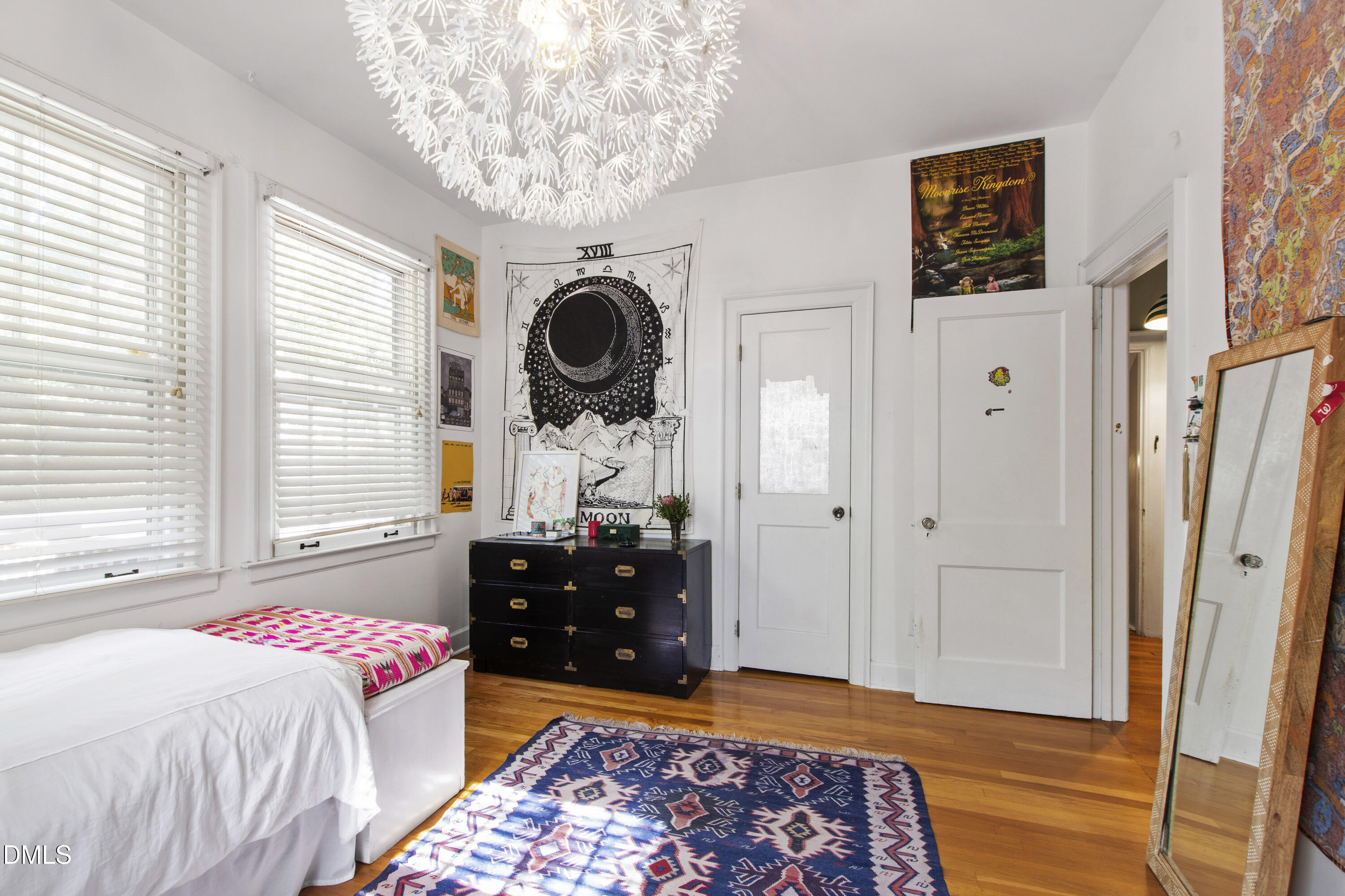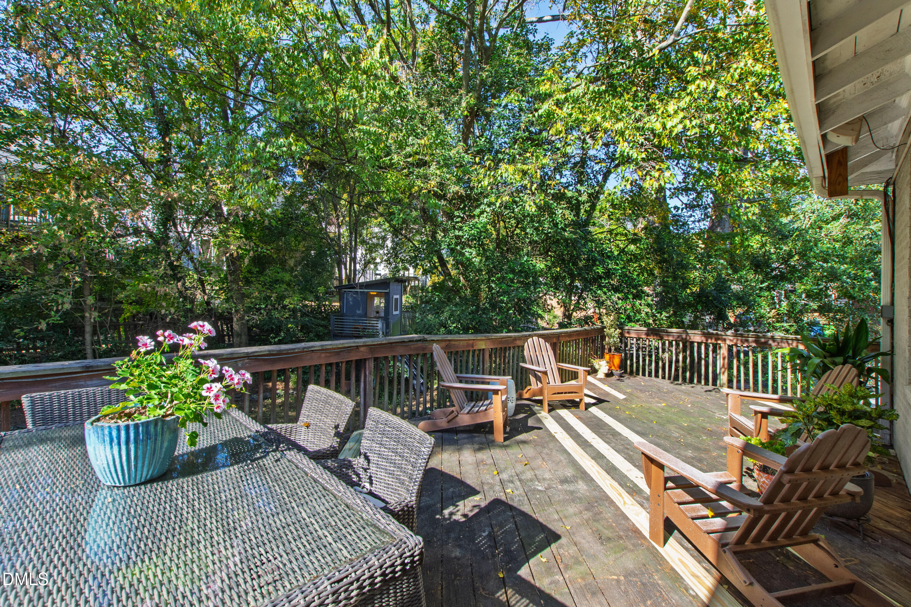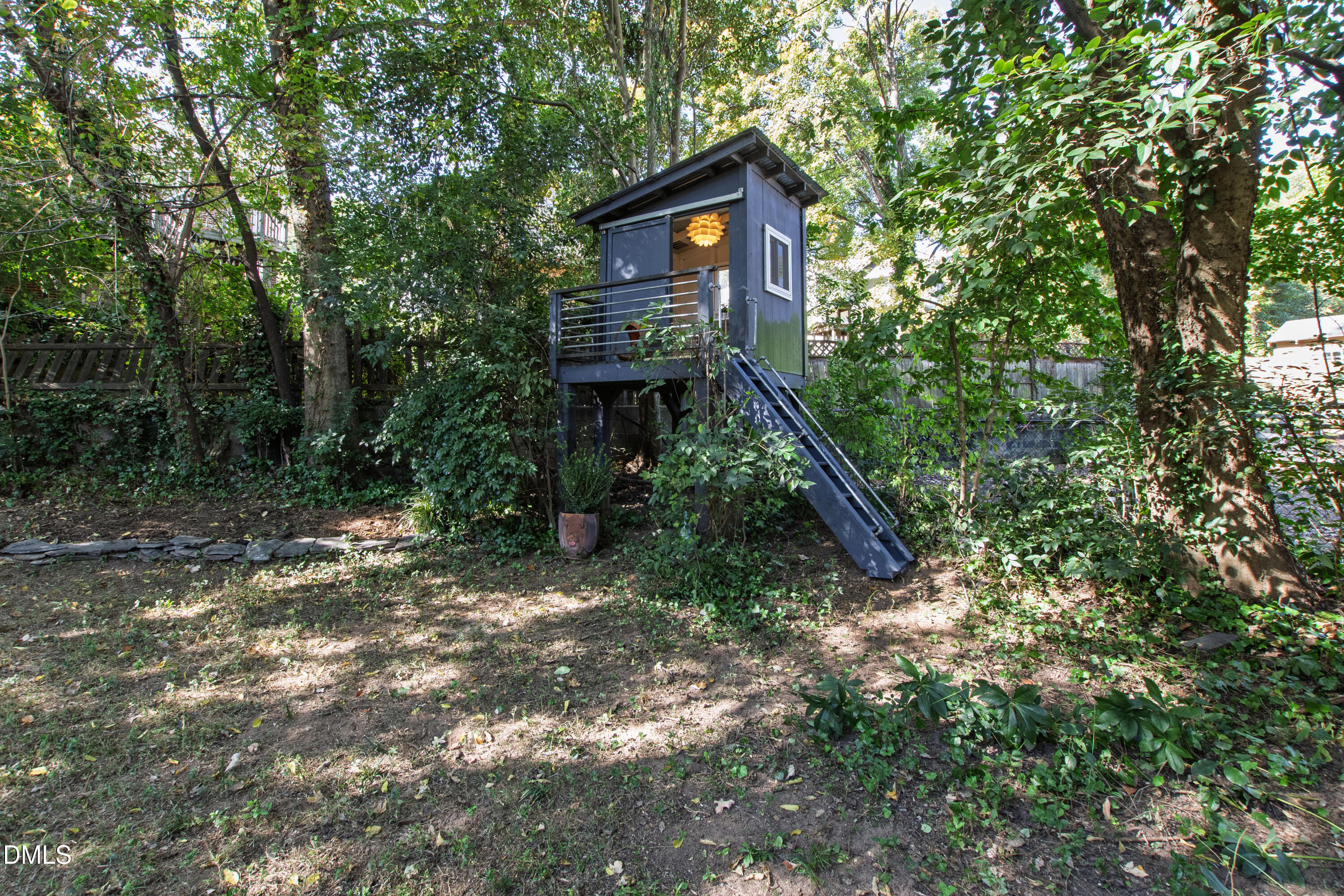In the heart of Bloomsbury, this inviting home blends classic architecture with thoughtful updates; every room carries a sense of warmth and light. Hardwood floors anchor the main level; crown molding, built-ins, and a transom window add depth and character that speak to its era. The kitchen feels bright and personal; a glass-block wall filters soft daylight across the space, while a built-in banquette creates the perfect spot for casual meals. Crystal-style knobs and quality appliances add polish without losing charm. Bathrooms feature tile floors, medicine cabinets, and clever storage; window treatments and neighborhood-style shutters throughout the home provide both comfort and cohesion. Step outside to a fully fenced backyard where a powered tree house conveys; it's a playful, unexpected touch that makes the home feel alive. Also, downstairs are more unexpected surprises. A family room, den, playroom, laundry, bedroom, kitchenette, half bath, large closets, tool room and storage create endless options. Lower level is not counted in square footage since there is no HVAC. Although it stays very comfortable, sellers use space heaters if needed. Adding mini-splits would almost double the home's square footage. And talk about convenience! Leave the cars at home, a double wide driveway affords plenty of parking so you can walk to Five Points and all of its charm.
