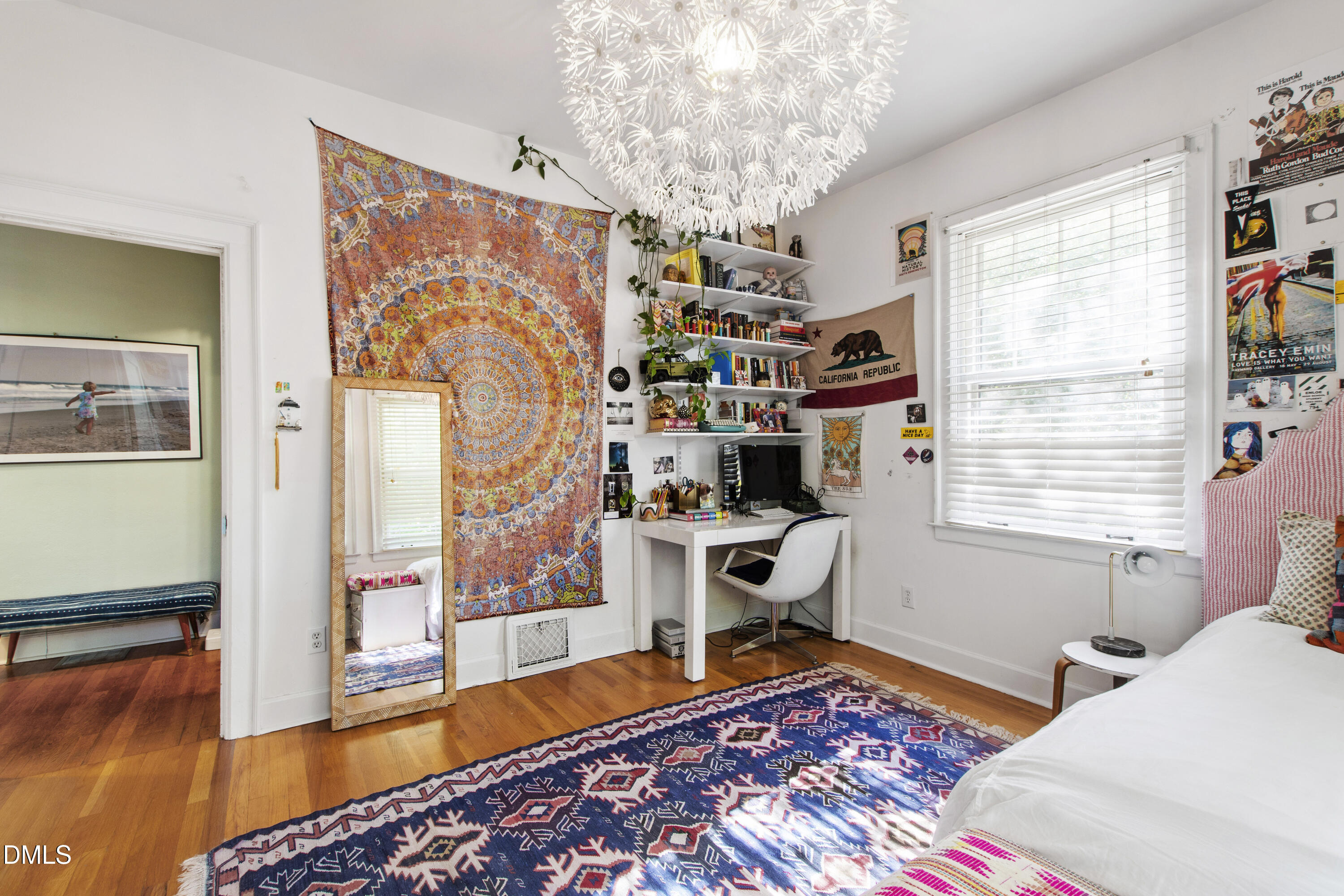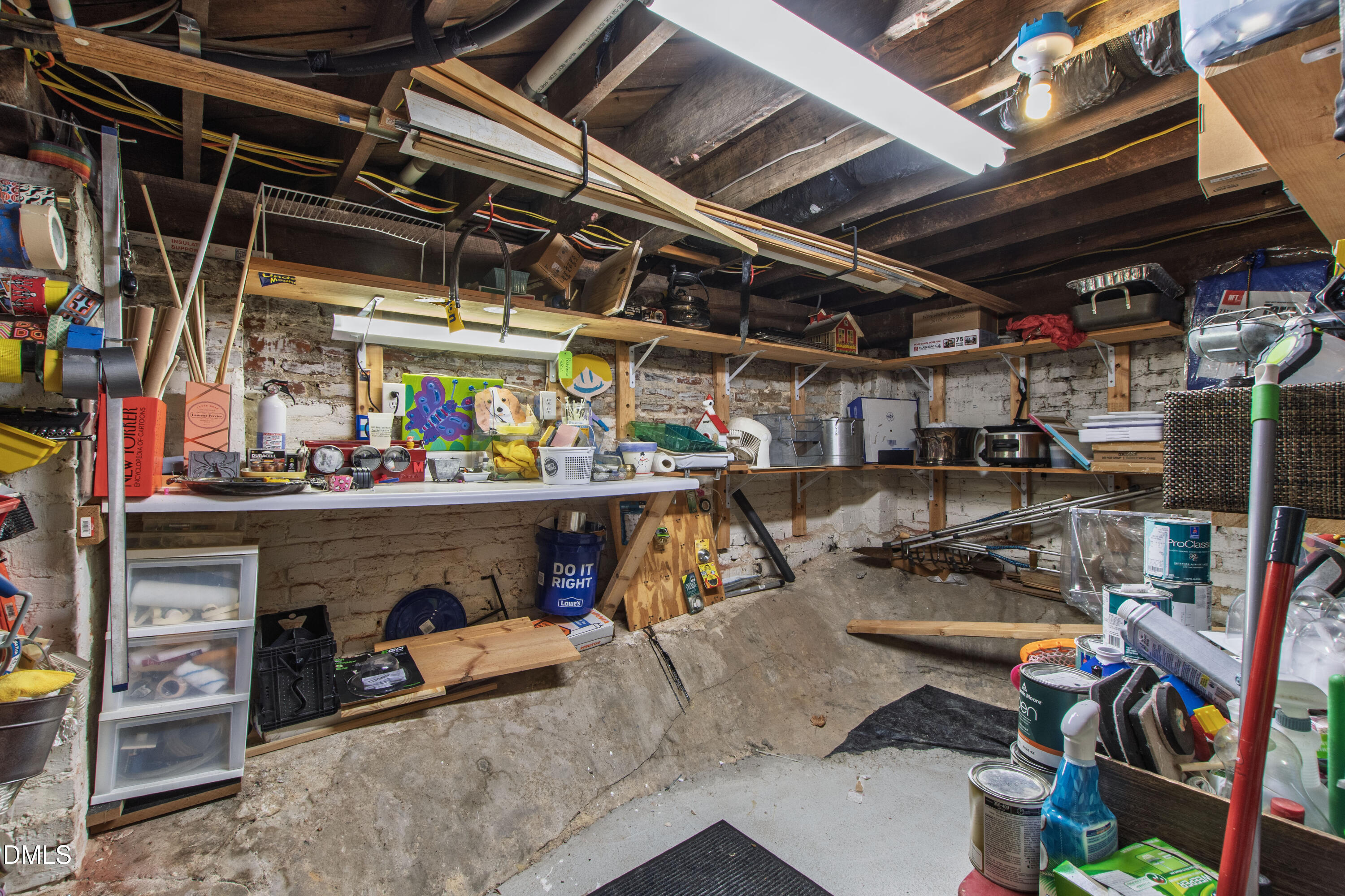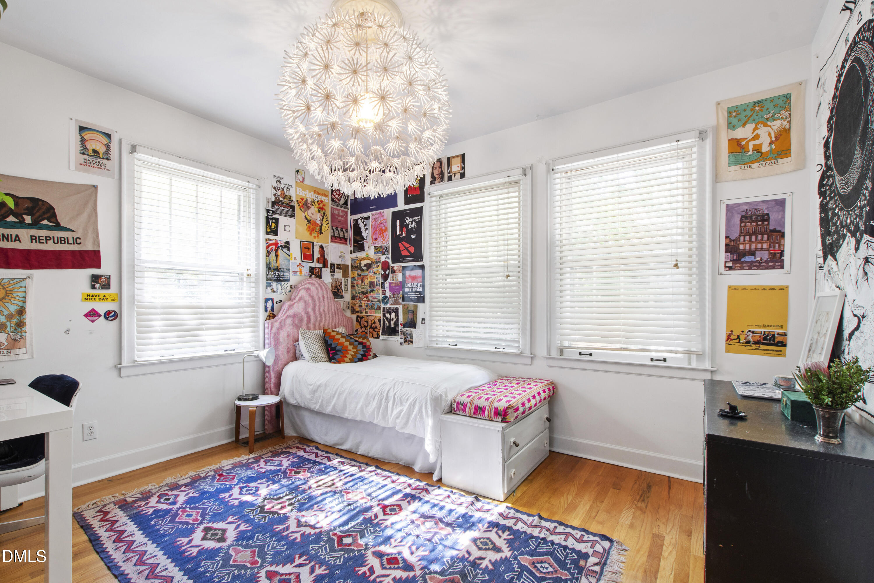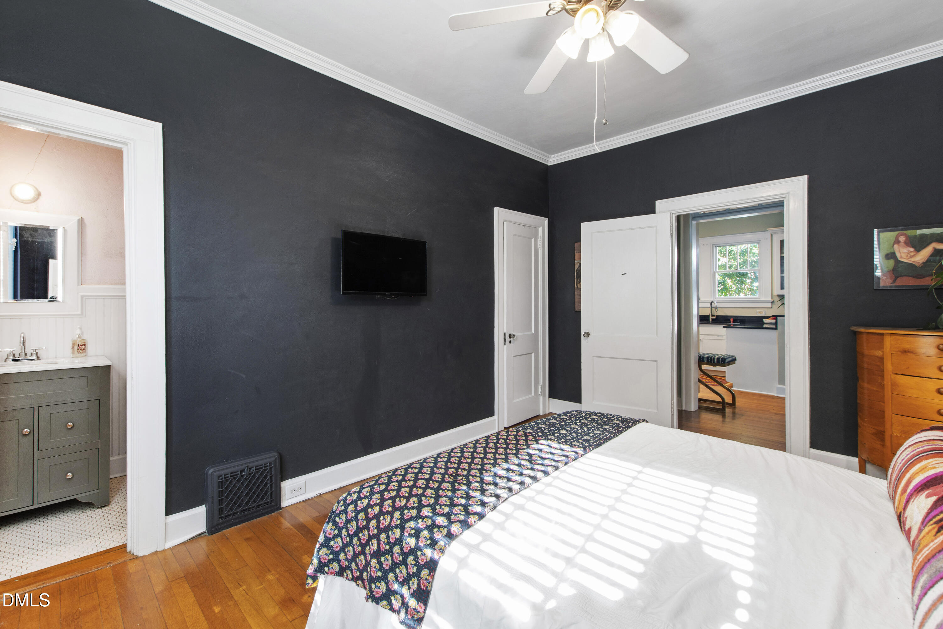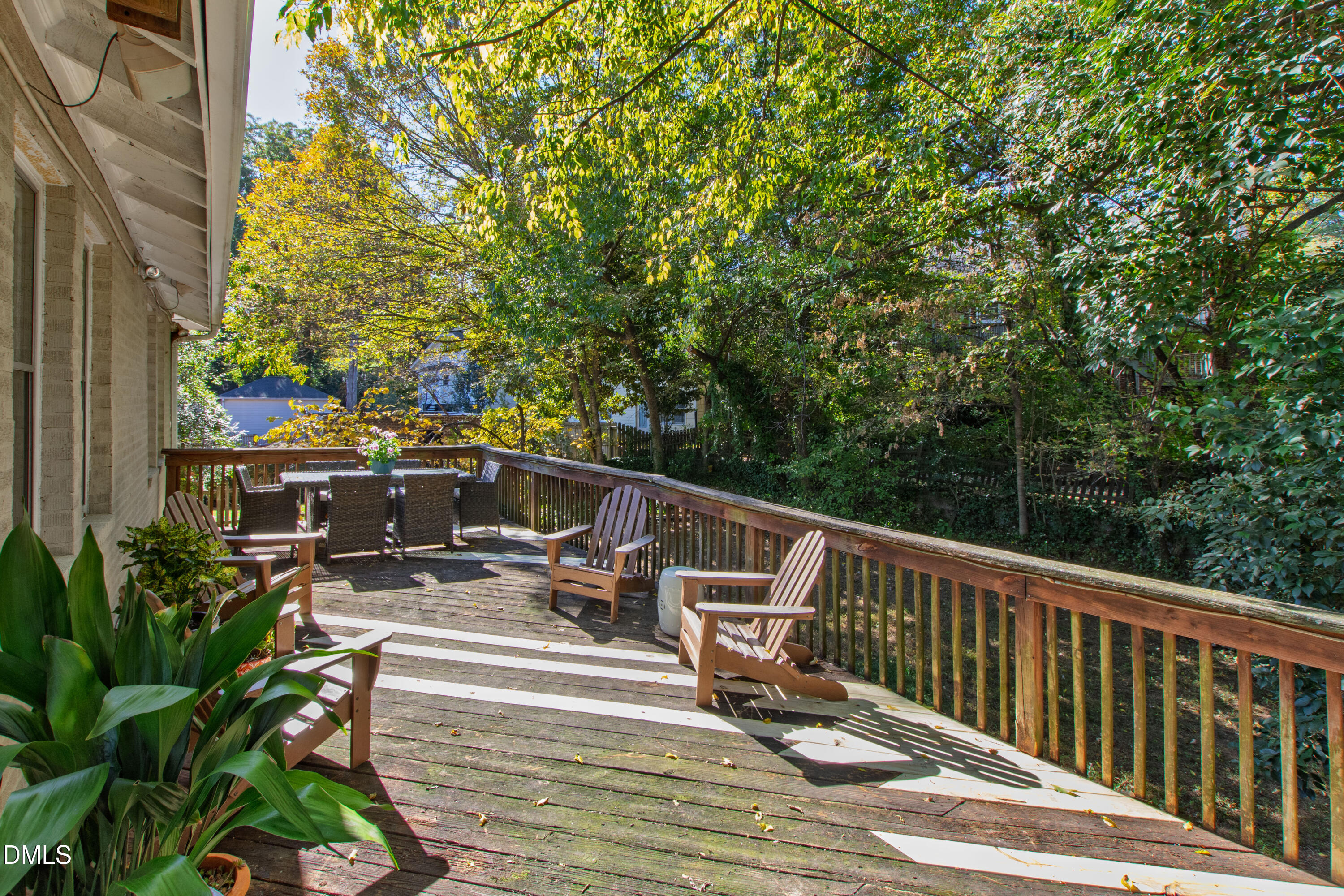 In the heart of Bloomsbury, this inviting home blends classic architecture with thoughtful updates; every room carries a sense of warmth and light. Hardwood floors anchor the main level; crown molding, built-ins, and a transom window add depth and character that speak to its era. The kitchen feels bright and personal; a glass-block wall filters soft daylight across the space, while a built-in banquette creates the perfect spot for casual meals. Crystal-style knobs and quality appliances add polish without losing charm. Bathrooms feature tile floors, medicine cabinets, and clever storage; window treatments and neighborhood-style shutters throughout the home provide both comfort and cohesion. Step outside to a fully fenced backyard where a powered tree house conveys; it's a playful, unexpected touch that makes the home feel alive. Also, downstairs are more unexpected surprises. A family room, den, playroom, laundry, bedroom, kitchenette, half bath, large closets, tool room and storage create endless options. Lower level is not counted in square footage since there is no HVAC. Although it stays very comfortable, sellers use space heaters if needed. Adding mini-splits would almost double the home's square footage. And talk about convenience! Leave the cars at home, a double wide driveway affords plenty of parking so you can walk to Five Points and all of its charm.