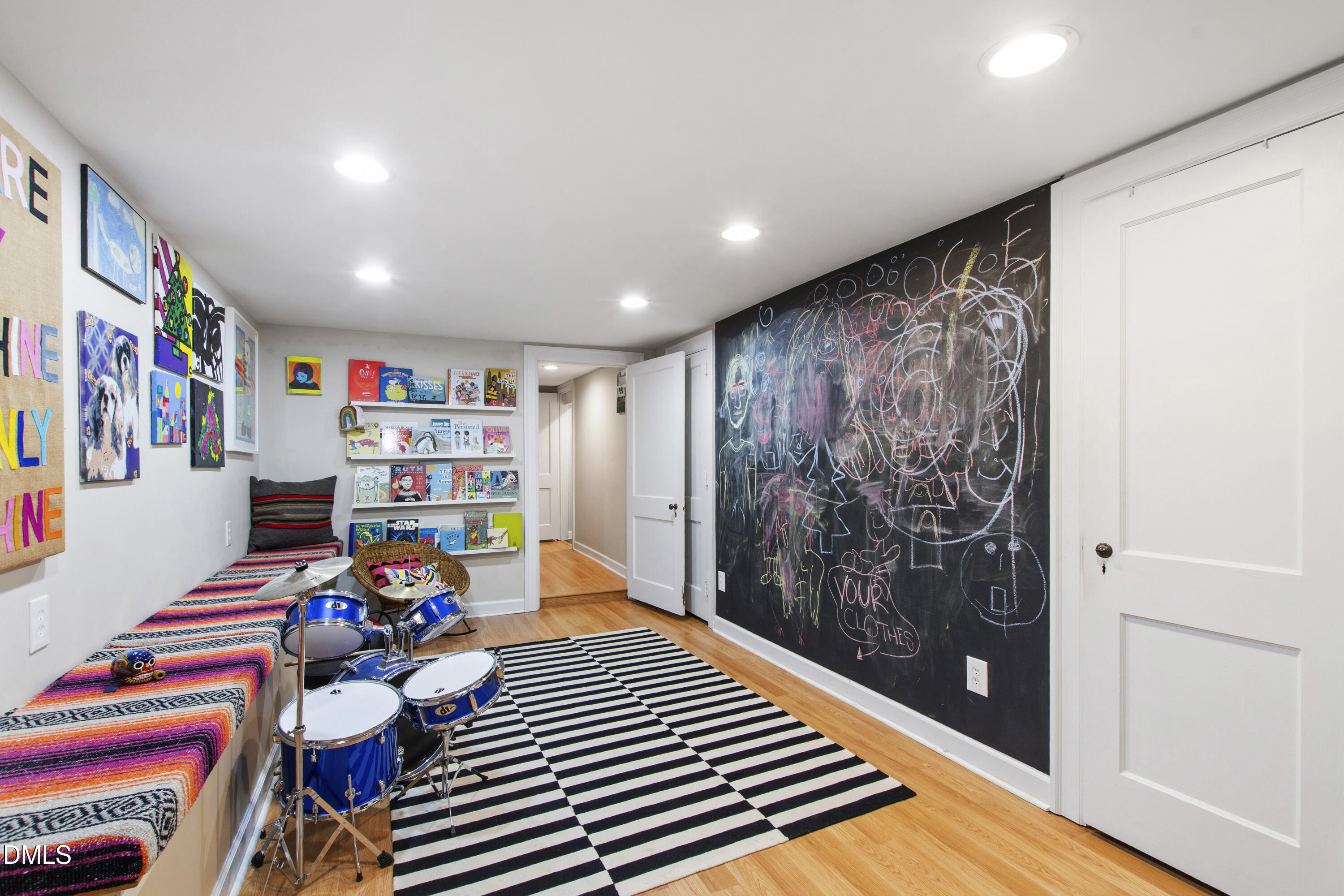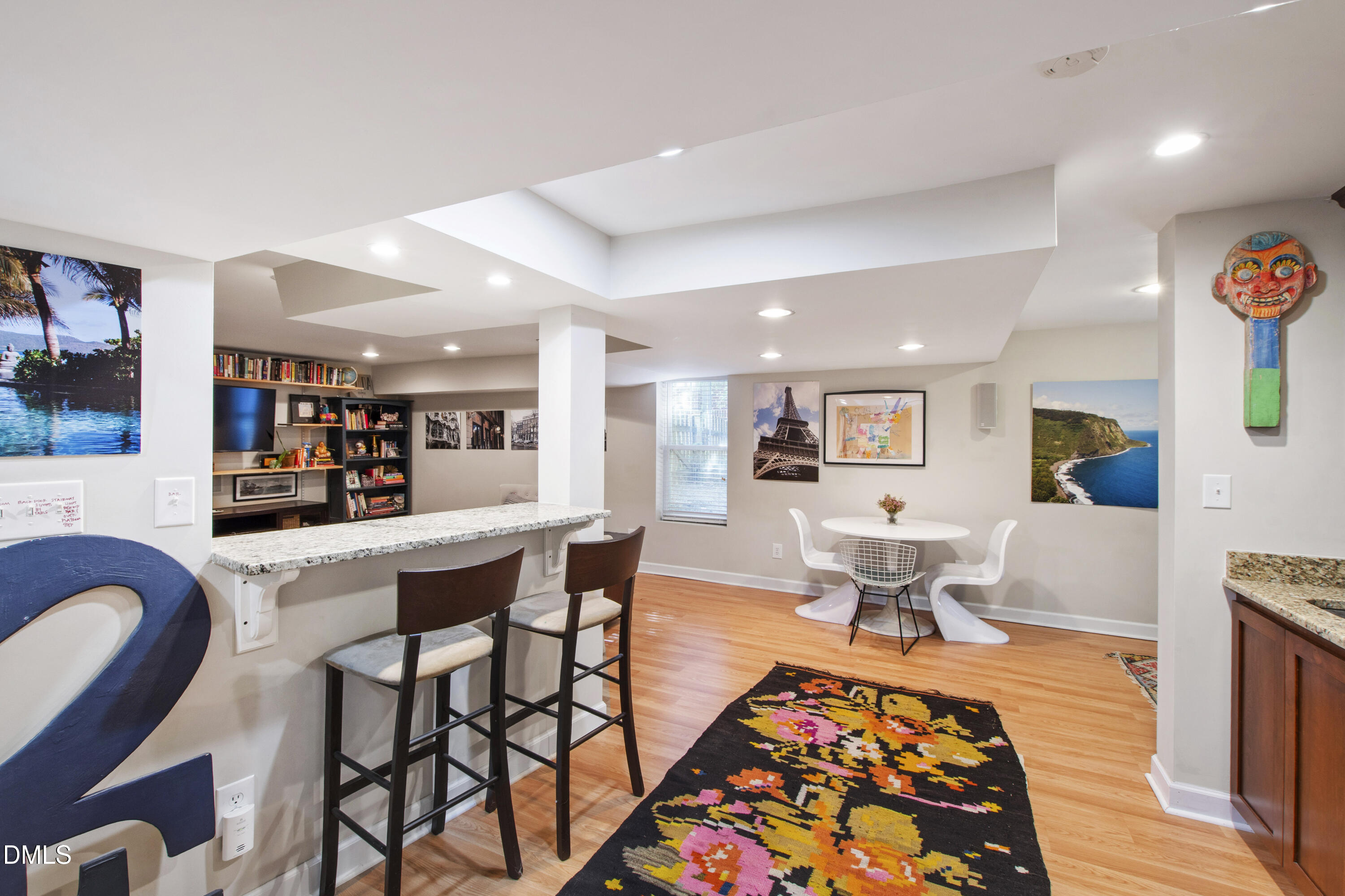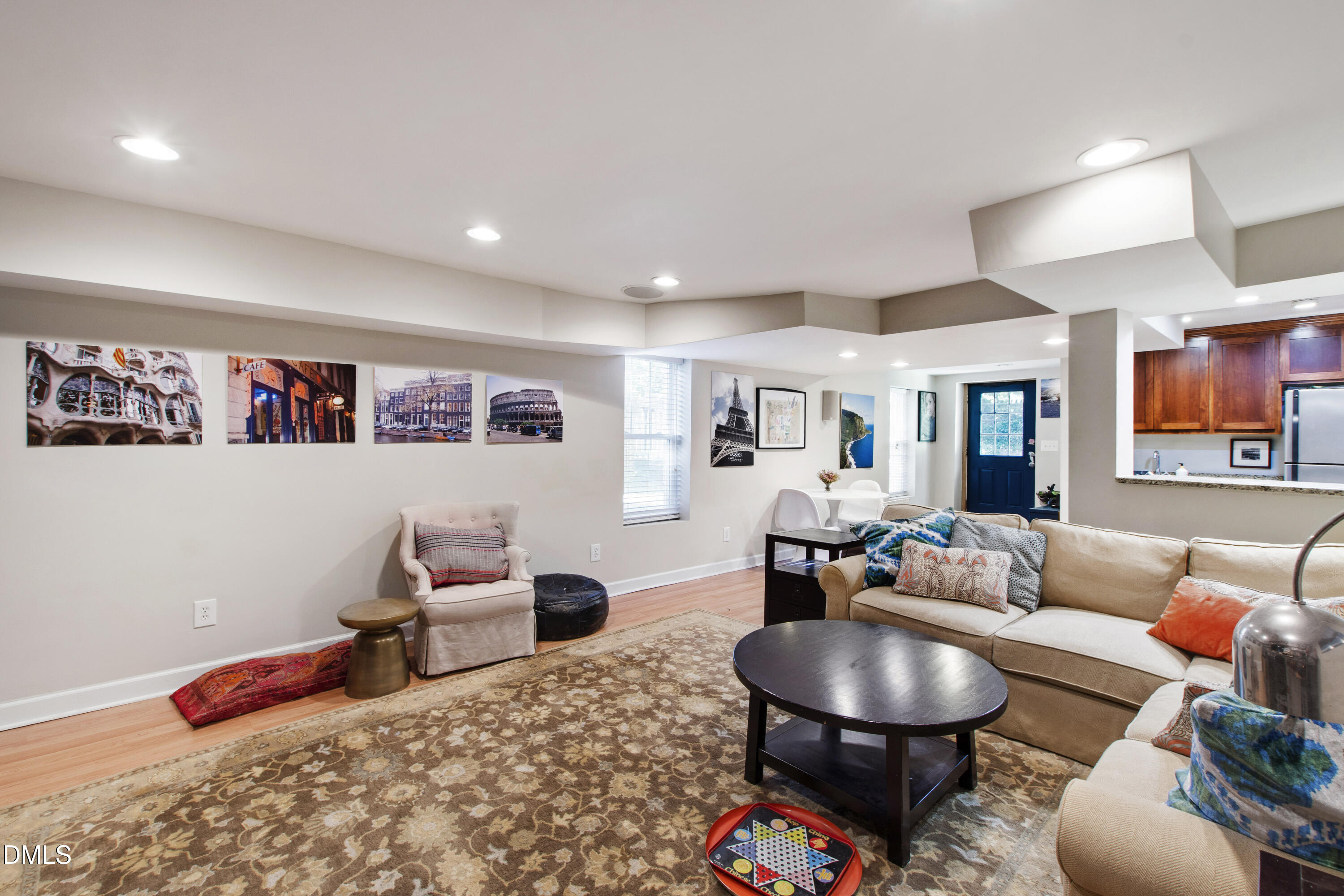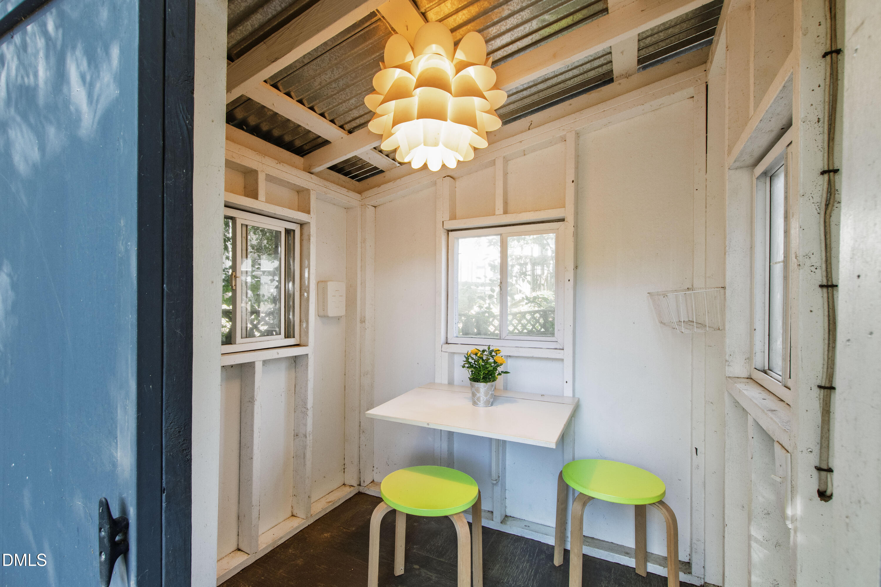 In the heart of Bloomsbury, this inviting home blends classic architecture with thoughtful updates; every room carries a sense of warmth and light. Hardwood floors anchor the main level; crown molding, built-ins, and a transom window add depth and character that speak to its era. The kitchen feels bright and personal; a glass-block wall filters soft daylight across the space, while a built-in banquette creates the perfect spot for casual meals. Crystal-style knobs and quality appliances add polish without losing charm. Bathrooms feature tile floors, medicine cabinets, and clever storage; window treatments and neighborhood-style shutters throughout the home provide both comfort and cohesion. Step outside to a fully fenced backyard where a powered tree house conveys; it's a playful, unexpected touch that makes the home feel alive. Also, downstairs are more unexpected surprises. A family room, den, playroom, laundry, bedroom, kitchenette, half bath, large closets, tool room and storage create endless options. Lower level is not counted in square footage since there is no HVAC. Although it stays very comfortable, sellers use space heaters if needed. Adding mini-splits would almost double the home's square footage. And talk about convenience! Leave the cars at home, a double wide driveway affords plenty of parking so you can walk to Five Points and all of its charm.