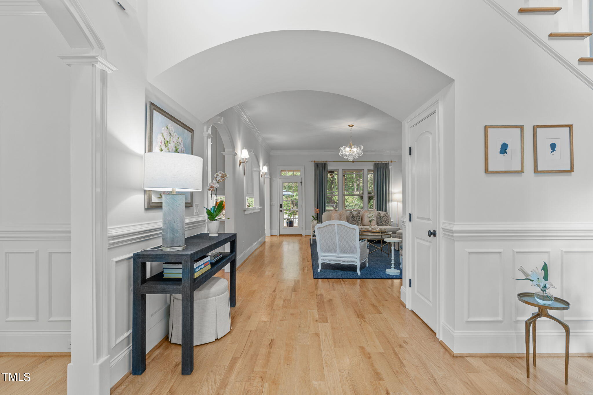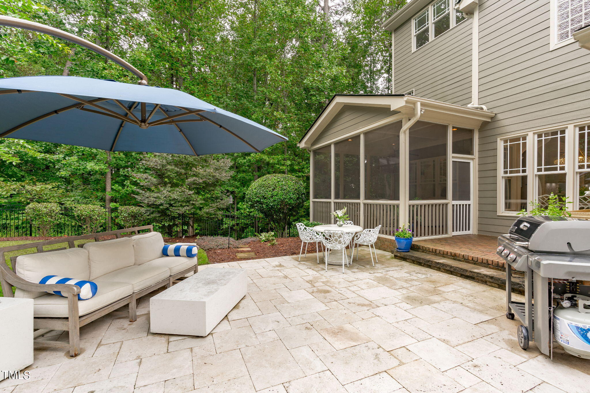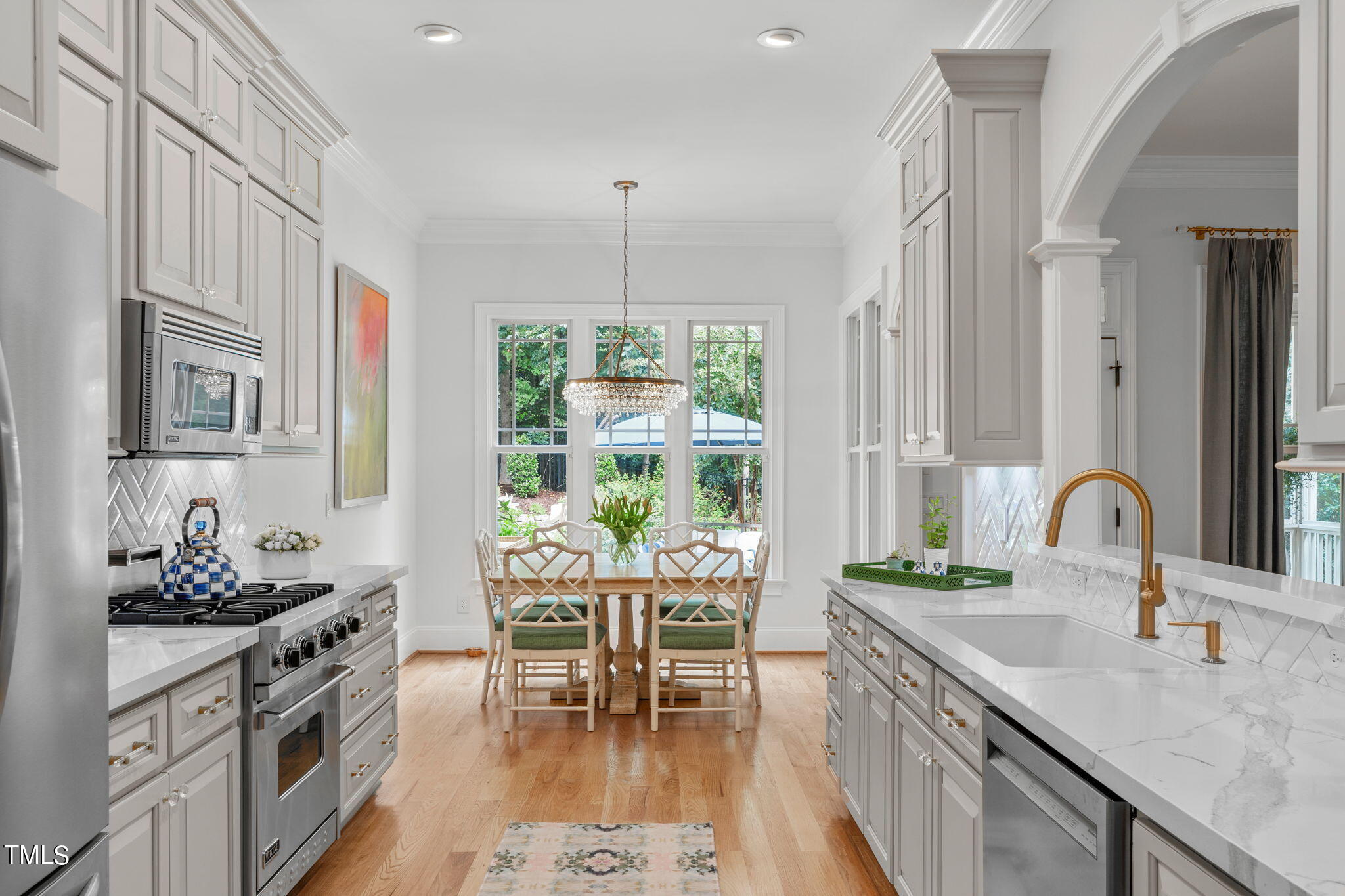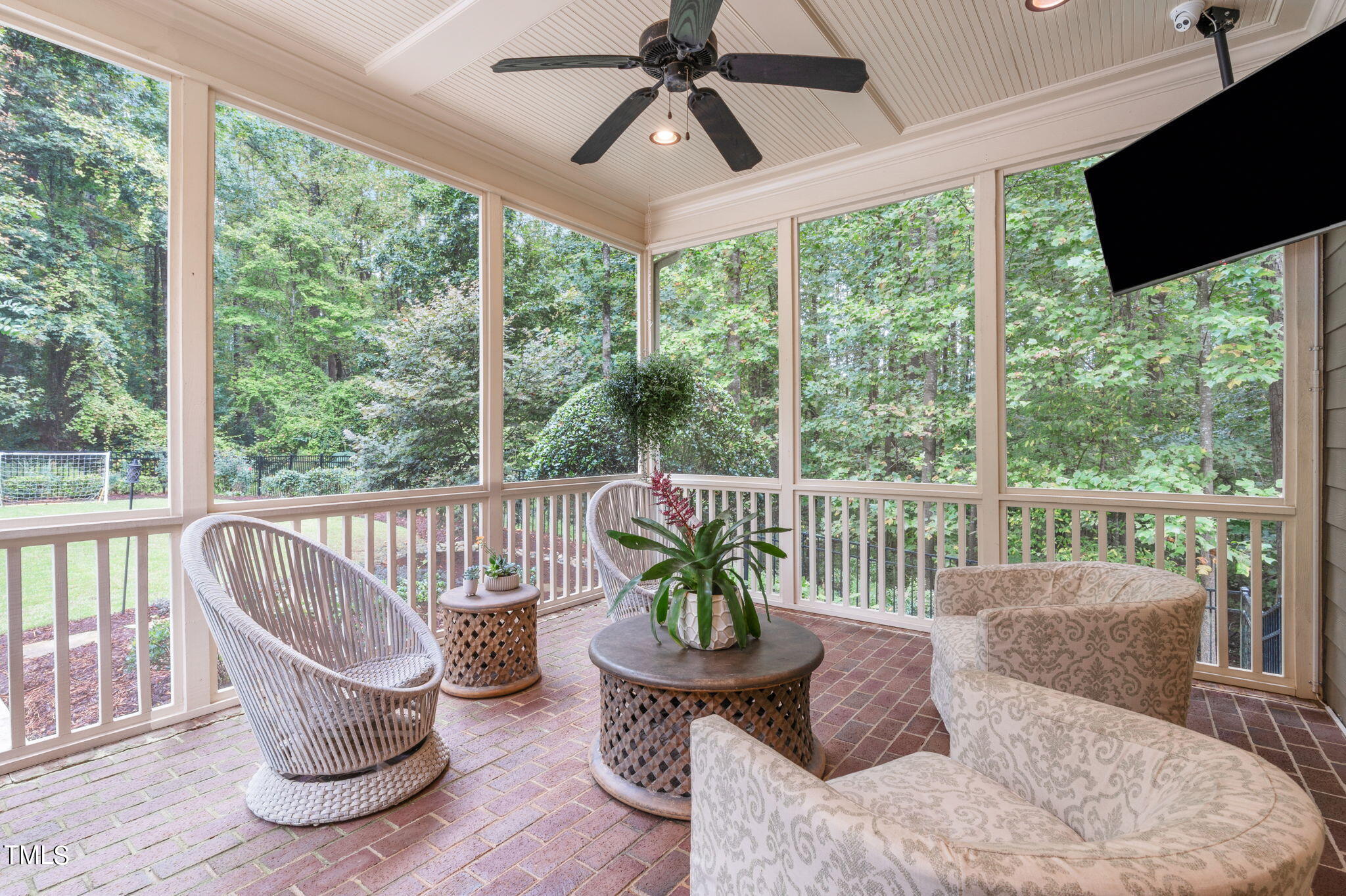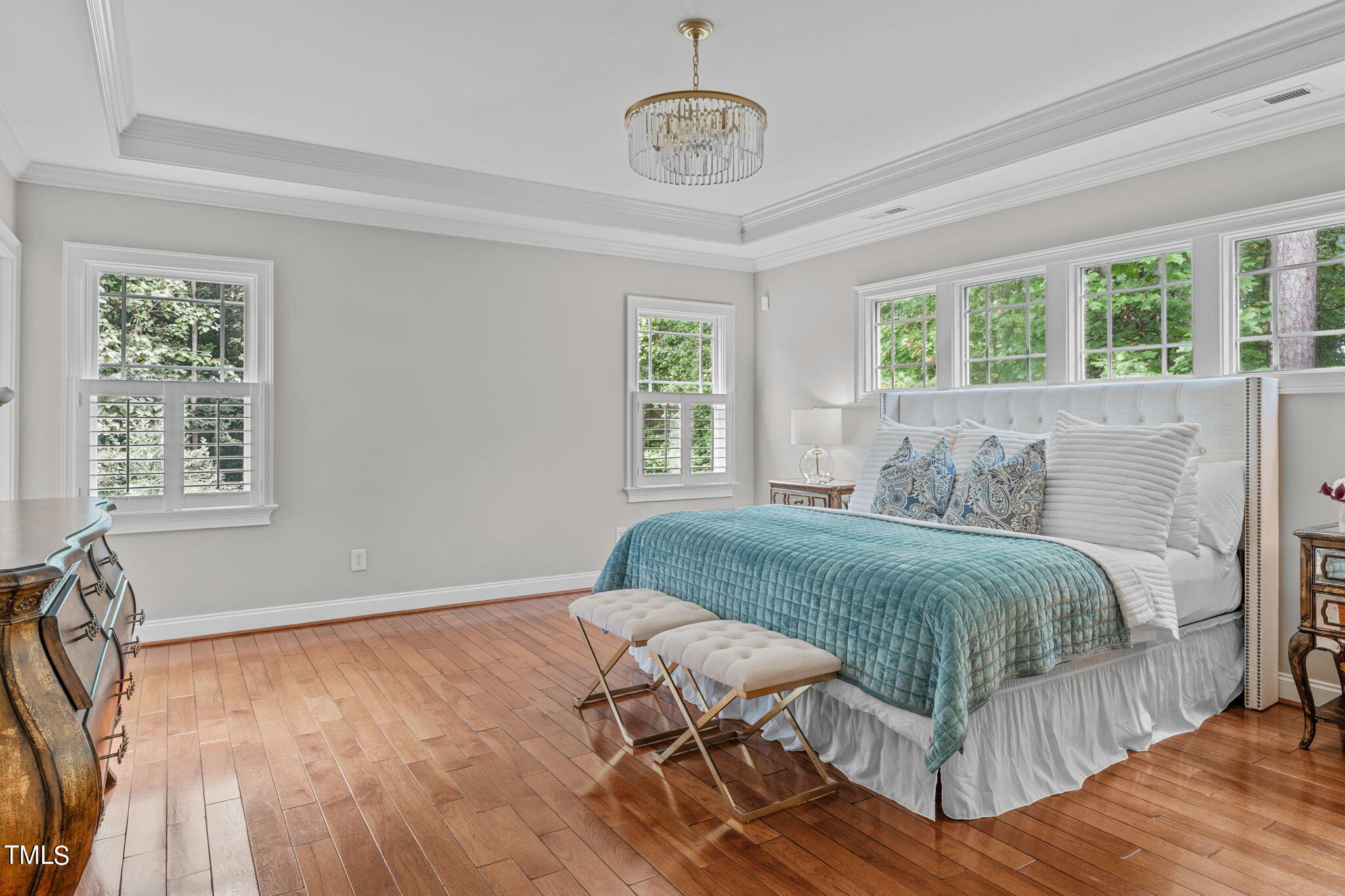 Experience luxury living in this stunning custom-built home in the sought-after Jamison Park community, just steps from Middle Creek School, park, and library! Meticulously maintained, this residence boasts an open-concept design with striking finishes, including a gourmet kitchen outfitted with a Viking gas cooktop and stove and newer KitchenAid appliances, quartz countertops, and an eye-catching herringbone subway tile backsplash. The kitchen flows seamlessly into the spacious family room, highlighted by a stone fireplace and custom built-in bookshelves. Prepare to be amazed by the sunlit dining room, adorned with coffered ceilings and elegant arched entryways. Gleaming hardwood floors span the main level, highlighted by designer lighting that adds a touch of sophistication. The second floor hosts a spacious primary suite, three additional bedrooms, and three full bathrooms. The fourth bedroom could easily serve as a bonus room. The expansive third floor offers a bonus/media room with its own full bathroom and a large unfinished storage area, ready to be tailored to your needs. Step outside to a meticulously maintained backyard that's sure to impress! Unwind on the screened-in porch overlooking a breathtaking saltwater pool with a tranquil waterfall feature, surrounded by lush landscaping for enhanced privacy. Enjoy peaceful, wooded views surrounding the property. Additional highlights include a three-car garage, newer roof, landscape lighting, and updated carpeting. This home is loaded with upgrades--see the attached features and upgrades sheet for the full list. Truly, photos don't do it justice--this is a must-see!