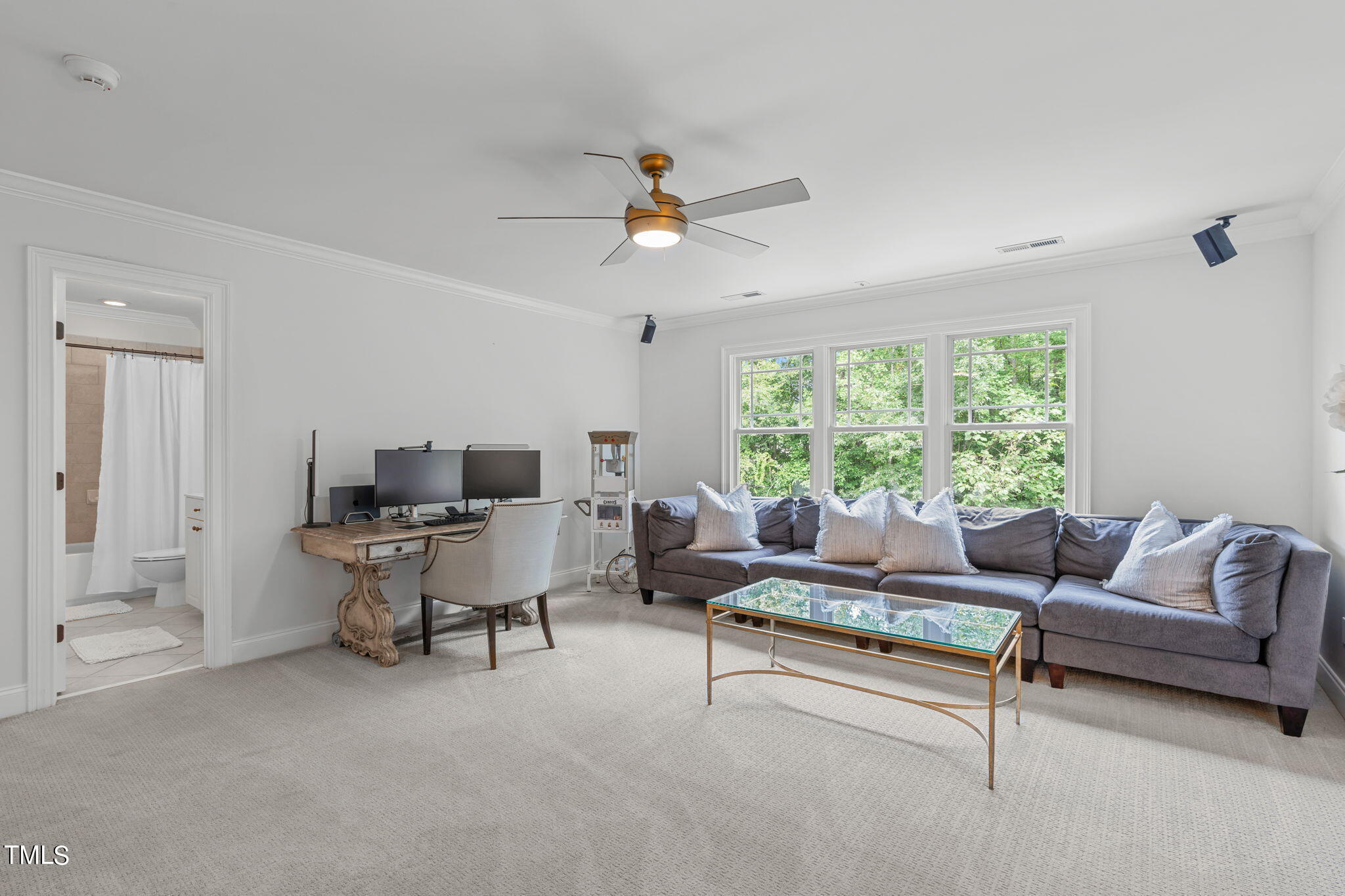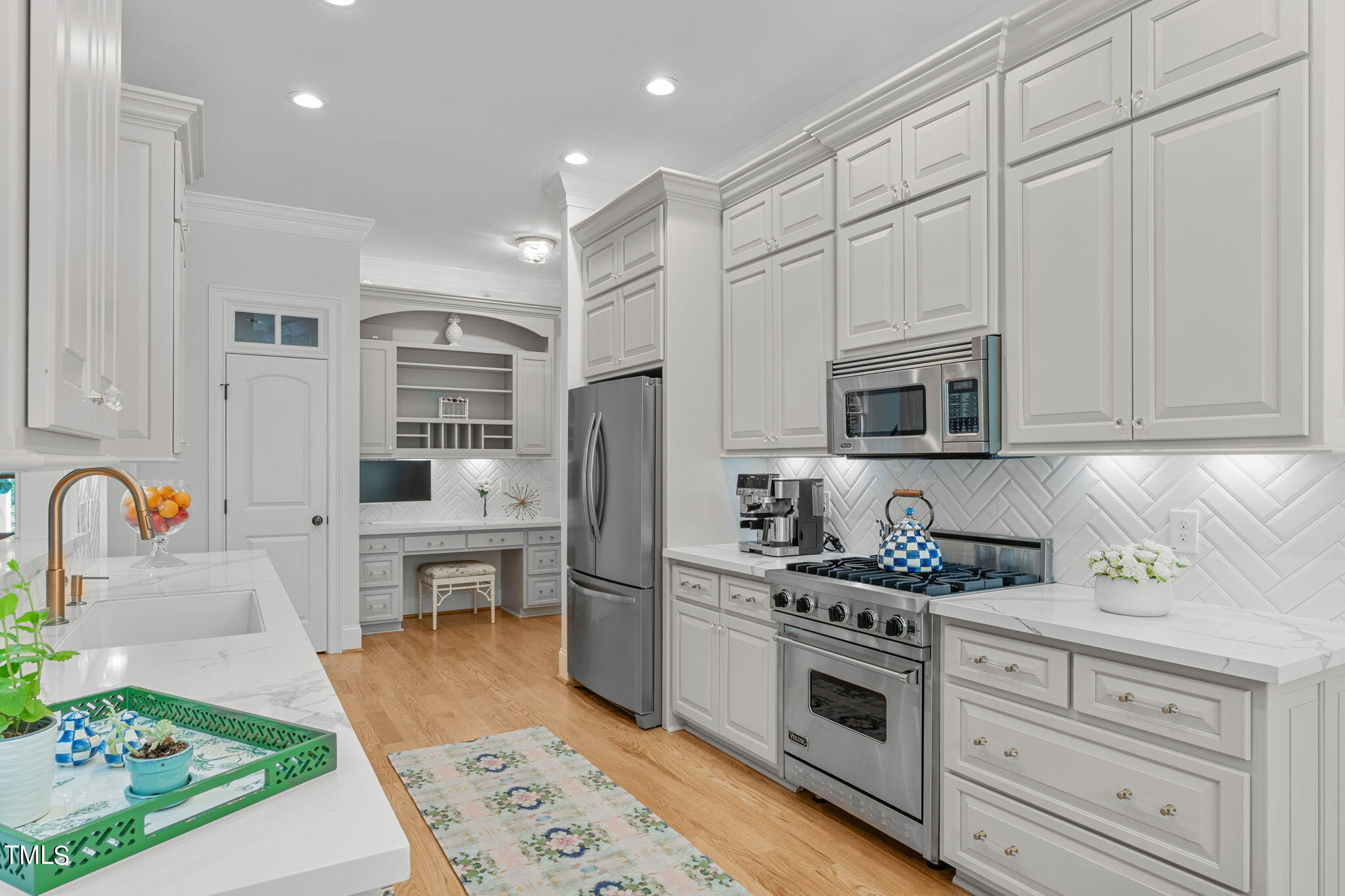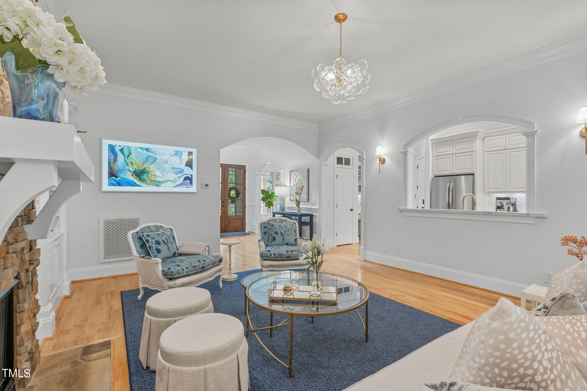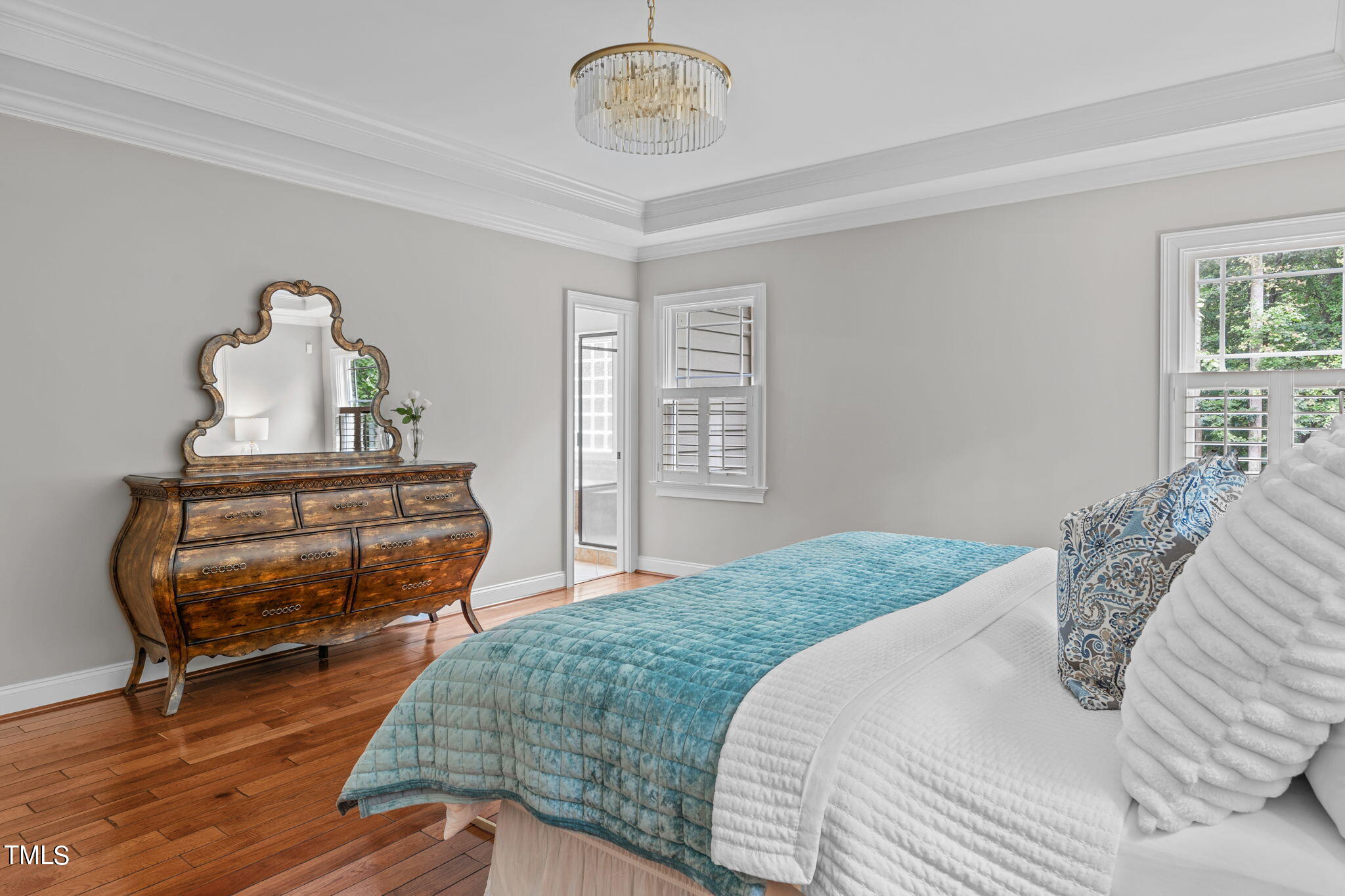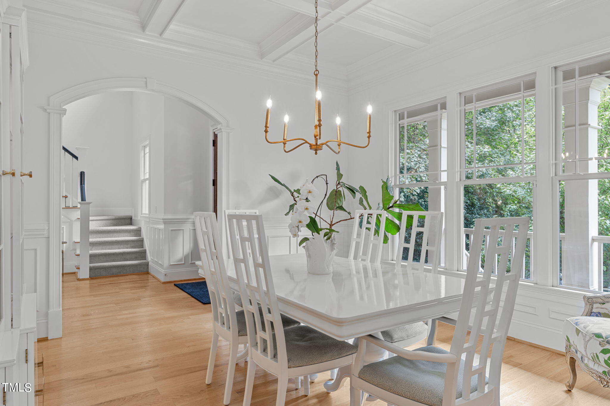 Experience luxury living in this stunning custom-built home in the sought-after Jamison Park community, just steps from Middle Creek School, park, and library! Meticulously maintained, this residence boasts an open-concept design with striking finishes, including a gourmet kitchen outfitted with a Viking gas cooktop and stove and newer KitchenAid appliances, quartz countertops, and an eye-catching herringbone subway tile backsplash. The kitchen flows seamlessly into the spacious family room, highlighted by a stone fireplace and custom built-in bookshelves. Prepare to be amazed by the sunlit dining room, adorned with coffered ceilings and elegant arched entryways. Gleaming hardwood floors span the main level, highlighted by designer lighting that adds a touch of sophistication. The second floor hosts a spacious primary suite, three additional bedrooms, and three full bathrooms. The fourth bedroom could easily serve as a bonus room. The expansive third floor offers a bonus/media room with its own full bathroom and a large unfinished storage area, ready to be tailored to your needs. Step outside to a meticulously maintained backyard that's sure to impress! Unwind on the screened-in porch overlooking a breathtaking saltwater pool with a tranquil waterfall feature, surrounded by lush landscaping for enhanced privacy. Enjoy peaceful, wooded views surrounding the property. Additional highlights include a three-car garage, newer roof, landscape lighting, and updated carpeting. This home is loaded with upgrades--see the attached features and upgrades sheet for the full list. Truly, photos don't do it justice--this is a must-see!