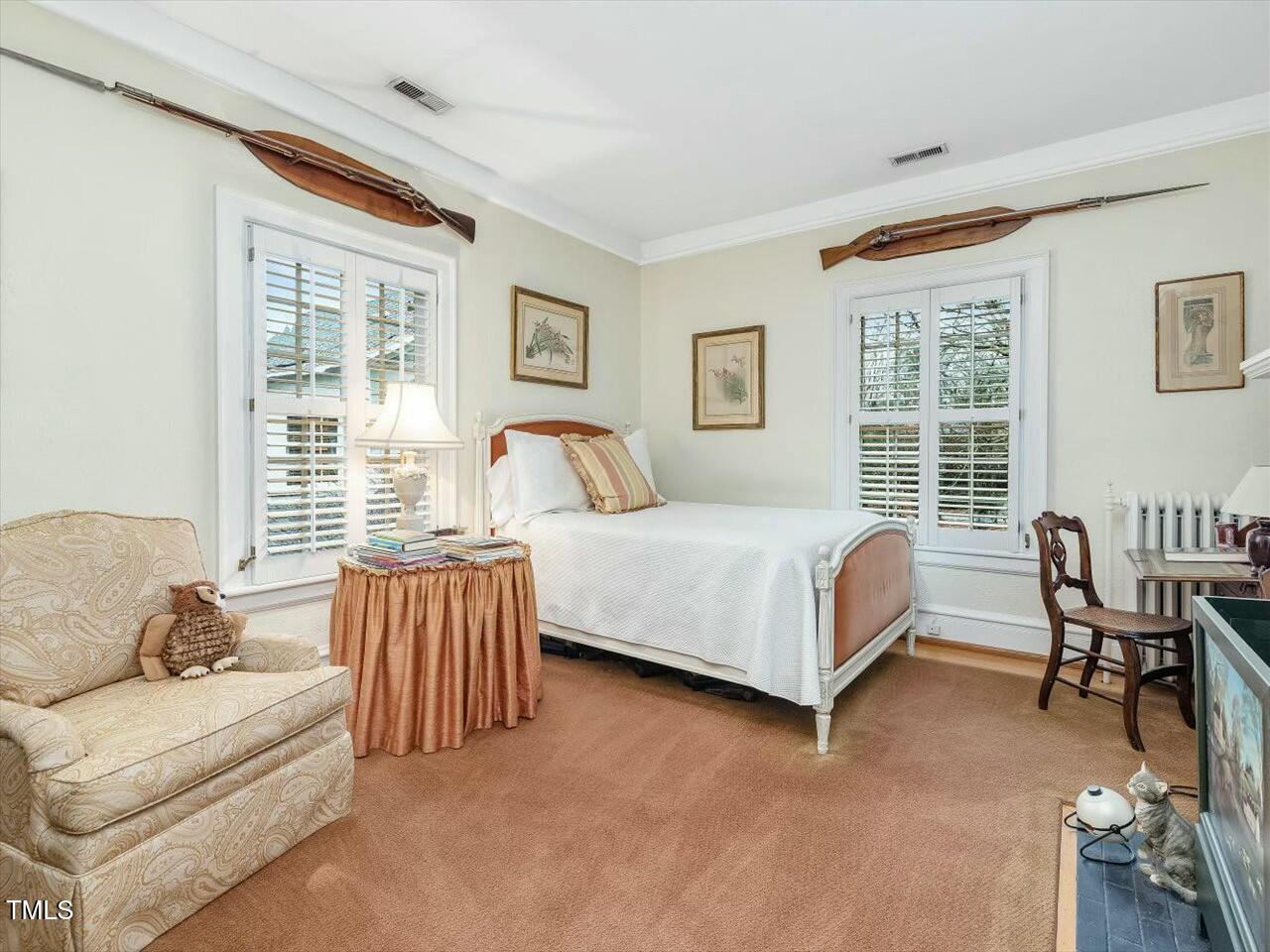 Stately brick Georgian home overlooking the ''green park'' in Cameron Park. Sited on a .28-acre, exquisitely landscaped corner lot. Features all formals, den and sunroom, screen porch on the first floor. Four fireplaces -- in living room, den and two bedrooms. Second level has four bedrooms, sitting room, two full baths. Large bedroom (bonus/playroom/office) converted to custom closet on third floor, plus walk-in attic with loads of storage. Detached two-car garage, greenhouse, whole-house generator and wine cellar.