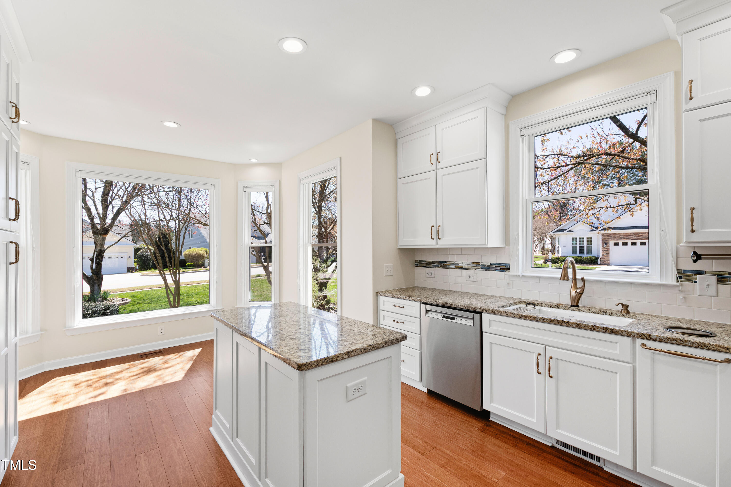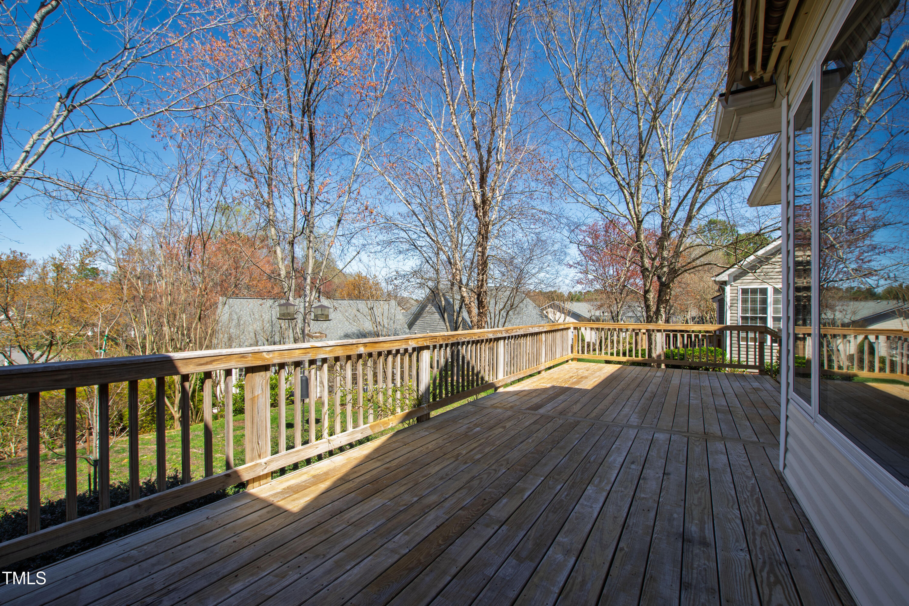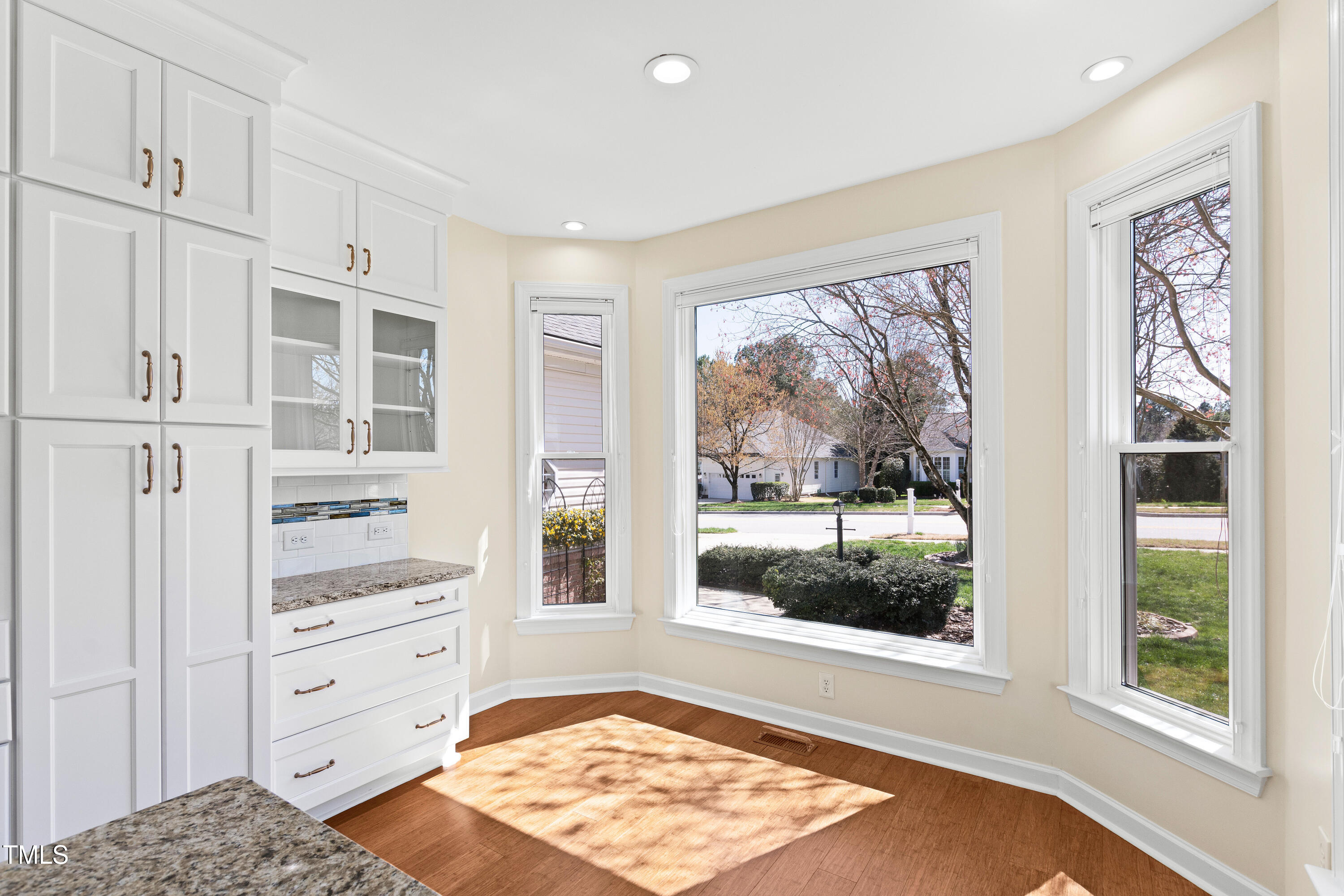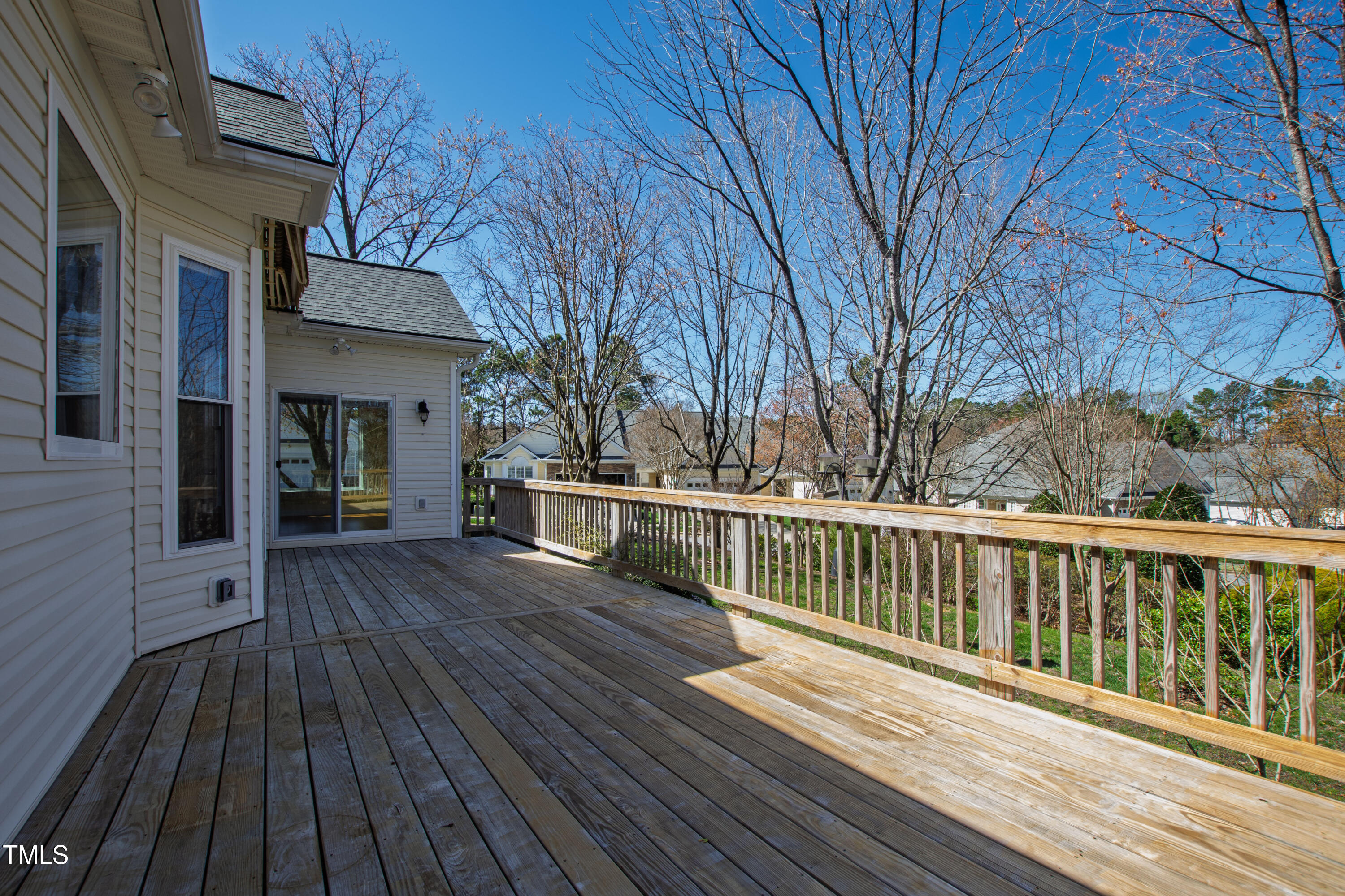 If you're looking for a home that exudes pride in ownership, high-end upgrades and unbeatable natural light in Cary's highly coveted Heritage Pines 55+ Active Adult Community, look no further than 2021 Heritage Pines Drive. Extraordinary curb appeal welcomes you to one of the largest lots in the neighborhood, brimmed with fragrant, blooming florals and an extra-large deck with electric awning all replaced in 2023. When you enter through the front door, you'll be pleased to find low maintenance, solid-stand bamboo flooring throughout. The welcoming, vaulted family room, anchored by functional fireplace with gas stub, beams with natural light due to custom, enlarged UV-filtering picture windows replaced throughout the home including in the sunroom, which is perfectly positioned for morning sunshine. An updated kitchen in 2020 is a chef's dream and features solid wood, soft-close cabinetry, granite countertops, upgraded Bosch appliances including a warming drawer, JennAir fridge, and small details that go a long way - motion sensor sink faucet, hidden kickplate storage, and counter-top waste chute for convenient meal prep. The spacious primary suite, located privately on the back of the home, is highlighted by his-and-her closets, raised built-in vanity and fully updated bathroom with zero-entry shower, dual vanity, custom cabinetry, skilled tilework, raised toilet and bidet. You'll notice how meticulously this home has been cared for from the updated electrical throughout, LED lighting added, 2023 HVAC, 2023 roof and gutter guards, termite bond, extended laundry room, and irrigation system. Garage features exceptional storage with 15 7/8 shelving added, entry ramp, dehumidifier, epoxy floors and new door/motor replaced in 2023. All of this in a friendly neighborhood, right around the corner from the active community clubhouse anchored by pool, fitness center, meeting space, pickleball, tennis, and bocce courts. The only thing left missing in this home, is you! For additional upgrades, please see features sheet attached to listing.