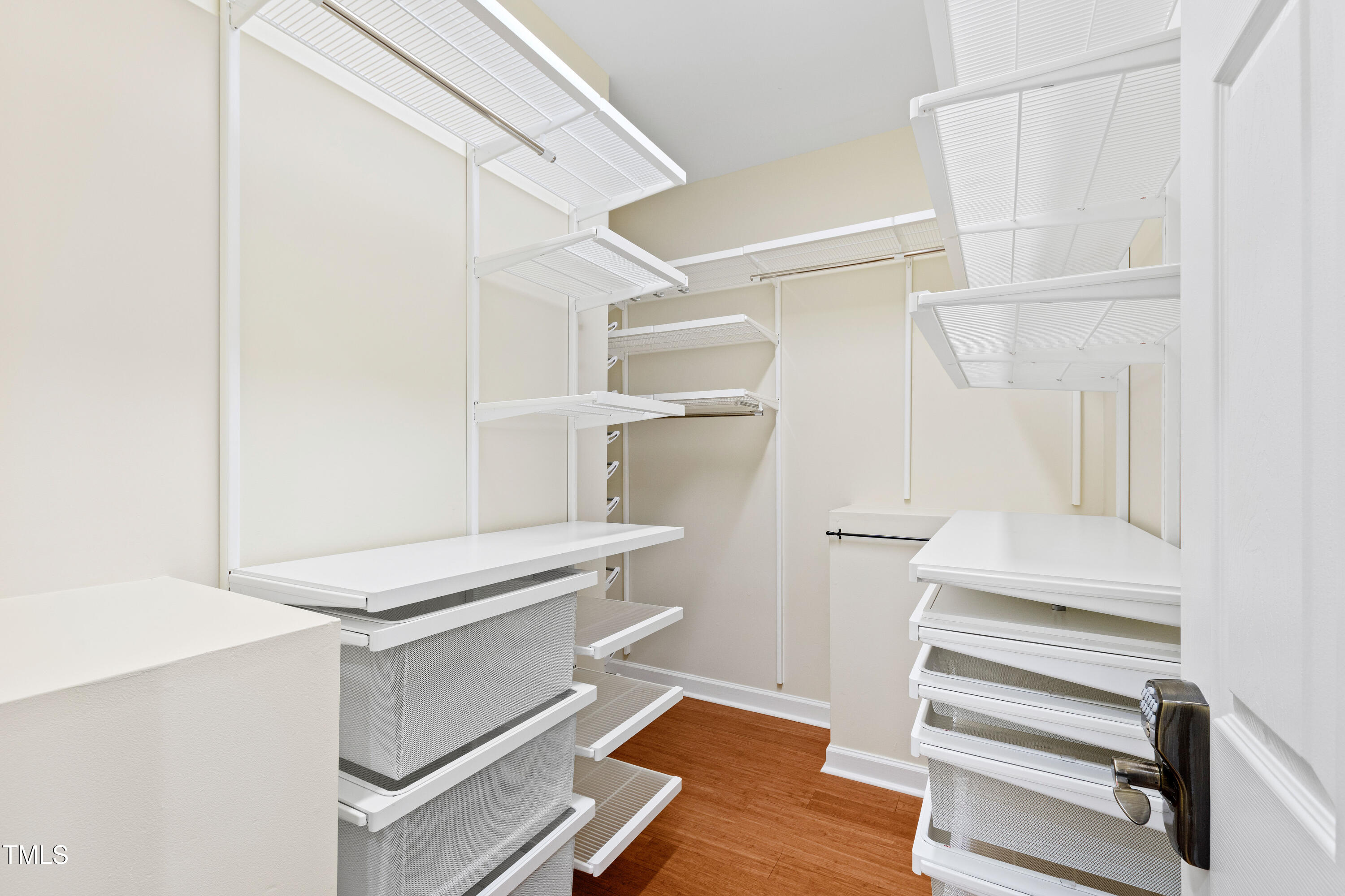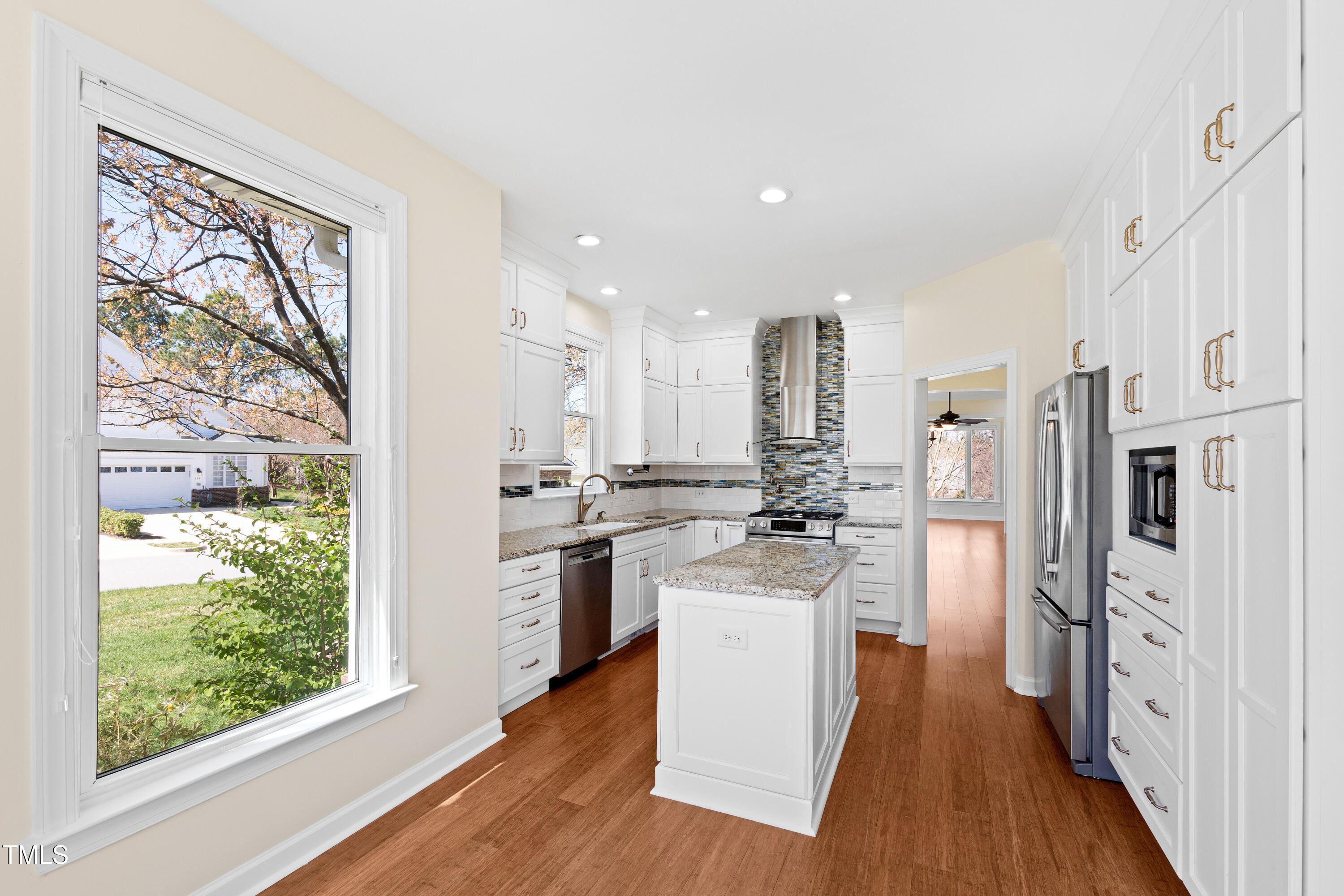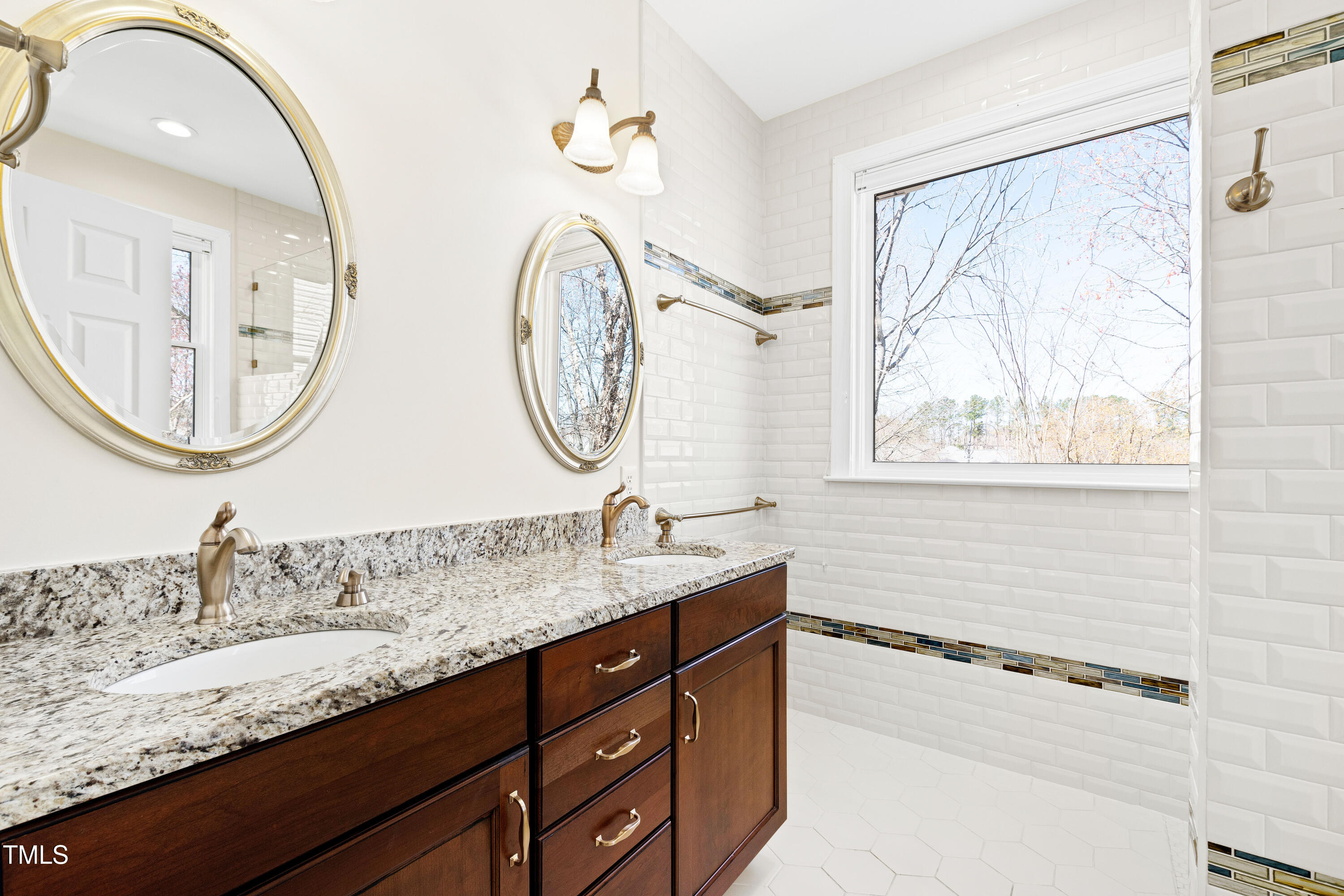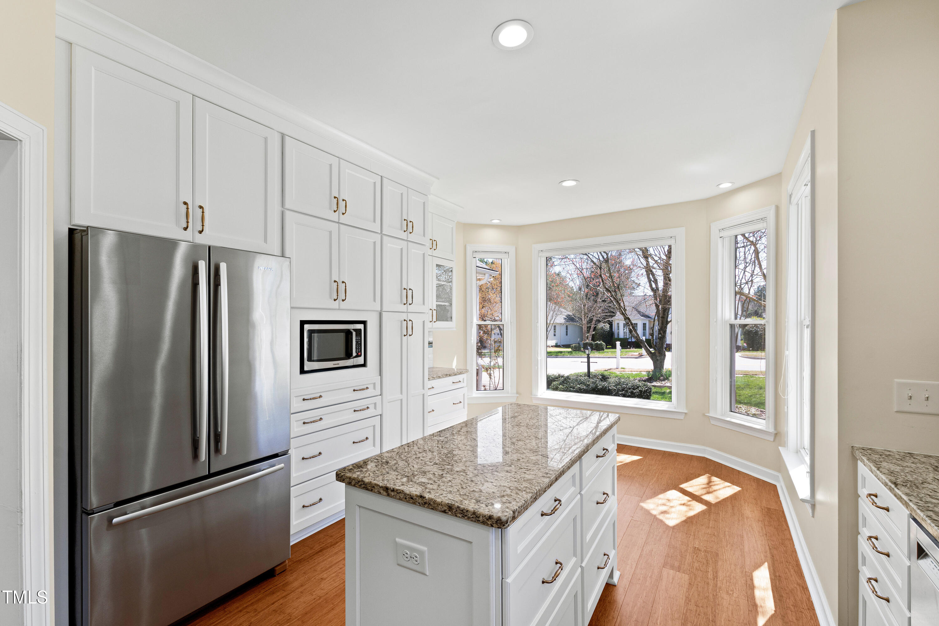 If you're looking for a home that exudes pride in ownership, high-end upgrades and unbeatable natural light in Cary's highly coveted Heritage Pines 55+ Active Adult Community, look no further than 2021 Heritage Pines Drive. Extraordinary curb appeal welcomes you to one of the largest lots in the neighborhood, brimmed with fragrant, blooming florals and an extra-large deck with electric awning all replaced in 2023. When you enter through the front door, you'll be pleased to find low maintenance, solid-stand bamboo flooring throughout. The welcoming, vaulted family room, anchored by functional fireplace with gas stub, beams with natural light due to custom, enlarged UV-filtering picture windows replaced throughout the home including in the sunroom, which is perfectly positioned for morning sunshine. An updated kitchen in 2020 is a chef's dream and features solid wood, soft-close cabinetry, granite countertops, upgraded Bosch appliances including a warming drawer, JennAir fridge, and small details that go a long way - motion sensor sink faucet, hidden kickplate storage, and counter-top waste chute for convenient meal prep. The spacious primary suite, located privately on the back of the home, is highlighted by his-and-her closets, raised built-in vanity and fully updated bathroom with zero-entry shower, dual vanity, custom cabinetry, skilled tilework, raised toilet and bidet. You'll notice how meticulously this home has been cared for from the updated electrical throughout, LED lighting added, 2023 HVAC, 2023 roof and gutter guards, termite bond, extended laundry room, and irrigation system. Garage features exceptional storage with 15 7/8 shelving added, entry ramp, dehumidifier, epoxy floors and new door/motor replaced in 2023. All of this in a friendly neighborhood, right around the corner from the active community clubhouse anchored by pool, fitness center, meeting space, pickleball, tennis, and bocce courts. The only thing left missing in this home, is you! For additional upgrades, please see features sheet attached to listing.