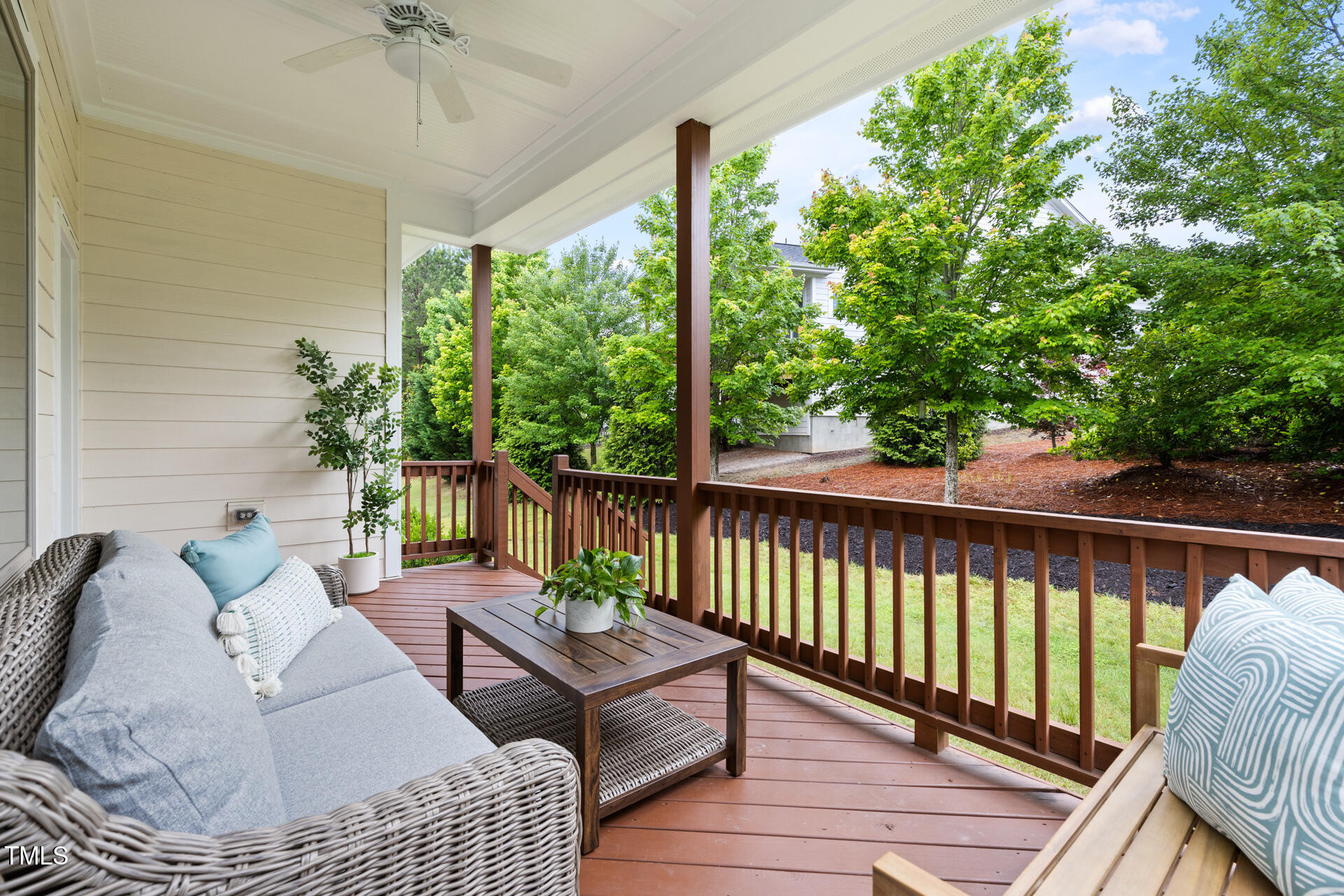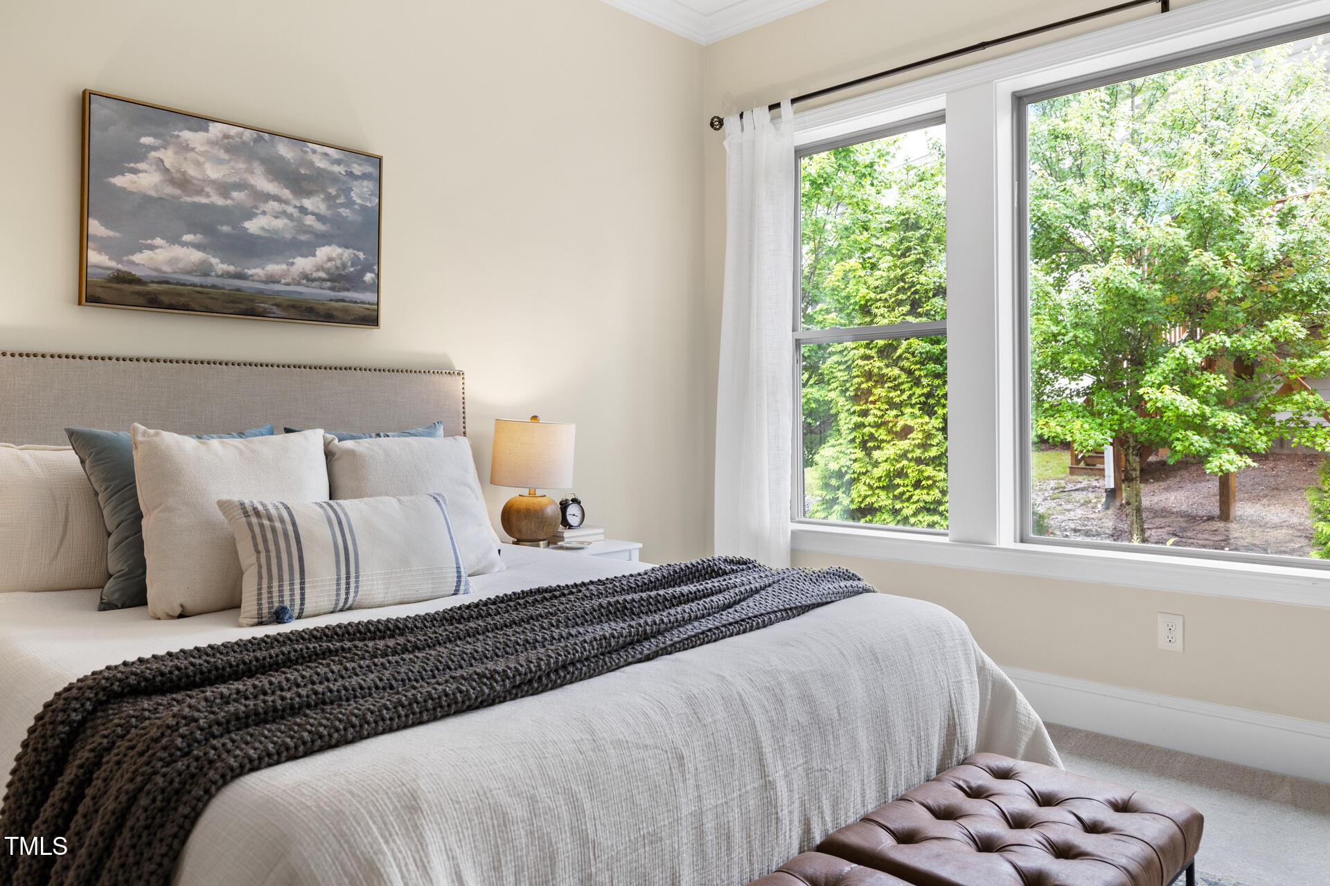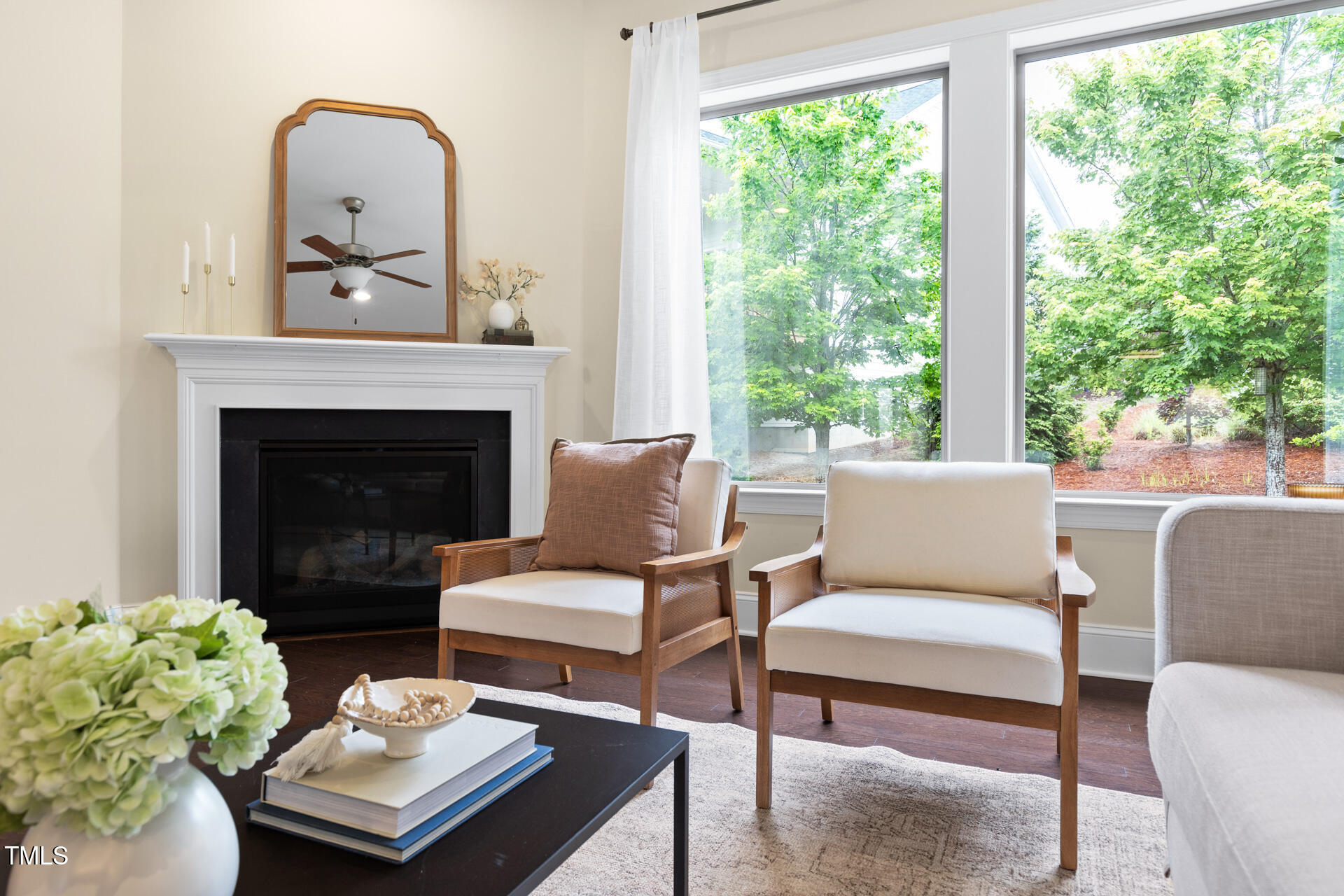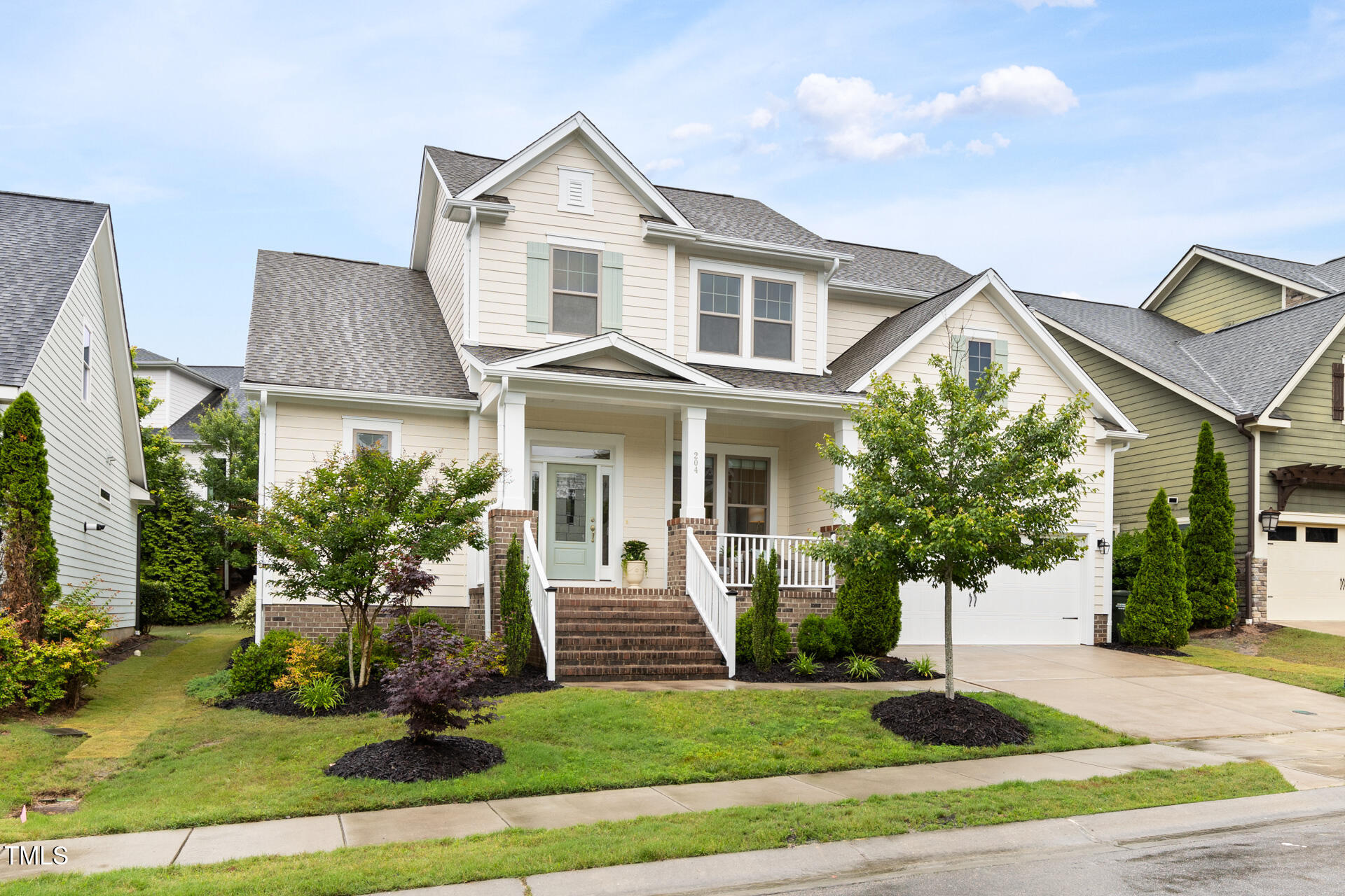 Perfection in popular Montclair! Built in 2018 with meticulous attention to detail, enjoy a gracious floor plan that features a main floor primary suite, main floor office and main floor laundry room...a winning and rare combo. The open-concept layout showcases an impressive family room with a cozy gas fireplace, perfect for gatherings. The gourmet kitchen features stainless-steel appliances and gas cooktop, large center island offering counter seating with ample storage, and a generously sized walk-in pantry. Adjacent is a bright dining area, surrounded by windows offering lush, green views of the private landscape. A lovely, covered porch extends the living space outdoors and ensures year-round enjoyment of the flat backyard. The main floor primary suite is a true retreat with tall ceilings and bountiful light, an expansive ensuite bath with double vanities, walk-in shower, and deluxe walk-in closet. This spectacular 3-bed home, delights with its flexible floor plan. Separate office adorned with glass-front French doors on the main floor. Upstairs, you'll find two well-appointed bedrooms, each with generous closets. Need a flex space? Generous second floor bonus space has endless functionality for evolving needs. Plus, comfortable access to the walk-in storage. And let's not forget the built-in drop zone that can actually accommodate all of the things. Attached 2-car garage. Sealed crawl space and Energy Star Qualified Home offers peace of mind. Easy living & low maintenance means you can spend your time enjoying life and exploring all the Triangle has to offer. Unparalleled convenience of Chapel Hill living (Durham Co taxes): located just minutes to UNC, I-40, Duke, shopping and entertainment.