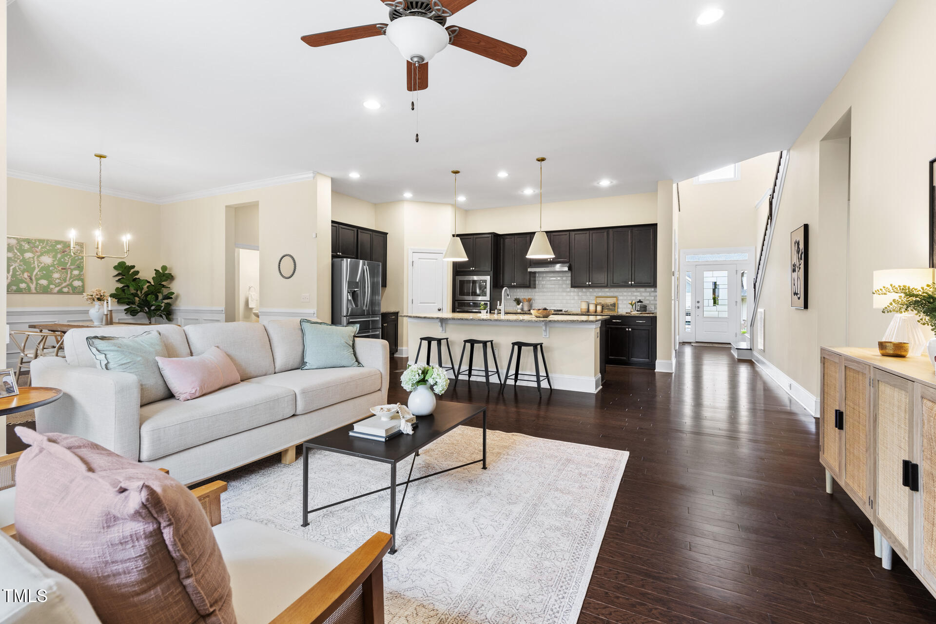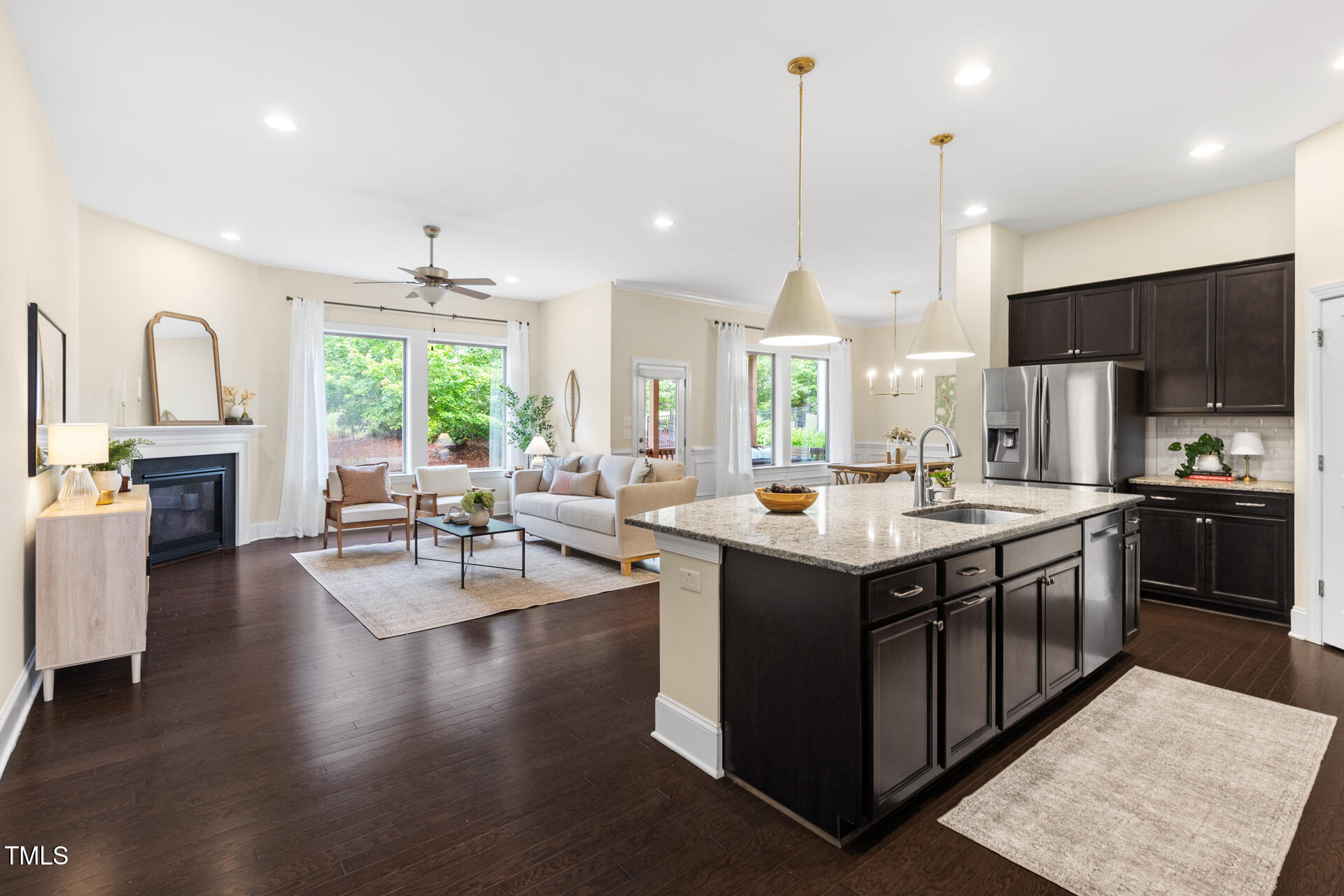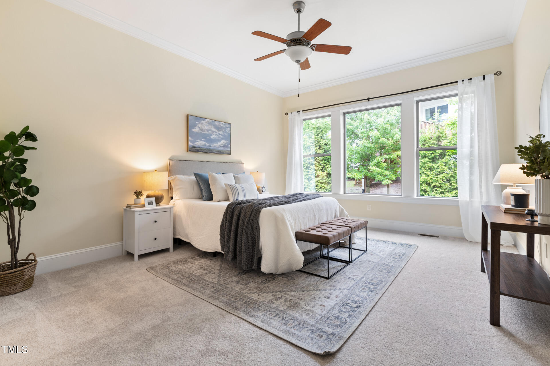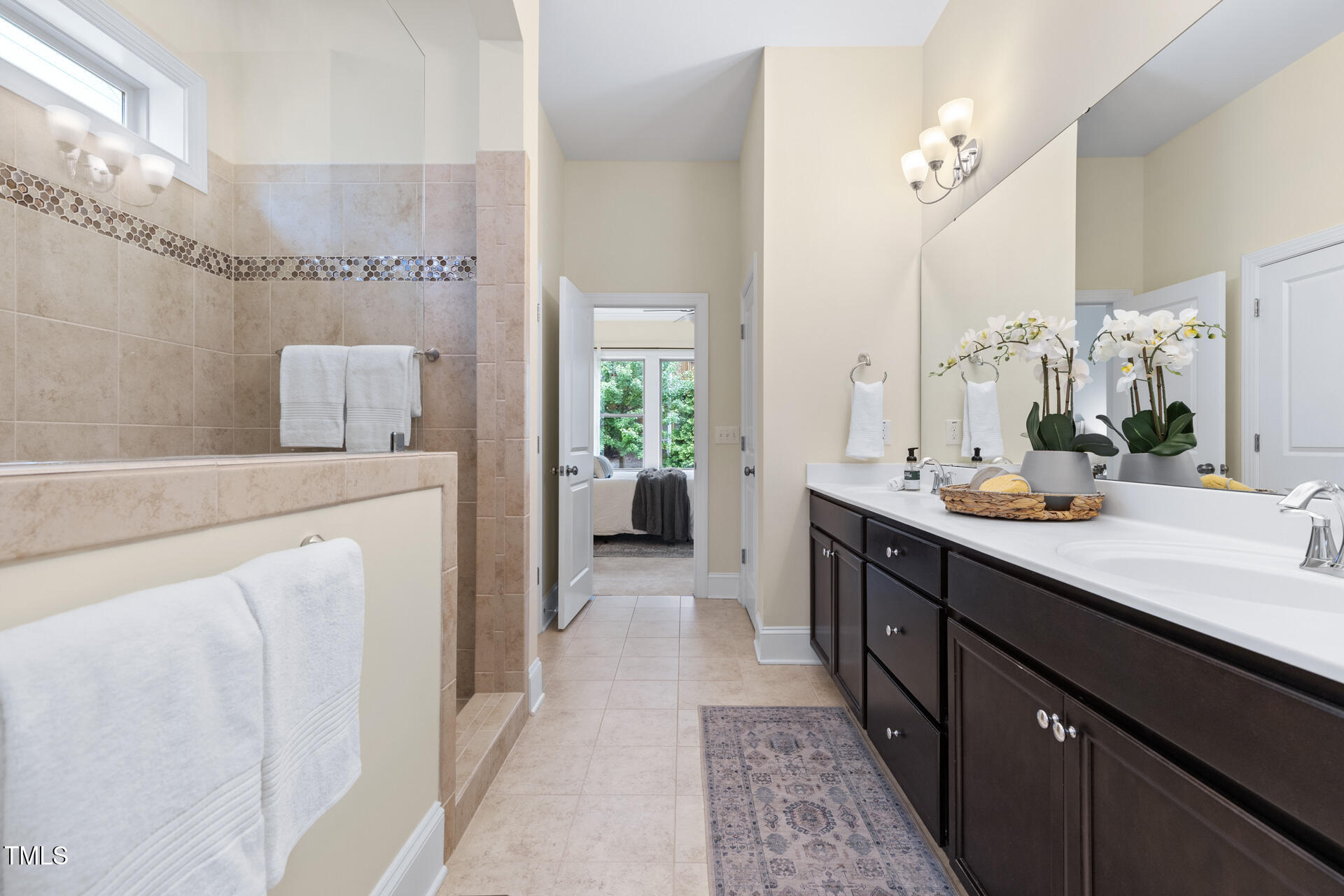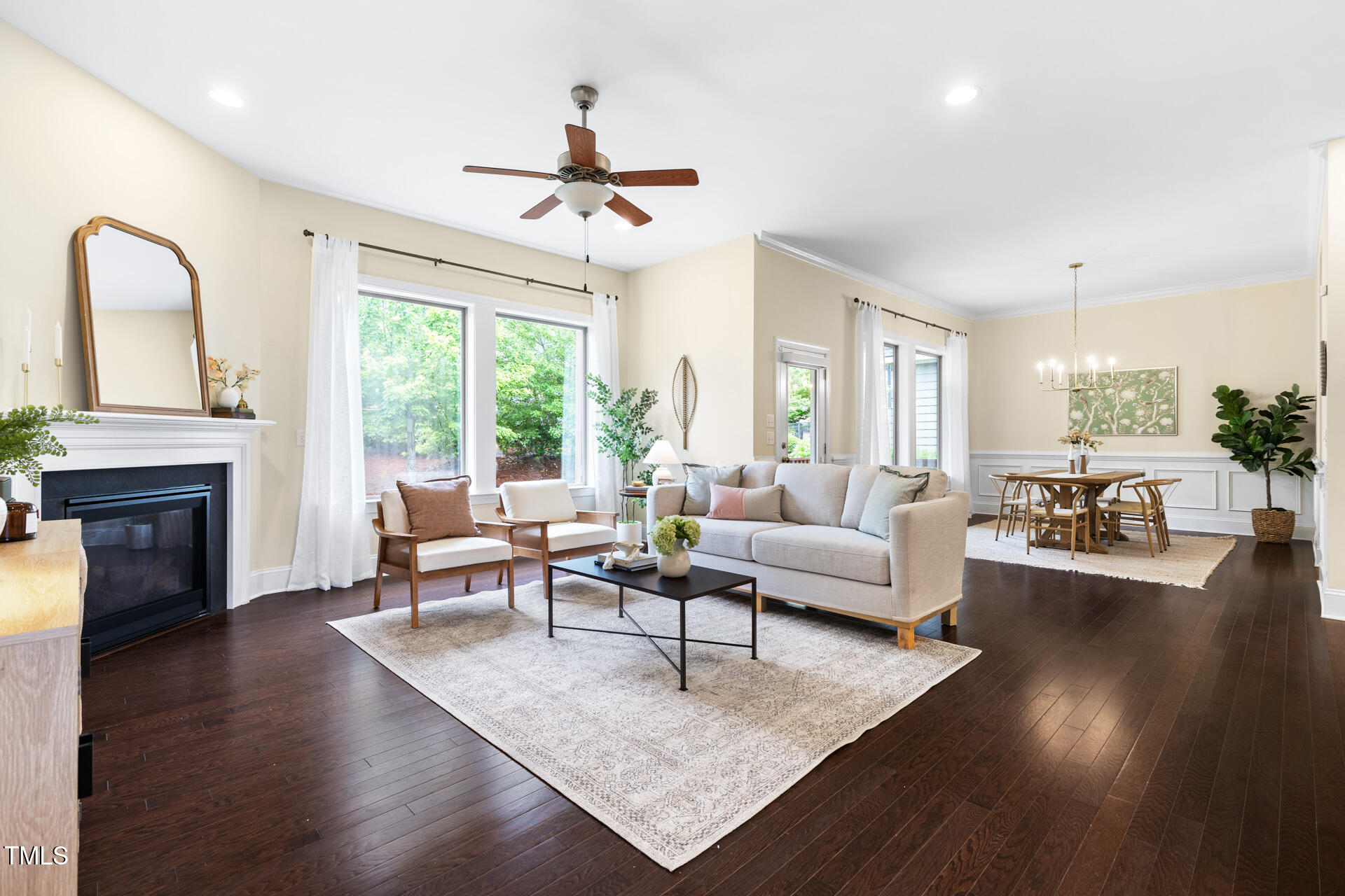 Perfection in popular Montclair! Built in 2018 with meticulous attention to detail, enjoy a gracious floor plan that features a main floor primary suite, main floor office and main floor laundry room...a winning and rare combo. The open-concept layout showcases an impressive family room with a cozy gas fireplace, perfect for gatherings. The gourmet kitchen features stainless-steel appliances and gas cooktop, large center island offering counter seating with ample storage, and a generously sized walk-in pantry. Adjacent is a bright dining area, surrounded by windows offering lush, green views of the private landscape. A lovely, covered porch extends the living space outdoors and ensures year-round enjoyment of the flat backyard. The main floor primary suite is a true retreat with tall ceilings and bountiful light, an expansive ensuite bath with double vanities, walk-in shower, and deluxe walk-in closet. This spectacular 3-bed home, delights with its flexible floor plan. Separate office adorned with glass-front French doors on the main floor. Upstairs, you'll find two well-appointed bedrooms, each with generous closets. Need a flex space? Generous second floor bonus space has endless functionality for evolving needs. Plus, comfortable access to the walk-in storage. And let's not forget the built-in drop zone that can actually accommodate all of the things. Attached 2-car garage. Sealed crawl space and Energy Star Qualified Home offers peace of mind. Easy living & low maintenance means you can spend your time enjoying life and exploring all the Triangle has to offer. Unparalleled convenience of Chapel Hill living (Durham Co taxes): located just minutes to UNC, I-40, Duke, shopping and entertainment.