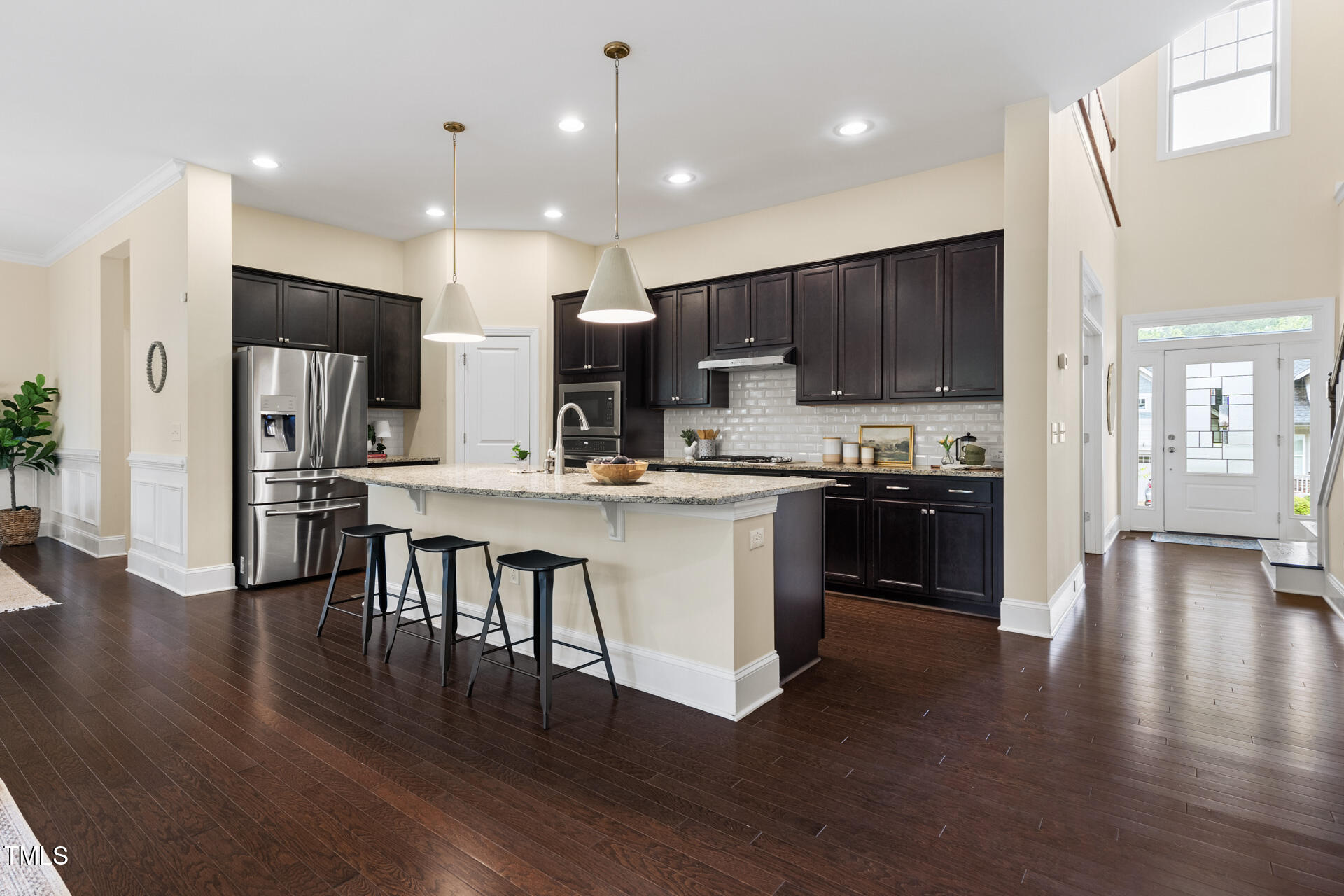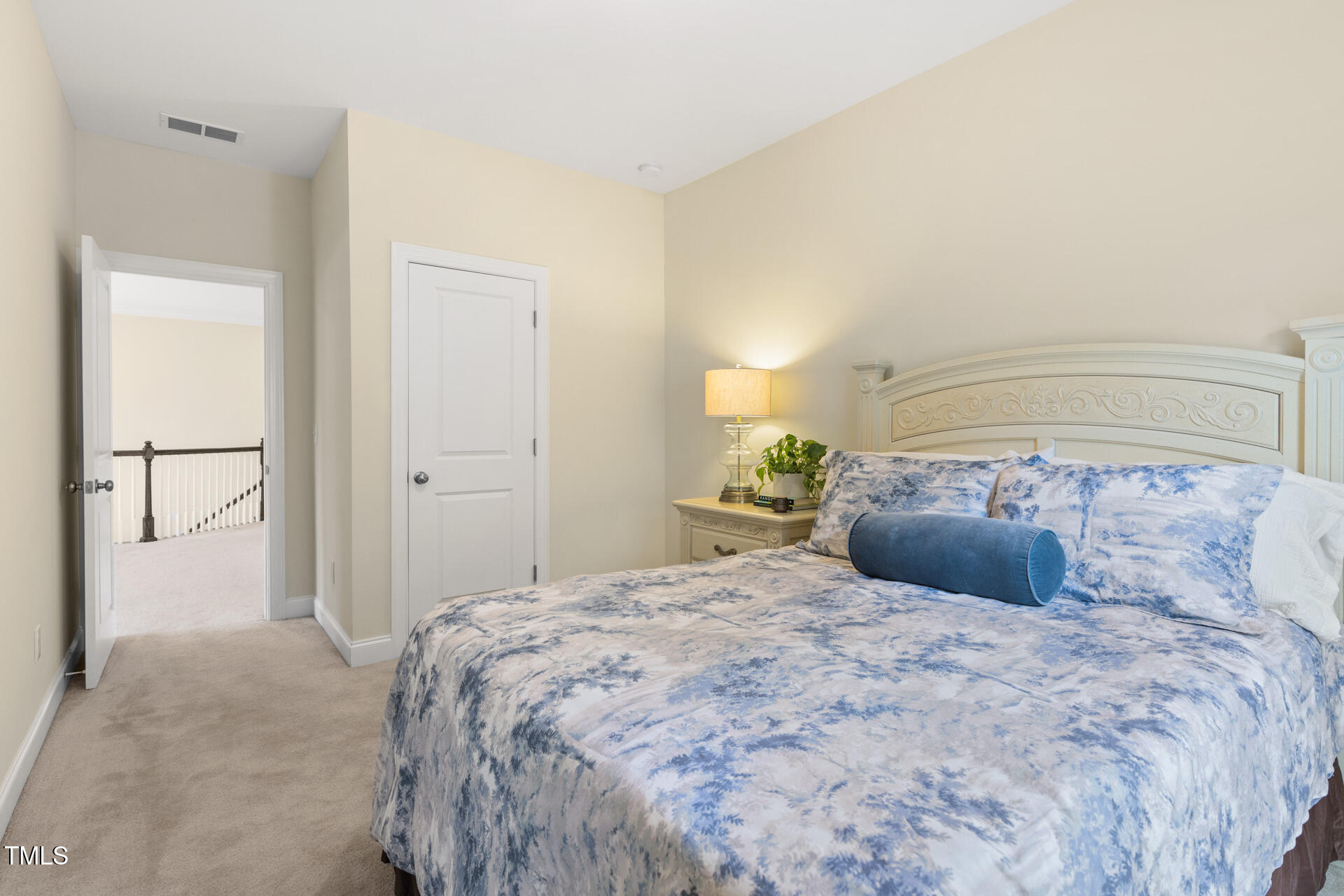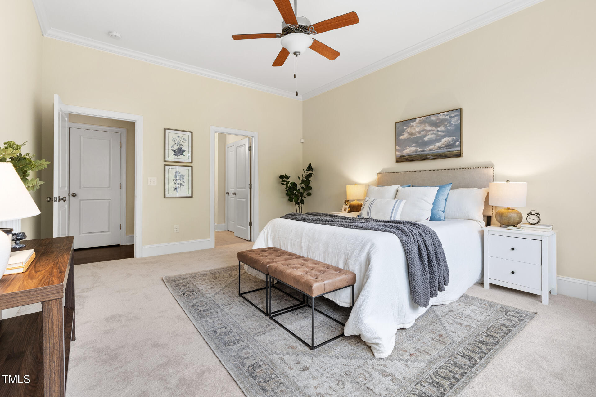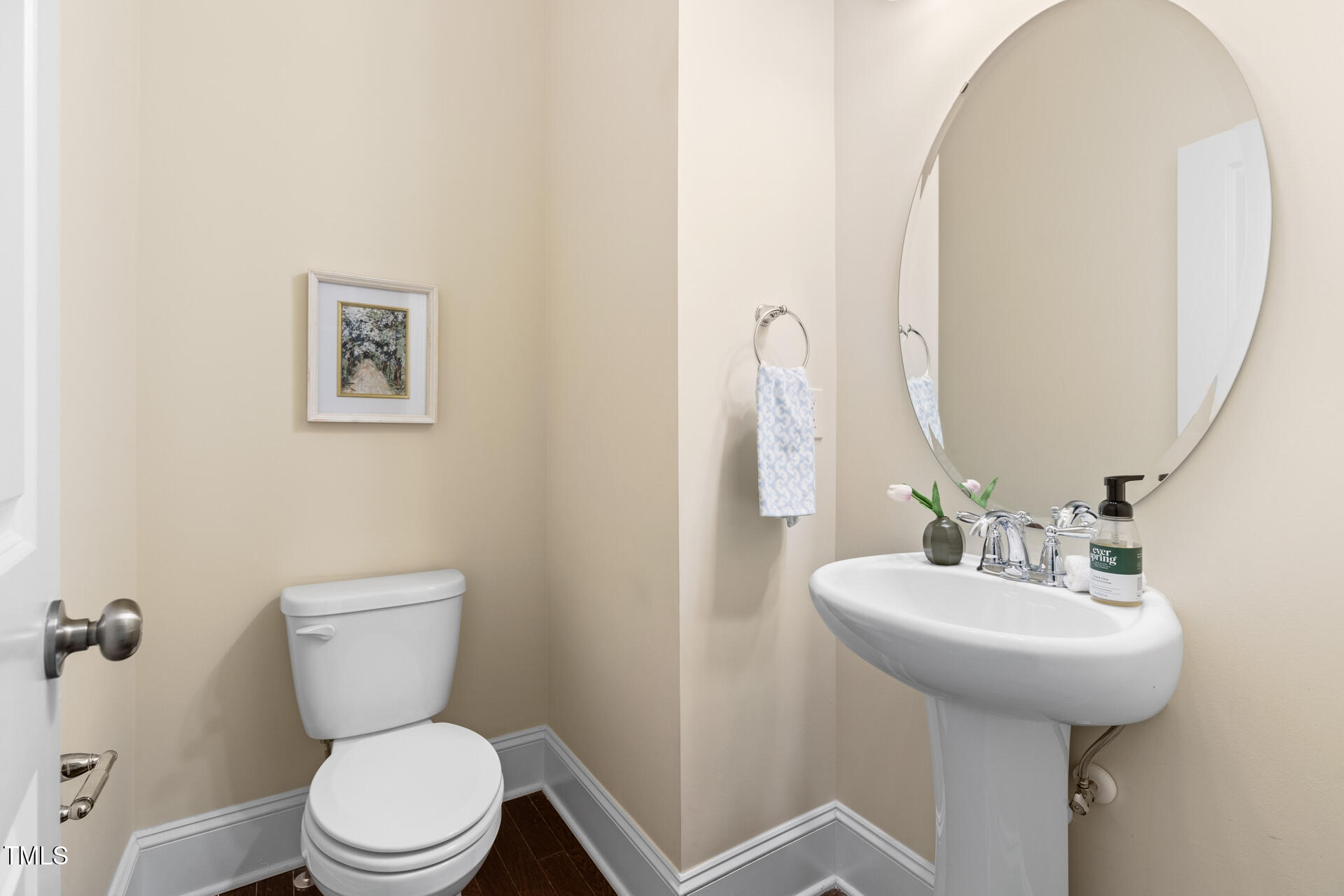 Perfection in popular Montclair! Built in 2018 with meticulous attention to detail, enjoy a gracious floor plan that features a main floor primary suite, main floor office and main floor laundry room...a winning and rare combo. The open-concept layout showcases an impressive family room with a cozy gas fireplace, perfect for gatherings. The gourmet kitchen features stainless-steel appliances and gas cooktop, large center island offering counter seating with ample storage, and a generously sized walk-in pantry. Adjacent is a bright dining area, surrounded by windows offering lush, green views of the private landscape. A lovely, covered porch extends the living space outdoors and ensures year-round enjoyment of the flat backyard. The main floor primary suite is a true retreat with tall ceilings and bountiful light, an expansive ensuite bath with double vanities, walk-in shower, and deluxe walk-in closet. This spectacular 3-bed home, delights with its flexible floor plan. Separate office adorned with glass-front French doors on the main floor. Upstairs, you'll find two well-appointed bedrooms, each with generous closets. Need a flex space? Generous second floor bonus space has endless functionality for evolving needs. Plus, comfortable access to the walk-in storage. And let's not forget the built-in drop zone that can actually accommodate all of the things. Attached 2-car garage. Sealed crawl space and Energy Star Qualified Home offers peace of mind. Easy living & low maintenance means you can spend your time enjoying life and exploring all the Triangle has to offer. Unparalleled convenience of Chapel Hill living (Durham Co taxes): located just minutes to UNC, I-40, Duke, shopping and entertainment.