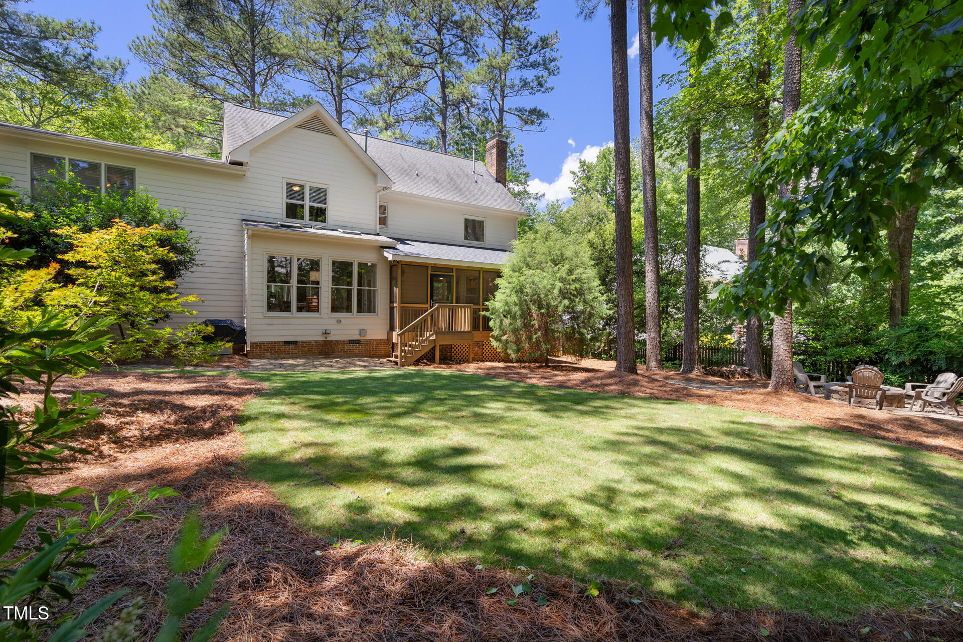 Come see this beautifully maintained brick colonial in the sought after Picardy Pointe neighborhood! This home has timeless charm with a spacious layout and beautiful details. Features include hardwood floors, beautiful fireplace, plantation shutters, walk up unfinished third floor, quartz countertops in the kitchen and wood cabinets . Enjoy year round comfort in the stunning screened in porch with a cozy brick fireplace that was added just a few years ago. Then step into your private retreat- the backyard offers exceptional privacy, mature landscaping, and ample space for outdoor living. Enjoy cozy evenings around the fire pit, perfect for relaxing! The HOA includes a pool, tennis courts/pickle ball and is close proximity to Apex Community Lake. The homes recent updates include, brand new upstairs HVAC (April 2025), new sod in the backyard (May 2025) and refinished hardwoods (May 2025).
