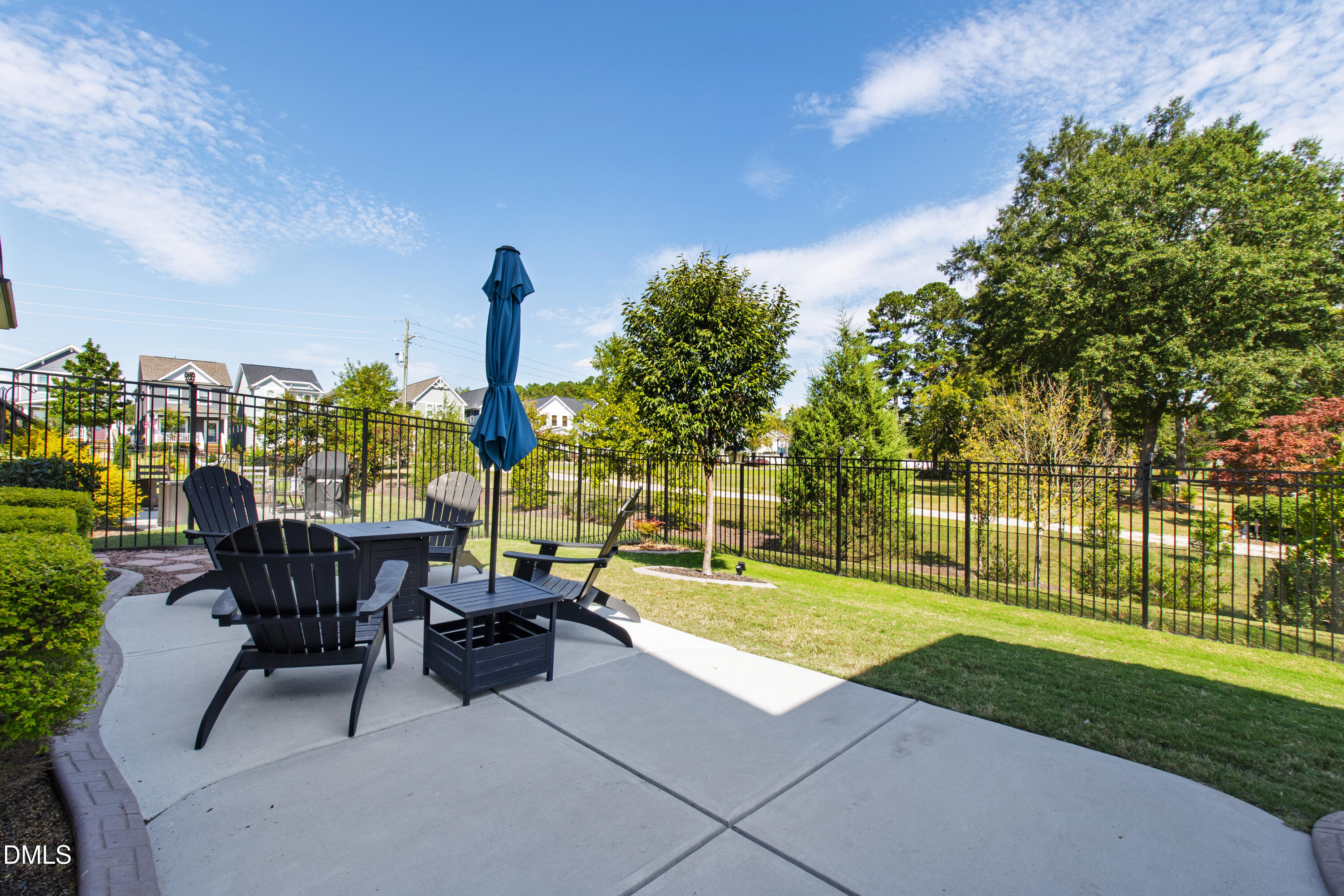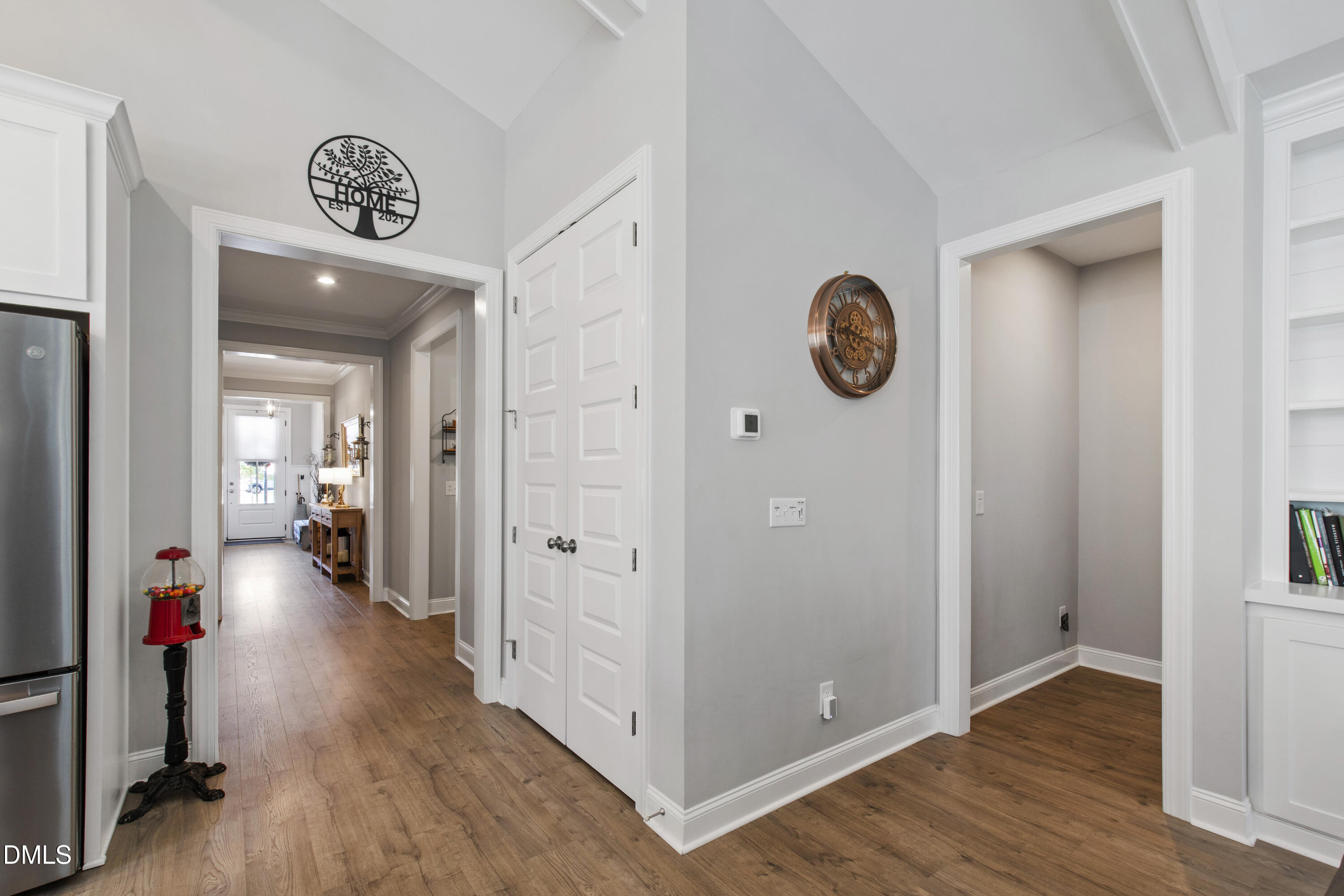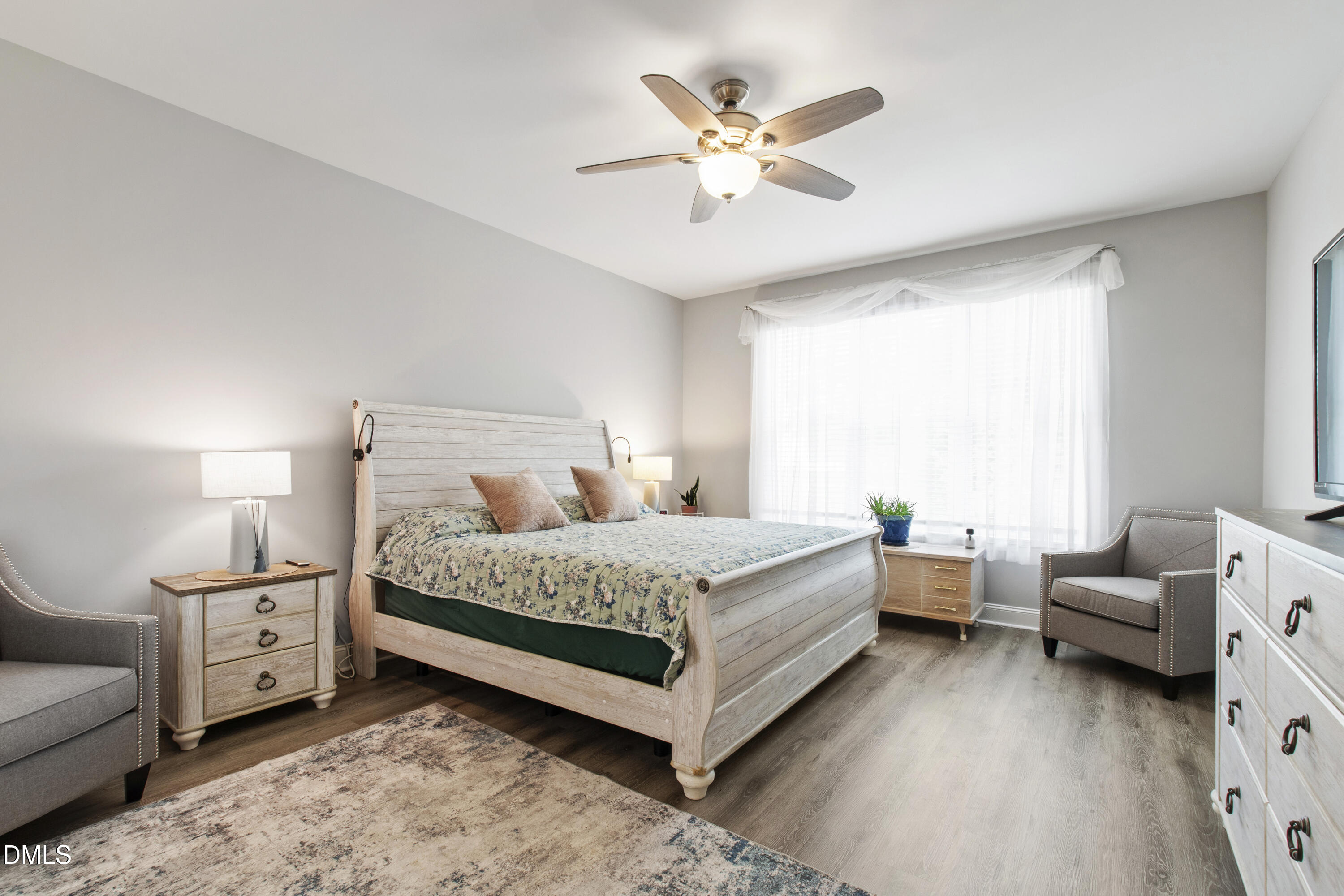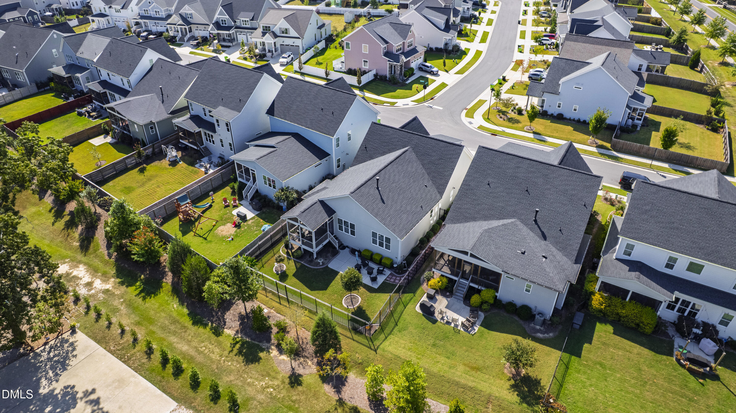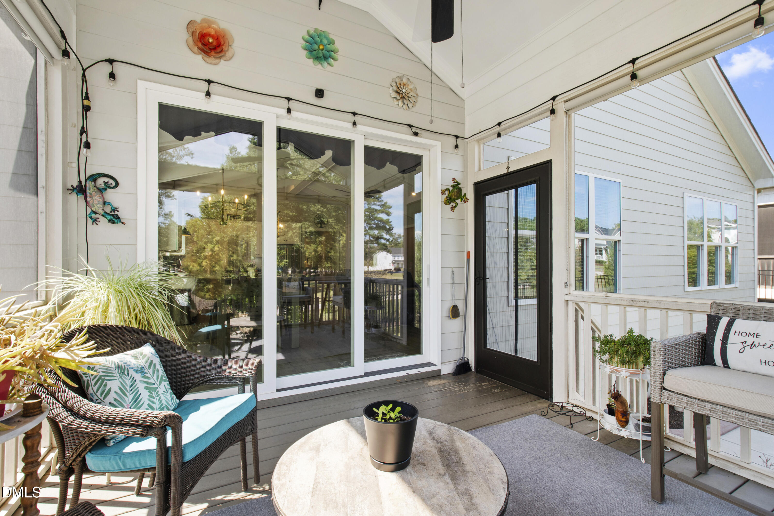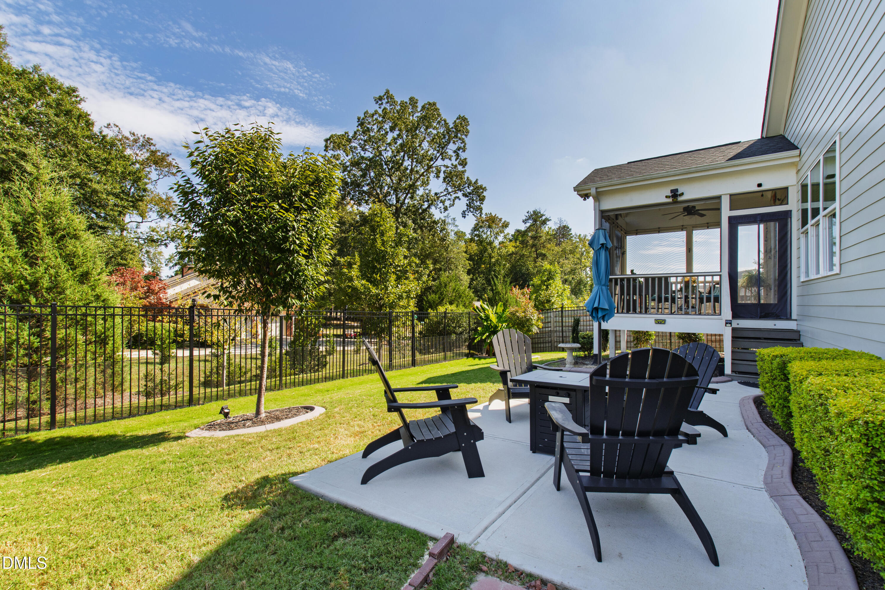 Welcome to a stunningly-crafted, farmhouse inspired rarity in the highly sought-after Wendell Falls community - 209 Tumbling River Drive. Brought to life by the esteemed Homes by Dickerson group and designed with the discerning buyer in mind, this one-level living home, in the form of the desirable Cooper floor plan, is the perfect choice for those seeking comfort, style, and practicality all in one. As you step inside, you'll be greeted by an open and thoughtfully designed layout, where vaulted ceilings with custom trim and beams create an immediate sense of warmth and architectural beauty. The spacious family room encapsulates the heart of the home - anchored in a cozy gas-log fireplace flanked by built-in bookshelves and accentuated by immaculate hardwood floors throughout. The gourmet kitchen is every chef's dream, boasting an abundance of cabinet space with soft-close doors, sleek stainless steel appliances, and a large, delicatus white granite island perfect for gatherings and meal prep. Whether hosting friends at a dinner party or enjoying your very own relaxing evening, the whole space seamlessly blends ease with elevated living, making every meal a delight. Nine-foot ceilings extend throughout the entirety of the home, including the luxurious primary suite and two other generously sized bedrooms, which feature brand-new luxury vinyl plank flooring for a fresh and modern touch. Stepping outside, the exterior is just as impressive as the interior. The property is nestled on a landscaped, tranquil, fenced lot, offering the perfect scene for those looking to soak in the breathtaking North Carolina sunrises and sunsets. Whether you choose to do so from the idyllic screened porch, or from the inviting patio at grass level, either allow the perfect backdrop for outdoor entertaining or quiet reflection. Through its youthful age, this home offers peace of mind with modern features that ensure energy efficiency and low-maintenance living. Other wins include a tankless water heater, an architectural shingle roof, and a sealed conditioned crawlspace, all playing their part in maintaining a comfortable environment year-round. Located just moments from a variety of amenities, this home provides convenient access to fantastic local restaurants, the community pool, scenic trails, and everyday essentials like Publix and Starbucks. With exciting developments on the horizon, Wendell Falls continues to grow as a vibrant, welcoming community. Experience the perfect blend of elegance, functionality, and location with 209 Tumbling River Drive.