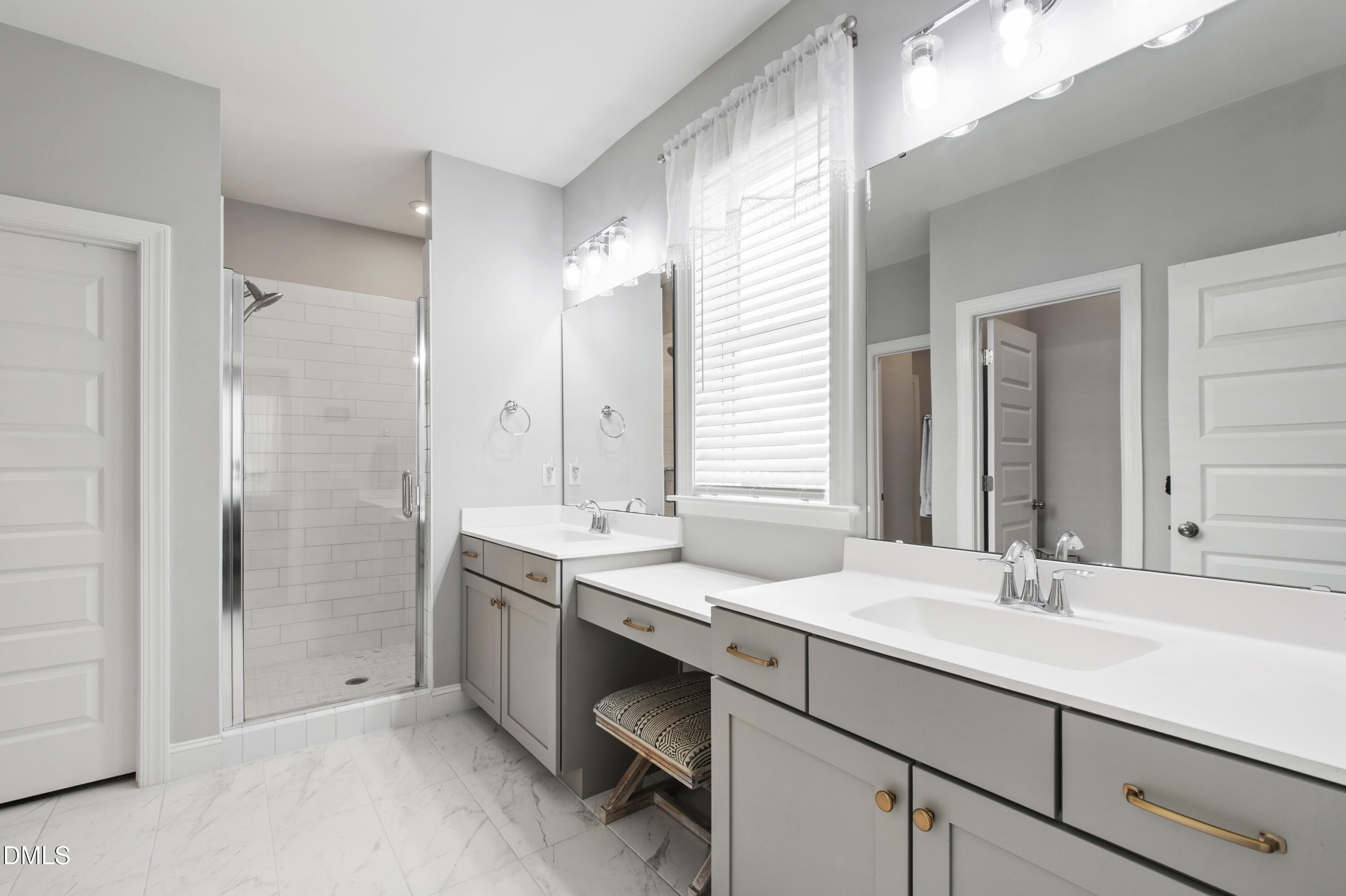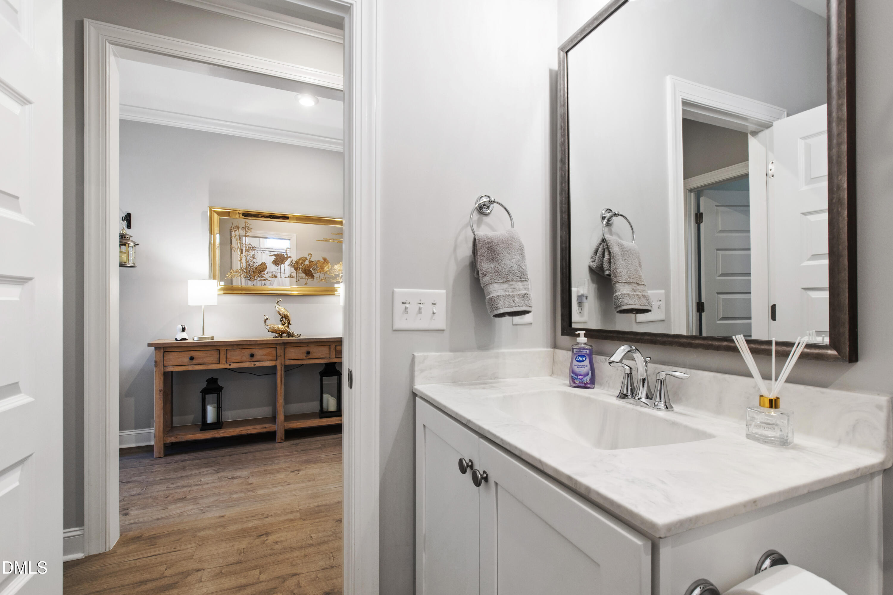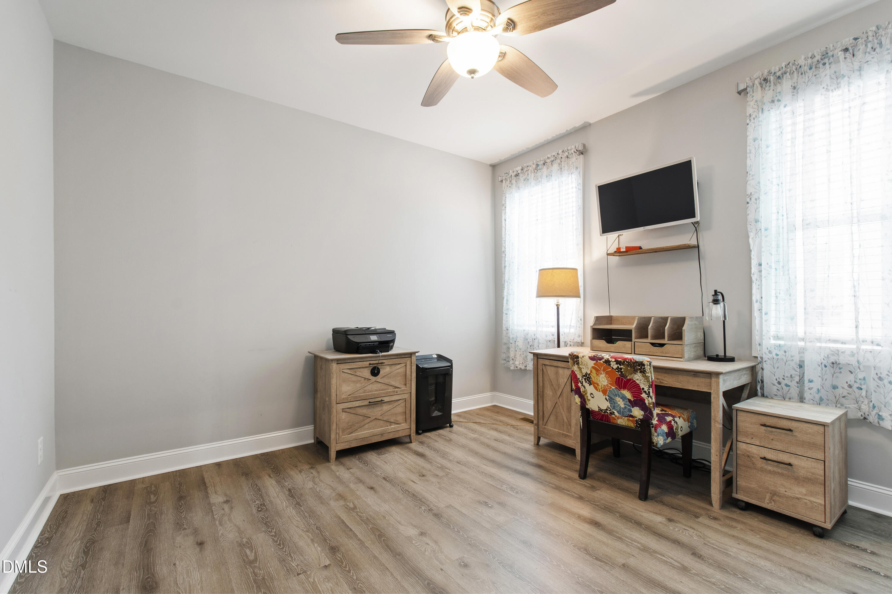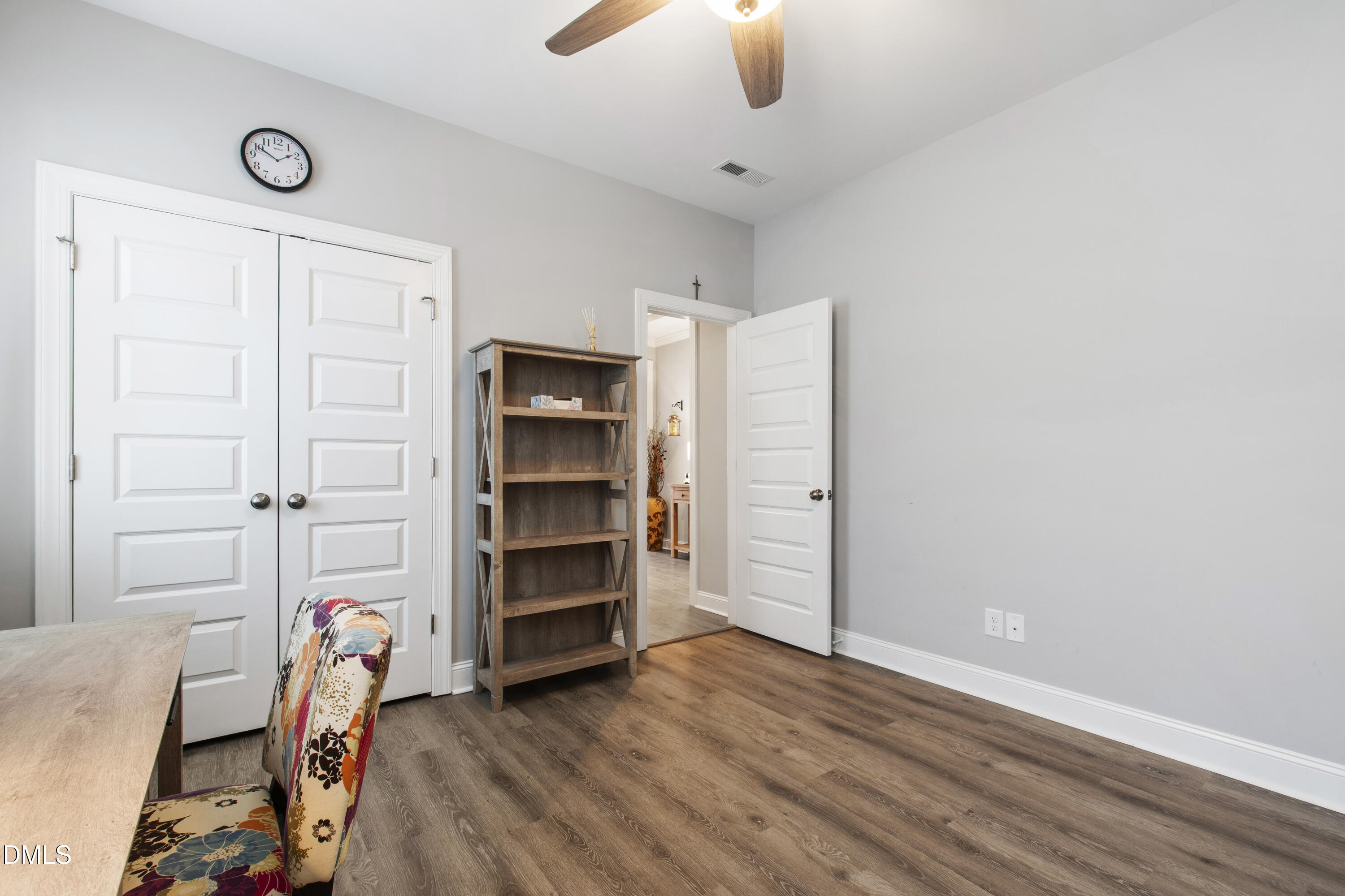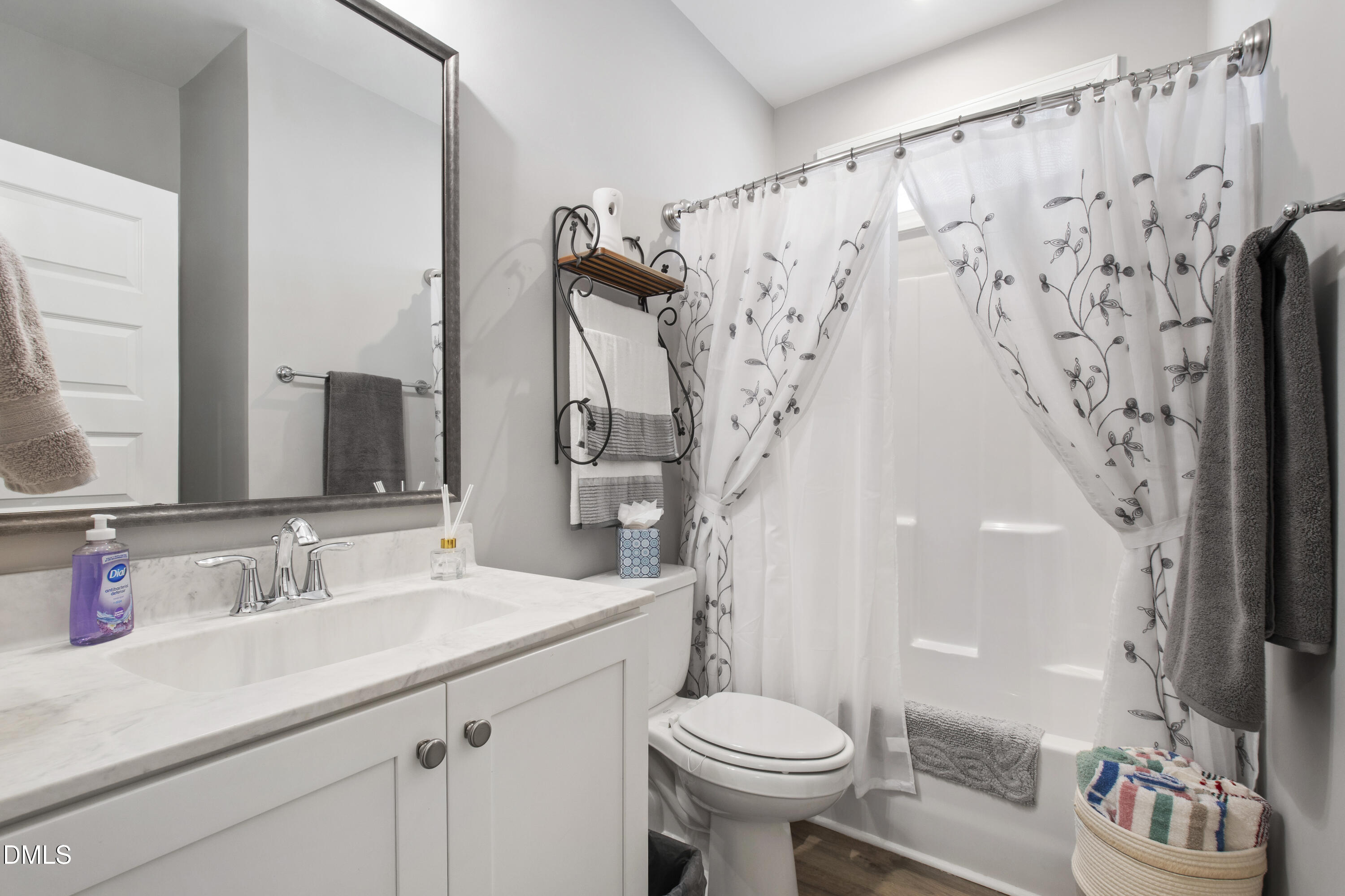 Welcome to a stunningly-crafted, farmhouse inspired rarity in the highly sought-after Wendell Falls community - 209 Tumbling River Drive. Brought to life by the esteemed Homes by Dickerson group and designed with the discerning buyer in mind, this one-level living home, in the form of the desirable Cooper floor plan, is the perfect choice for those seeking comfort, style, and practicality all in one. As you step inside, you'll be greeted by an open and thoughtfully designed layout, where vaulted ceilings with custom trim and beams create an immediate sense of warmth and architectural beauty. The spacious family room encapsulates the heart of the home - anchored in a cozy gas-log fireplace flanked by built-in bookshelves and accentuated by immaculate hardwood floors throughout. The gourmet kitchen is every chef's dream, boasting an abundance of cabinet space with soft-close doors, sleek stainless steel appliances, and a large, delicatus white granite island perfect for gatherings and meal prep. Whether hosting friends at a dinner party or enjoying your very own relaxing evening, the whole space seamlessly blends ease with elevated living, making every meal a delight. Nine-foot ceilings extend throughout the entirety of the home, including the luxurious primary suite and two other generously sized bedrooms, which feature brand-new luxury vinyl plank flooring for a fresh and modern touch. Stepping outside, the exterior is just as impressive as the interior. The property is nestled on a landscaped, tranquil, fenced lot, offering the perfect scene for those looking to soak in the breathtaking North Carolina sunrises and sunsets. Whether you choose to do so from the idyllic screened porch, or from the inviting patio at grass level, either allow the perfect backdrop for outdoor entertaining or quiet reflection. Through its youthful age, this home offers peace of mind with modern features that ensure energy efficiency and low-maintenance living. Other wins include a tankless water heater, an architectural shingle roof, and a sealed conditioned crawlspace, all playing their part in maintaining a comfortable environment year-round. Located just moments from a variety of amenities, this home provides convenient access to fantastic local restaurants, the community pool, scenic trails, and everyday essentials like Publix and Starbucks. With exciting developments on the horizon, Wendell Falls continues to grow as a vibrant, welcoming community. Experience the perfect blend of elegance, functionality, and location with 209 Tumbling River Drive.