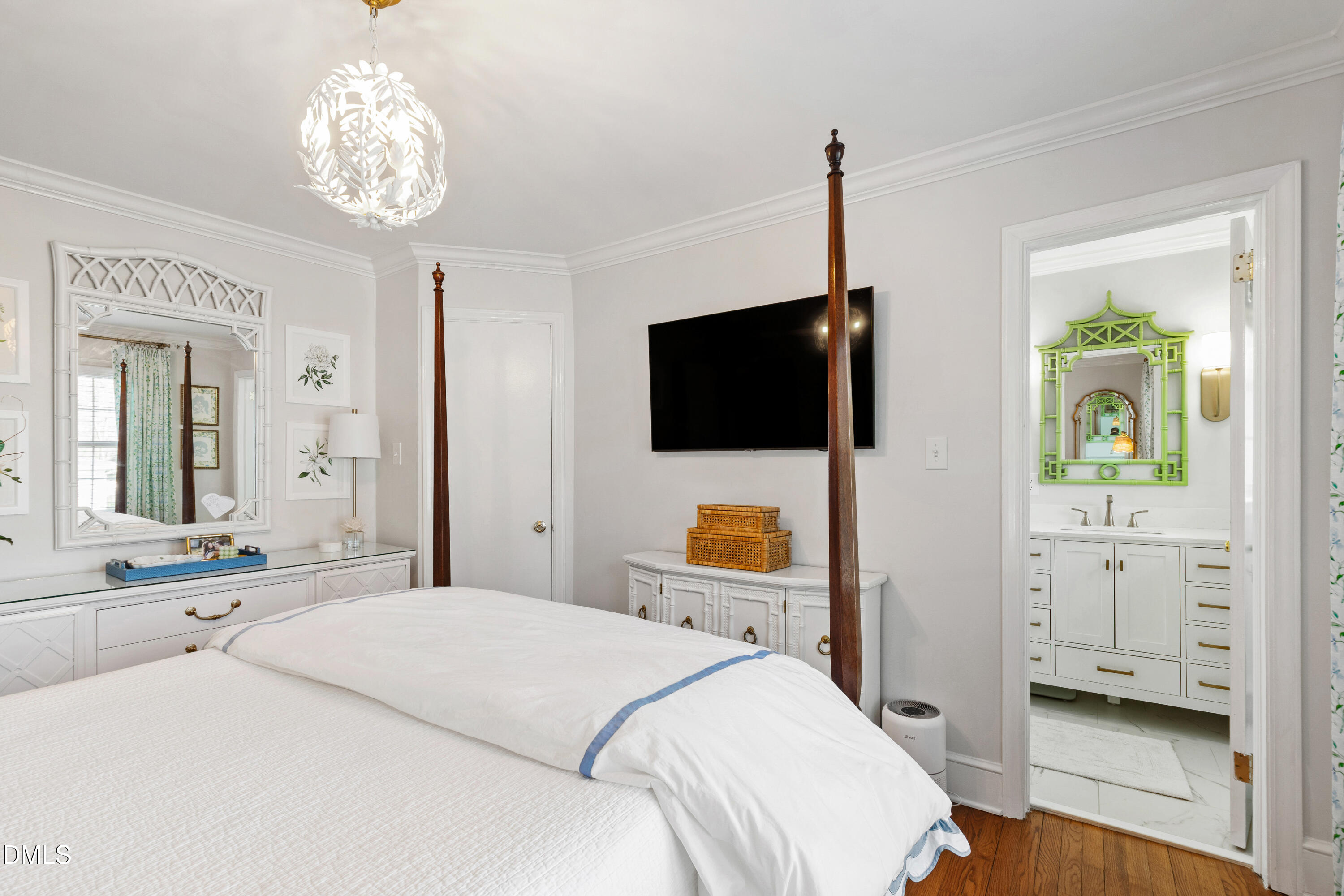 Set on a generous .38-acre flat, fenced lot, this painted brick ranch offers effortless one-level living in one of Raleigh's most desirable locations. Thoughtfully updated and impeccably maintained, the home blends classic charm with fresh, modern finishes throughout. Inside, hardwood floors, wood shutters, and decorator-quality details create a warm and inviting atmosphere. The fully renovated kitchen features stainless steel appliances, granite countertops, a cheerful eat-in breakfast area plus additional bar seating. The living room centers around a fireplace, offering the option for cozy evenings ahead. All bathrooms have been beautifully updated, and each bedroom includes custom closets for exceptional organization. A spacious laundry room with abundant storage adds everyday convenience. Outdoor living is just as appealing, with a rear deck and grilling patio overlooking the expansive, level backyard--perfect for entertaining, pets, play, or future expansion. The home also offers a front driveway plus a side parking pad for added flexibility. A standout feature of the property is the detached building, which includes a one-car garage, heated and finished flex space, and a large storage closet. Currently used for storage, the garage could easily be converted for car access with the addition of a driveway. The finished interior space is beautifully appointed with custom built-in cabinetry and LVP flooring, making it ideal for a private office, playroom, or man cave. Plumbing could be added to create a full bath, opening even more possibilities. With a CPI security system and cameras already in place, this move-in ready home offers comfort, flexibility, and style--all on a rare, oversized lot in a prime location.