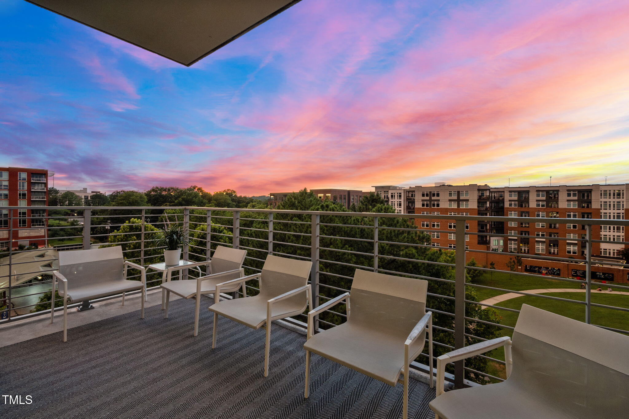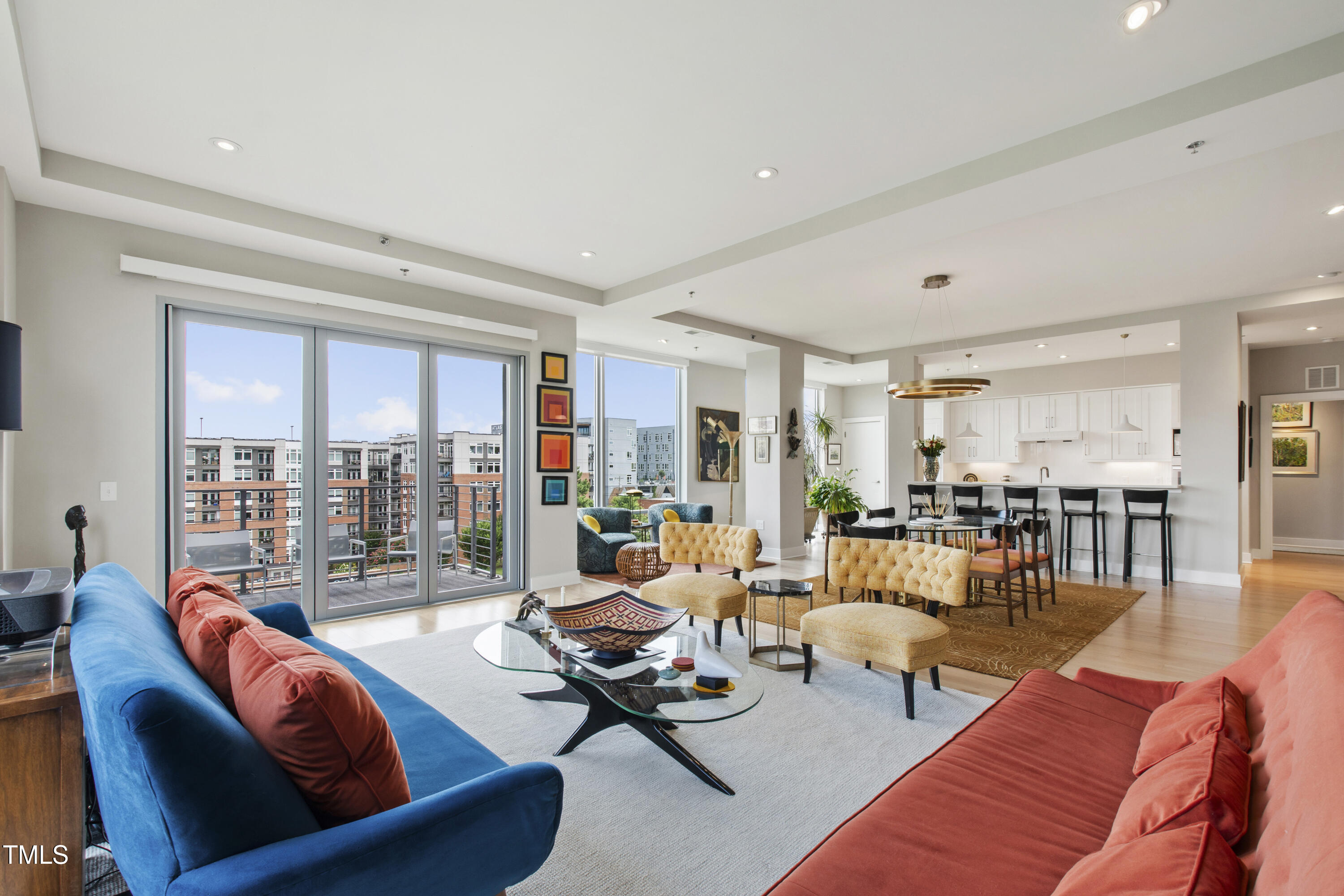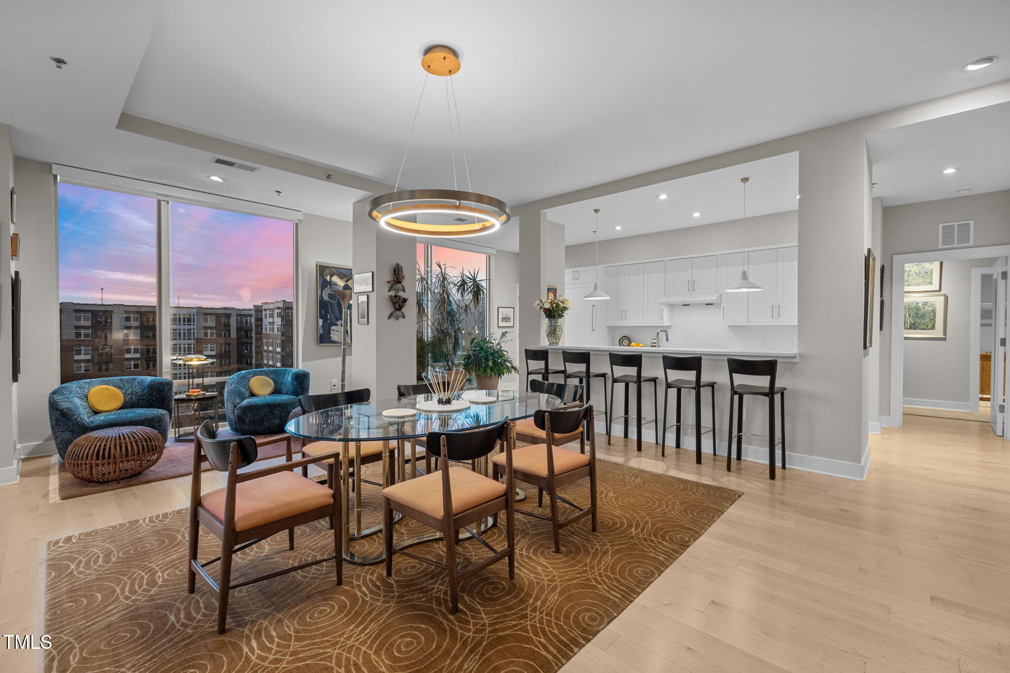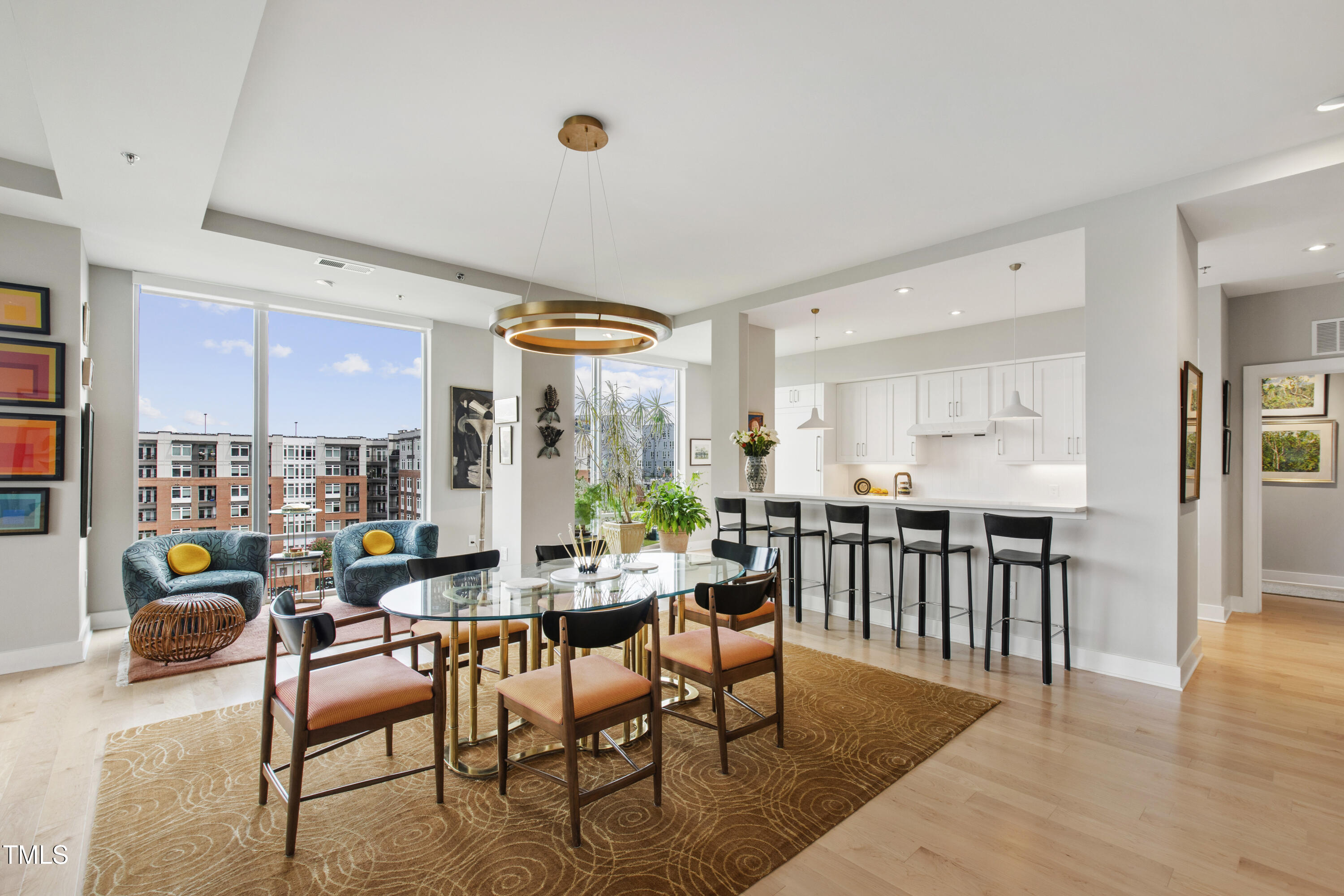 Welcome to this spectacular high floor, northwest corner condo at The Vega, with soaring 11'2'' ceilings and unobstructed views over Durham Central Park with two private terraces. Custom architectural upgrades include floor-to-ceiling partitions framing the quartz kitchen island with added raised backsplash, soffited living room ceiling with adjustable and dimmable recessed lighting. The upgraded kitchen and separate laundry feature Miele energy-efficient appliances, Zephyr range hood, plumbed steam oven, deep farm sink, and soft-close cabinetry. Reimagined baths offer a 6-ft soaking tub and walk-in shower. Additional upgrades include premium maple engineered wood floors, motorized blackout shades, bipolar ionization HVAC filtration system, remote controlled home theater screen, and smart home tech throughout. Special additions include two indoor parking spots with EV charger and a convenient access private same floor hallway storage room. The spacious contemporary lobby welcomes you and your guests. Boutique amenities include fitness room, clubroom with indoor and outdoor kitchens, and mailroom with refrigerated grocery delivery. With direct access to Durham Central Park and nearby restaurants and entertainment, you are just a block away from all that downtown Durham has to offer. Conveniently located near Duke University, Duke Hospital, and I-85, and just 20 minutes from Chapel Hill and RDU International airport.