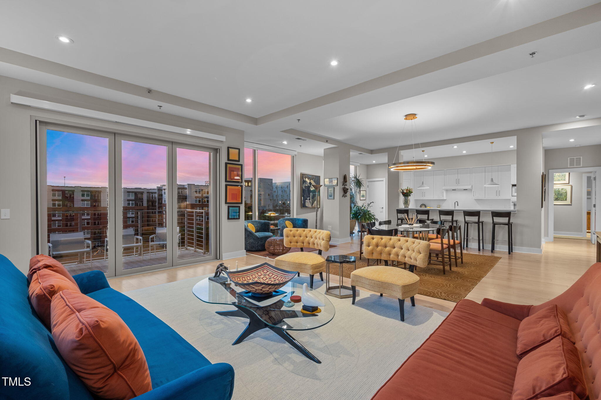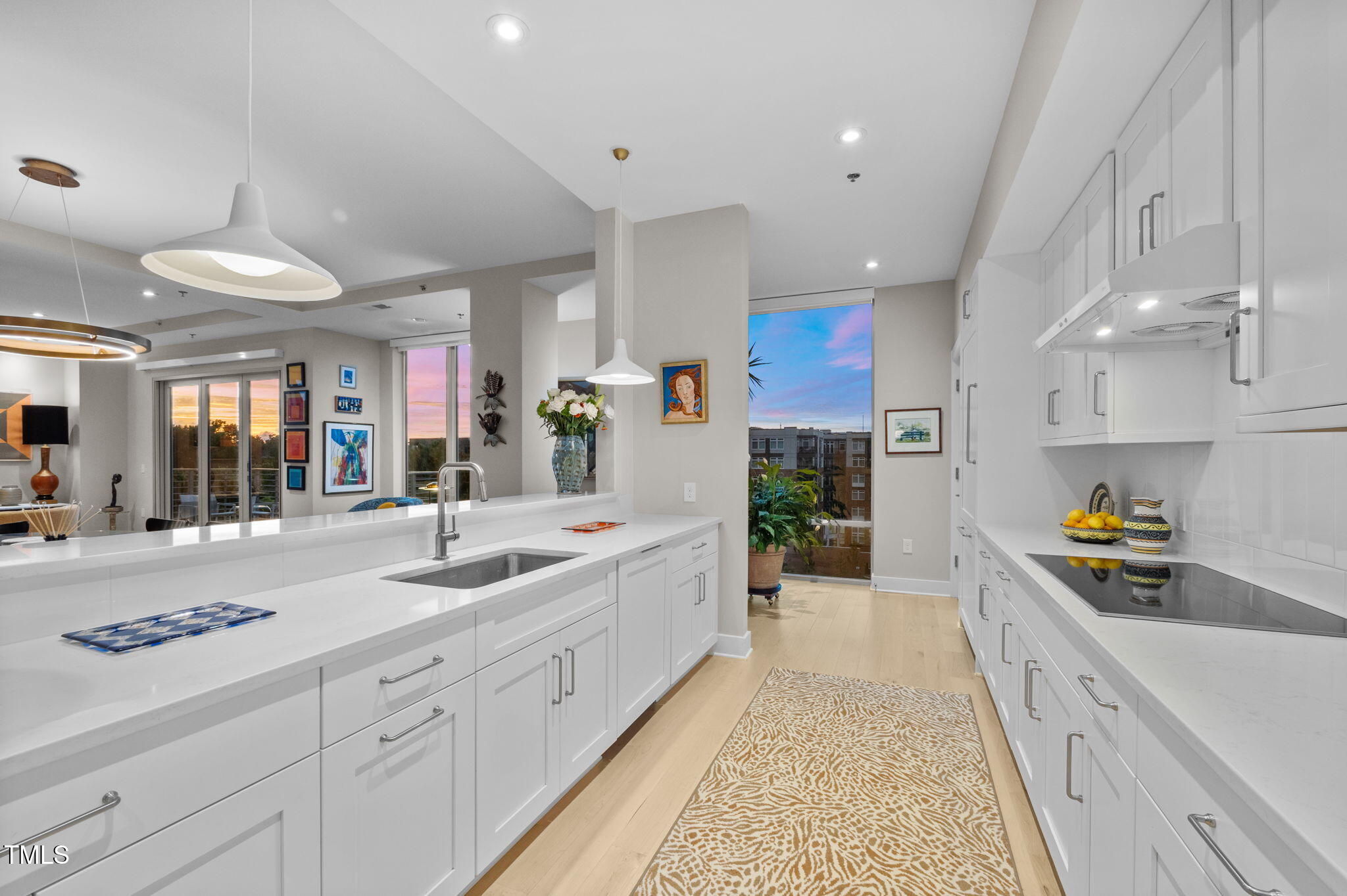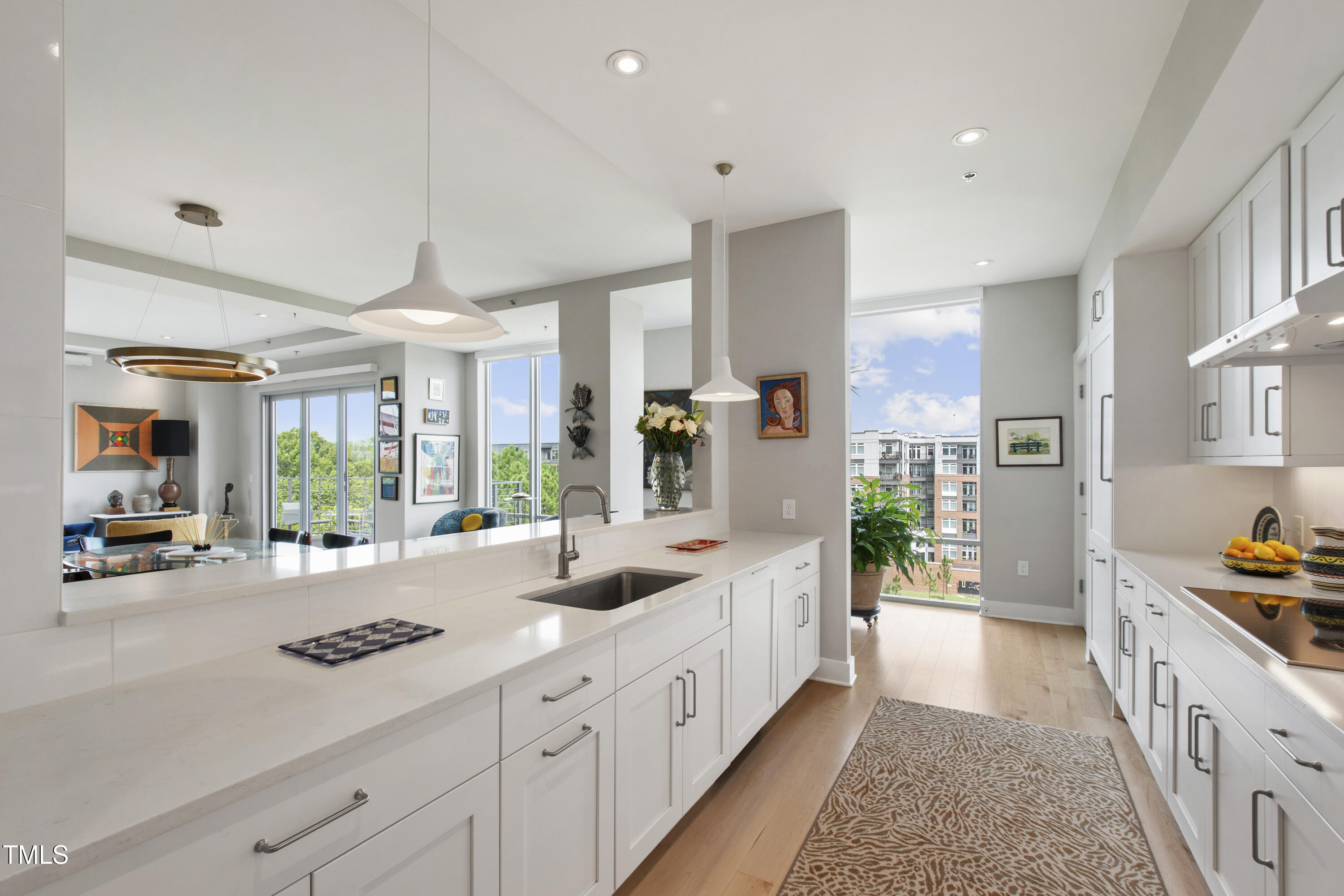 Welcome to this spectacular high floor, northwest corner condo at The Vega, with soaring 11'2'' ceilings and unobstructed views over Durham Central Park with two private terraces. Custom architectural upgrades include floor-to-ceiling partitions framing the quartz kitchen island with added raised backsplash, soffited living room ceiling with adjustable and dimmable recessed lighting. The upgraded kitchen and separate laundry feature Miele energy-efficient appliances, Zephyr range hood, plumbed steam oven, deep farm sink, and soft-close cabinetry. Reimagined baths offer a 6-ft soaking tub and walk-in shower. Additional upgrades include premium maple engineered wood floors, motorized blackout shades, bipolar ionization HVAC filtration system, remote controlled home theater screen, and smart home tech throughout. Special additions include two indoor parking spots with EV charger and a convenient access private same floor hallway storage room. The spacious contemporary lobby welcomes you and your guests. Boutique amenities include fitness room, clubroom with indoor and outdoor kitchens, and mailroom with refrigerated grocery delivery. With direct access to Durham Central Park and nearby restaurants and entertainment, you are just a block away from all that downtown Durham has to offer. Conveniently located near Duke University, Duke Hospital, and I-85, and just 20 minutes from Chapel Hill and RDU International airport.