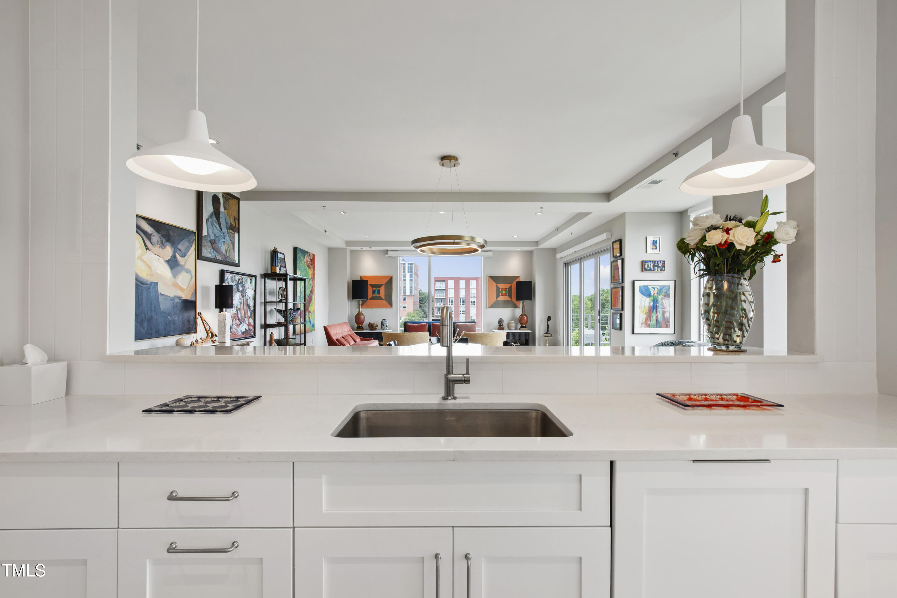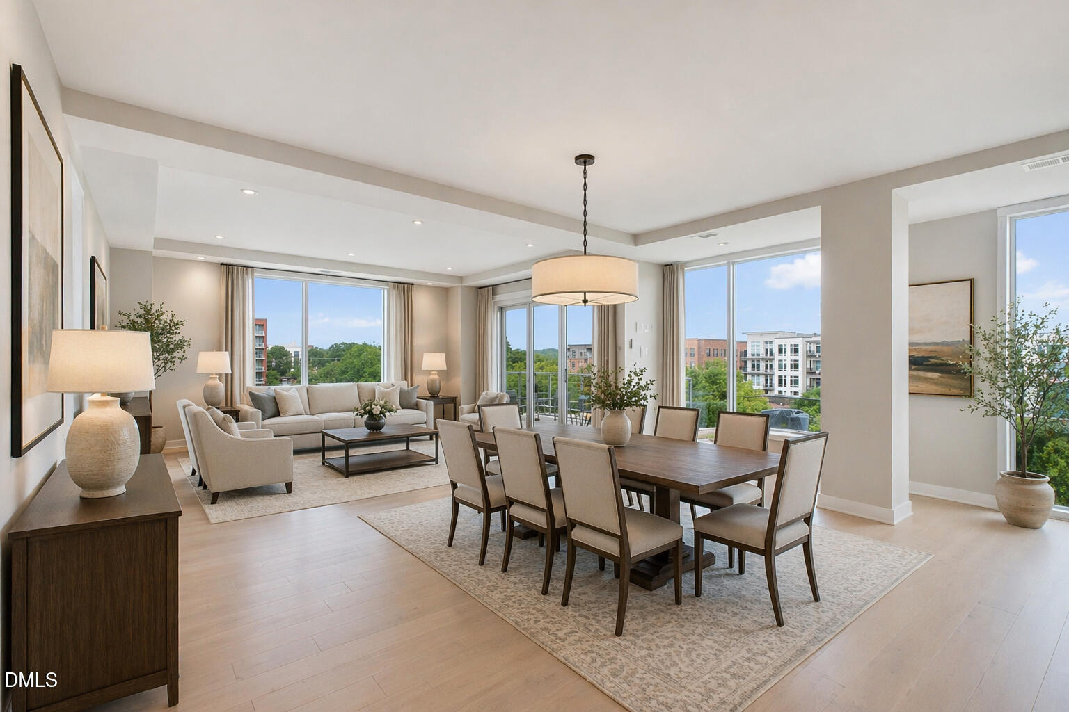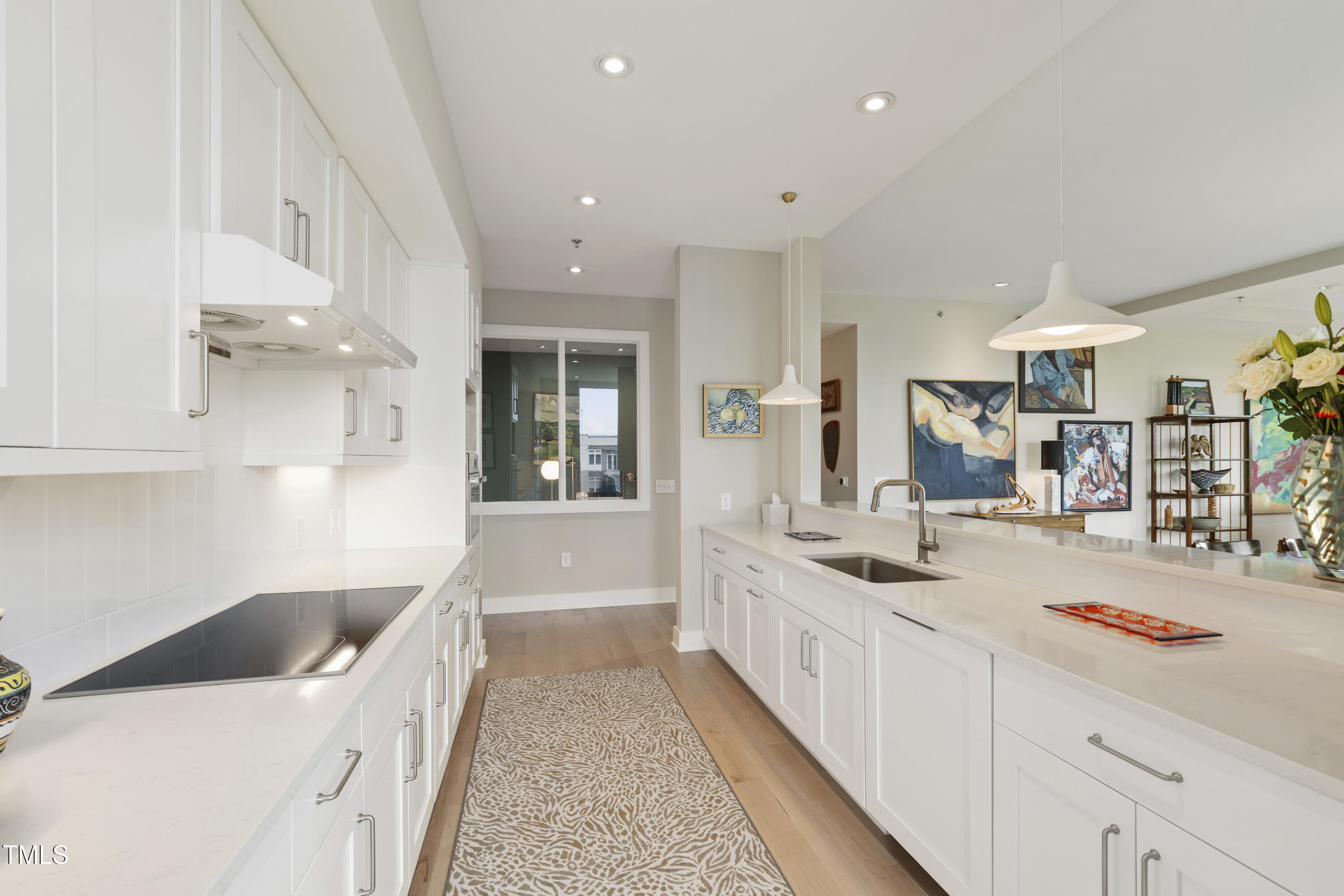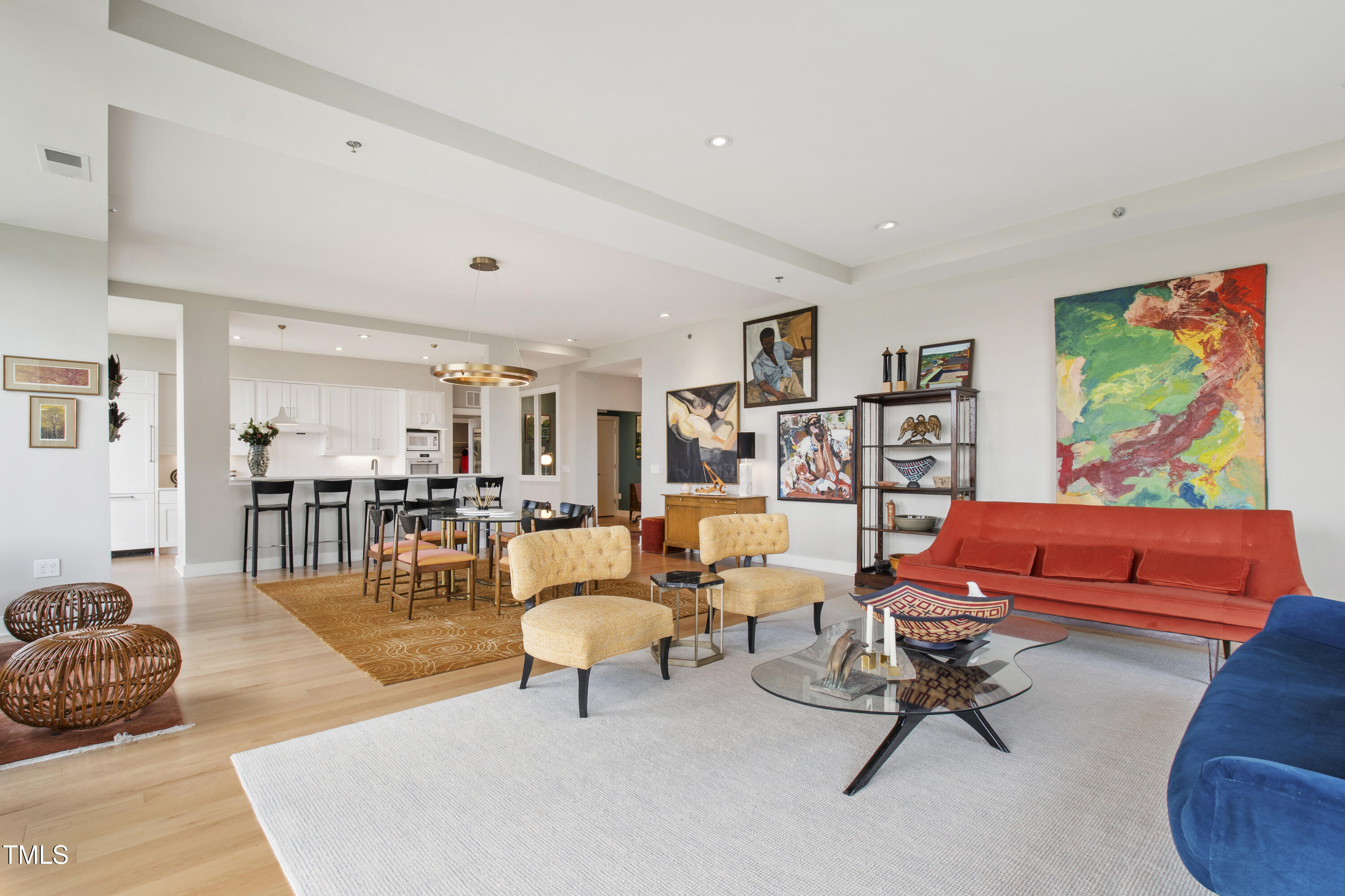 Welcome to this spectacular high floor, northwest corner condo at The Vega, with soaring 11'2'' ceilings and unobstructed views over Durham Central Park with two private terraces. Custom architectural upgrades include floor-to-ceiling partitions framing the quartz kitchen island with added raised backsplash, soffited living room ceiling with adjustable and dimmable recessed lighting. The upgraded kitchen and separate laundry feature Miele energy-efficient appliances, Zephyr range hood, plumbed steam oven, deep farm sink, and soft-close cabinetry. Reimagined baths offer a 6-ft soaking tub and walk-in shower. Additional upgrades include premium maple engineered wood floors, motorized blackout shades, bipolar ionization HVAC filtration system, remote controlled home theater screen, and smart home tech throughout. Special additions include two indoor parking spots with EV charger and a convenient access private same floor hallway storage room. The spacious contemporary lobby welcomes you and your guests. Boutique amenities include fitness room, clubroom with indoor and outdoor kitchens, and mailroom with refrigerated grocery delivery. With direct access to Durham Central Park and nearby restaurants and entertainment, you are just a block away from all that downtown Durham has to offer. Conveniently located near Duke University, Duke Hospital, and I-85, and just 20 minutes from Chapel Hill and RDU International airport.