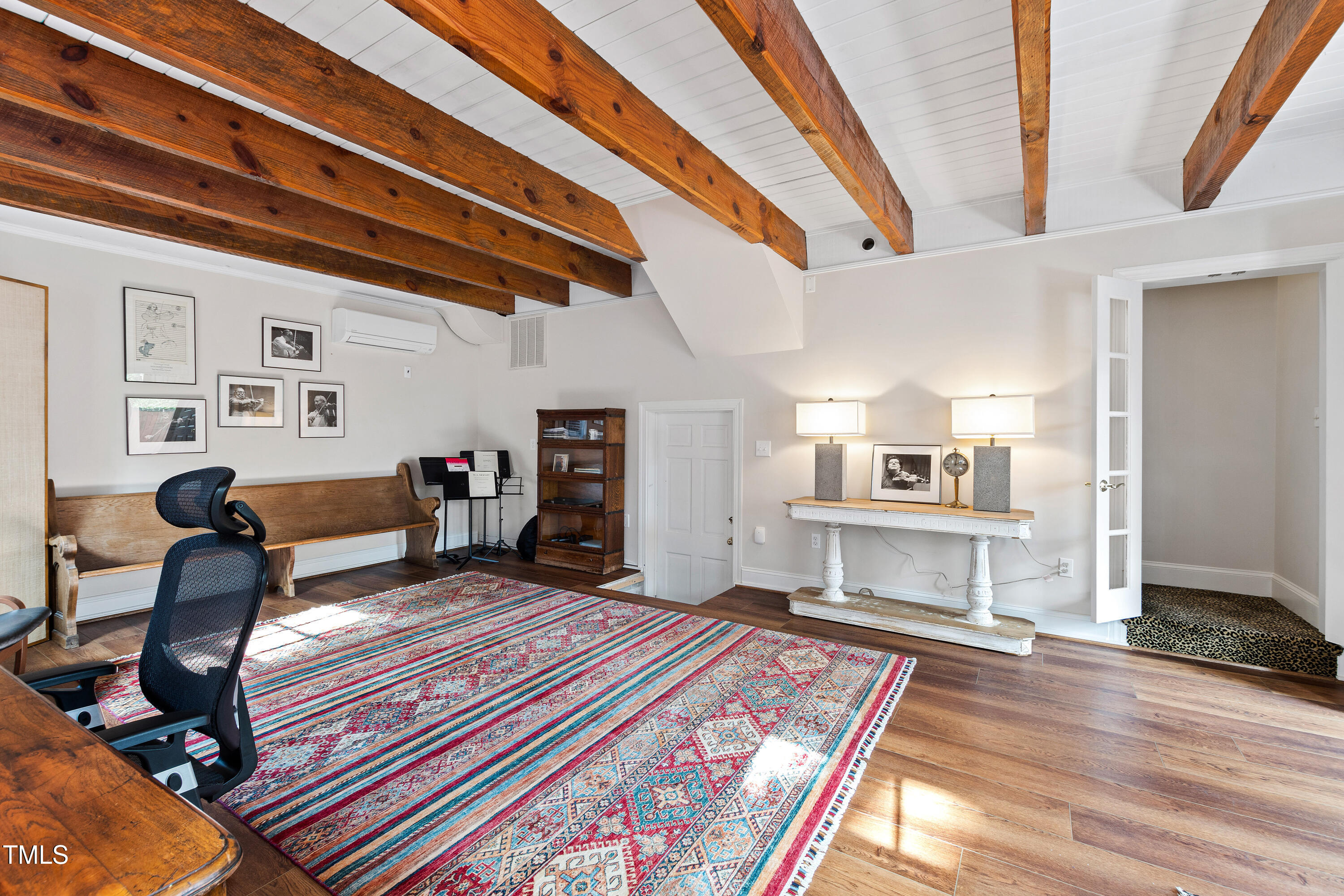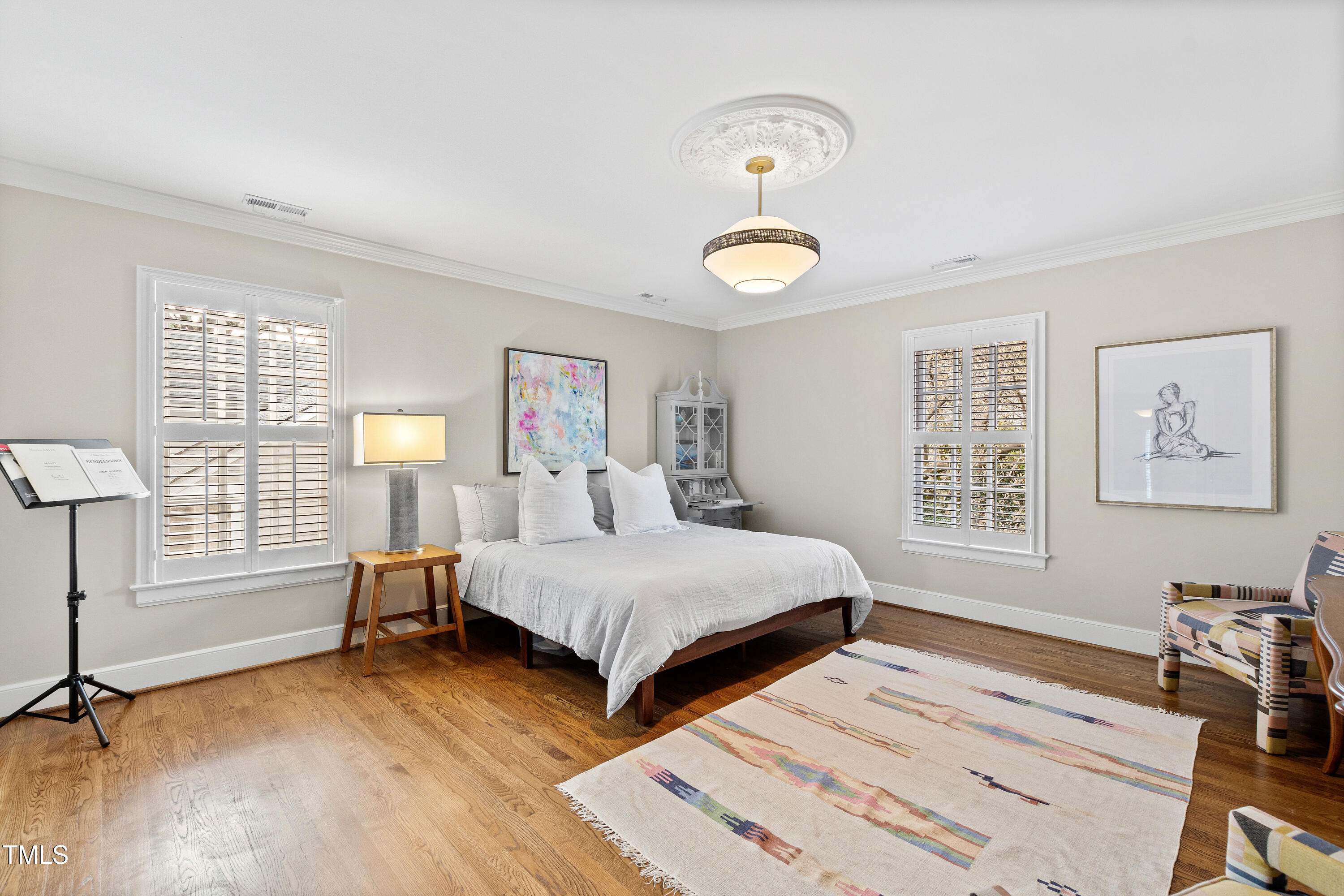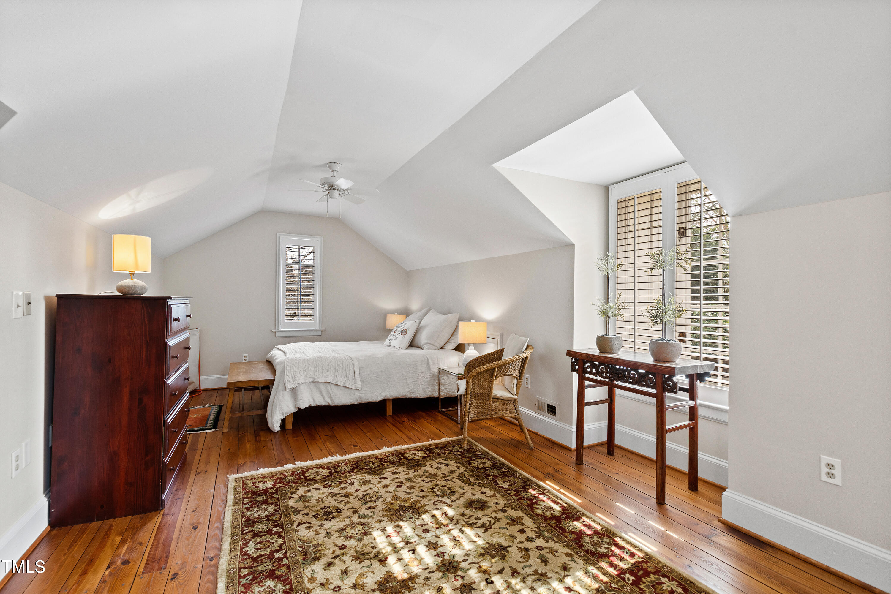 Approaching from the street, you'll be instantly captivated by this enchanting brick residence straight out of a storybook. The home beckons you to explore every detail, featuring three bedrooms within the main house and an additional two nestled in the delightful carriage house. On the main floor of the carriage house, a spacious living area with exposed beams welcomes you, while upstairs offers two bedrooms and a bathroom, providing endless opportunities for use. Whether you envision turning it into a lucrative VRBO, a home studio, a teen hangout, or a cozy in-law suite, the possibilities abound. The carriage house adds 1,185 square feet to the uniquely designed 2,300 square feet of the main dwelling, resulting in nearly 3,500 square feet of total living space. This exceptional property is a rare gem in the vibrant and highly sought-after Five Points neighborhood. Properties like this, especially those featuring a detached two-car garage, are hard to come by in the 27608 area code. Blending charming character with modern conveniences, the home boasts soaring ceilings and hardwood floors that enhance its appeal. A collection of distinctive windows, adorned with plantation shutters, fills the interior with natural light and warmth. French doors lead out to a quaint Charleston-style courtyard, ideal for casual grilling or relaxing with drinks and coffee on a private patio. An expansive walk-up attic completes the home, offering generous additional storage options.