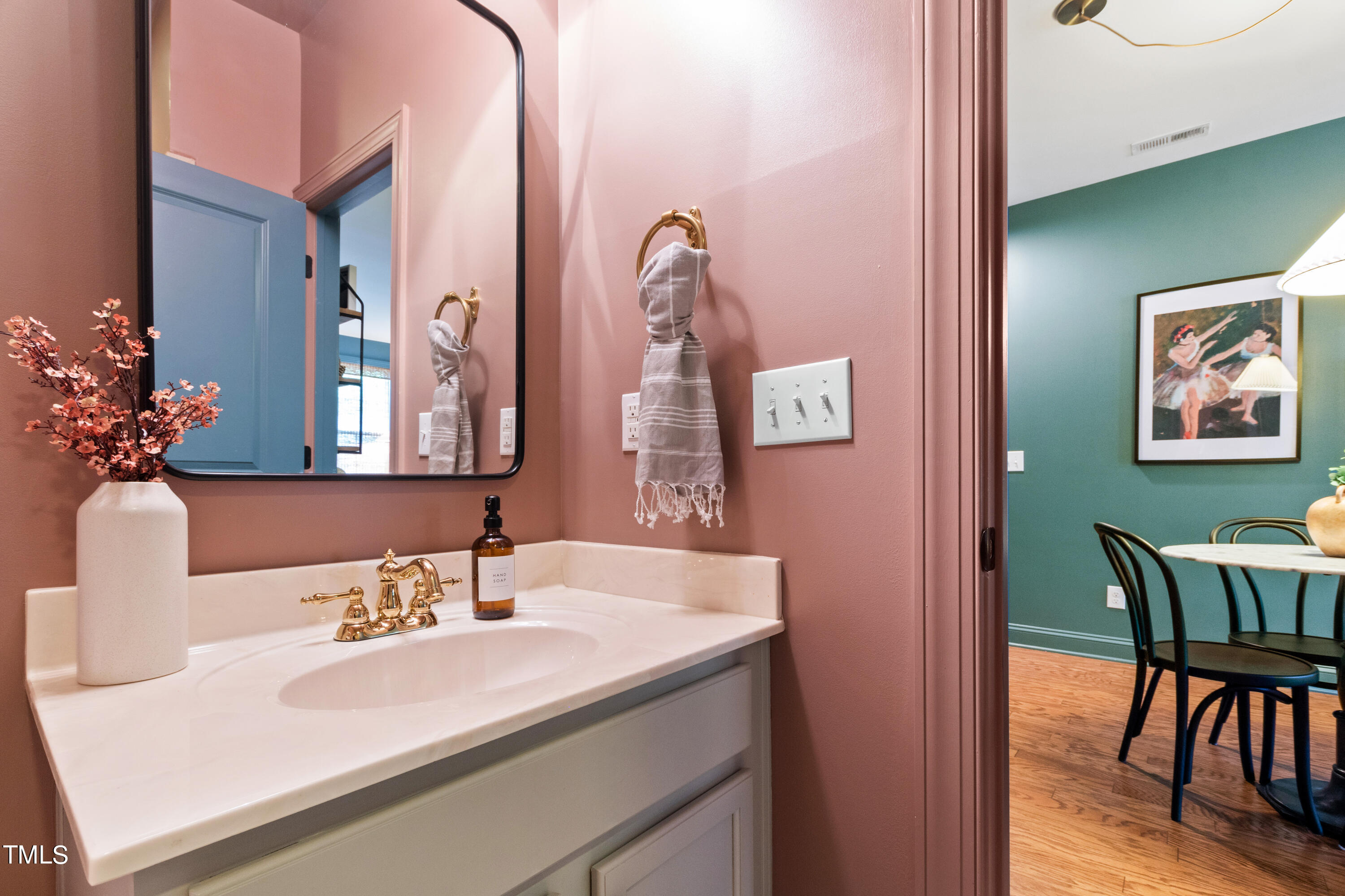 Upon entering, you'll find a versatile downstairs den, perfect as a third bedroom, theater room, office, or game room. This moody and chic space includes a full bathroom and opens to a walk-out patio with a fenced-in backyard--a rare feature for these townhomes--plus access to the garage.