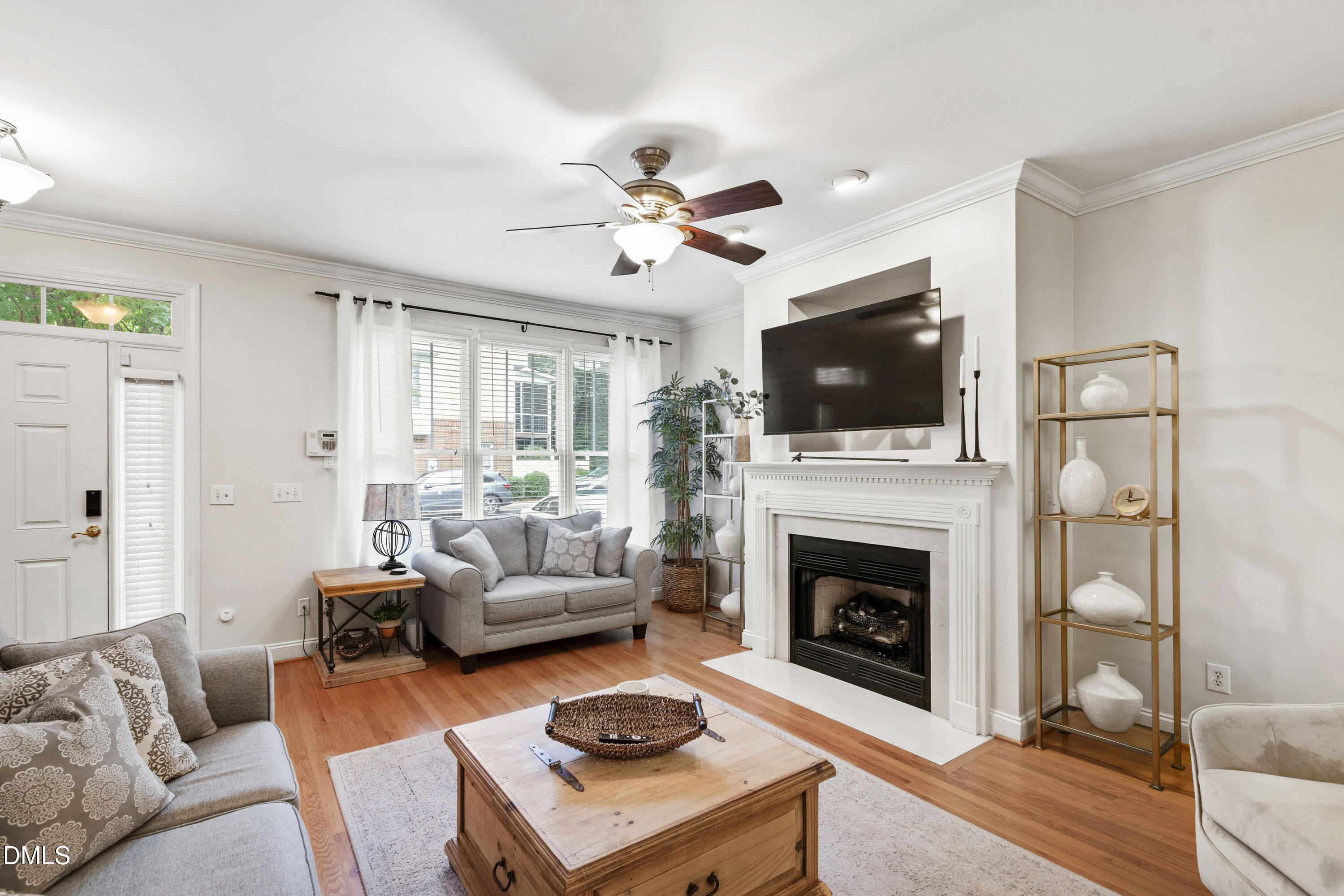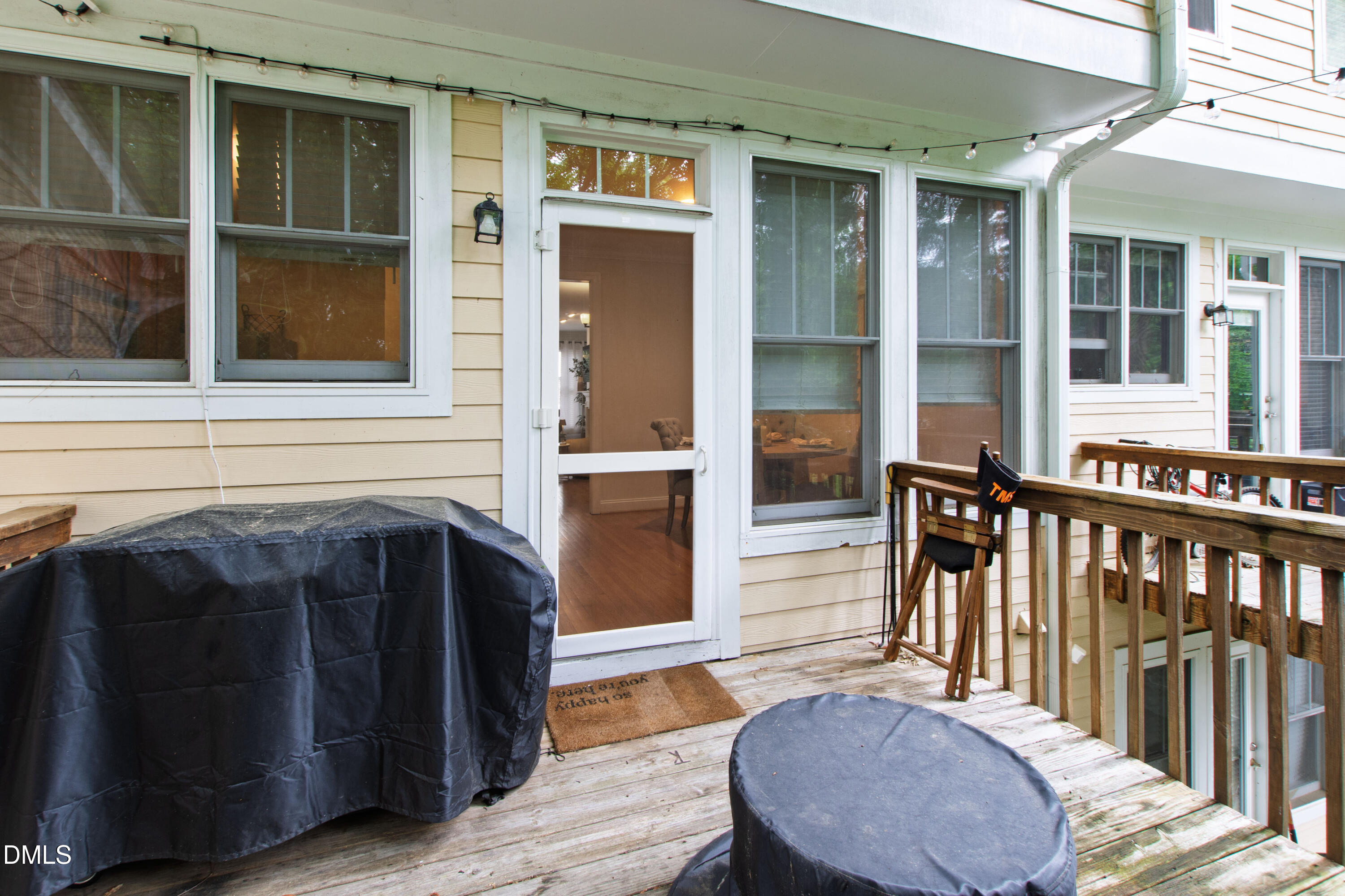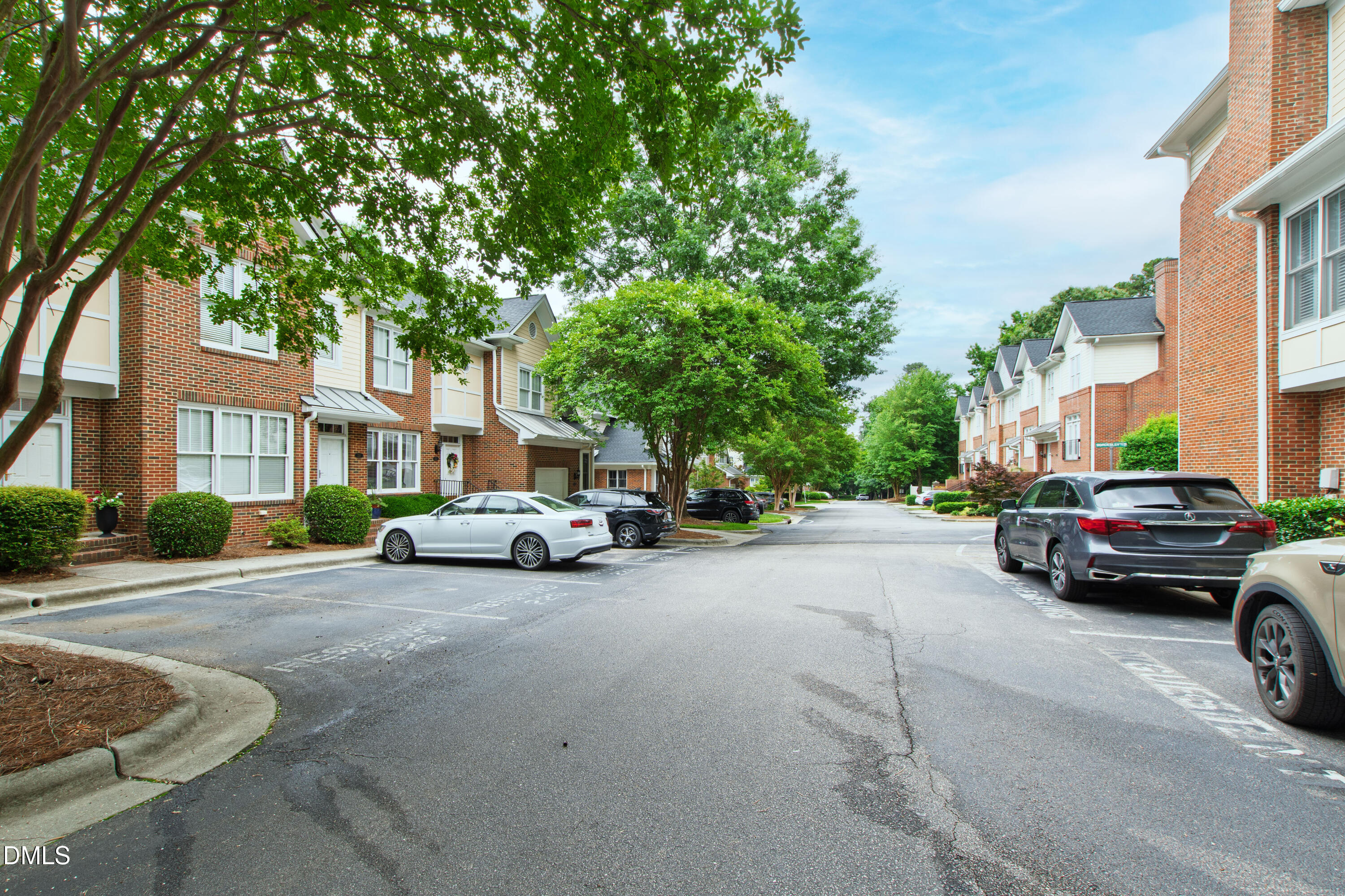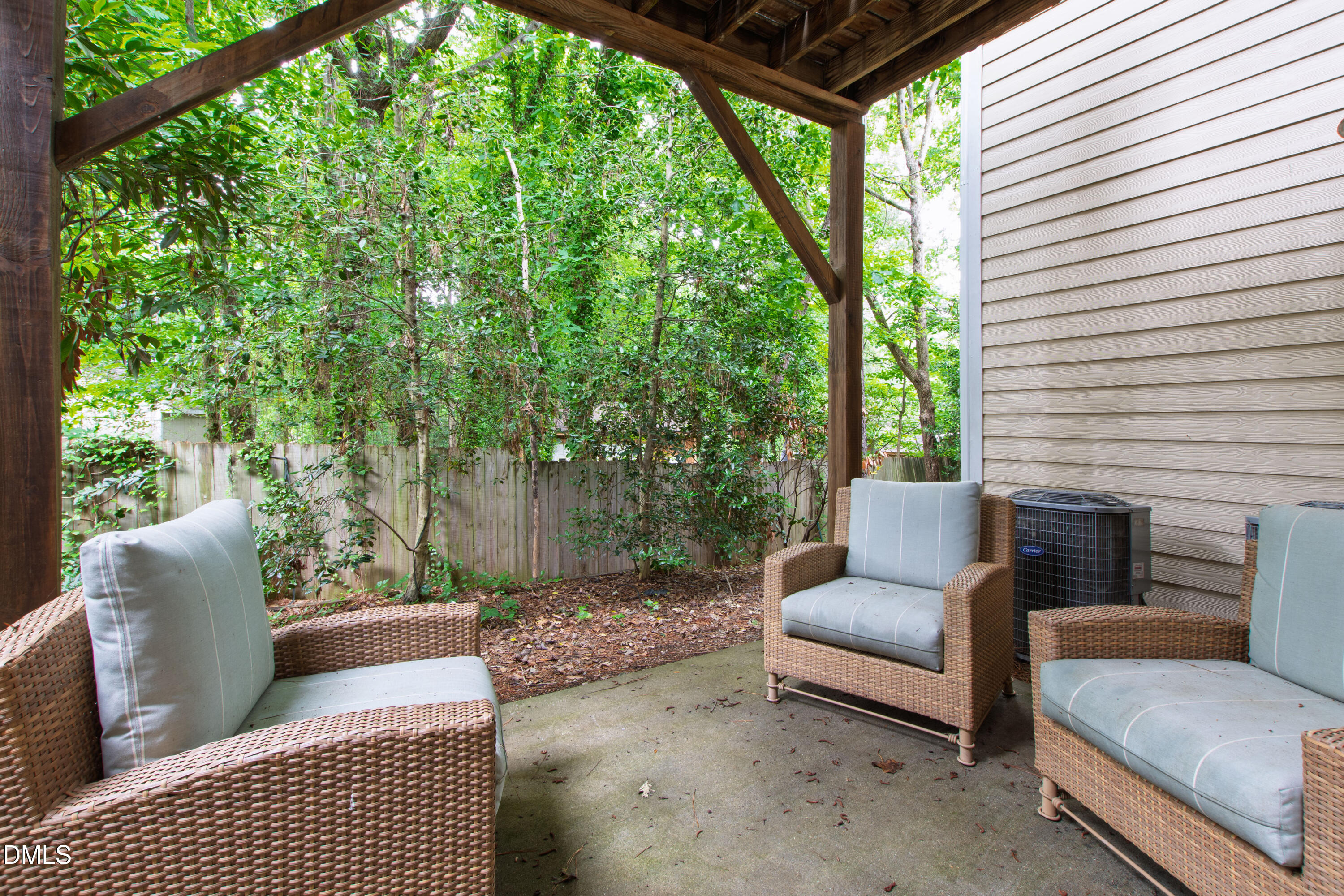 This immaculate townhome offers low-maintenance living just minutes from the shops, dining, and entertainment of North Hills and Midtown. Sunlight fills the main level, where hardwood floors run throughout the open-concept living and dining area, complete with a cozy gas fireplace.The updated eat-in kitchen features granite countertops, modern appliances, and opens to a private deck overlooking a wooded setting. Upstairs, you'll find two spacious ensuite bedrooms with walk-in closets, while the finished basement offers a versatile third bedroom, bonus room, or flex space with its own full bath and access to a covered patio. Contact agent, Abbey Williams, for a showing or questions 919.920.0847. Two marked parking spaces plus guest parking available. Pets negotiable. Kitchen table and chairs and couches in living room can stay if desired.