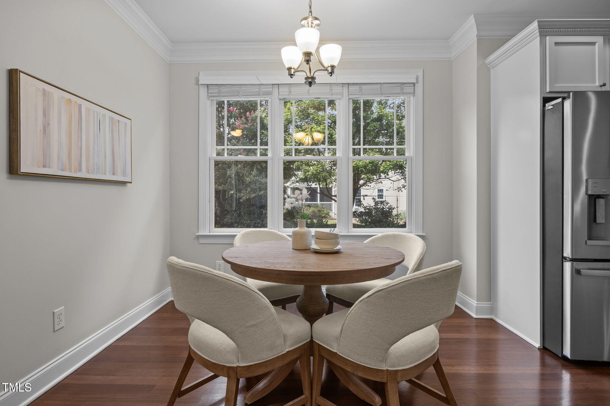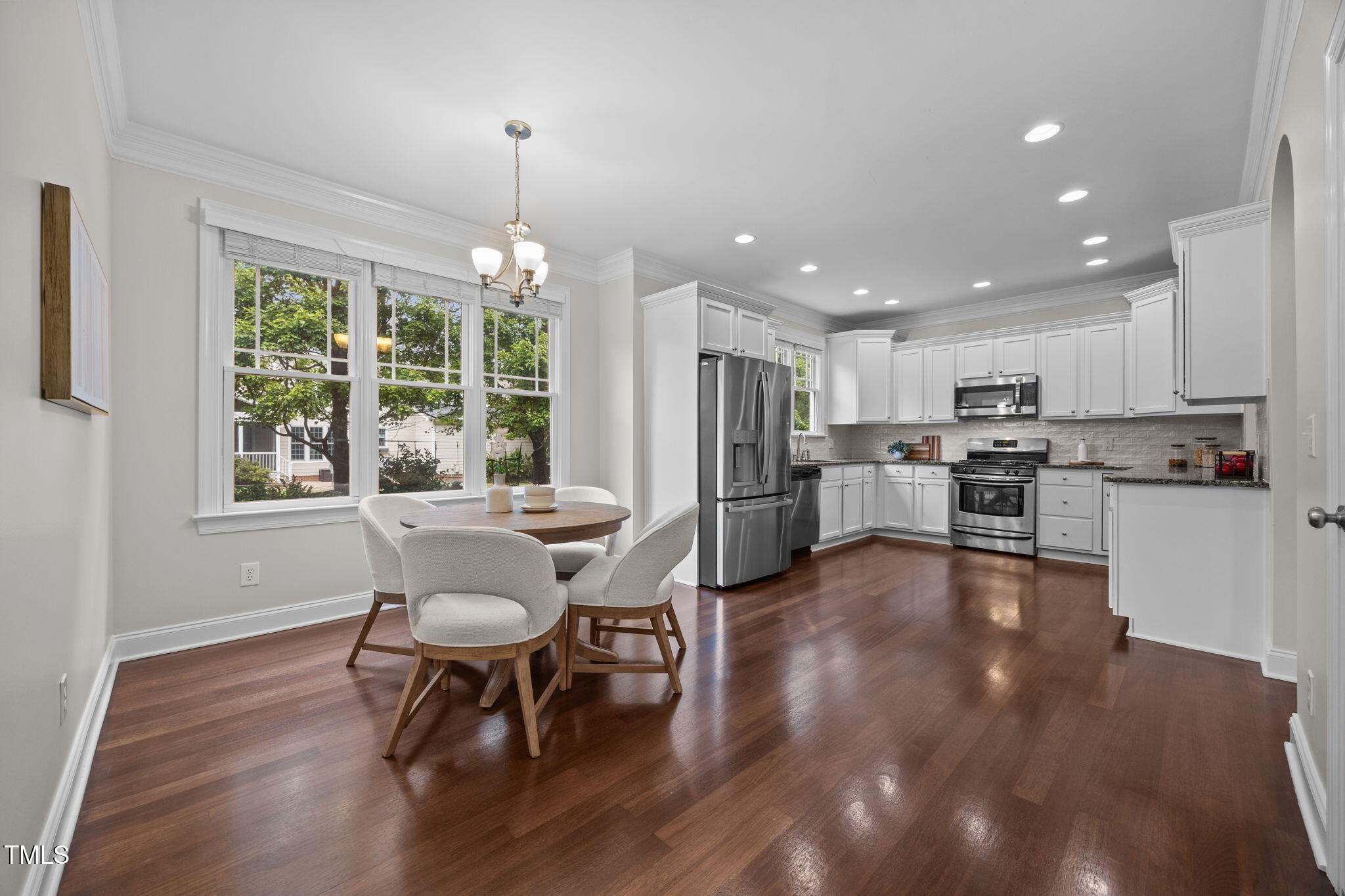 Beautifully updated 4-bedroom home in the sought-after Bedford neighborhood of North Raleigh. Perfectly located near the clubhouse and pool, this home features freshly refinished hardwoods, all-new interior paint, and a flexible floor plan. The main level includes a dedicated office and formal dining room, while the kitchen has been refreshed with painted cabinets and a new backsplash, and also offers granite countertops, stainless steel appliances, and a pantry. The refrigerator ( and the one in the garage), and the washer/dryer convey.
